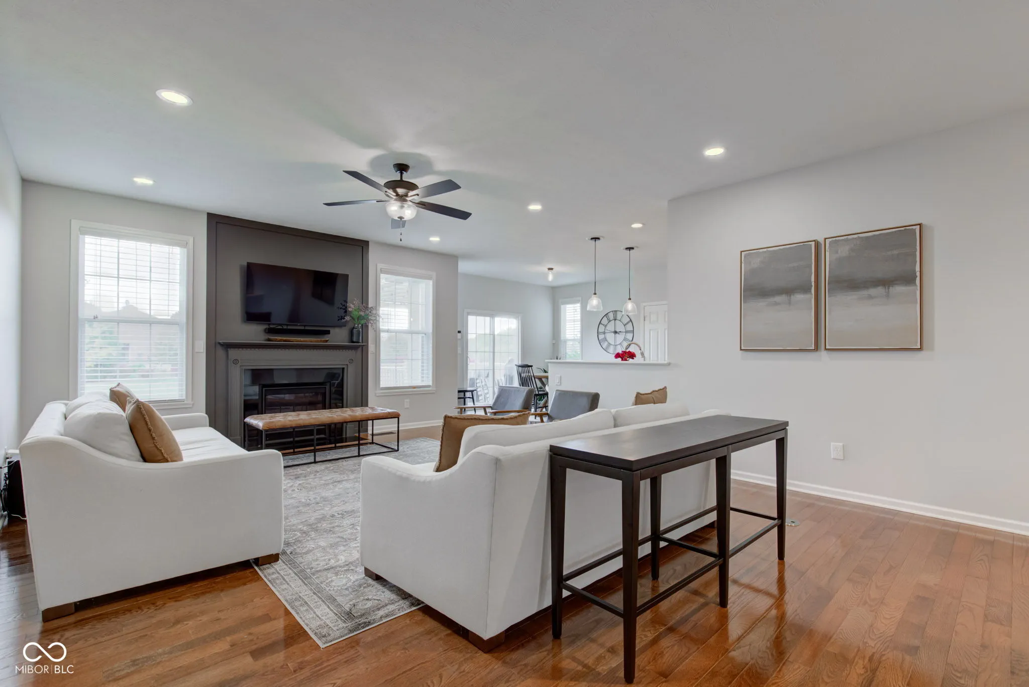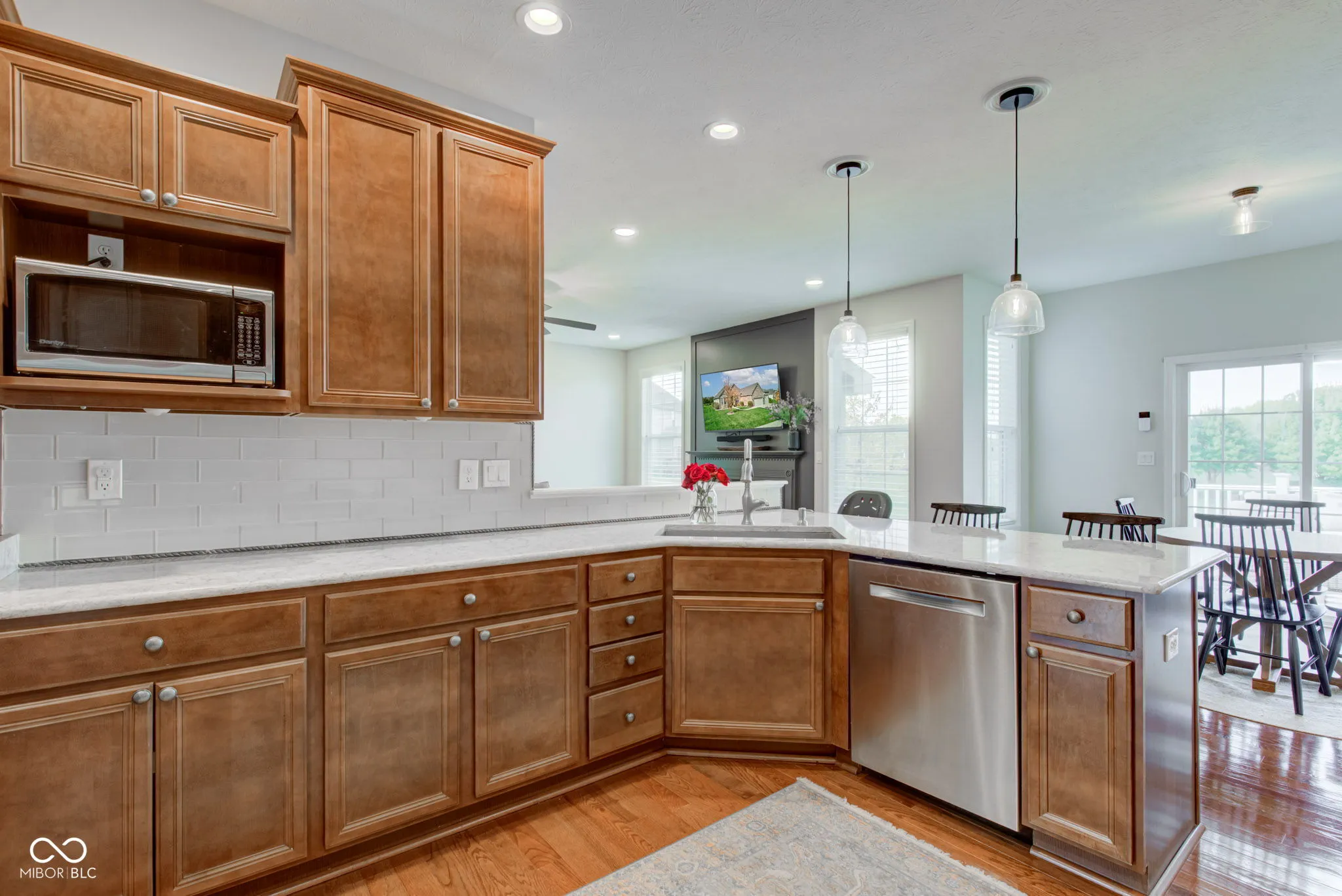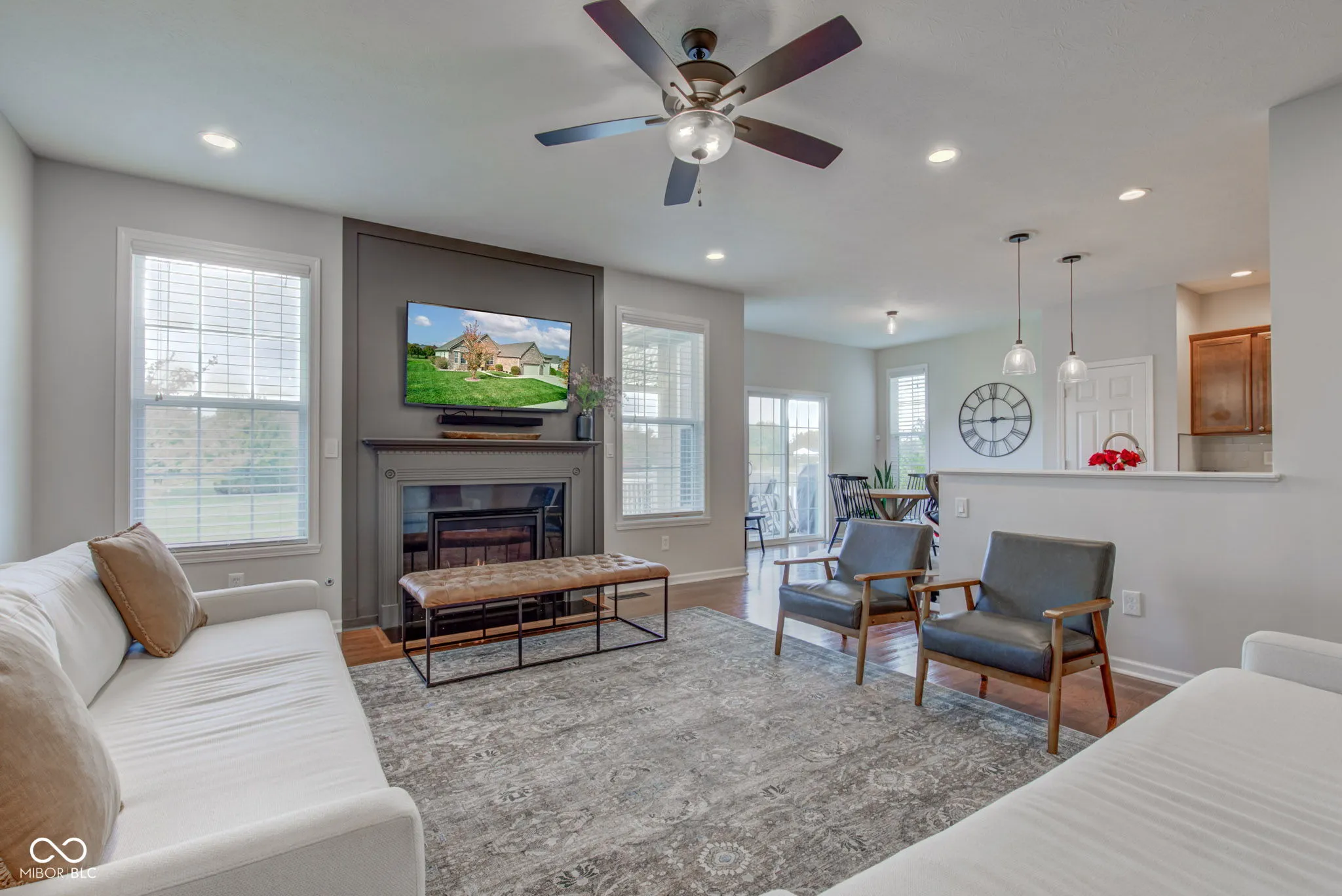 Discover unparalleled charm in this stunning 3-bedroom, 3.5-bath ranch in the highly desirable Essex of Noblesville! With over 3,500 square feet, this home features soaring raised ceilings, hardwood floors, and a gourmet kitchen with stainless steel appliances, quartz countertops, a gas cooktop, and dual ovens. Recent updates include fresh paint, new carpet, stylish light fixtures, a new water heater, and a sump pump with a WiFi alarm for peace of mind. The fully finished basement features 9′ ceilings, a spacious family room, a versatile rec room, full bathroom, and plenty of storage space, making it perfect for entertainment or extra living quarters. Escape outside to your private deck with a pergola, overlooking a tranquil pond-perfect for relaxation. The spacious 3-car garage is fully finished, offering ample storage, and the property comes with a full-yard irrigation system. The Essex community offers fantastic amenities, including a pool, basketball court, playground & social activities – all conveniently located near the Midland Trail and new developments at 32/Hazel Dell.This stunning home seamlessly combines modern elegance with cozy comfort, offering an exceptional place for you to call home!