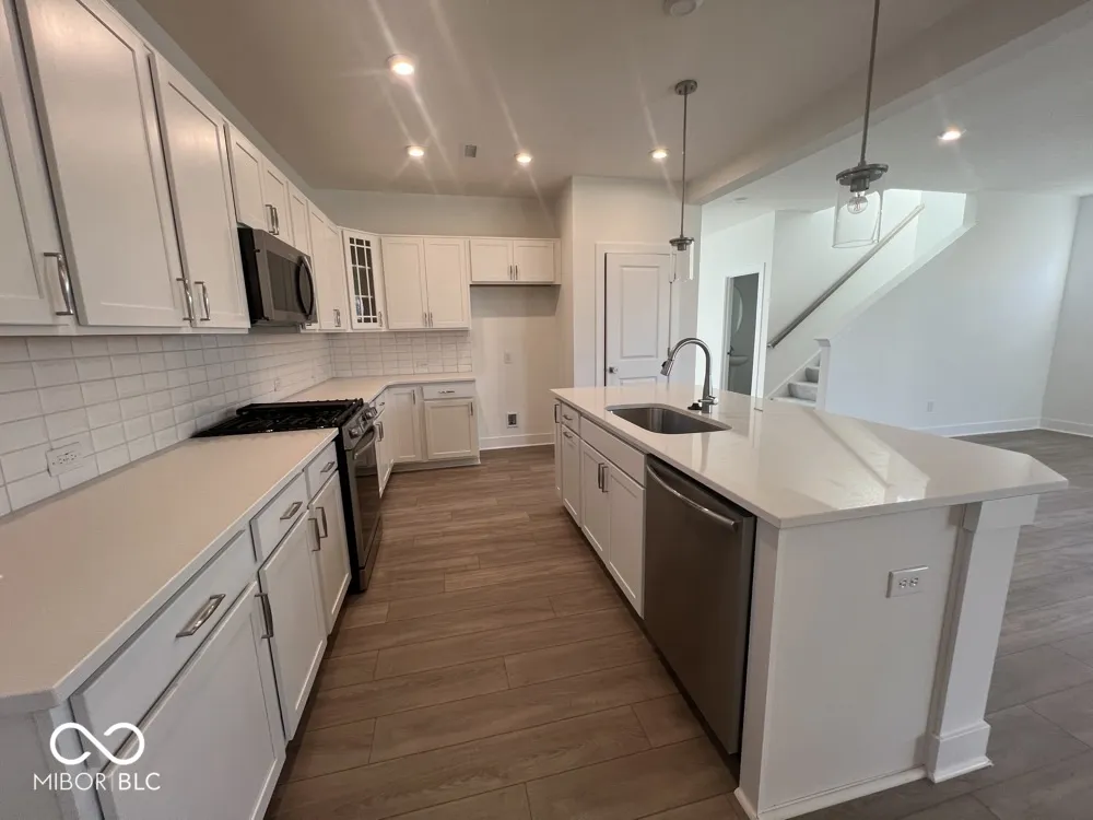 This corner home site from David Weekley Homes offers a serene view of the courtyard and spacious front and rear porches, perfect for relaxation. Inside, the kitchen features upgraded cabinets, a gas range, and elegant quartz countertops that extend to the baths. Luxury vinyl flooring flows throughout the main level, where the light-filled dining and family room create a welcoming atmosphere, complemented by a convenient powder bath. A study on the main level provides extra storage and functionality. Upstairs, you’ll find two cozy bedrooms along with a large owner’s retreat, complete with a tiled shower in the Owner’s Retreat and a handy laundry utility room. A backpack rack drop zone enhances practicality, making this home ideal for comfortable living. Conveniently located in Marilyn Woods near Hamilton Town Center and within the Hamilton Southeastern school district, this home is perfect for homeowners seeking both comfort and convenience!