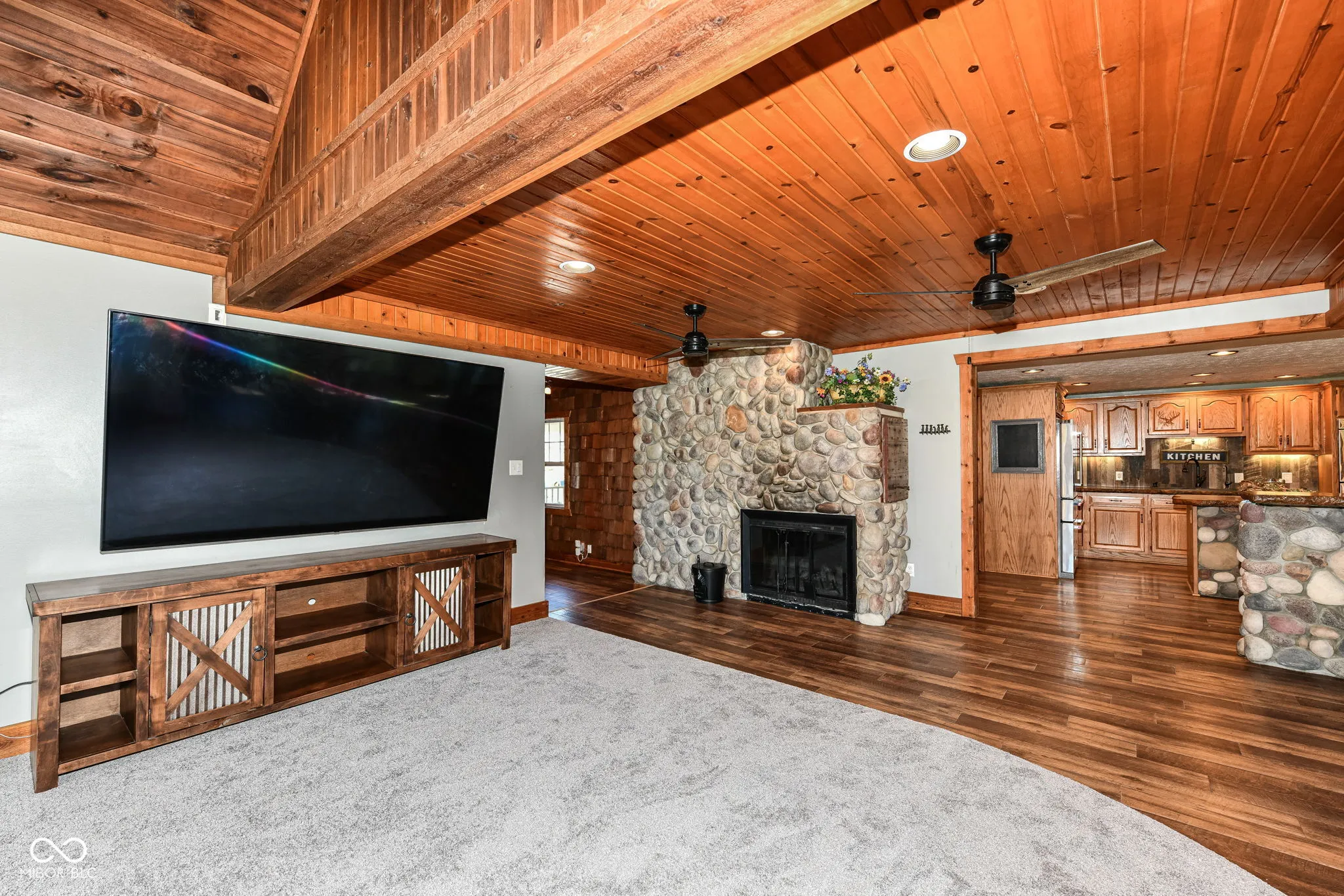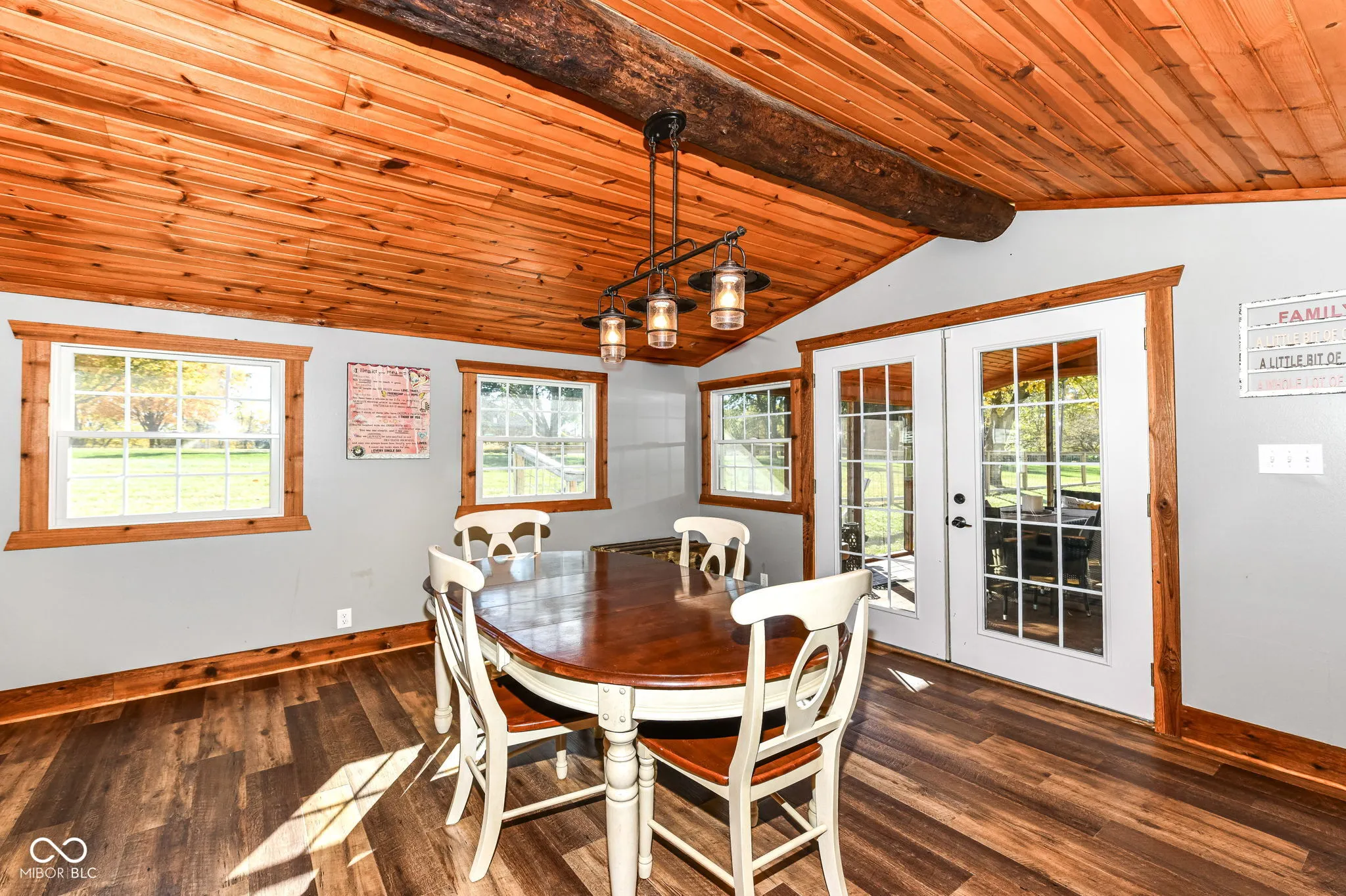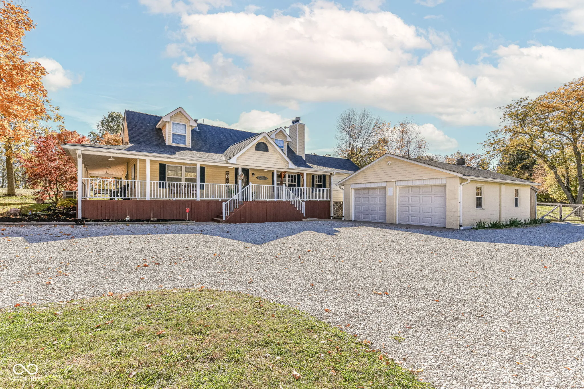 Welcome to this breathtaking farmhouse retreat, where comfort meets timeless style! Spanning over 4,000 sq. ft. on 3+ acres in the desirable Pendleton School District, this 2-story, 3-bedroom, 3-bath home invites you in with a charming wrap-around porch and is filled with thoughtful upgrades. Step inside to find brand-new flooring throughout most of the house, creating a fresh and inviting feel. The gourmet kitchen boasts newer appliances, custom concrete countertops, a large island, and a spacious walk-in pantry, seamlessly flowing into the open-concept dining and family room-perfect for gatherings around one of the two cozy fireplaces. The luxurious master suite is a true sanctuary, featuring rustic finishes, a massive walk-in closet with a laundry area, and a beautifully appointed ensuite bath with built in Bluetooth stereo. Recent upgrades include a brand-new furnace and AC, a state-of-the-art water filtration system, and a newly installed fence. Upstairs, an additional laundry room offers convenience for a busy lifestyle. At the back of the lot sits the 40×72 pole barn providing ample space for hobbies or storage with working plumbing and its own internet and HVAC this could also double as future barndominium. This stunning home offers the perfect blend of modern amenities and rustic charm-don’t miss your chance to call it yours!