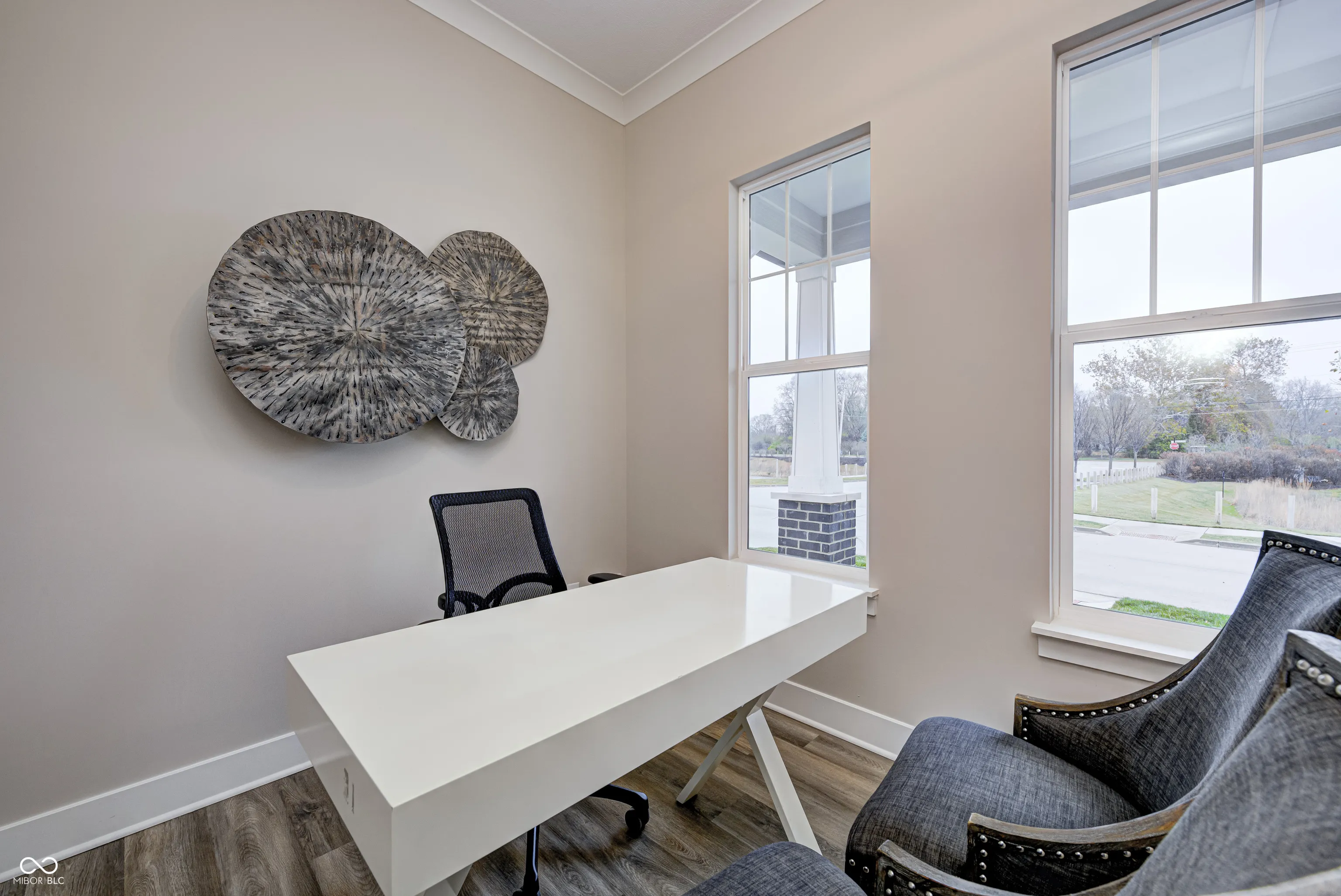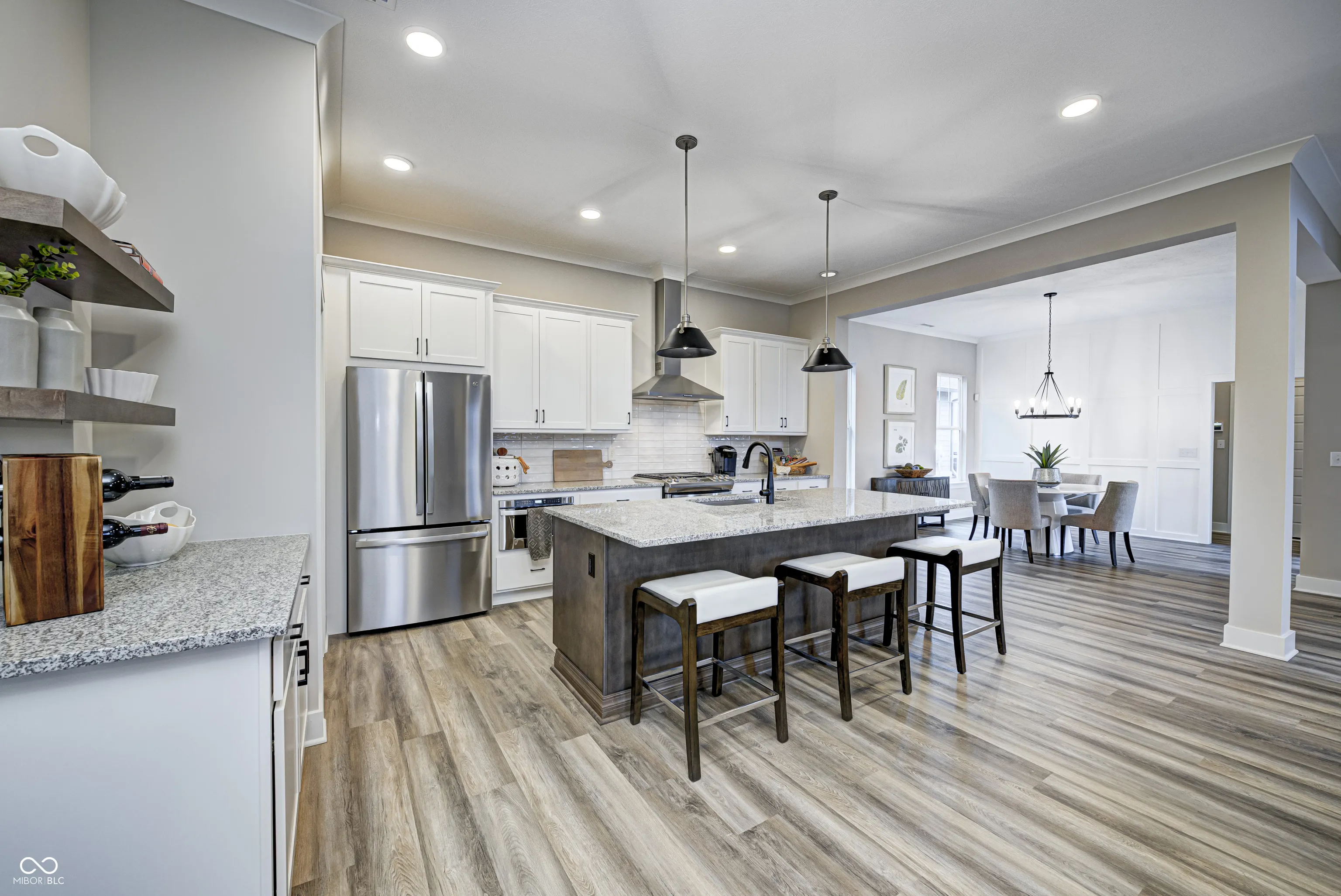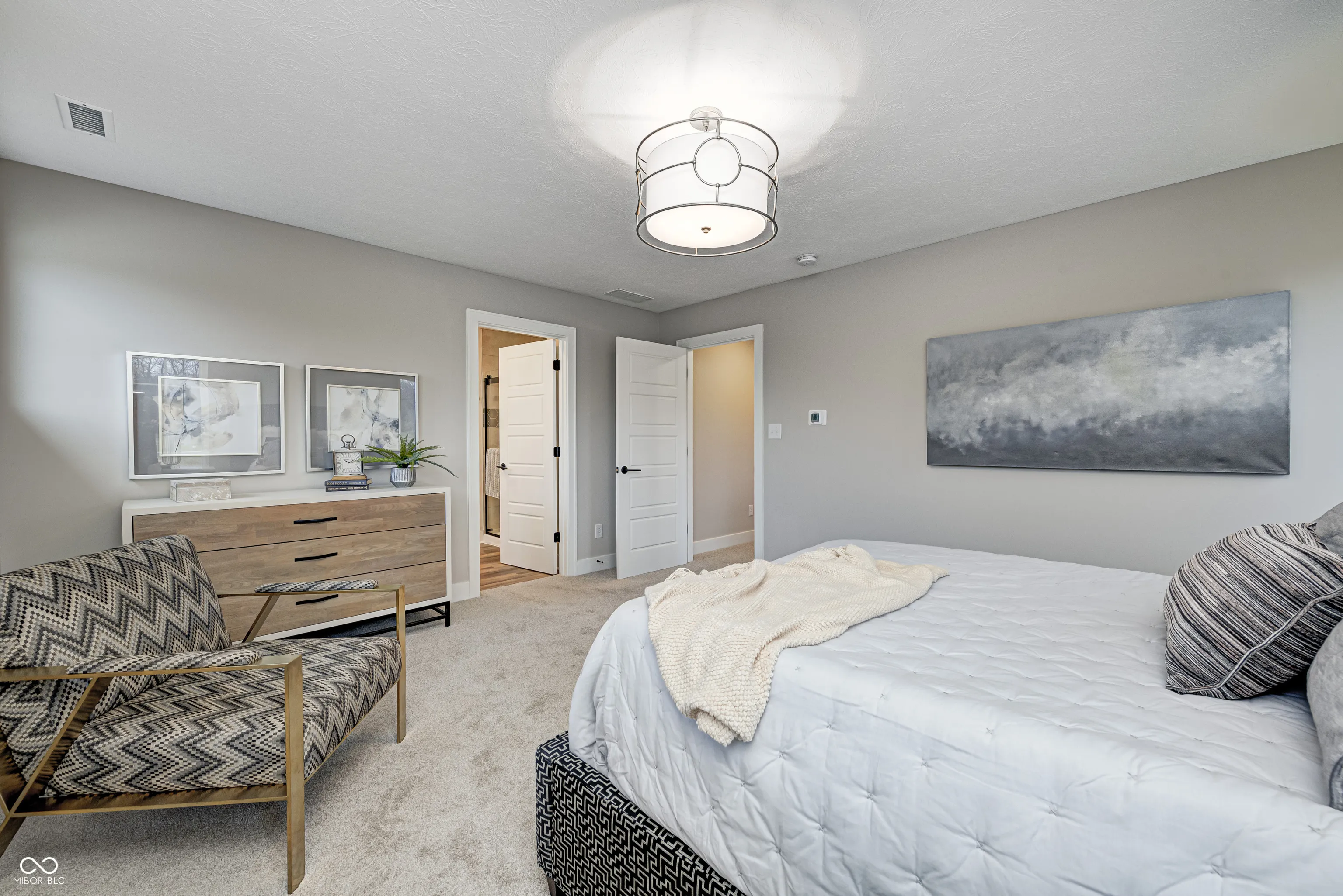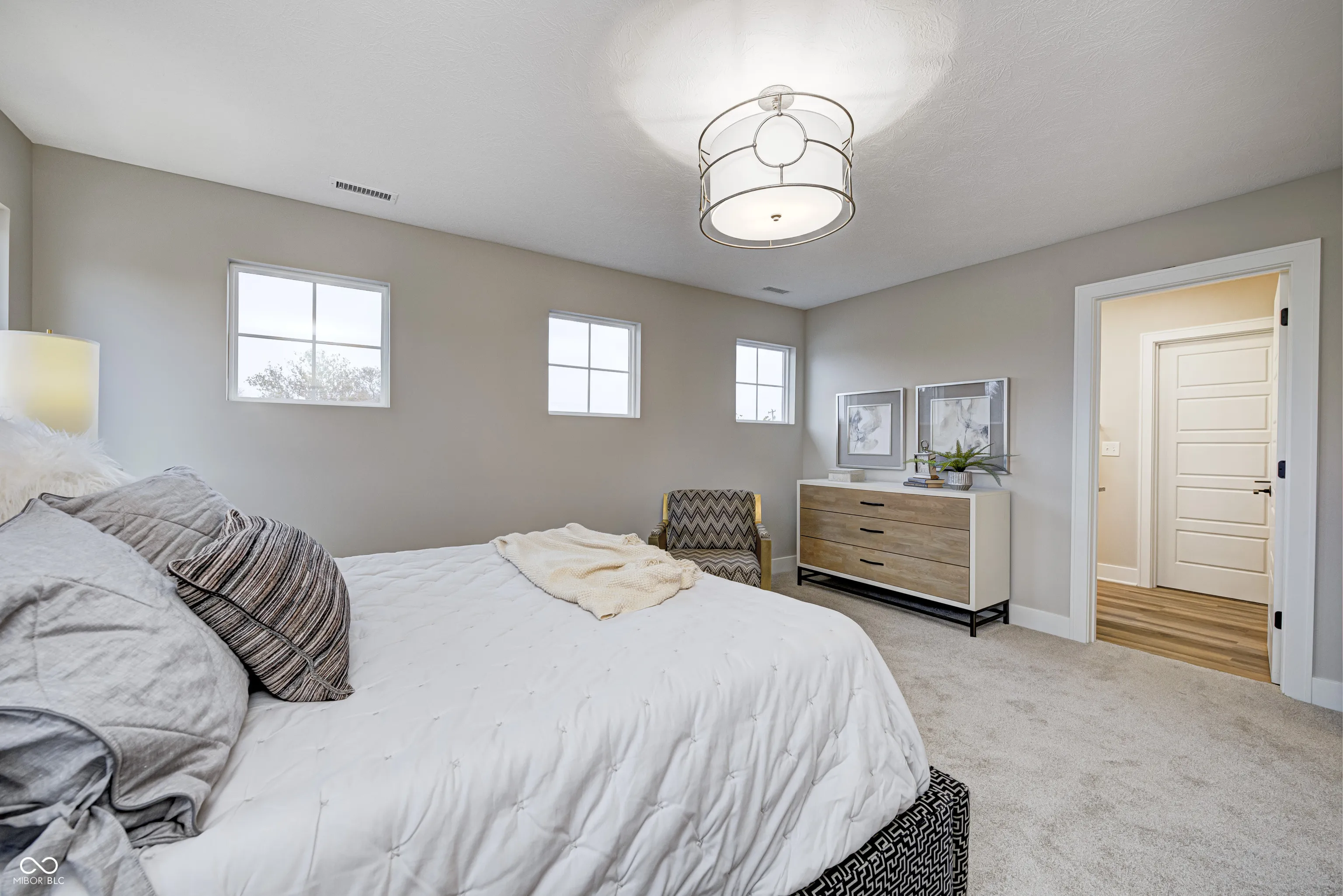 MODEL HOME FOR SALE – The Tulip, now available! This Craftsman home, nestled in the heart of Sunrise on the Monon, is an inviting 3-bedroom, 2.5-bathroom residence offering a perfect blend of traditional charm and modern comfort. The 10′ ceilings paired with an abundance of windows on the main level allow for tons of natural light and an open feel. The oversized pocket office provides a dedicated workspace with a tranquil pond view off the front porch. An inviting great room with cozy gas fireplace opens up to a well appointed kitchen area. Cooking enthusiasts will appreciate the oversized granite island, tile backsplash, stainless steel appliances, painted cabinets, beverage center with floating shelves and walk-in corner pantry with custom shelving. Unwind on the large 30×8 covered front porch, or enjoy al fresco dining under the covered outdoor living space – complete with built-in outdoor speakers. Upstairs, the loft area offers a versatile second living space, ideal for a family room, game room, or flex space. Additionally, you’ll find a large upper level laundry room as well as all three bedrooms, each with generous walk-in closets. The primary suite showcases double sinks with ample under-sink storage and a generous tiled-to-the-ceiling shower, plus plenty of room for oversized furniture. Professionally landscaped yard and irrigation system. The finished 2-car alley-load garage provides ample storage space for all your needs. Sunrise on the Monon is an established community with in a central location with a direct connection to the Monon Trail and easy access to Keystone, US-31, and I-465. Also included with the purchase of this home: a complimentary 1-year household membership to the Monon Community Center.