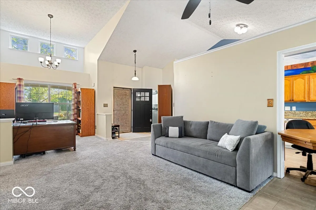 THIS IT IT!!! Welcome Home to your 3 Bedroom, 2 Full Bath Home w/ sprawling Great Room and Vaulted Ceilings, TONS of natural light and Gas Fireplace! Kitchen w/ Tons of Counter & Cabinet Space! Primary Bedroom is HUGE! Large Bath & Double Closets! Laundry Room off of Garage. Large Screened-in Porch and Covered front Porch are perfect for those Indiana Nights! Large Backyard w/ Mini Barn & room for so much more! Roof is 2 years new. Furnace, AC, and Water Heater are newer as well! Award winning schools, and a short drive to wonderful dining/shopping/entertainment. Schedule your showing today, and let’s get you home before the holidays!