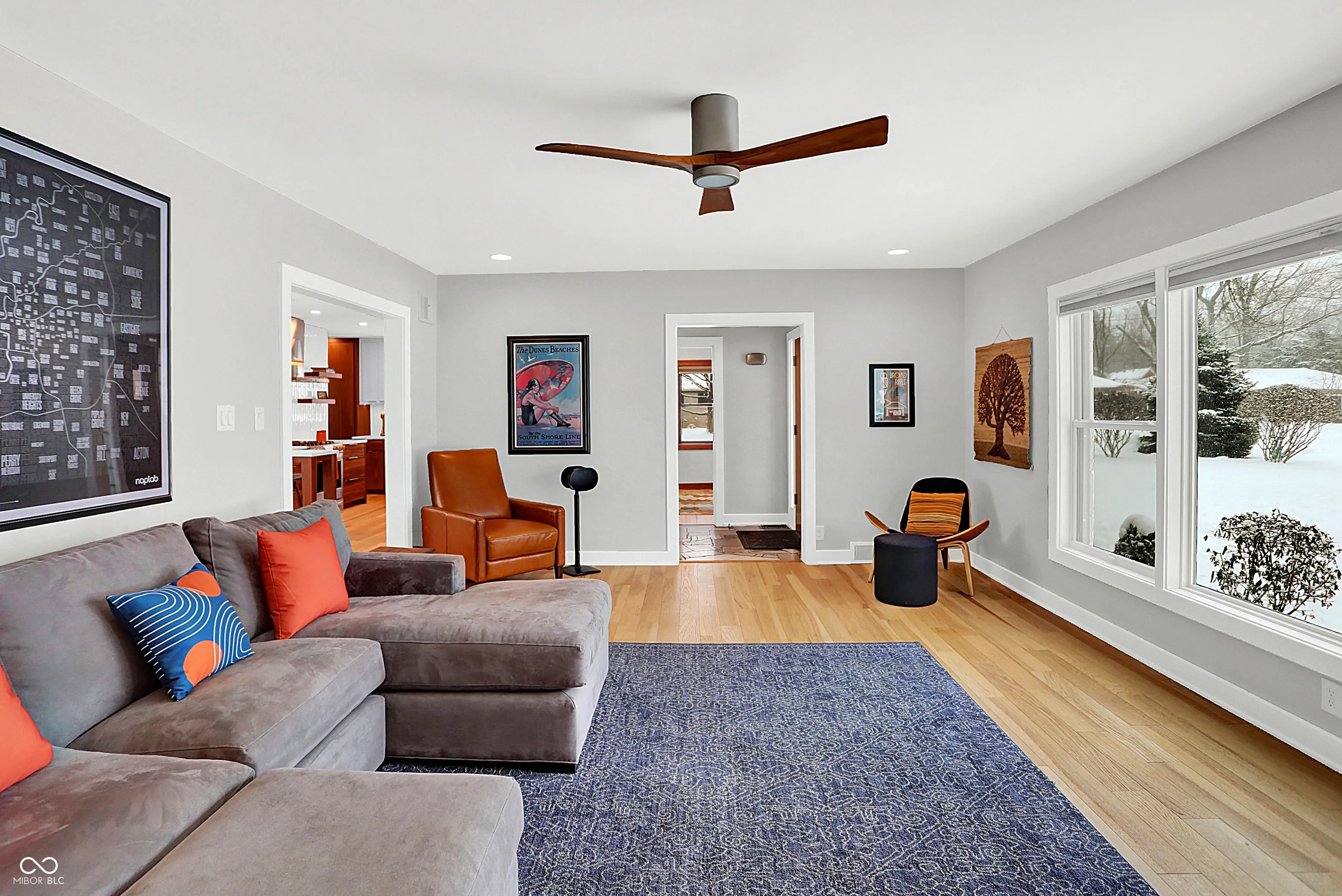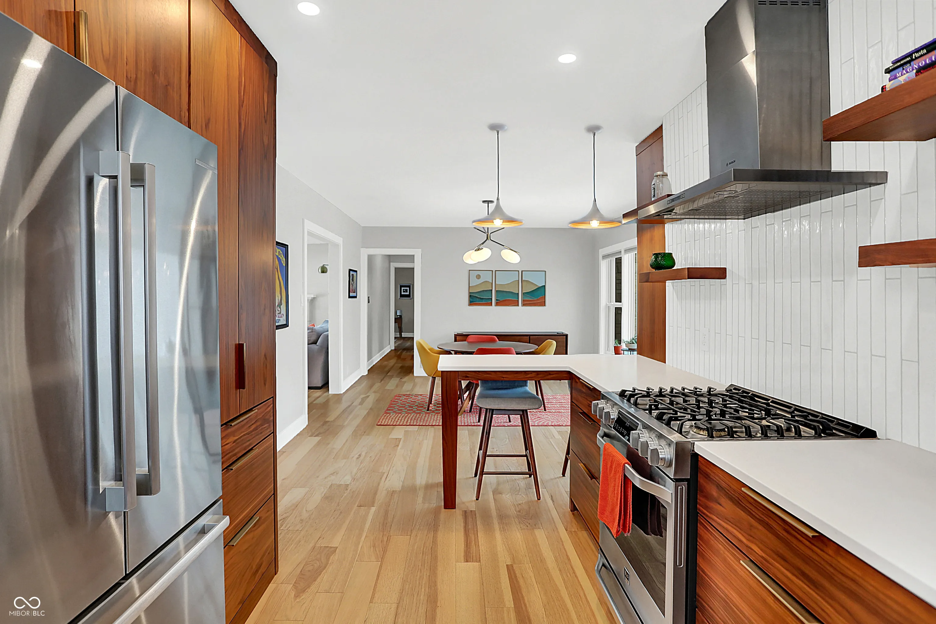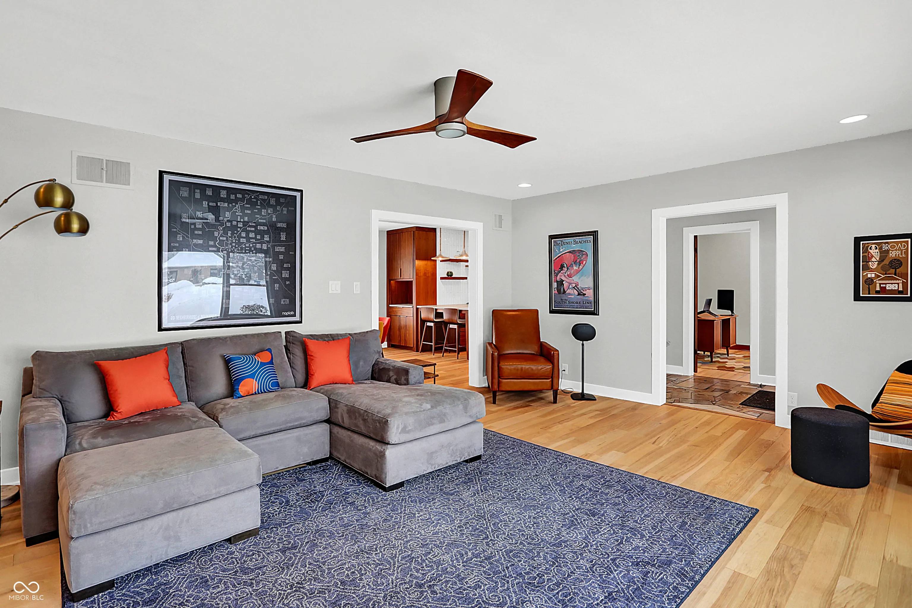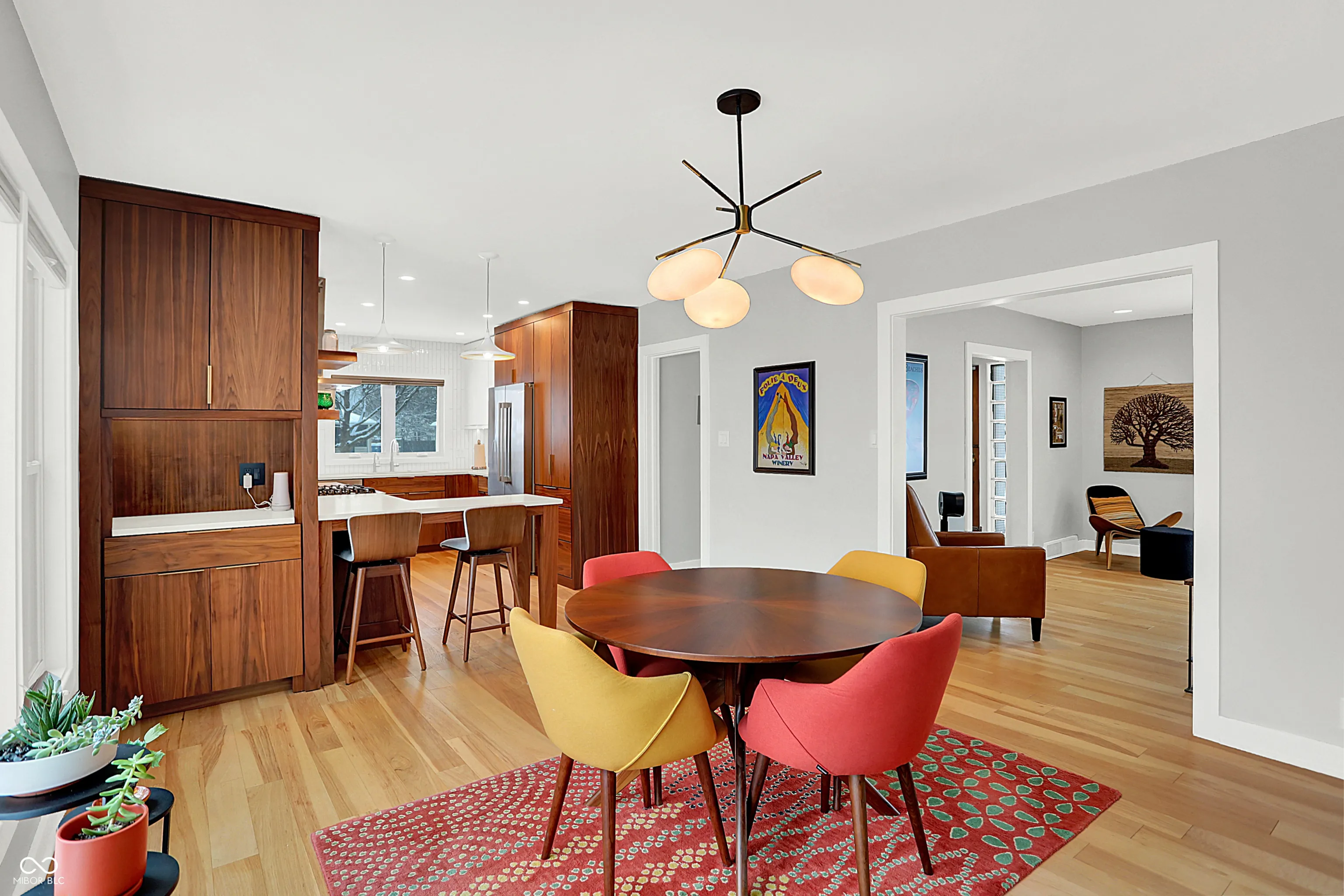 This meticulously updated 3 bedroom, 2.5 Bath home pays tribute to its Mid-Century Modern roots with extensive improvements since 2012, offering modern comfort and convenience. Notable upgrades include HVAC system, kitchen and bath remodels, fresh paint, new flooring, and updated electrical wiring. The basement has been waterproofed with a sump pump, while exterior enhancements include a new roof, gutters, privacy fence, and professional landscaping with a French drain system. Energy efficiency is enhanced with a whole-house humidifier/dehumidifier, water softener, reverse osmosis, and air scrubbers. Enjoy peace of mind with security cameras, smart locks, and a new garage door system. Walking distance to the Monon, Canterbury Park, the 54th Street Shops, and downtown Broad Ripple!