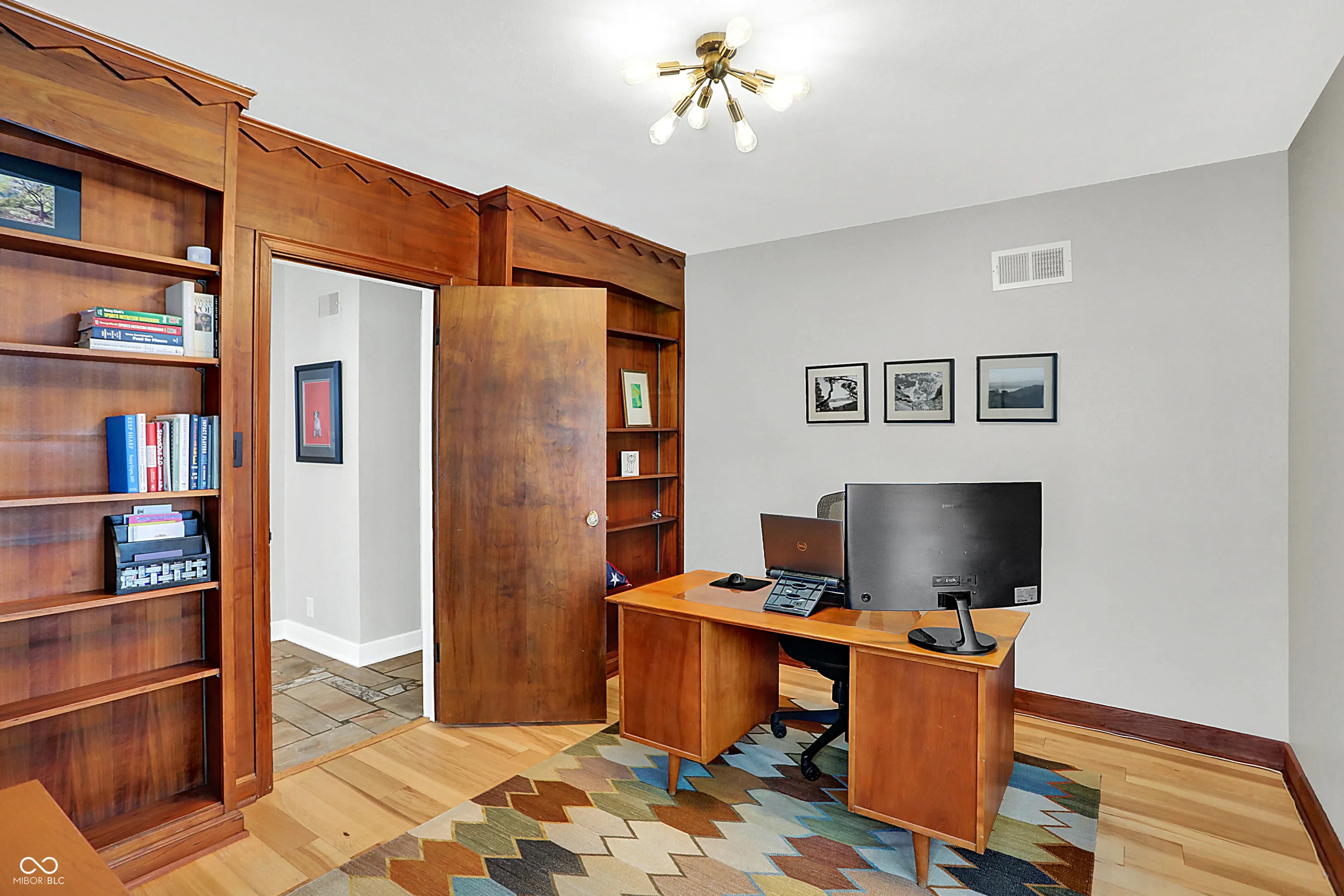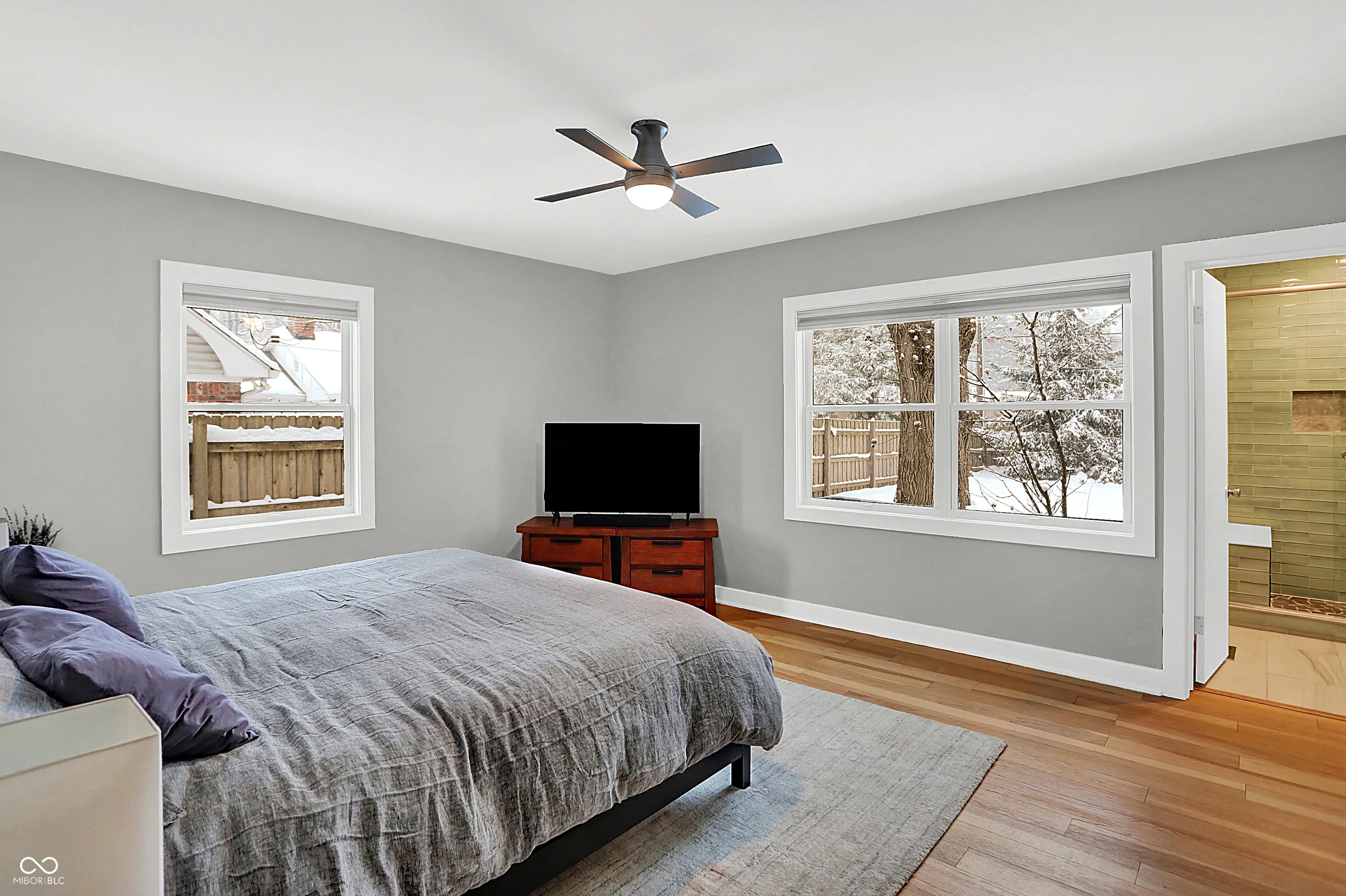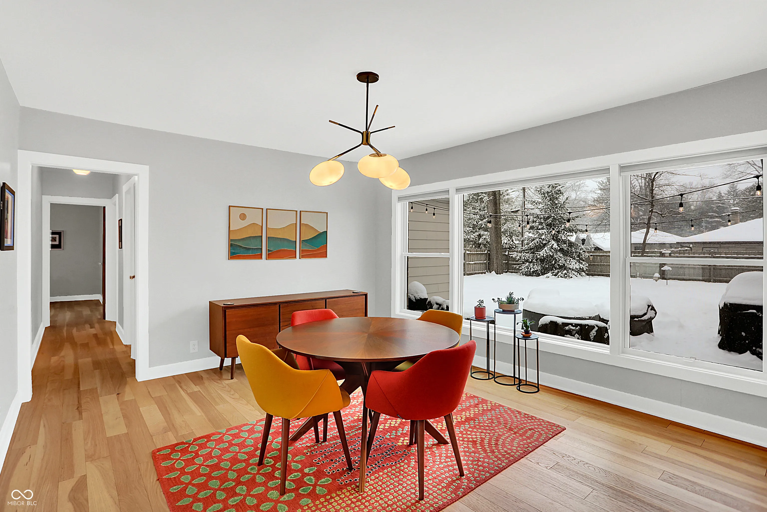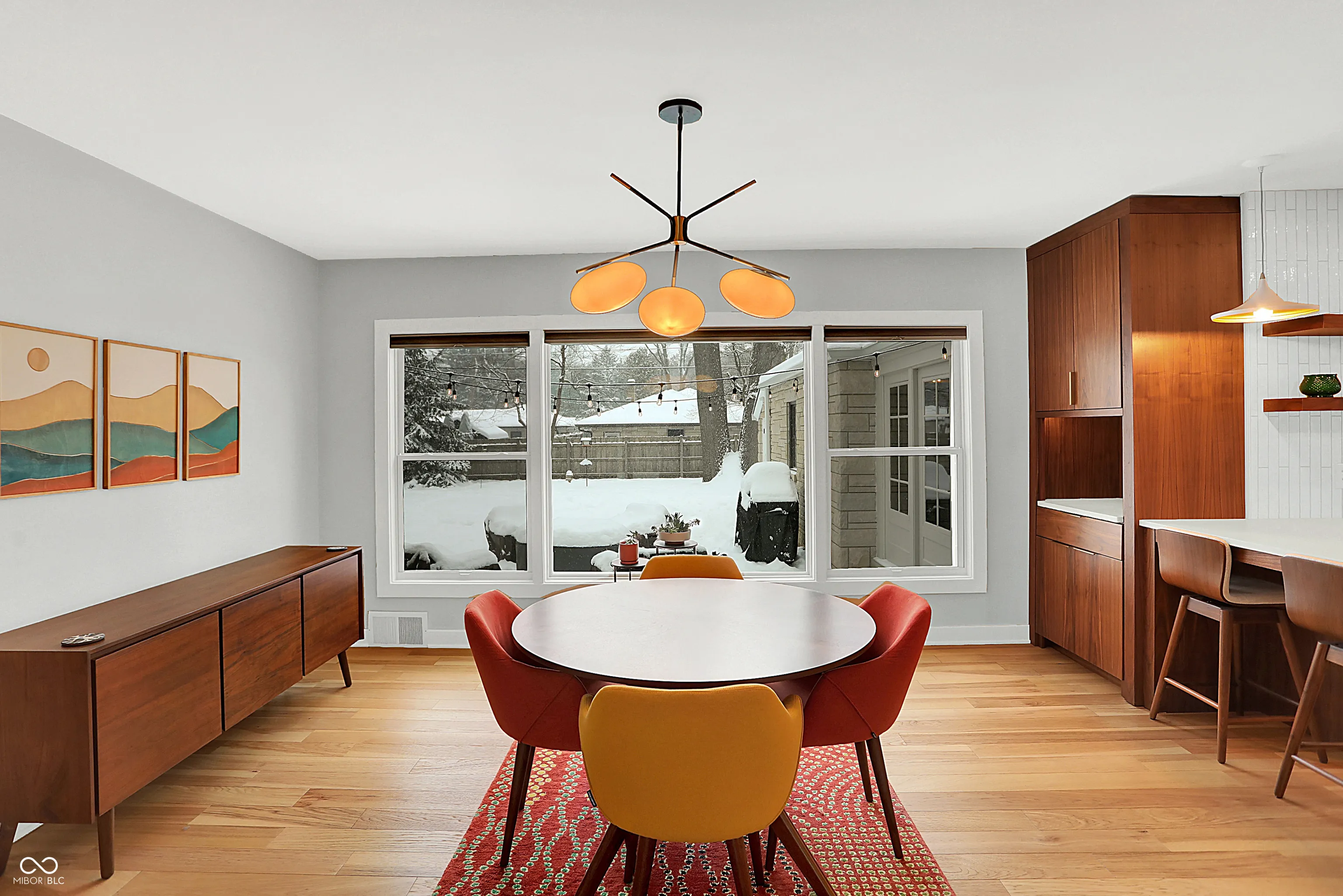 This meticulously updated 3 bedroom, 2.5 Bath home pays tribute to its Mid-Century Modern roots with extensive improvements since 2012, offering modern comfort and convenience. Notable upgrades include HVAC system, kitchen and bath remodels, fresh paint, new flooring, and updated electrical wiring. The basement has been waterproofed with a sump pump, while exterior enhancements include a new roof, gutters, privacy fence, and professional landscaping with a French drain system. Energy efficiency is enhanced with a whole-house humidifier/dehumidifier, water softener, reverse osmosis, and air scrubbers. Enjoy peace of mind with security cameras, smart locks, and a new garage door system. Walking distance to the Monon, Canterbury Park, the 54th Street Shops, and downtown Broad Ripple!