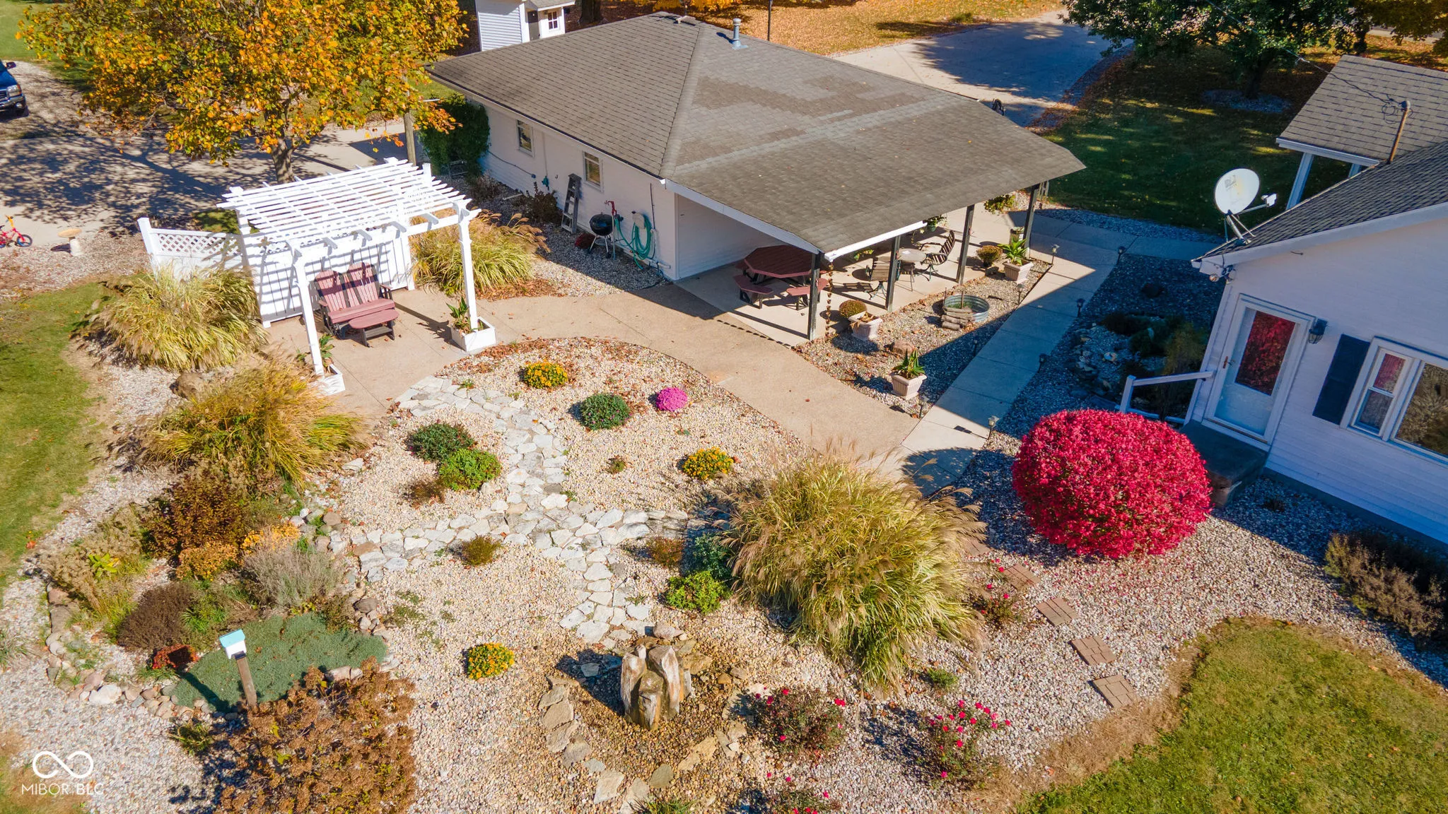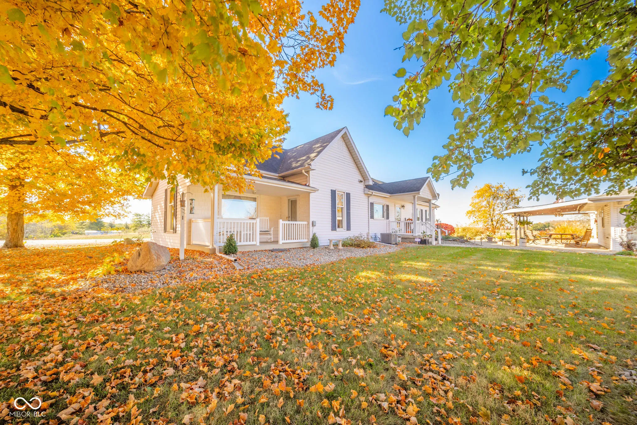 Welcome to your quiet country paradise! This charming 3-bedroom, 2-bathroom home with an office sits on 2.5 acres of peaceful landscape, with beautiful views from every window and an abundance of natural light flowing through each room. The kitchen is equipped with sleek stainless steel appliances, adding a modern touch to this inviting space. Inside, glass doors open into the formal living room/parlor, enhancing the spacious feel and adding a touch of elegance. New HVAC system in home installed just 3 years ago! The outdoor area is equally inviting, featuring a calming garden rock waterfall and nearby pergola-a perfect spot to relax to the sounds of nature and enjoy the view. A detached oversized heated and cooled 2-car garage with a full kitchen and a covered porch offers excellent entertaining possibilities. Additionally, the property includes a 40×64 pole barn with a 16×40 heated and cooled shop, adding endless versatility to this exceptional retreat, filled with cherished memories and ready for a new family to create their own. While offering a tranquil setting, the home also provides easy access to shopping, dining, and entertainment.