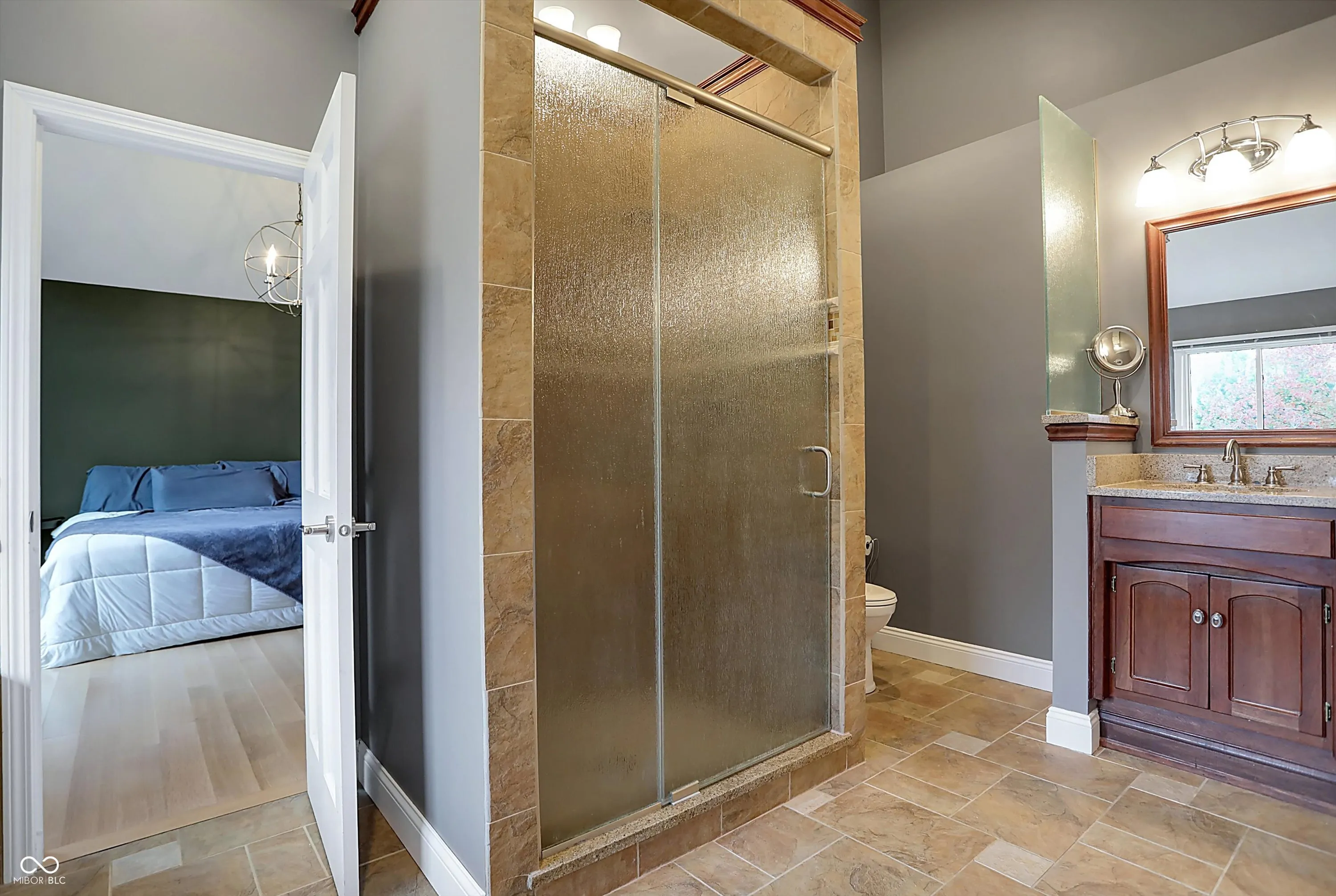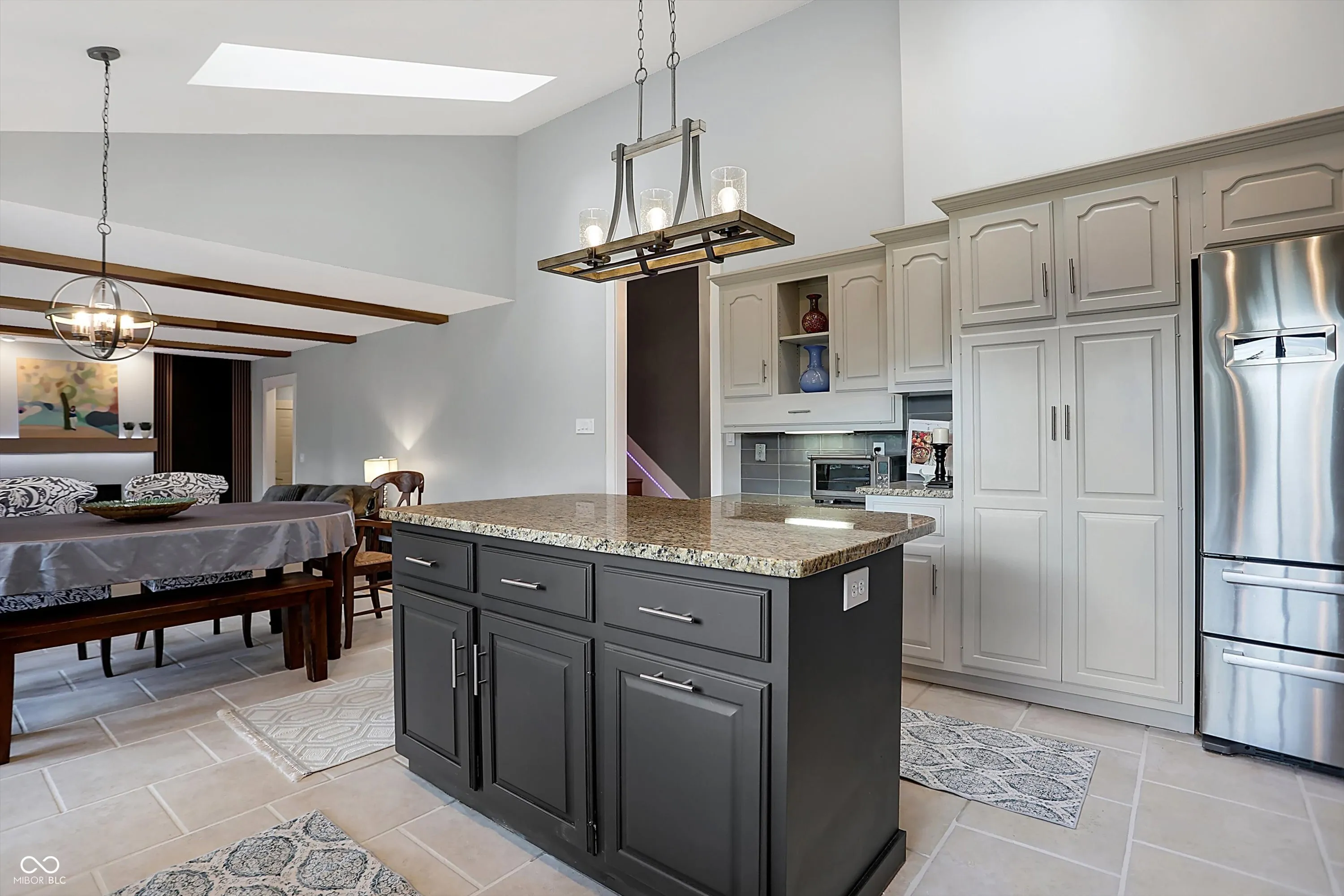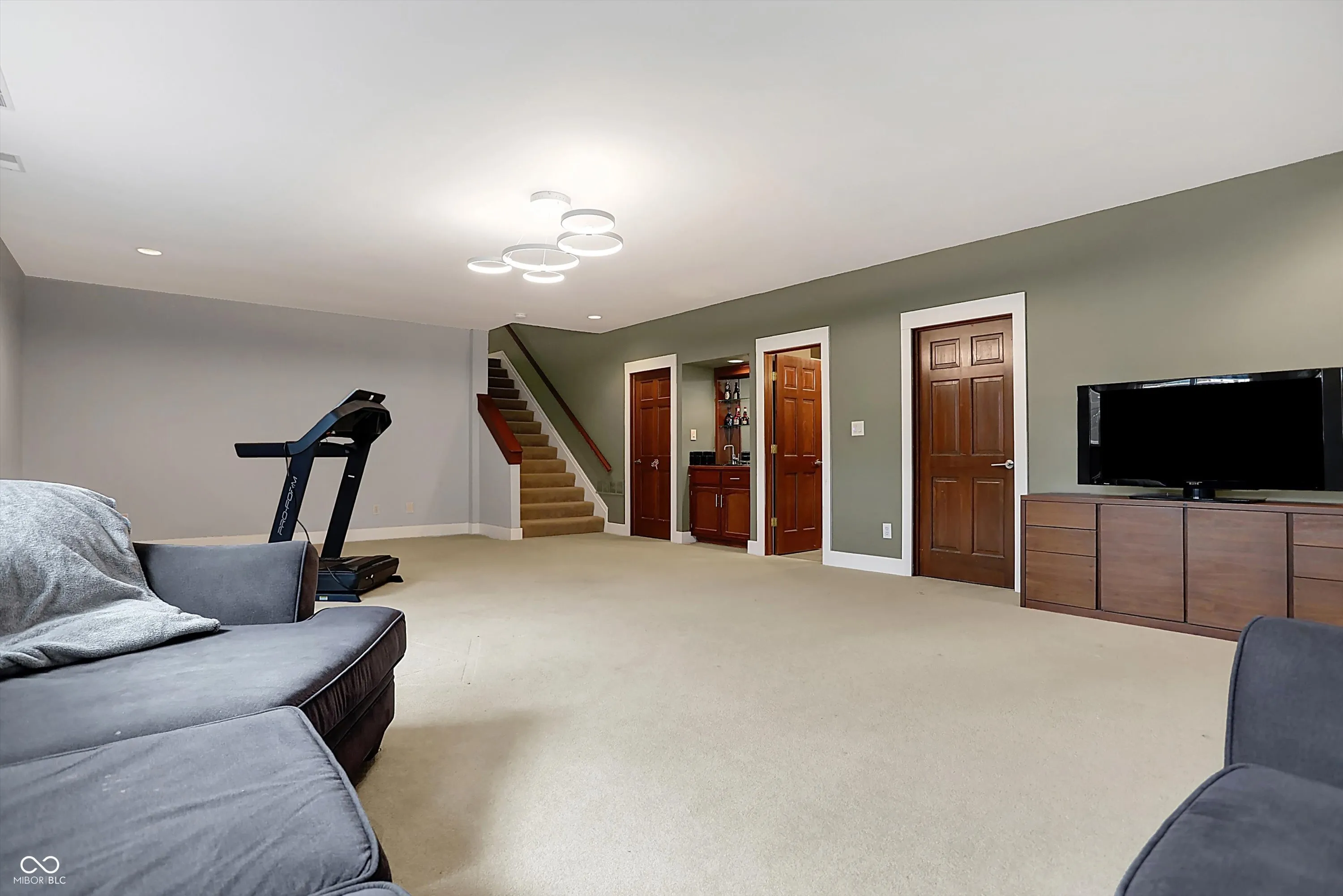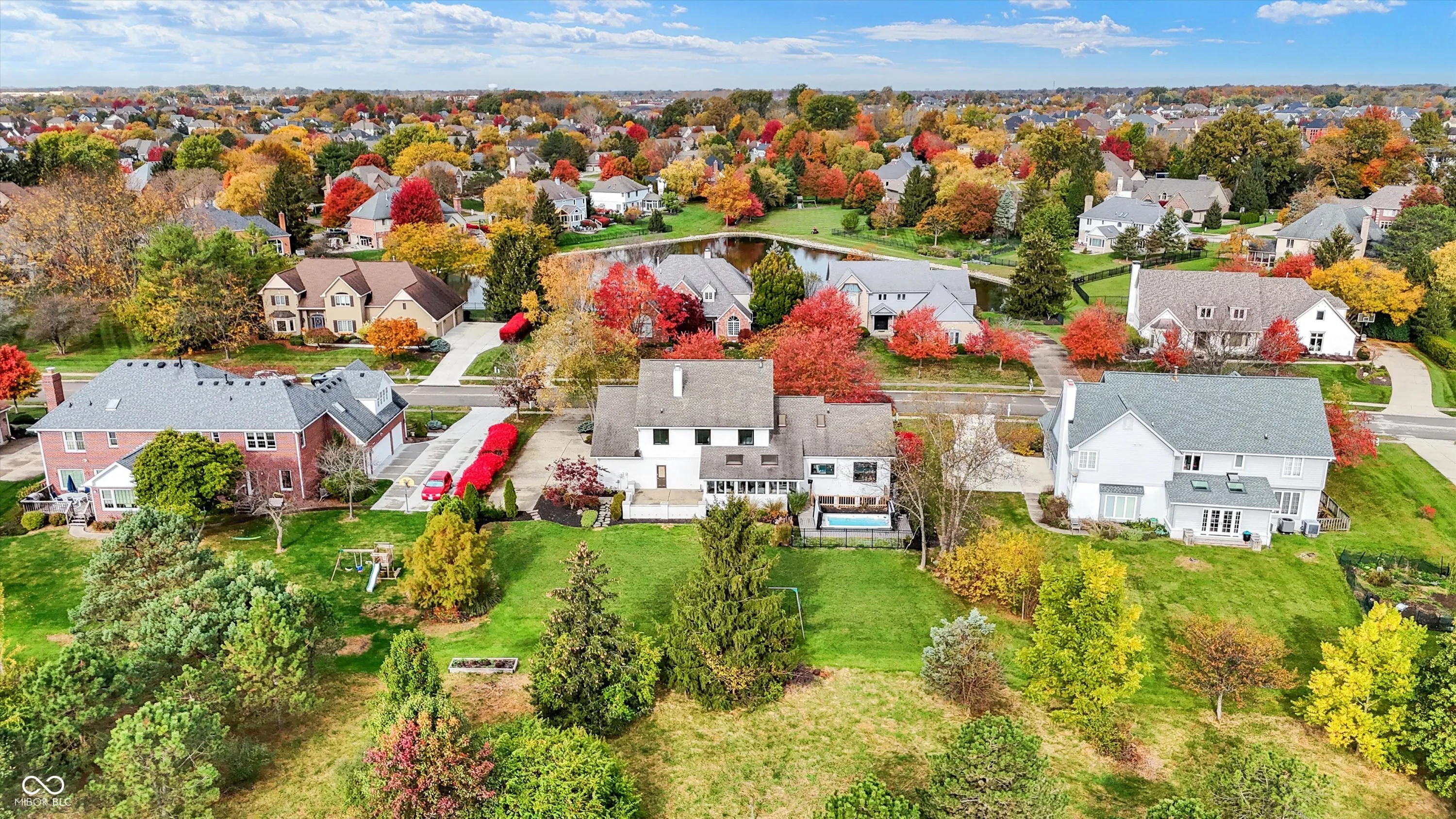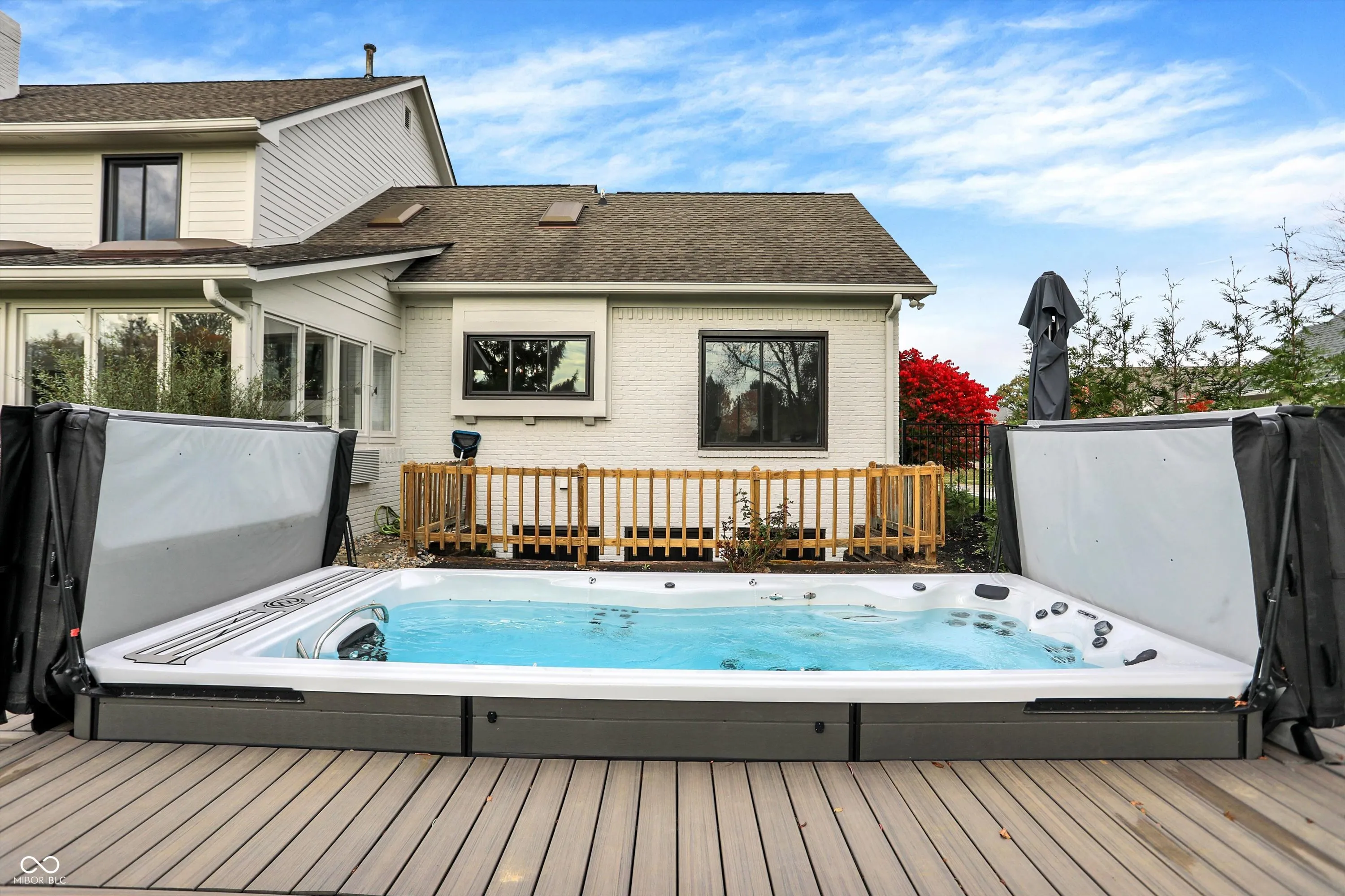 This spacious 5-bedroom home in the desirable Claridge Farms neighborhood in Carmel welcomes you with a grand entrance. Step into a versatile living room, ideal as an office, which flows into a formal dining room, perfect for entertaining. The eat-in kitchen has been updated with new appliances, fresh paint, a stylish backsplash, and modern lighting, creating a fresh, welcoming space. The great room boasts a new fireplace with a stunning waterfall granite hearth, a cantilevered mantel for stability, a single-hinge fireplace door, and elegant floating shelves, all contributing to a cozy yet upscale ambiance. The main floor also includes a guest suite and a sunroom, equipped with heating and air conditioning, for year-round enjoyment. Upstairs, four additional bedrooms await, including the owner’s suite, which offers a luxurious bathroom with a soaking tub, tiled shower, double sinks, and a spacious walk-in closet with washer/dryer hookups for added convenience. The finished lower level provides extra space for gatherings, complete with a wet bar and half bath. Outdoors, relax on the open patio or take a dip in the MasterSpa H2X 18D swim spa, all while enjoying the privacy of the backyard. A 3-car side-load garage and extended driveway complete this exceptional home.
