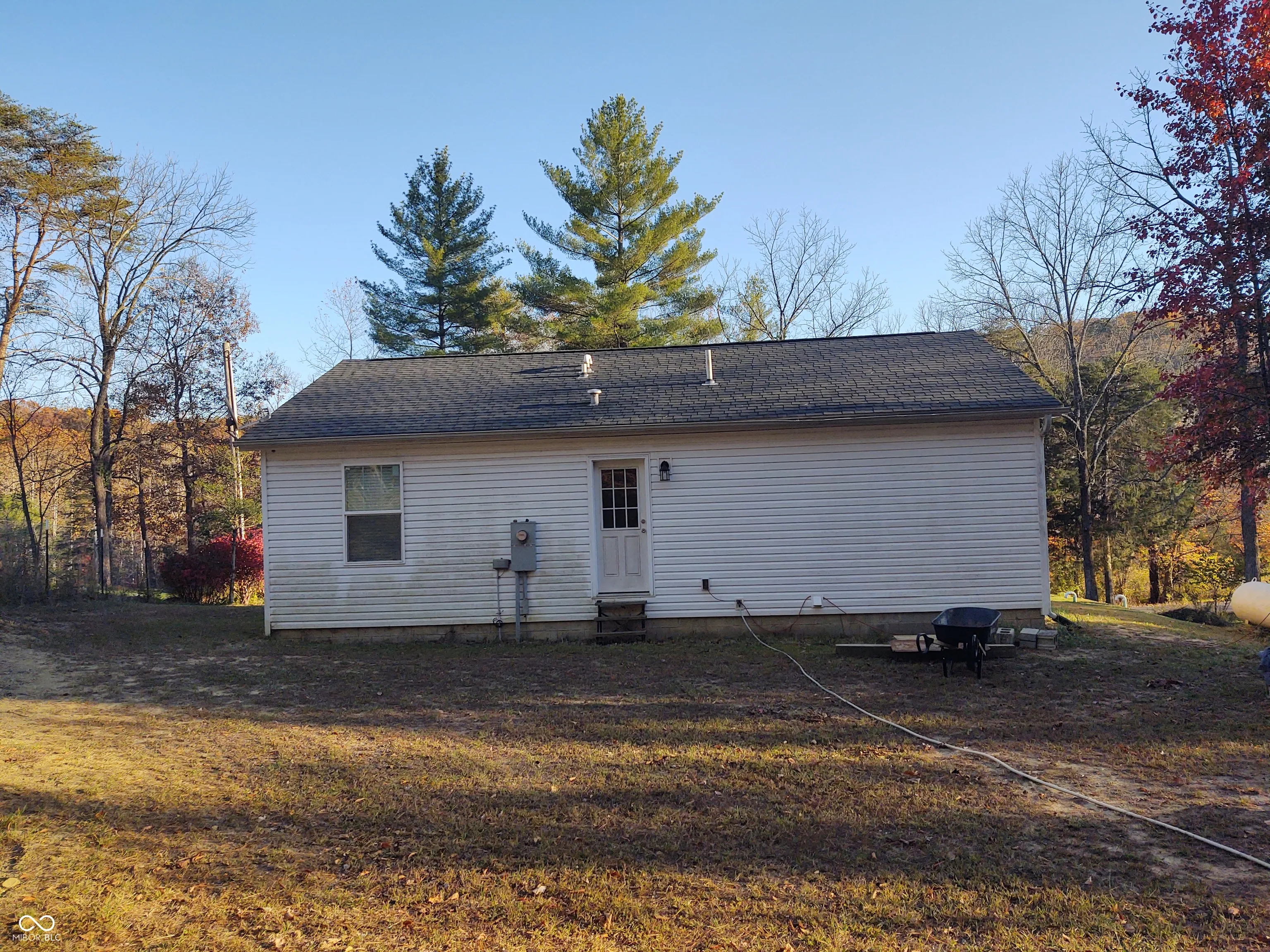 Located on 1 acre in the scenic Crooked Creek area of Brown County, just minutes from the Lake Monroe boat ramp and recreation area, this cozy home features 2 bedrooms with generous closets and a full bathroom. The kitchen/dining area comes equipped with new appliances, including a freestanding gas range, refrigerator, dishwasher, and microwave. Adjoining the kitchen is a comfortable family room, along with a utility room that boasts a new washer, dryer, and hot water heater. The property also features a paved driveway, along with a mini barn and shed, providing amble storage for your tools and outdoor gear. Come home to enjoy your covered front porch taking in the hillside views of rural Brown County.