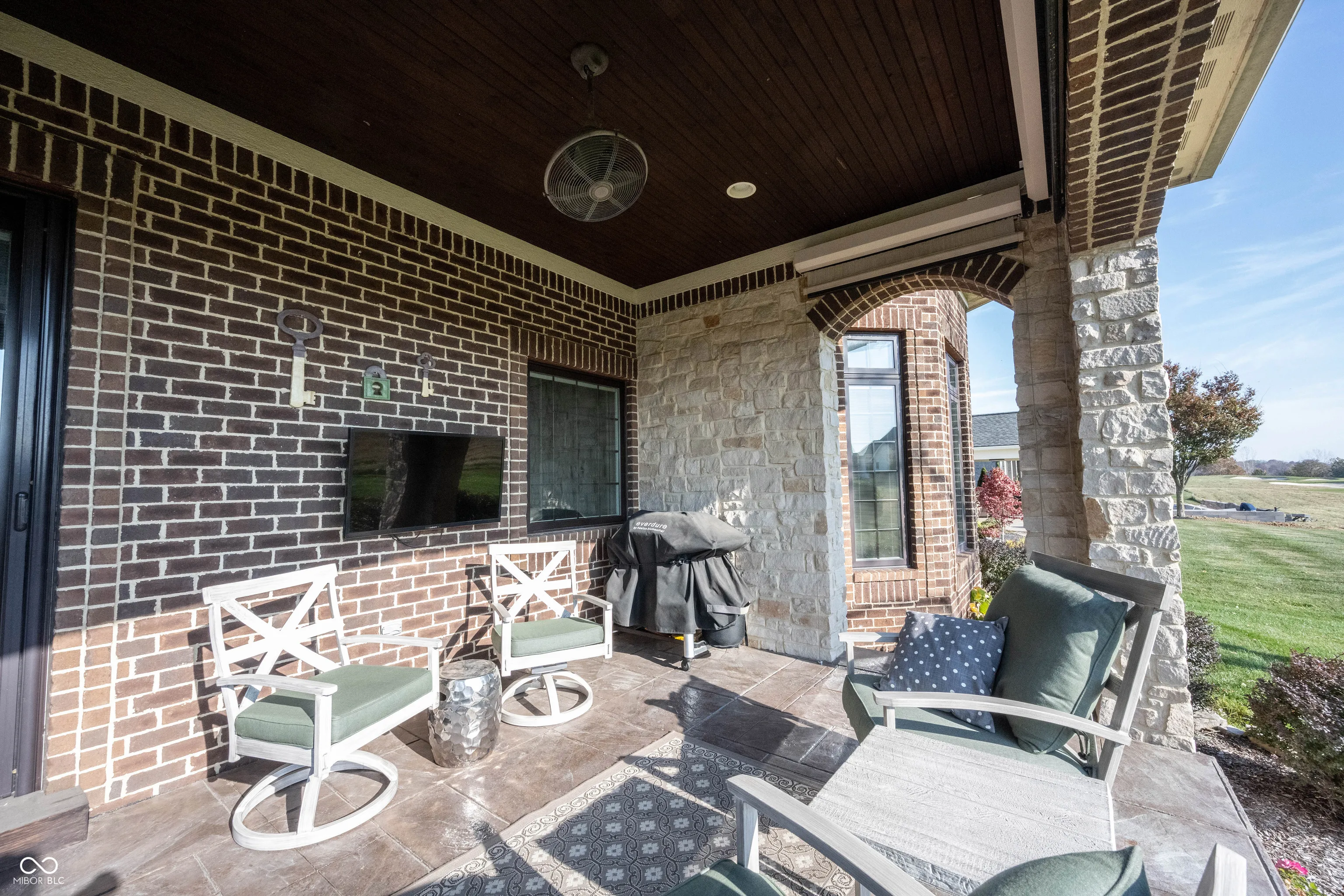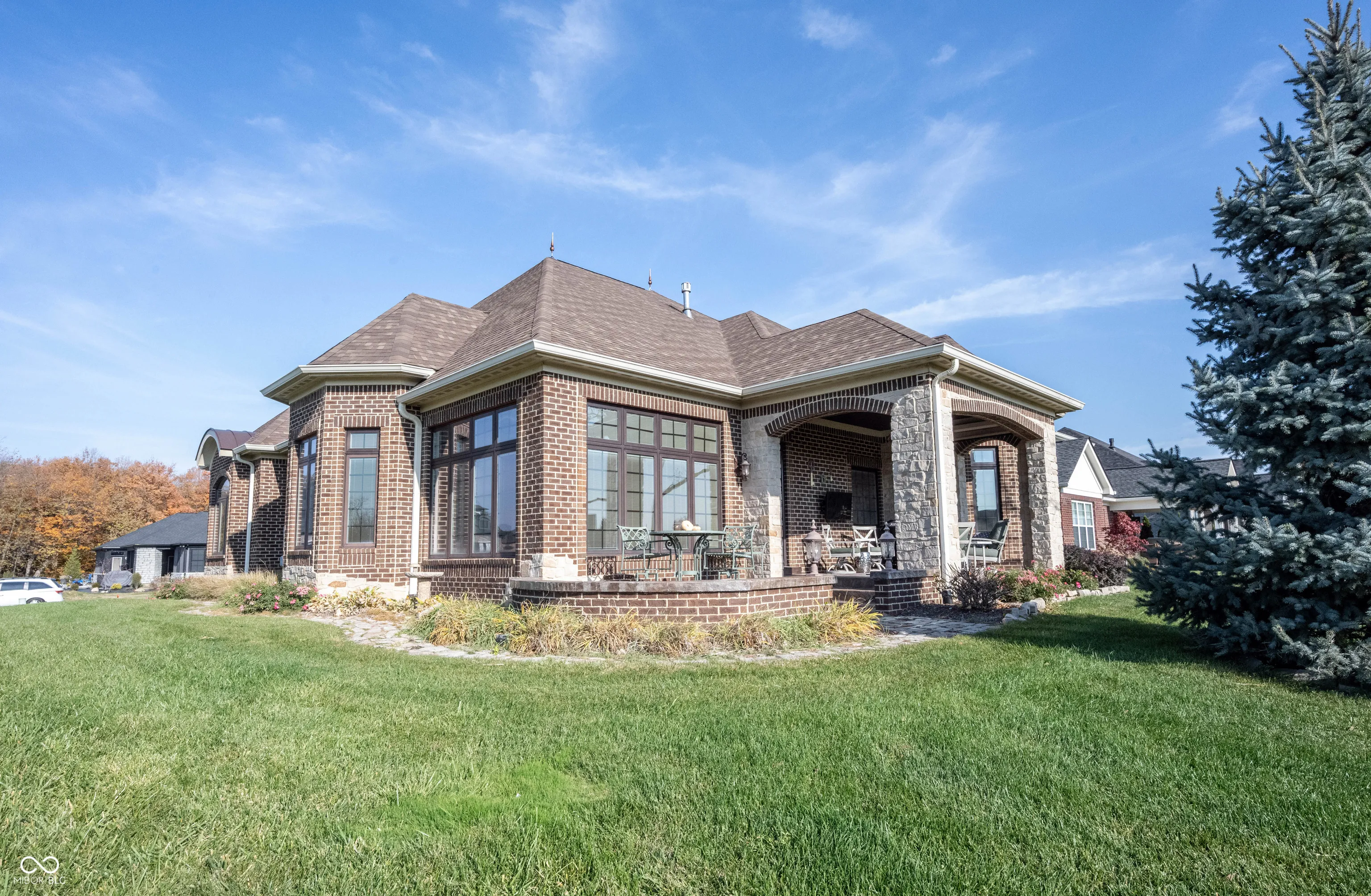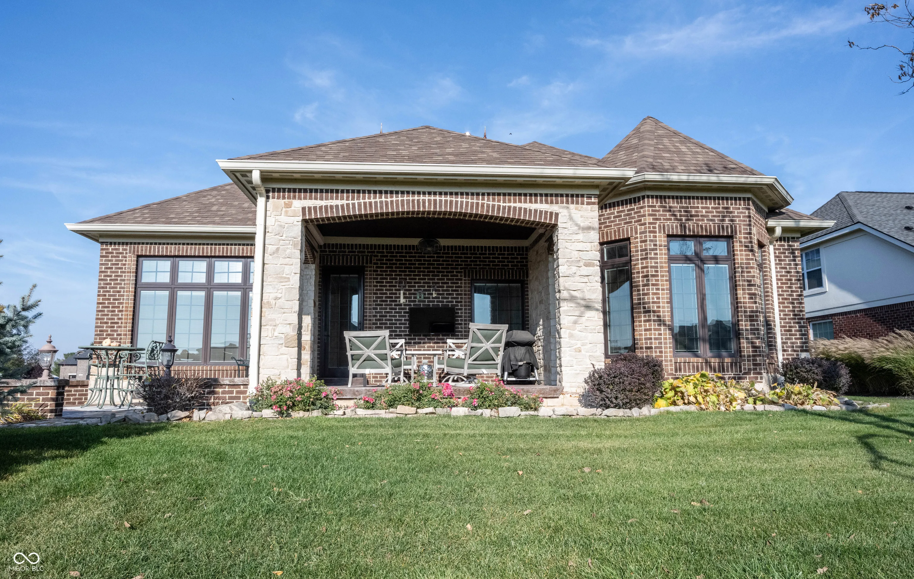 A once in a lifetime opportunity to live in Sagamore, on the 15th hole, Yancey Built Custom Home on a DOUBLE Lot! Welcome home to this ALL brick & stone stately masterpiece of a home! Open the door to gorgeous hardwood floors running seamlessly through the main living area. A study tucked off the foyer that is loaded w/trim, from crown to wainscoting, to the coffered ceiling it’s a work of art w/arched transom windows beaming w/light! Step into the heart of the home… Kitchen w/towering high-end dovetailed/solid construction cabinets to the ceiling, blt-in subzero fridge & dishwasher discrete yet giving this room an elegant feel not industrial like a typical kitchen! Induction cooktop, gorgeous granite counters, a breakfast bar contrasts from the stunning gray cabinets in a rich wood finish. Greatroom w/fireplace surrounded w/richly stained blt-ins towering to the clng, a true focal point to this HUGE rm! Towering 12 ft ceilings throughout the home make it feel spacious and grand. You can tell this home was designed w/an impeccable eye for detail as it shows how this home flows from room to room! Dining area btwn the kitchen/sunroom just off the greatroom, open floorplan for entertaining! Sunroom w/towering windows on 2 of the 4 walls, cover the room in views of the golf course and will be your retreat on a daily basis! Step out onto the covered lanai with automated screens for privacy if you wish or to keep the bugs out on a hot summers night! Views of the 15th hole with delight you as you entertain your guests in this beautiful extension of your home! Owner’s suite off the rear of the home w/dbl stage crown molding/tray clng w/ambient lighting, luxury bth ftrs free standing tub that’s a focal point of the room, WI tile shower, comfort height vanity w/dual sinks and HUGE WIC w/California Closet System! Addition bdrm/full bth tucked off hall that leads to fantastic mudroom/laundry room. Bsmt ftrs plenty of storage space, garage w/workshop & space for a golf cart!