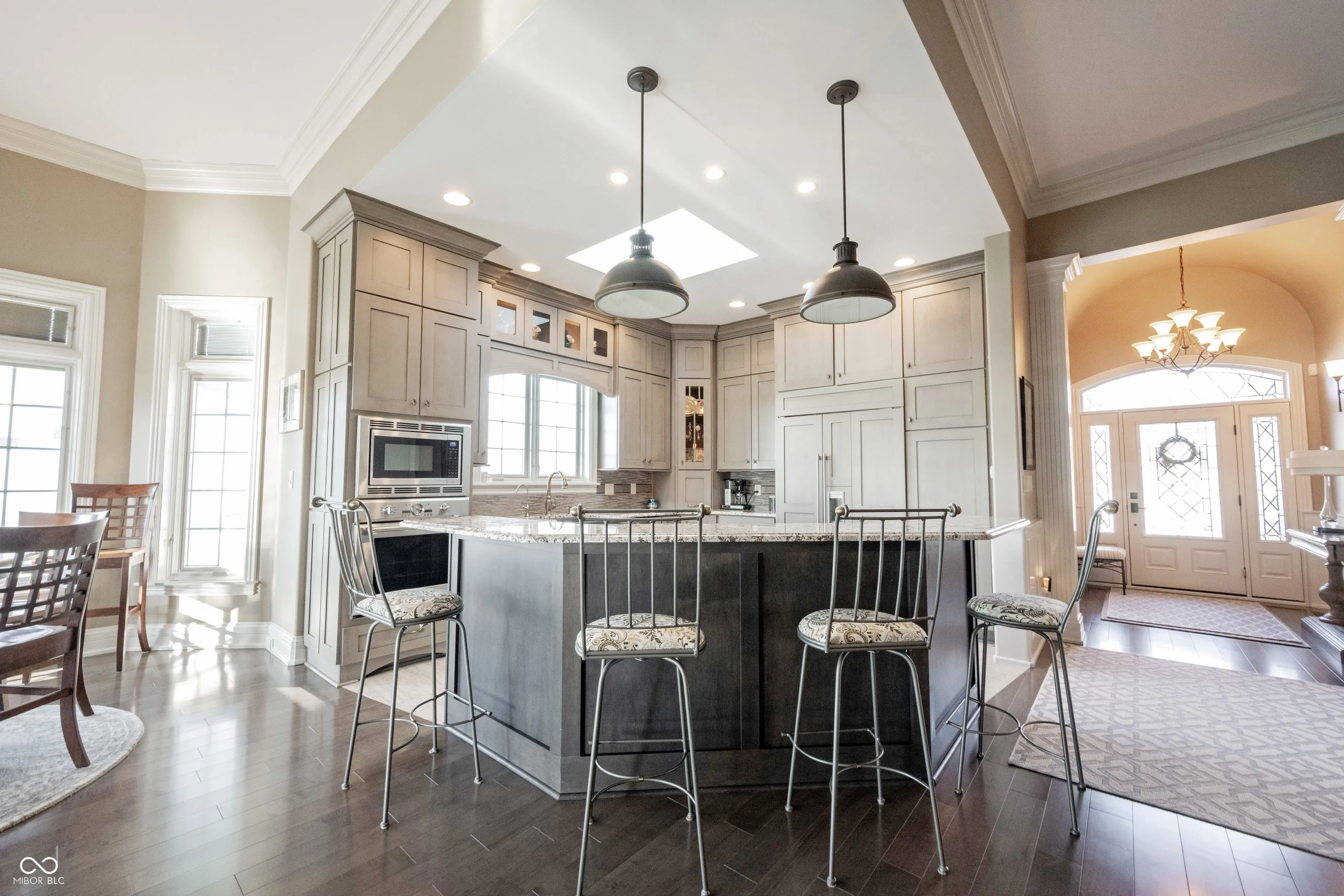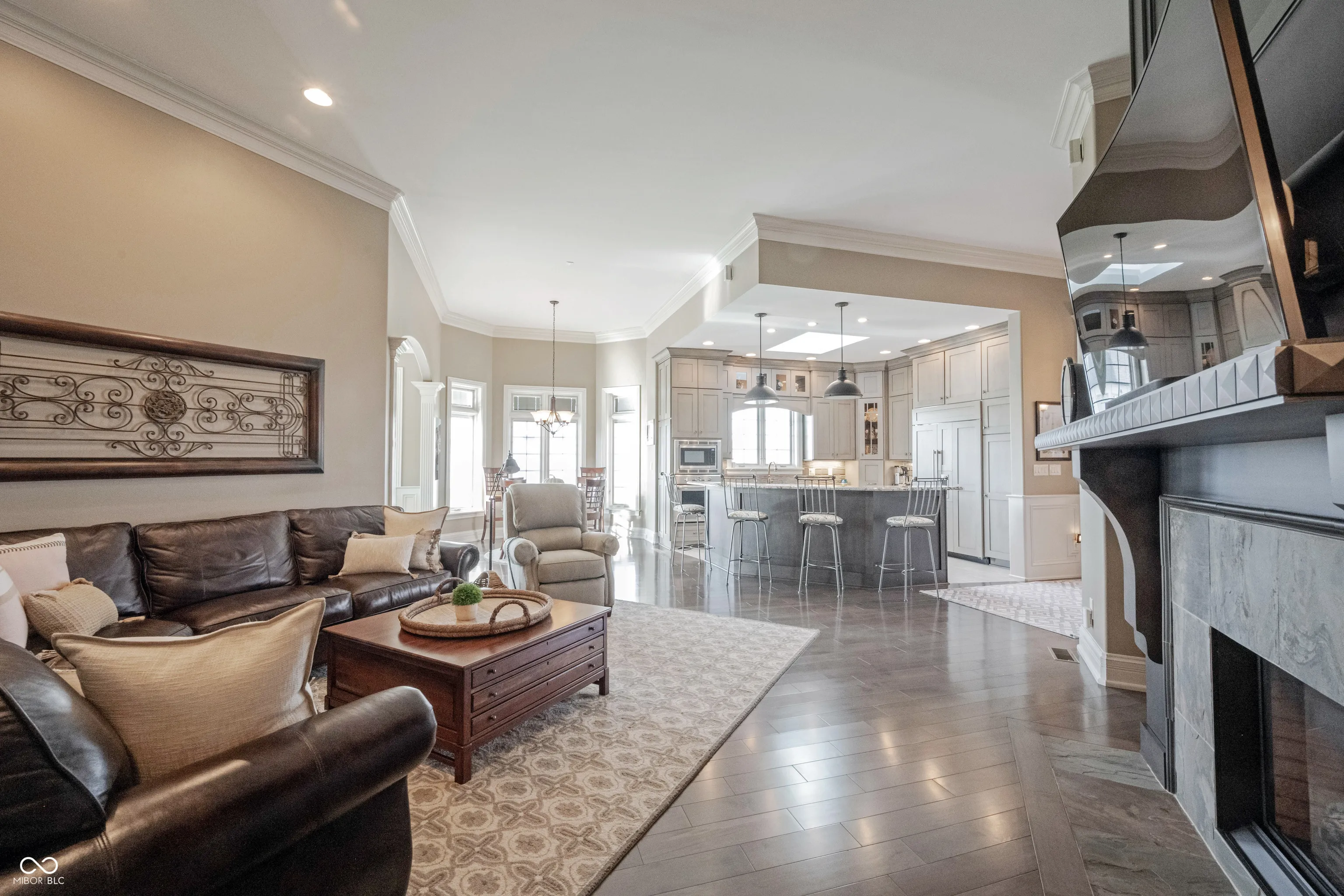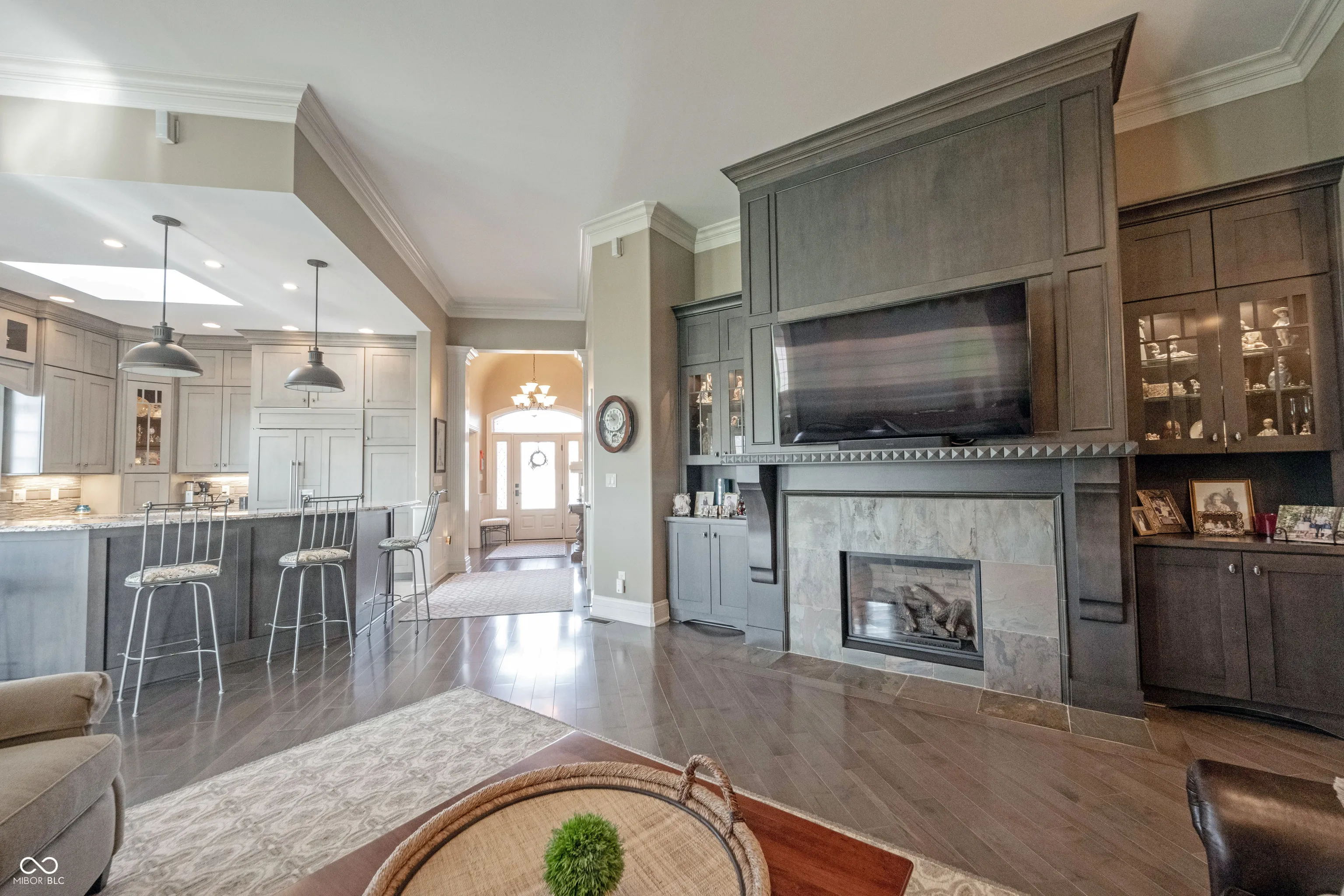A once in a lifetime opportunity to live in Sagamore, on the 15th hole, Yancey Built Custom Home on a DOUBLE Lot! Welcome home to this ALL brick & stone stately masterpiece of a home! Open the door to gorgeous hardwood floors running seamlessly through the main living area. A study tucked off the foyer that is loaded w/trim, from crown to wainscoting, to the coffered ceiling it’s a work of art w/arched transom windows beaming w/light! Step into the heart of the home… Kitchen w/towering high-end dovetailed/solid construction cabinets to the ceiling, blt-in subzero fridge & dishwasher discrete yet giving this room an elegant feel not industrial like a typical kitchen! Induction cooktop, gorgeous granite counters, a breakfast bar contrasts from the stunning gray cabinets in a rich wood finish. Greatroom w/fireplace surrounded w/richly stained blt-ins towering to the clng, a true focal point to this HUGE rm! Towering 12 ft ceilings throughout the home make it feel spacious and grand. You can tell this home was designed w/an impeccable eye for detail as it shows how this home flows from room to room! Dining area btwn the kitchen/sunroom just off the greatroom, open floorplan for entertaining! Sunroom w/towering windows on 2 of the 4 walls, cover the room in views of the golf course and will be your retreat on a daily basis! Step out onto the covered lanai with automated screens for privacy if you wish or to keep the bugs out on a hot summers night! Views of the 15th hole with delight you as you entertain your guests in this beautiful extension of your home! Owner’s suite off the rear of the home w/dbl stage crown molding/tray clng w/ambient lighting, luxury bth ftrs free standing tub that’s a focal point of the room, WI tile shower, comfort height vanity w/dual sinks and HUGE WIC w/California Closet System! Addition bdrm/full bth tucked off hall that leads to fantastic mudroom/laundry room. Bsmt ftrs plenty of storage space, garage w/workshop & space for a golf cart!