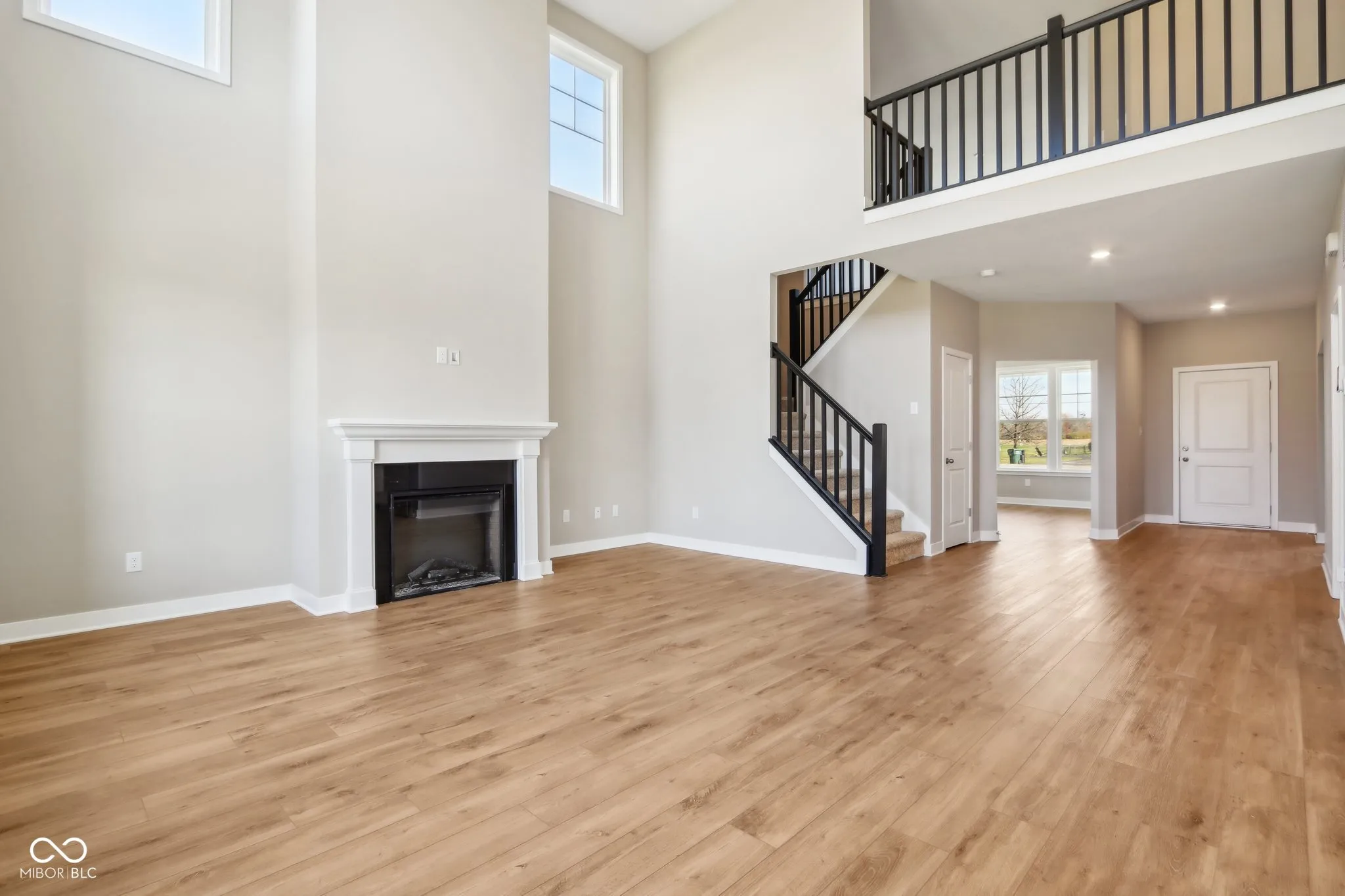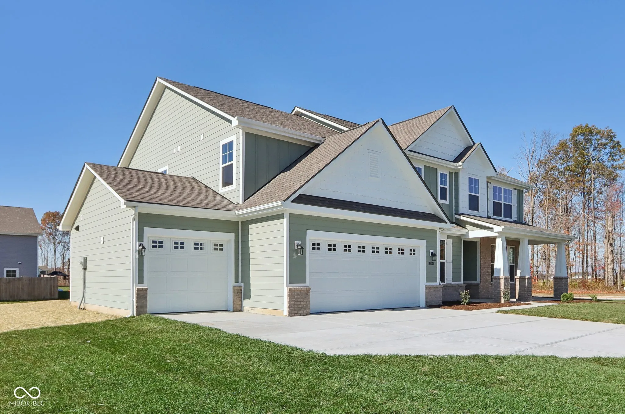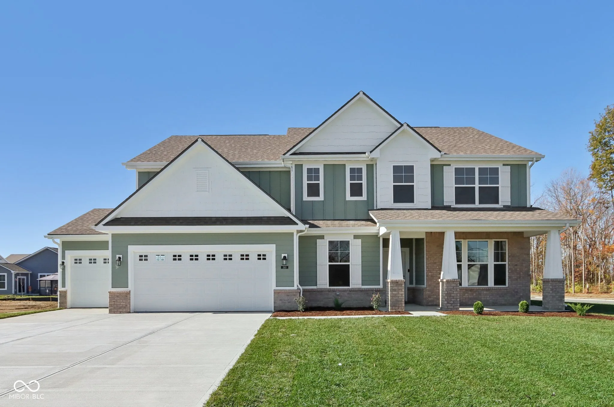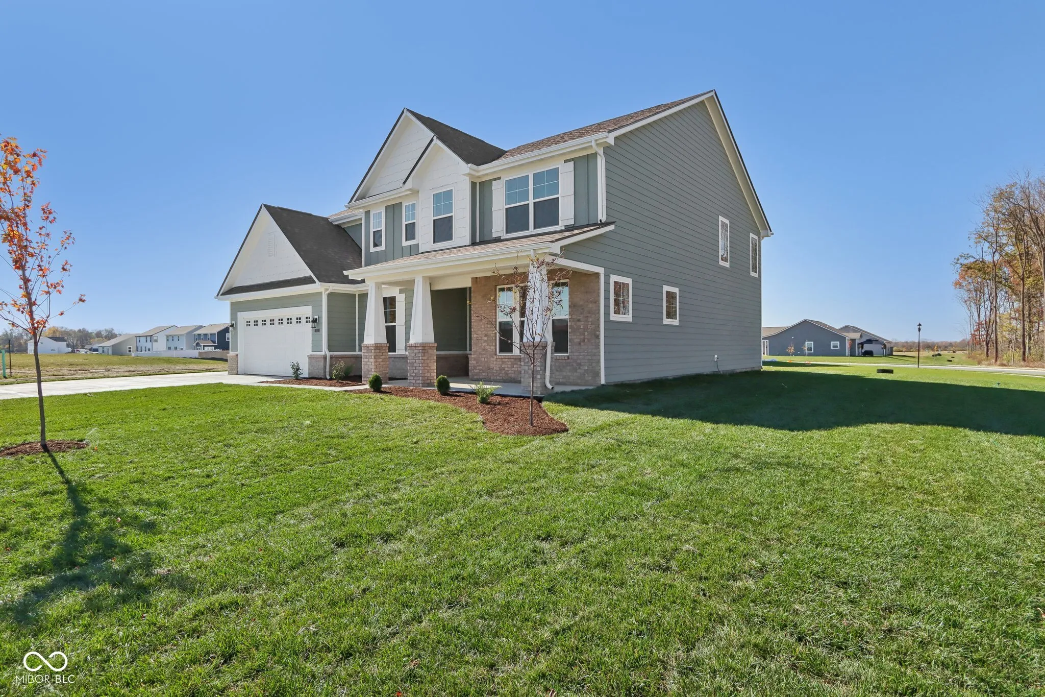 Welcome to your new home in the heart of Greenfield, IN! Set on an oversized homesite, this home showcases striking curb appeal, offering a brick wrap and board & batten vertical siding. Step into the foyer and be greeted by 9′ first floor walls that create an airy atmosphere, enhanced by 6′ tall windows that flood the home with natural light. The two-story Great Room serves as the centerpiece of the home, featuring a cozy gas fireplace with granite surround, perfect for gatherings, and a coffered ceiling for added architectural interest. The heart of the home, the kitchen, flows seamlessly into the dining area, making entertaining a breeze. Featuring soft-close cabinetry and a large island, all your culinary adventures await in this gourmet kitchen. The adjacent mud room provides a practical transition from the spacious 3-car garage, keeping your home organized and tidy. Luxury vinyl plank flooring in the common areas adds both style and durability to this 3,500+ square foot home. Upstairs, you’ll find a versatile loft space, ideal for a home office or play area. The primary suite is a true retreat, boasting a luxury tiled shower and a double bowl vanity, ensuring a spa-like experience. This home combines elegance, functionality, and an ideal location, making it the perfect place for you and your family. Don’t miss your chance to call this exquisite property home!