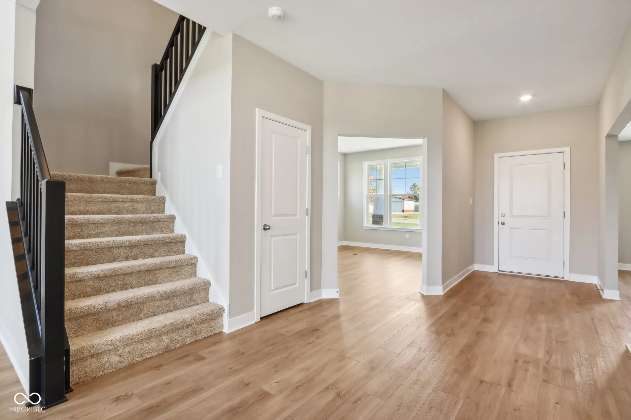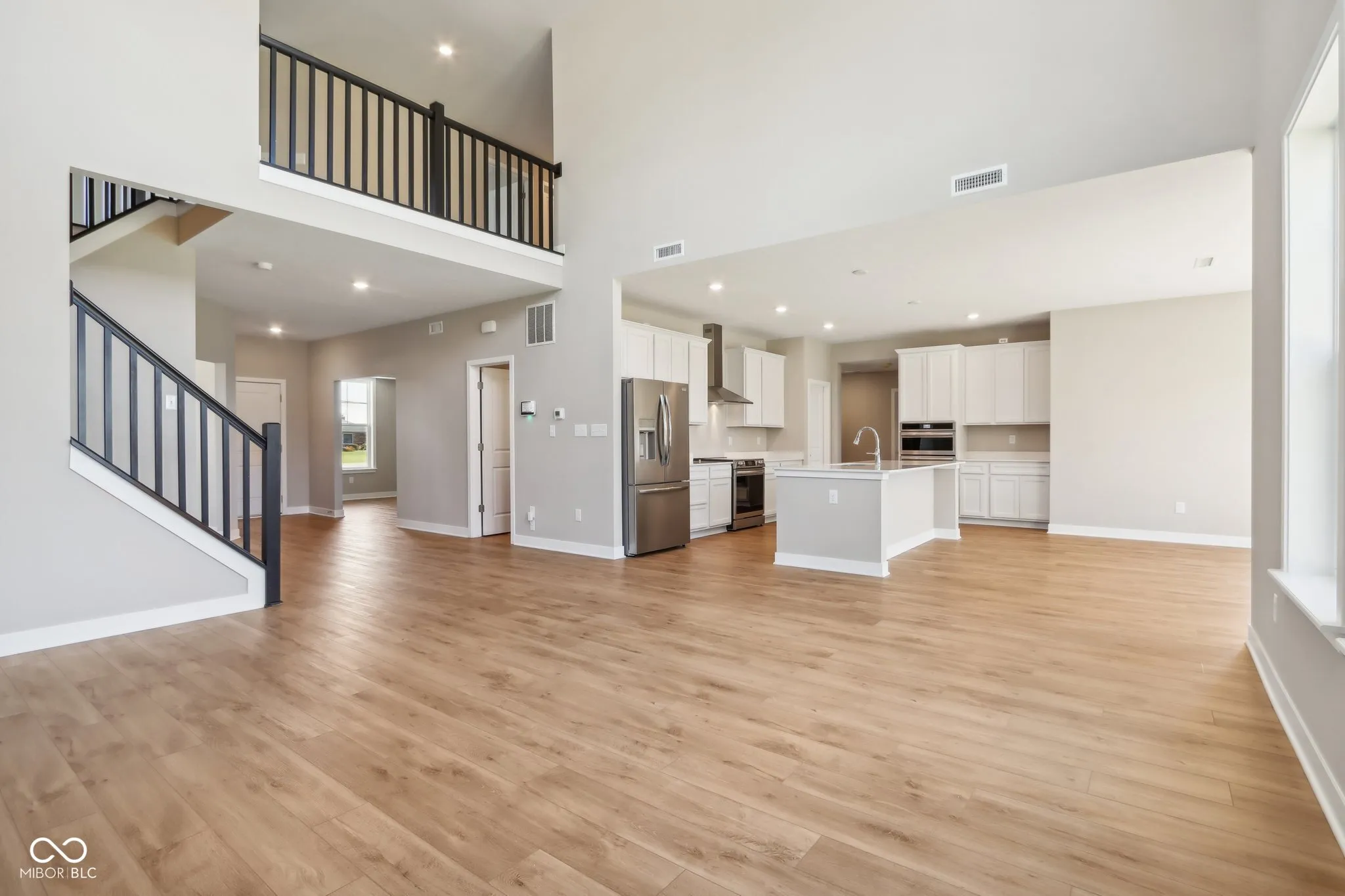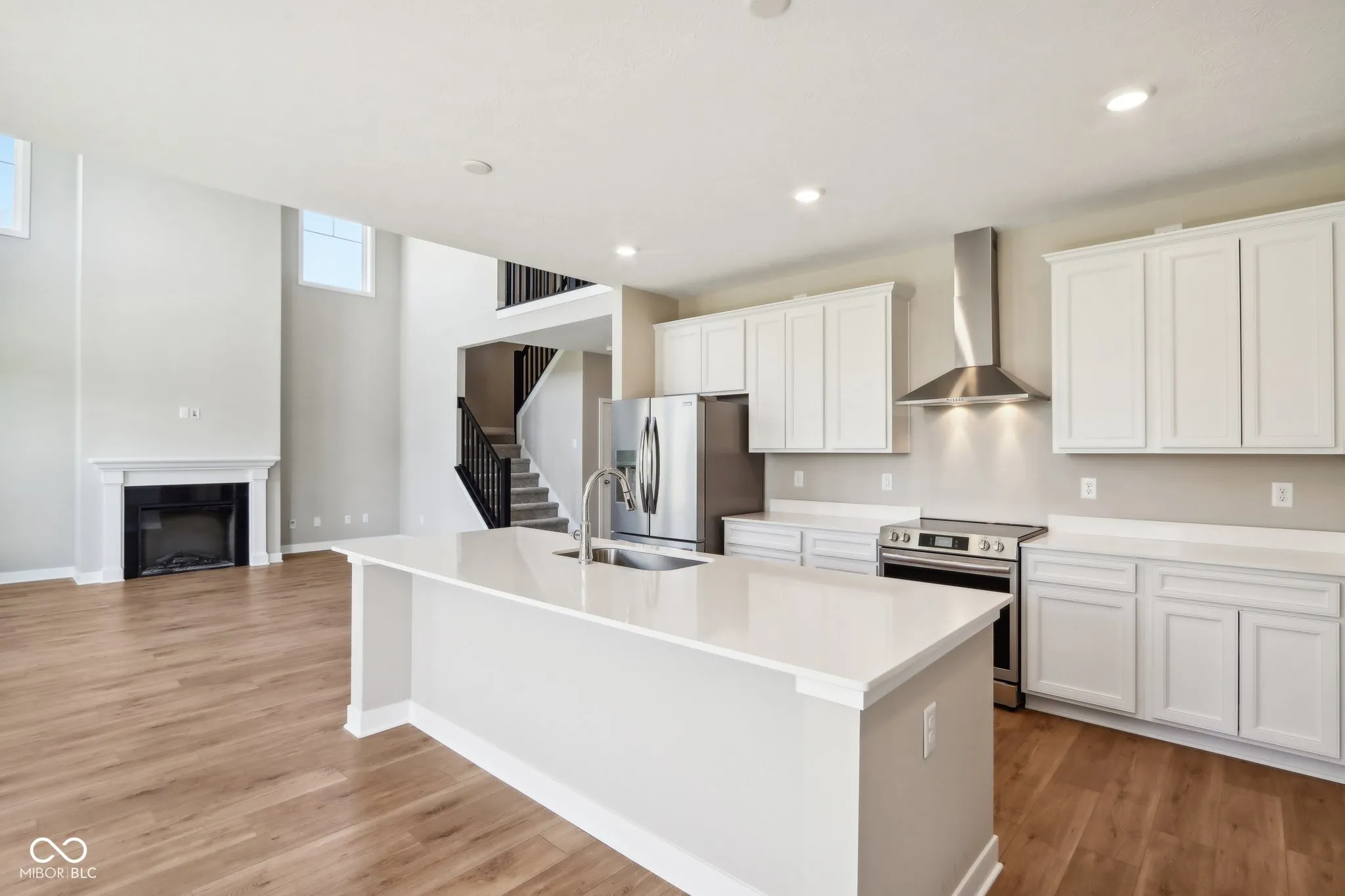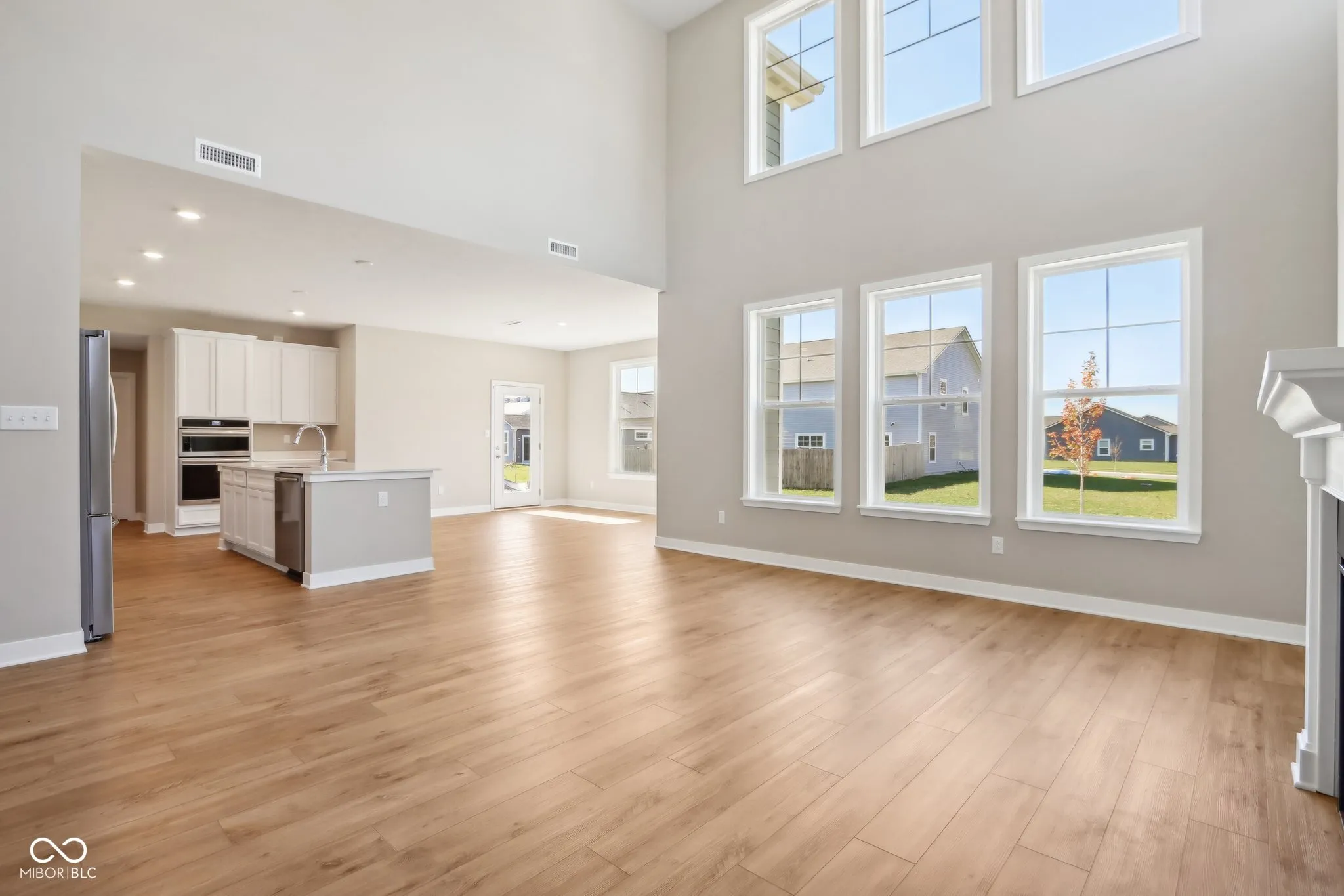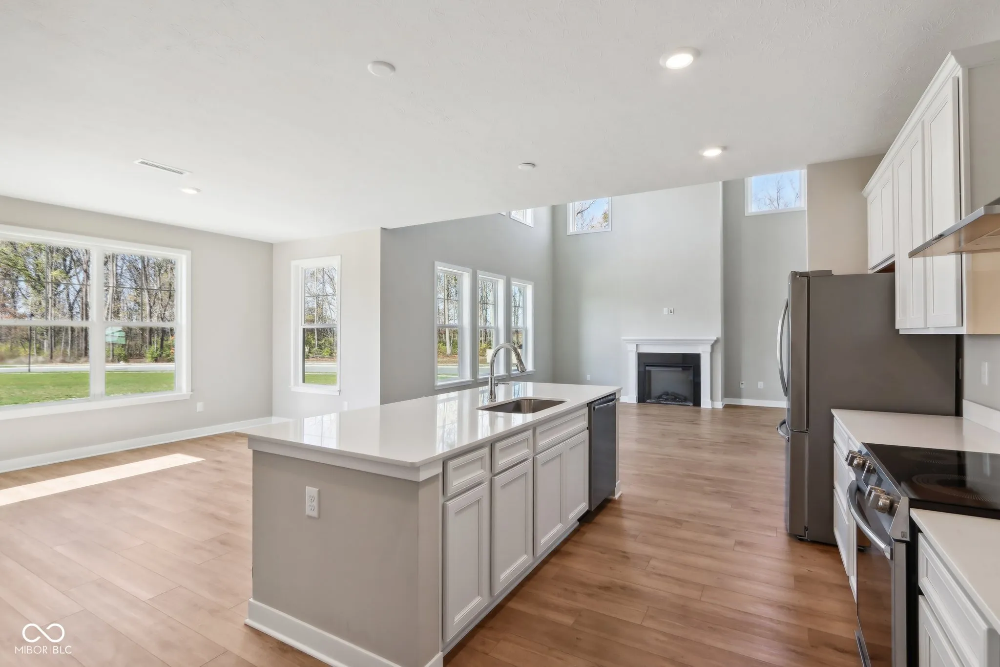 Welcome to your new home in the heart of Greenfield, IN! Set on an oversized homesite, this home showcases striking curb appeal, offering a brick wrap and board & batten vertical siding. Step into the foyer and be greeted by 9′ first floor walls that create an airy atmosphere, enhanced by 6′ tall windows that flood the home with natural light. The two-story Great Room serves as the centerpiece of the home, featuring a cozy gas fireplace with granite surround, perfect for gatherings, and a coffered ceiling for added architectural interest. The heart of the home, the kitchen, flows seamlessly into the dining area, making entertaining a breeze. Featuring soft-close cabinetry and a large island, all your culinary adventures await in this gourmet kitchen. The adjacent mud room provides a practical transition from the spacious 3-car garage, keeping your home organized and tidy. Luxury vinyl plank flooring in the common areas adds both style and durability to this 3,500+ square foot home. Upstairs, you’ll find a versatile loft space, ideal for a home office or play area. The primary suite is a true retreat, boasting a luxury tiled shower and a double bowl vanity, ensuring a spa-like experience. This home combines elegance, functionality, and an ideal location, making it the perfect place for you and your family. Don’t miss your chance to call this exquisite property home!