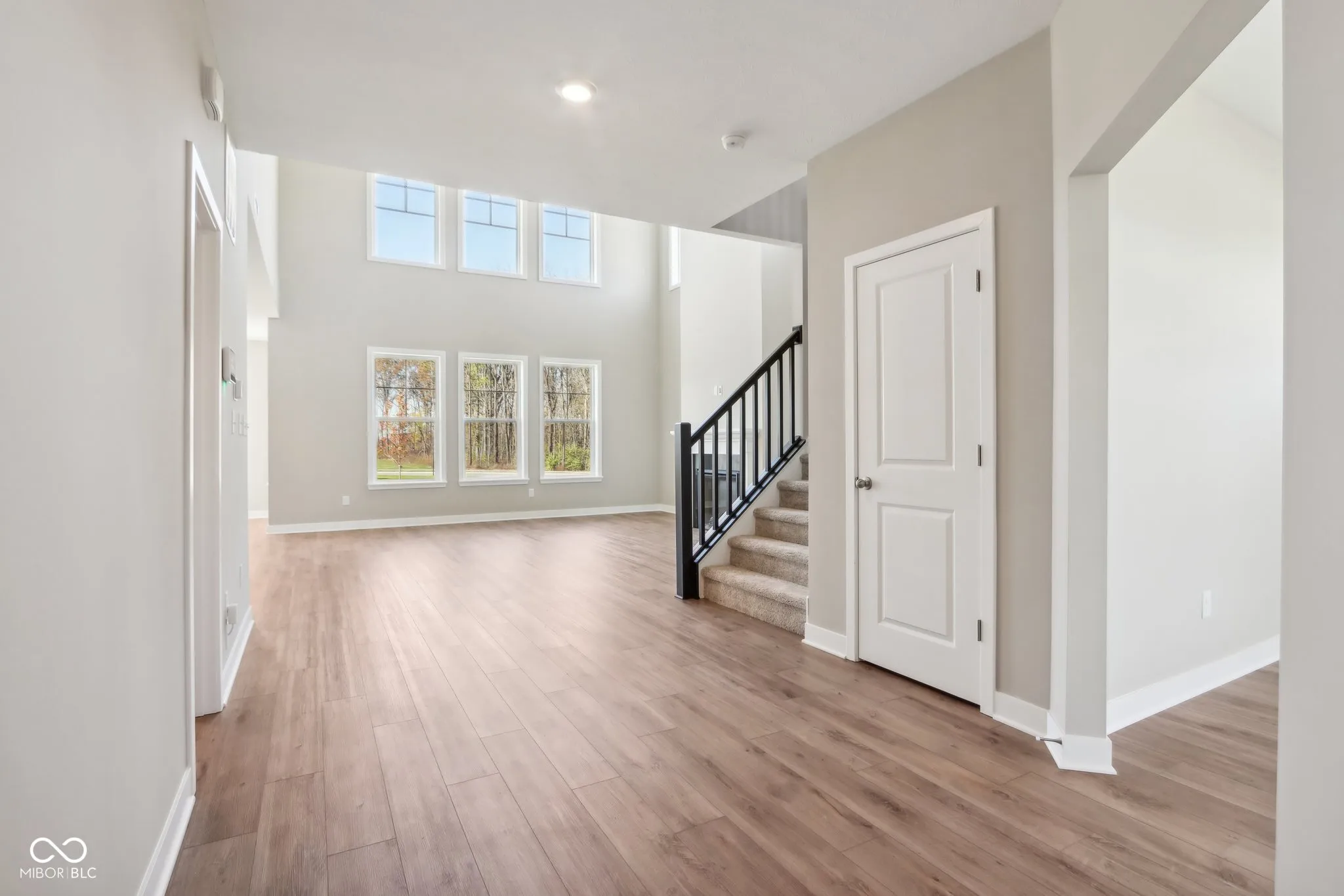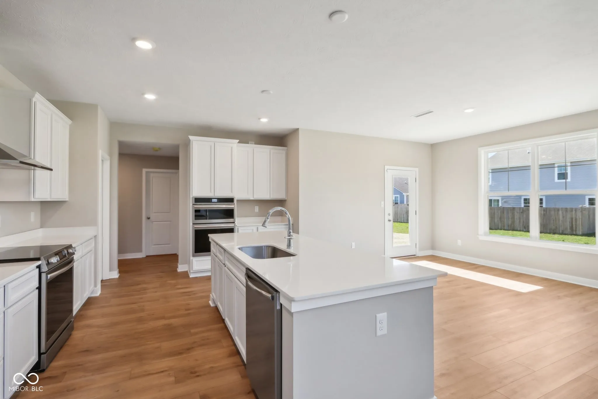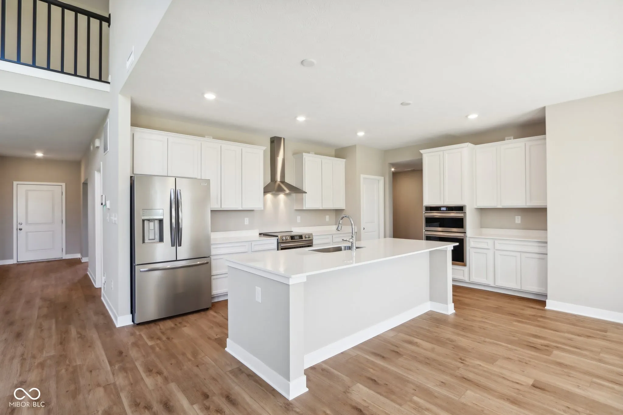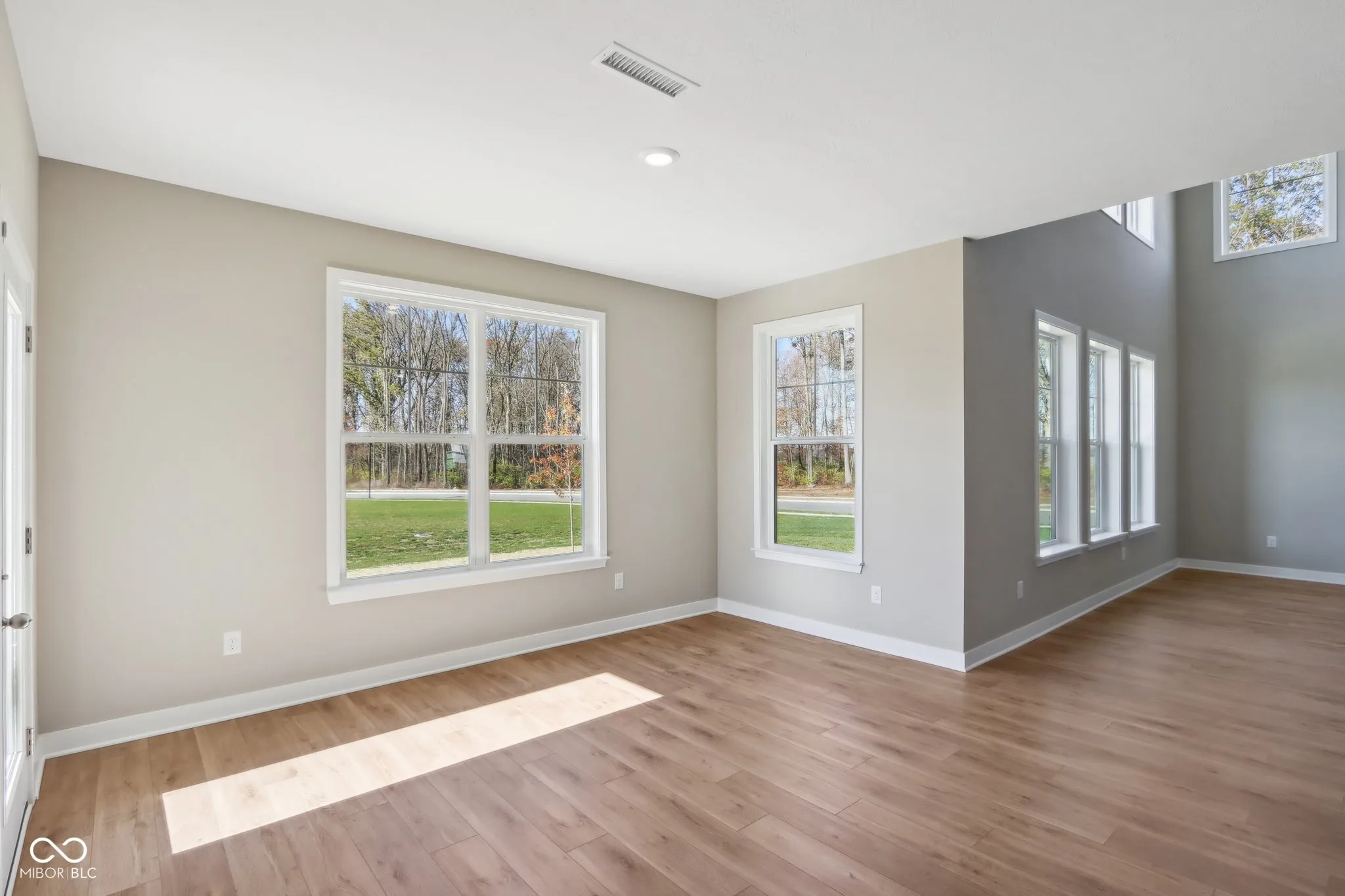 Welcome to your new home in the heart of Greenfield, IN! Set on an oversized homesite, this home showcases striking curb appeal, offering a brick wrap and board & batten vertical siding. Step into the foyer and be greeted by 9′ first floor walls that create an airy atmosphere, enhanced by 6′ tall windows that flood the home with natural light. The two-story Great Room serves as the centerpiece of the home, featuring a cozy gas fireplace with granite surround, perfect for gatherings, and a coffered ceiling for added architectural interest. The heart of the home, the kitchen, flows seamlessly into the dining area, making entertaining a breeze. Featuring soft-close cabinetry and a large island, all your culinary adventures await in this gourmet kitchen. The adjacent mud room provides a practical transition from the spacious 3-car garage, keeping your home organized and tidy. Luxury vinyl plank flooring in the common areas adds both style and durability to this 3,500+ square foot home. Upstairs, you’ll find a versatile loft space, ideal for a home office or play area. The primary suite is a true retreat, boasting a luxury tiled shower and a double bowl vanity, ensuring a spa-like experience. This home combines elegance, functionality, and an ideal location, making it the perfect place for you and your family. Don’t miss your chance to call this exquisite property home!