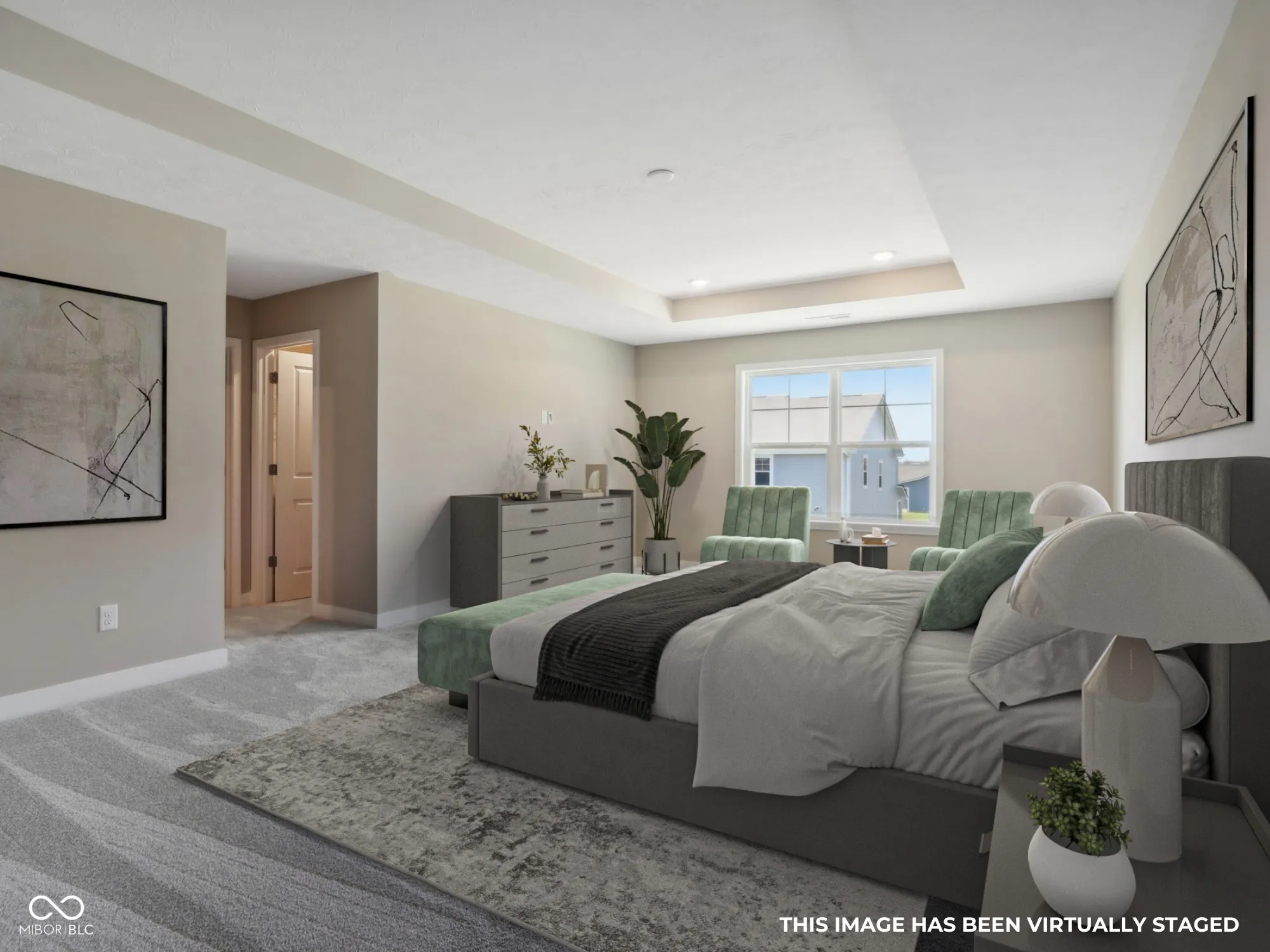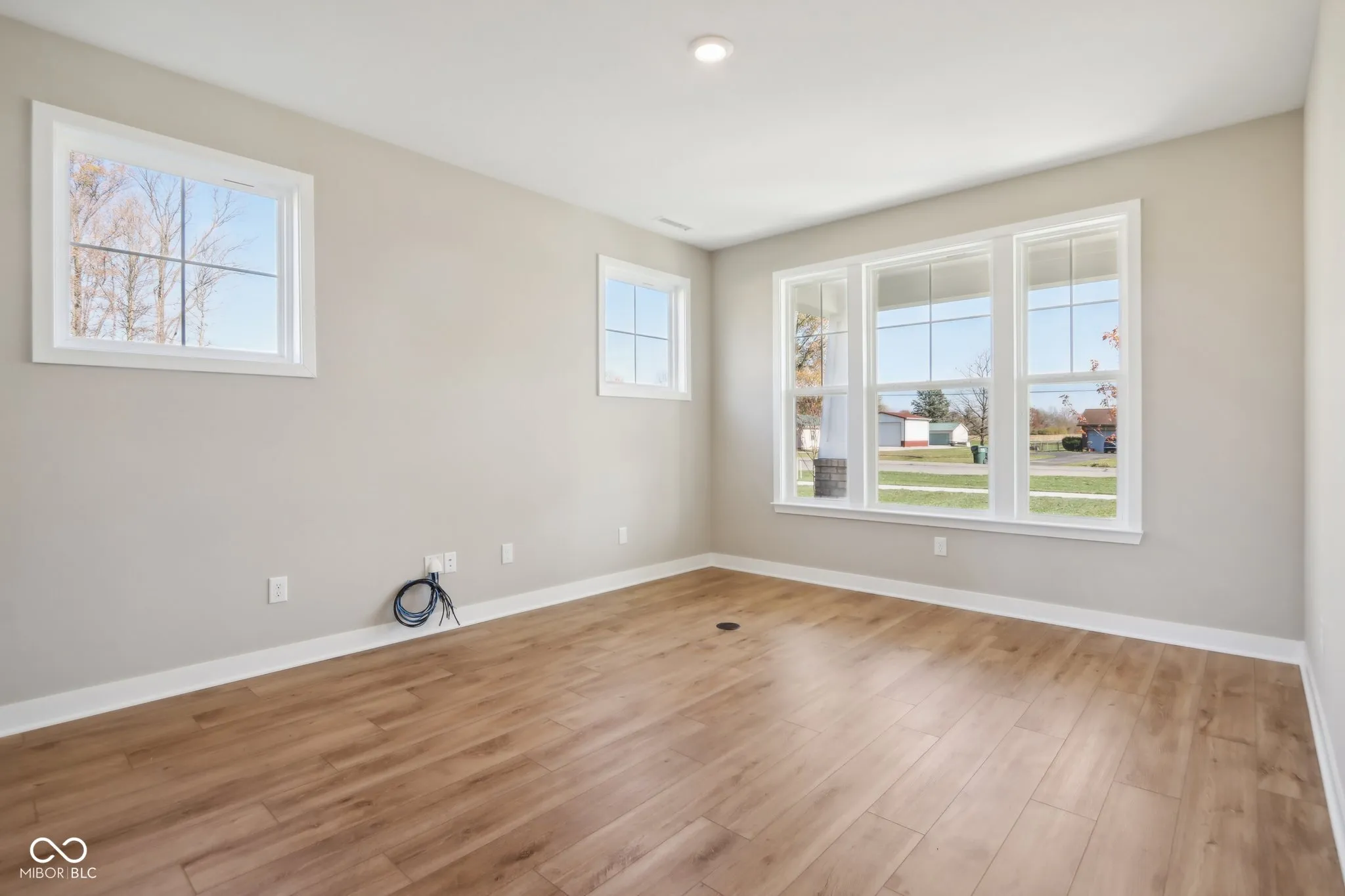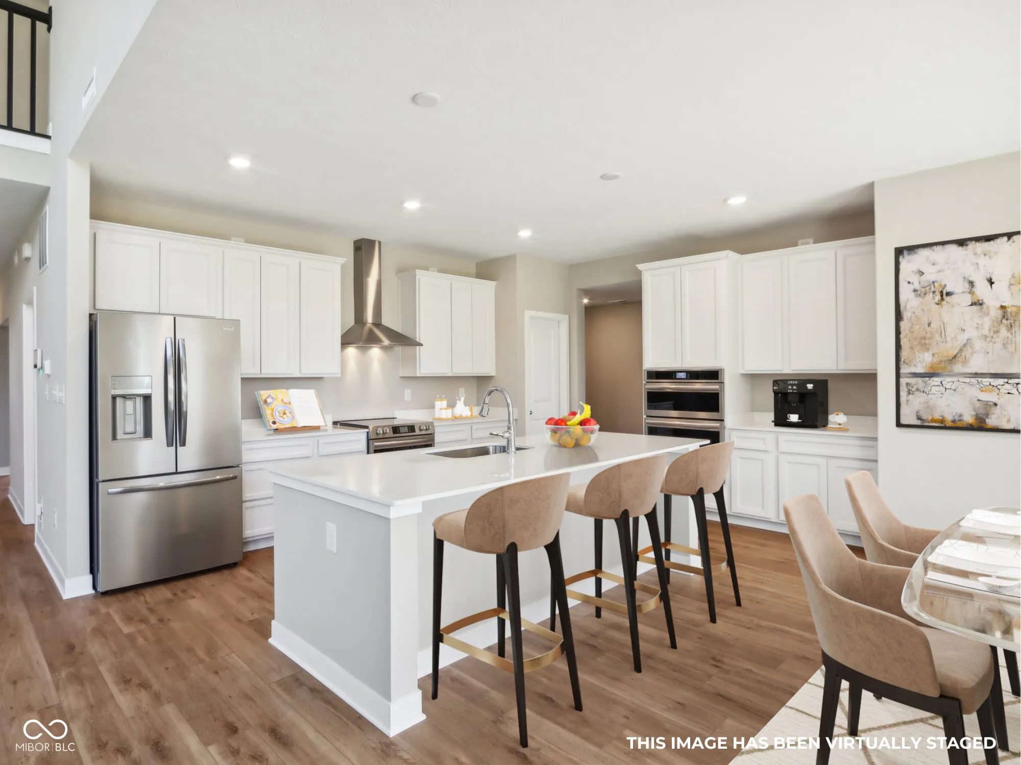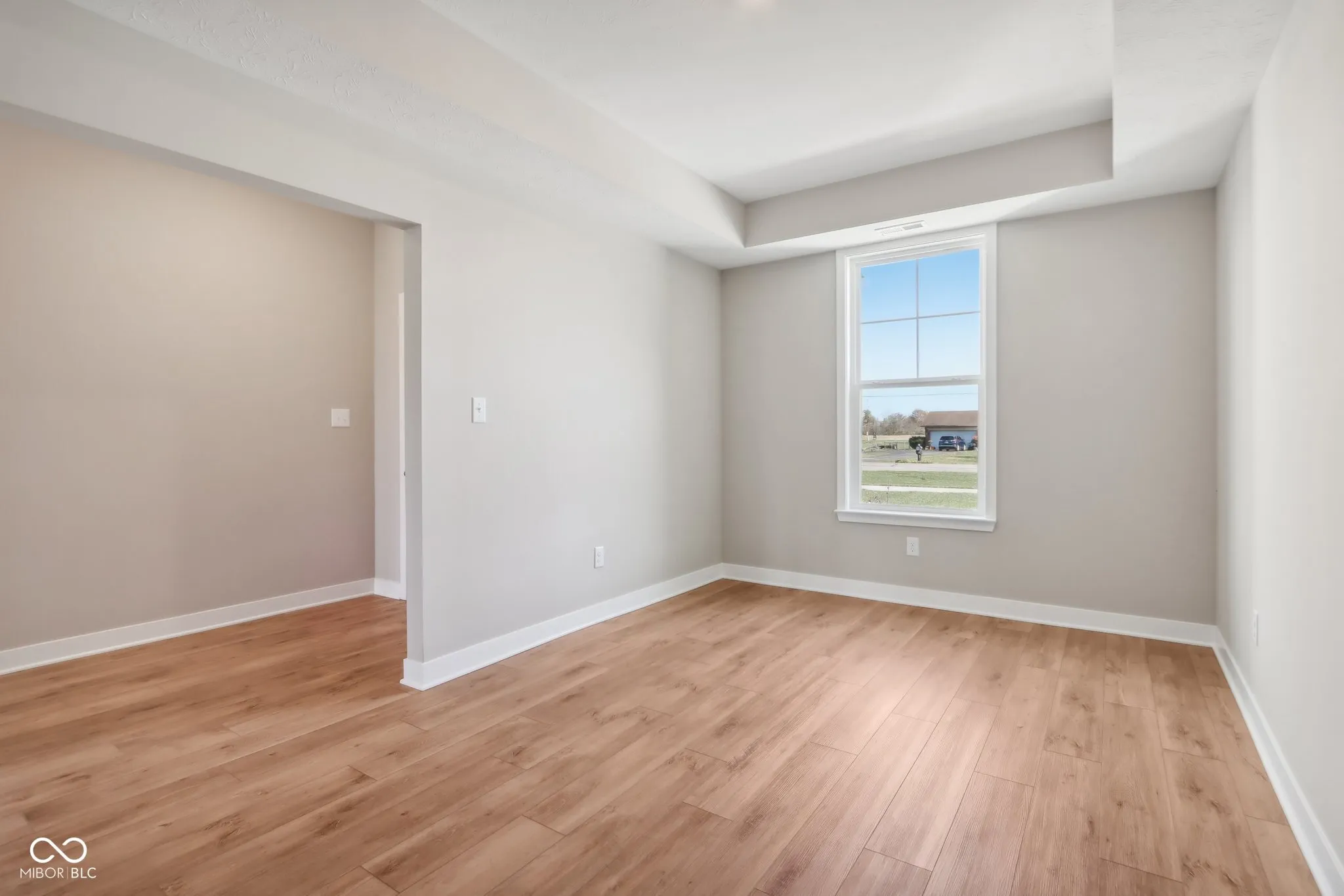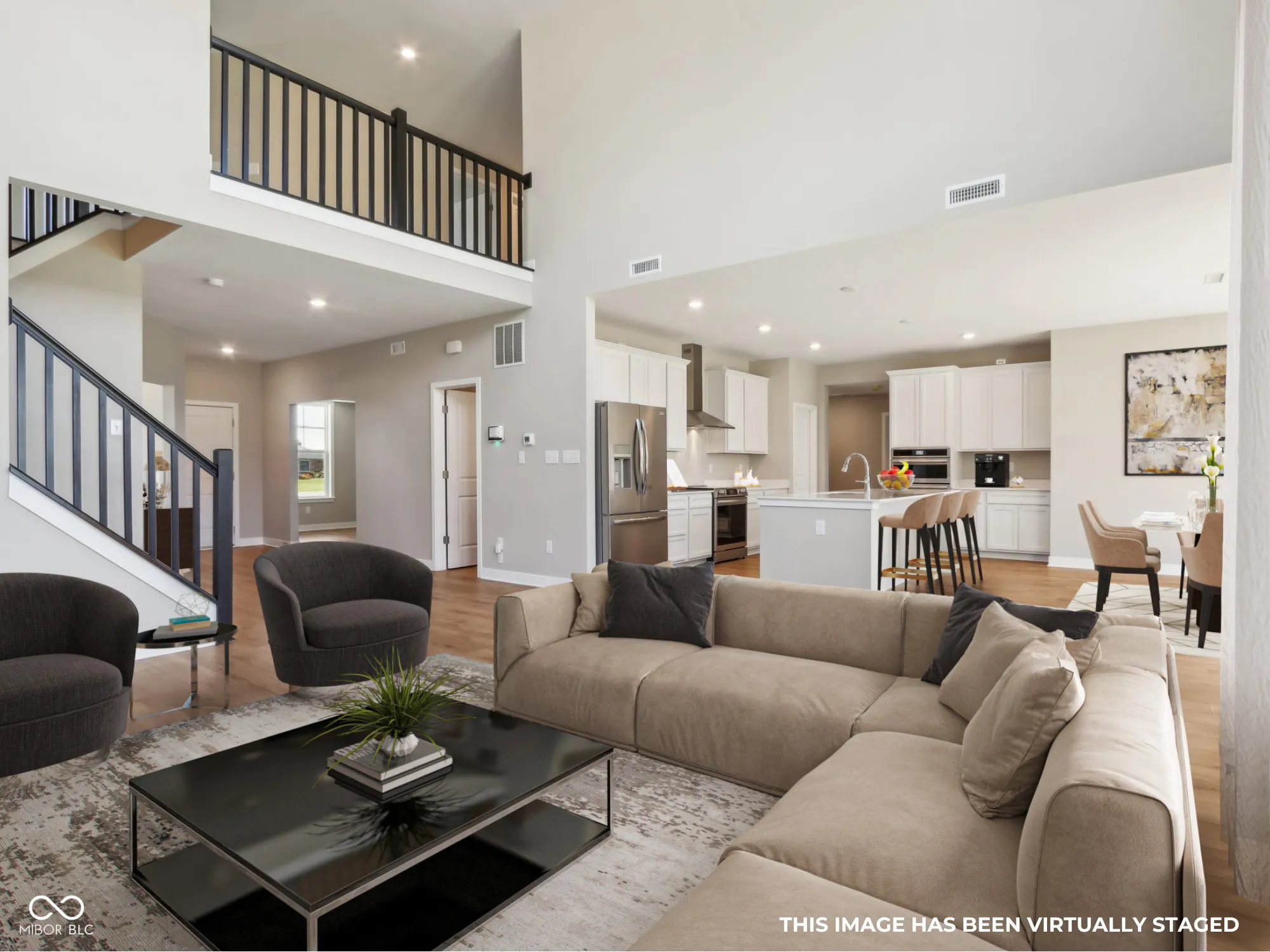 Welcome to your new home in the heart of Greenfield, IN! Set on an oversized homesite, this home showcases striking curb appeal, offering a brick wrap and board & batten vertical siding. Step into the foyer and be greeted by 9′ first floor walls that create an airy atmosphere, enhanced by 6′ tall windows that flood the home with natural light. The two-story Great Room serves as the centerpiece of the home, featuring a cozy gas fireplace with granite surround, perfect for gatherings, and a coffered ceiling for added architectural interest. The heart of the home, the kitchen, flows seamlessly into the dining area, making entertaining a breeze. Featuring soft-close cabinetry and a large island, all your culinary adventures await in this gourmet kitchen. The adjacent mud room provides a practical transition from the spacious 3-car garage, keeping your home organized and tidy. Luxury vinyl plank flooring in the common areas adds both style and durability to this 3,500+ square foot home. Upstairs, you’ll find a versatile loft space, ideal for a home office or play area. The primary suite is a true retreat, boasting a luxury tiled shower and a double bowl vanity, ensuring a spa-like experience. This home combines elegance, functionality, and an ideal location, making it the perfect place for you and your family. Don’t miss your chance to call this exquisite property home!