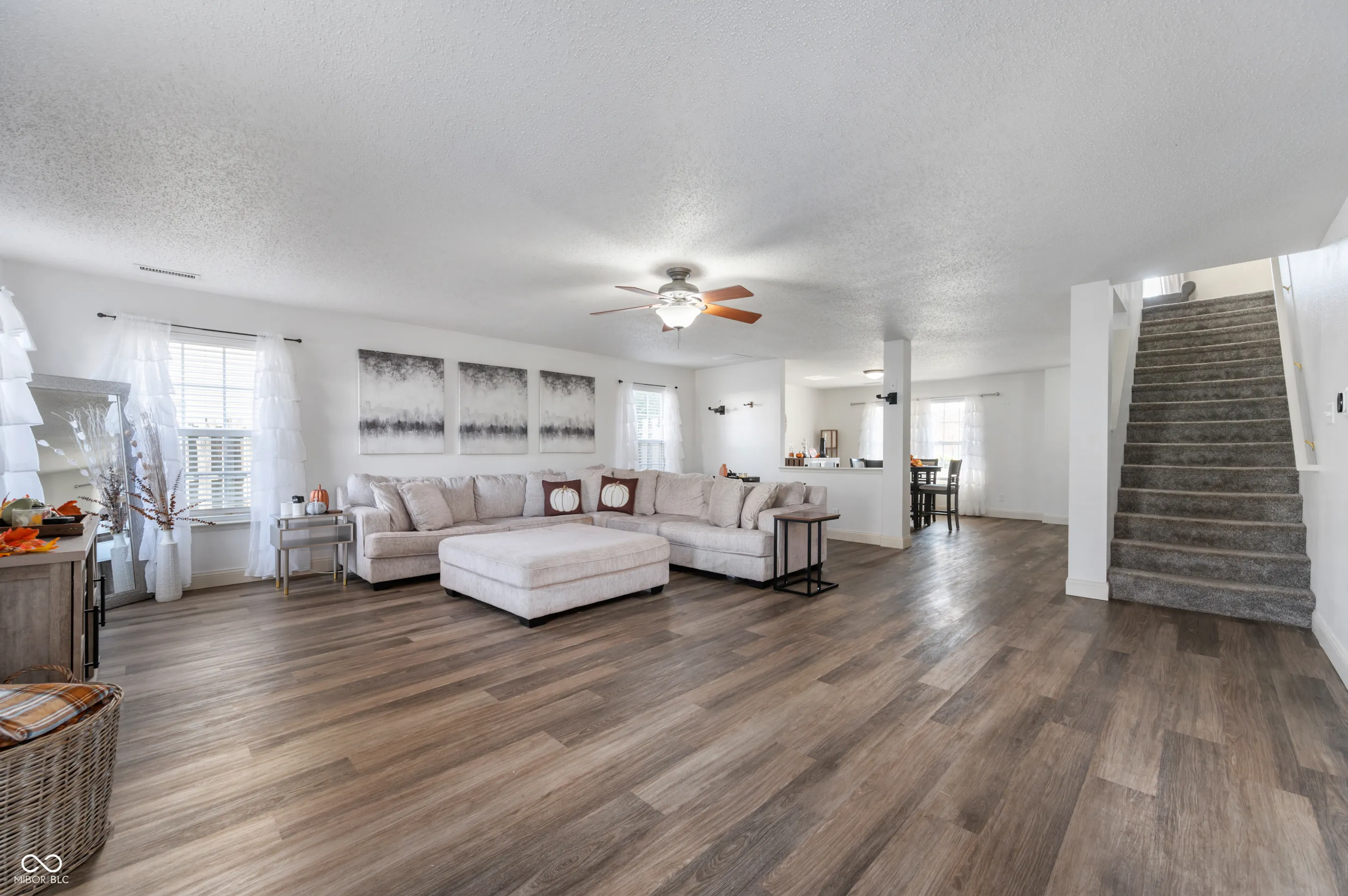 Location! Location! Location! Wonderful 4Bd/2.5Ba/3-car garage updated & move-in ready home in Oak Highlands of Greenfield! Super close to restaurants, grocery stores, shopping, & Greenfield schools with quick & easy access to I-70 and SR9. Only one exit east of the new hospital, airport, and developments, too. This open-concept home is an entertainer’s dream! So light and bright with warm, neutral tones throughout! Just inside the front entry is current formal dining room but could be used as living room or home work space. Open concept flows into spacious Family Rm and further leads to Breakfast Rm & Kitchen. Modern light fixtures & beautiful LVP flooring make the space feel cozy yet updated. Kitchen offers plenty of counter space for cooking, stainless steel appliances, and even a corner breakfast bar space to enjoy a snack or get some quick work done. Huge walk-in pantry, too! The main-level layout makes entertaining so fun & easy! Primary Bedroom upstairs is beautifully inviting while feeling extra large with plenty of room for additional furniture and creating a reading/lounging area. En Suite features separate shower, garden tub, & walk-in closet. Bedroom 2 is currently set up as the home office and Bedroom 3 is being used as an extra living space complete with sectional couch! Including the 4th, all bedrooms are great sizes with big closets/storage space! Also upstairs is a small landing space at top of the stairs and the laundry room – so convenient! Outdoors you’ll find multiple different areas to entertain including out back on the finished deck! The backyard has full privacy fence, beautiful mature trees, & new grass has been planted where needed. Cozy front porch is perfect place to welcome guests & enjoy on summer evenings, too. Don’t miss your chance to call this your HOME!