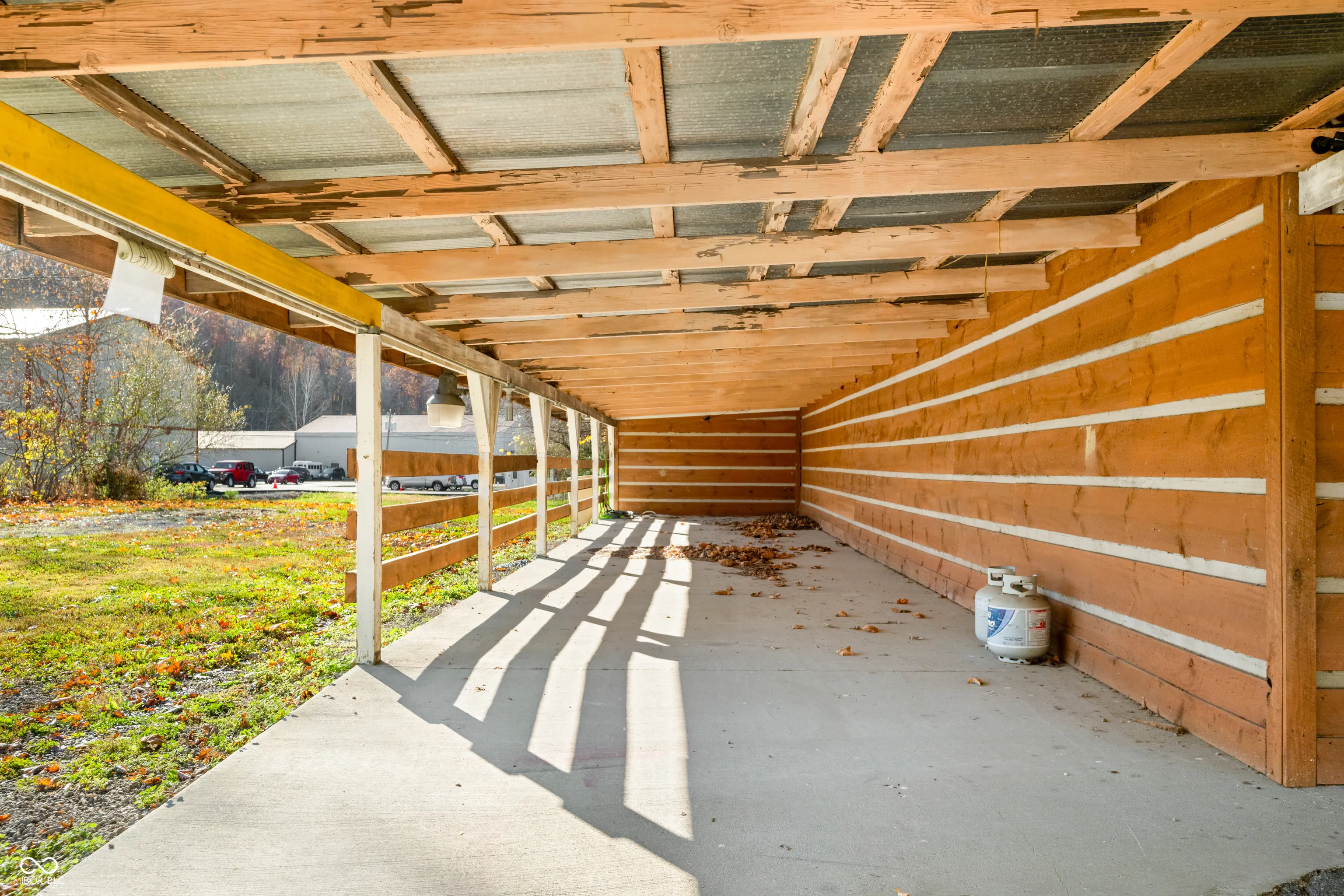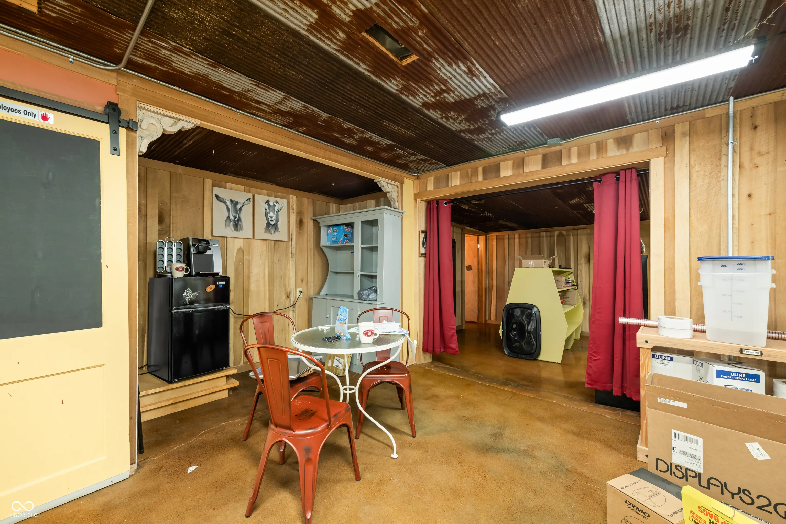 This unique property was once the site of the Gnaw Bone Sorghum Mill. It has been remodeled and updated, including a new HVAC system and electrical panel in 2023. The 2750 square foot building currently has an office space, commercial kitchen area, showroom, three bathrooms, and storage rooms. The property is zoned General Business, which allows for a wide variety of businesses to operate here. It could be used for retail, office, warehouse, or even as a tourist rental. The property is located in Gnaw Bone along heavily traveled State Road 46 East, and has convenient parking for your customers!