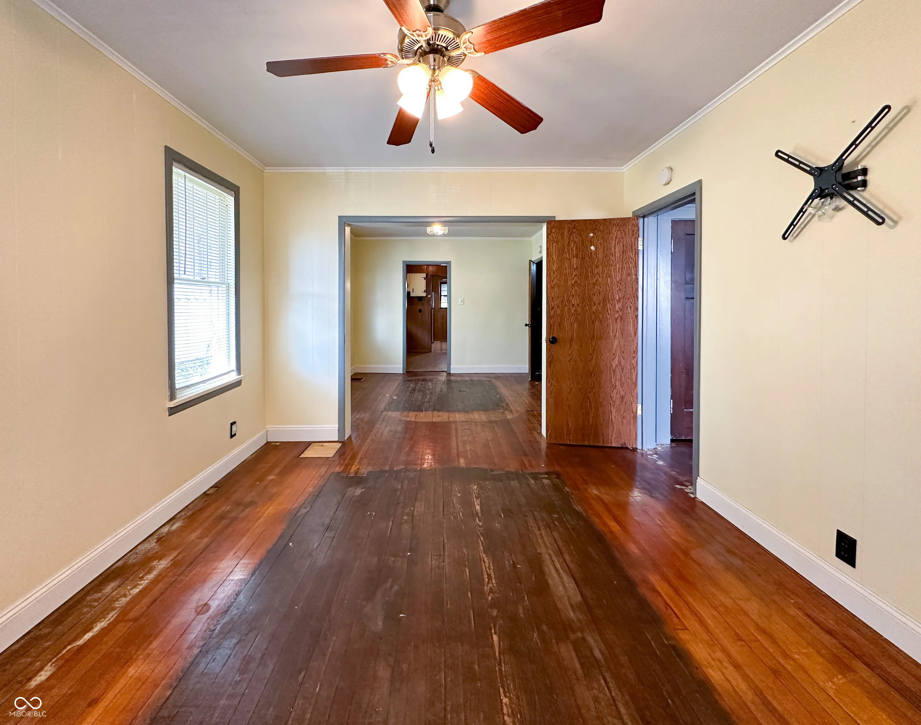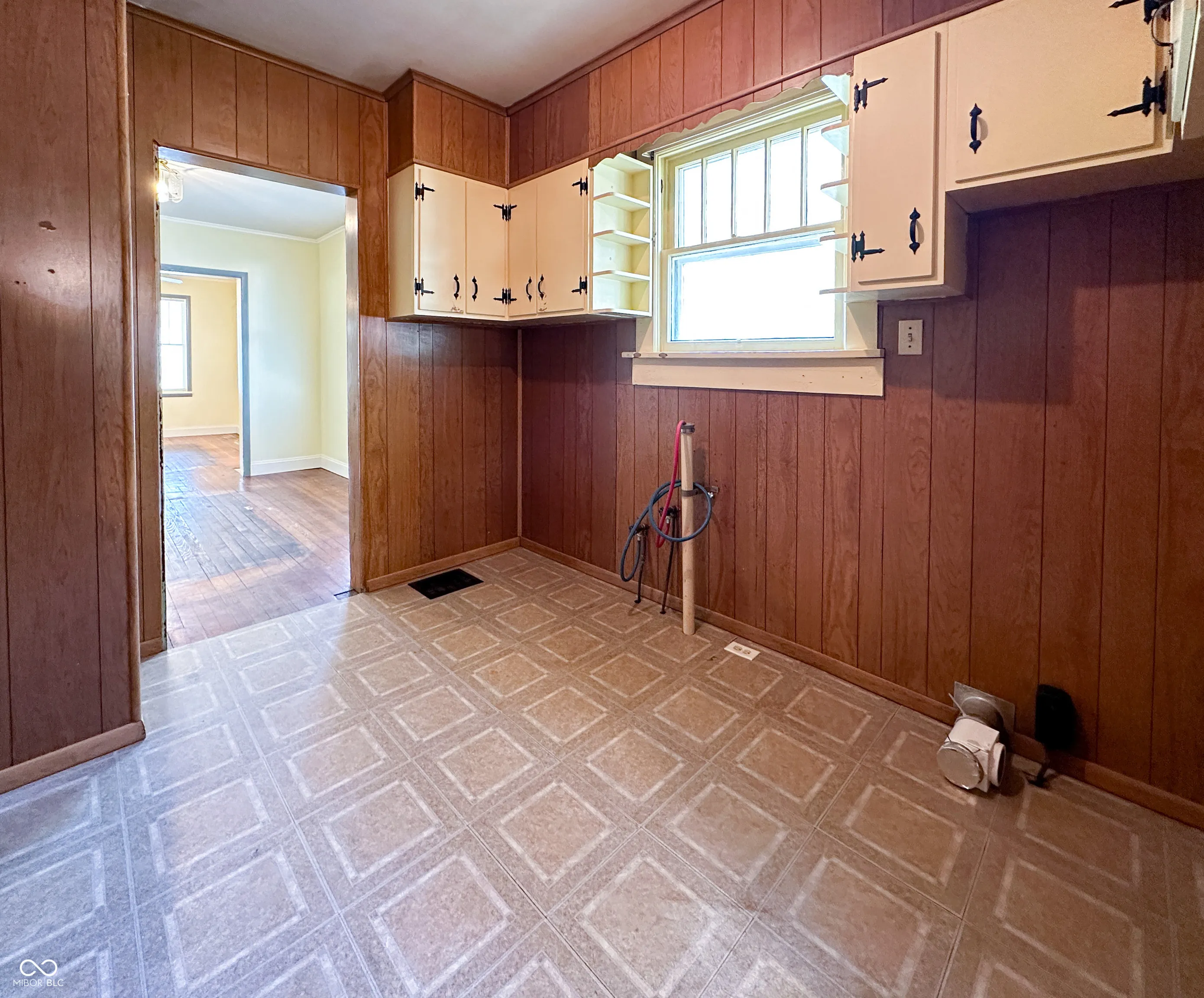 Charming 2 bedroom, 1 bath home located on a spacious lot. Original hardwood floors are ready to be refinished and bathroom has been completely renovated. This property features a main level laundry space for convenience, a basement for additional storage, and a versatile bonus room/den. The large fenced-in backyard is perfect for outdoor activities, and the property includes a sizable 2 car garage and a storage shed.