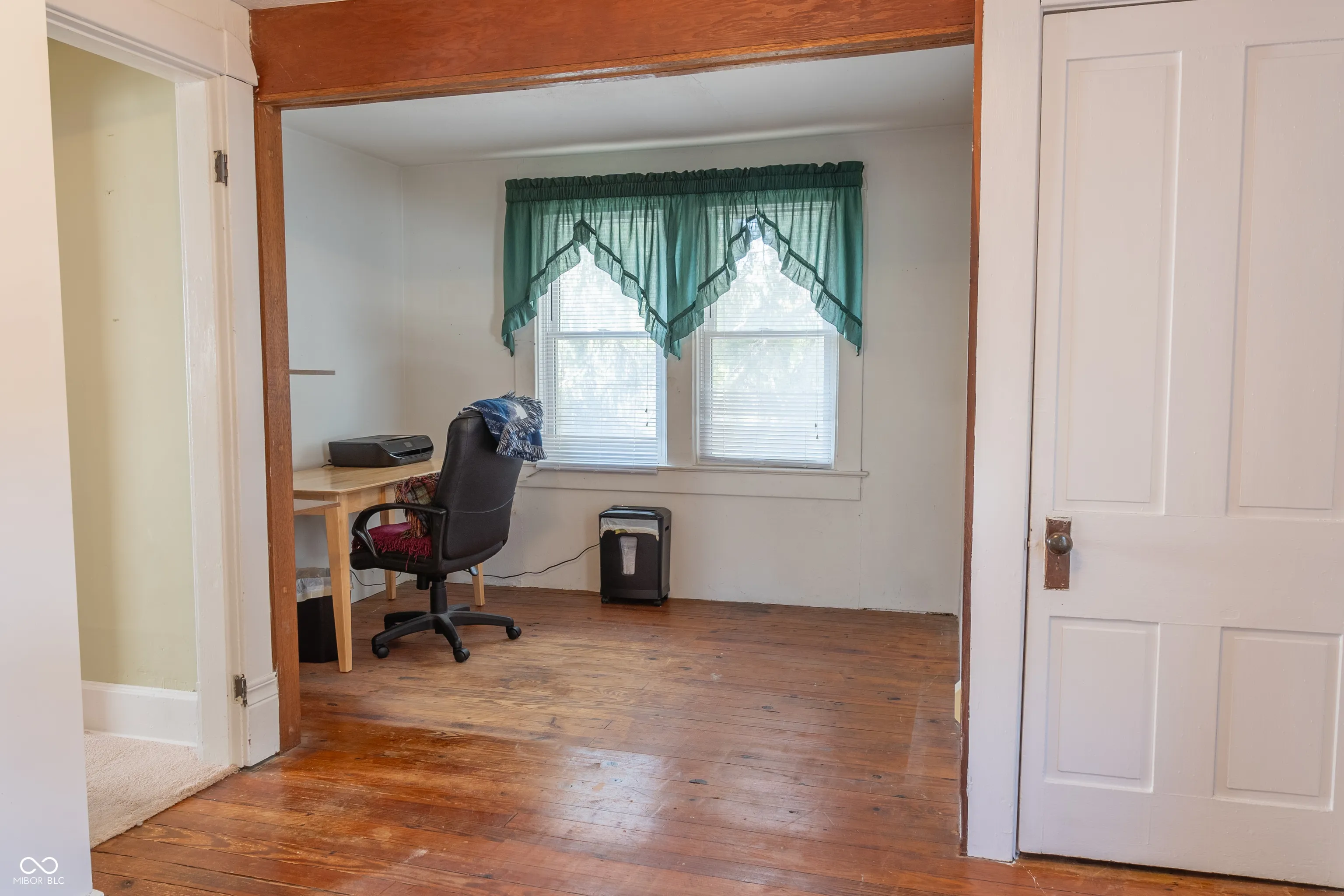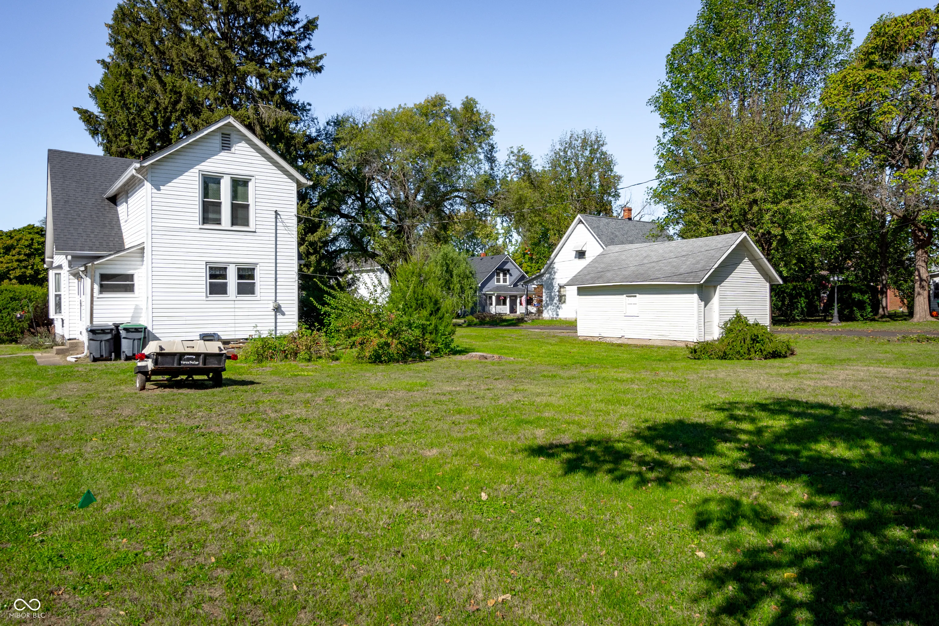 Nestled in the heart of downtown Greenwood, this charming 1,800 sf. 4-bedroom, 1.5-bath story-and-a-half home sits on a rare double lot! With very spacious rooms and a thoughtful layout, it offers a main-level bedroom, hardwood floors (some under the carpet), and a cozy covered front porch. Key features include a walk-out basement that is perfect for storage and includes an interior drain tile system and sump pump for added peace of mind, plus a 320 sq. ft. detached garage. Updates such as the roof, siding, furnace, and most windows bring modern comforts while preserving the home’s classic appeal. This unique property combines character, location, and space.