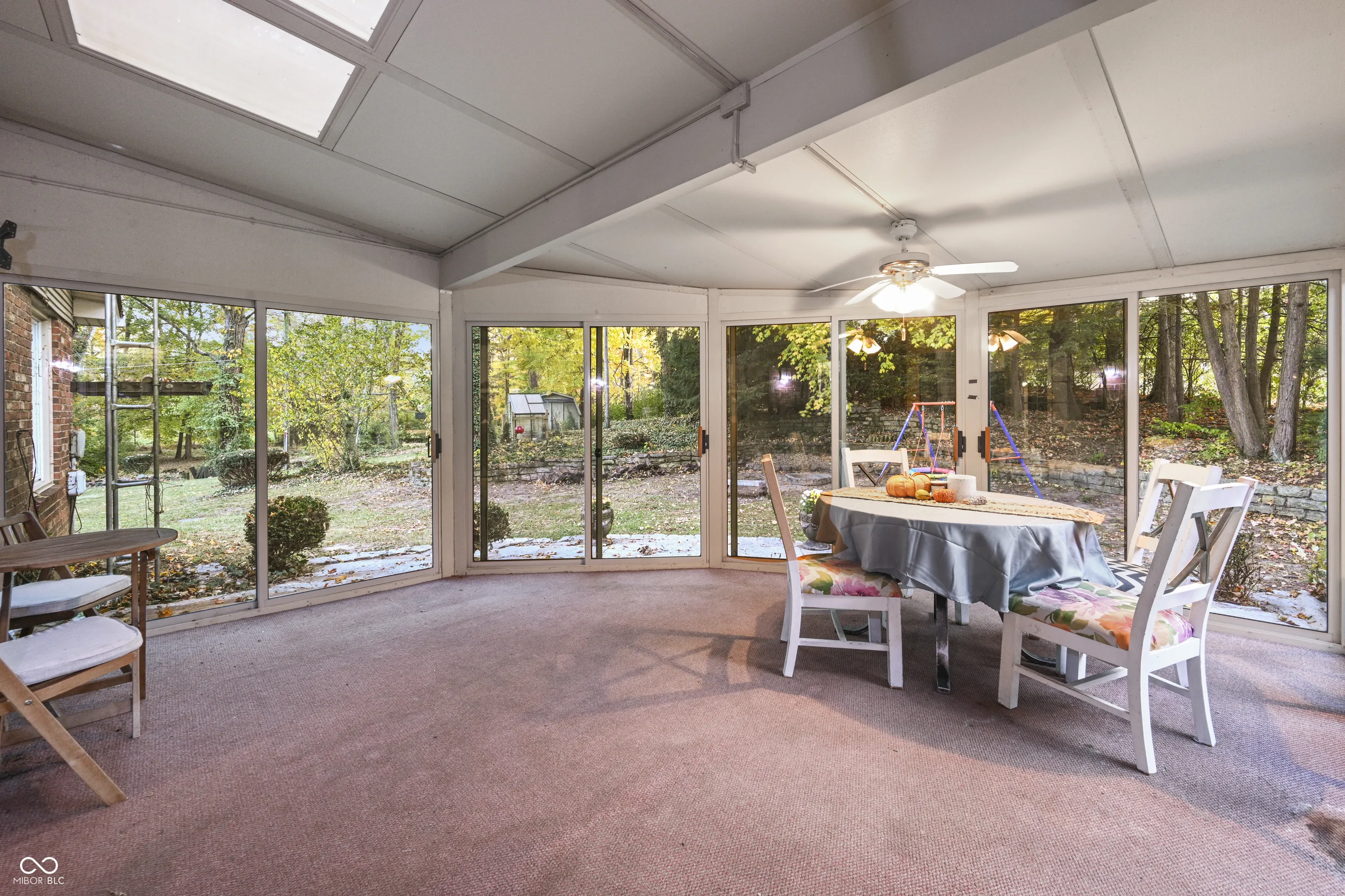 Take a look at this unique 4 bed 2.5 bath all brick home nestled on 1.5 acres in town surrounded by trees giving you that country feel that also abuts to a creek! Upon walking into the home you will view the spacious living room with floor to ceiling windows that align the wall from Living Room to Breakfast Room allowing all the natural light to beam in from your backyard oasis. Fully equipped kitchen with lots of kitchen cabinetry & breakfast bar that adjoins the Dining Room with wood burning fireplace. Enjoy the changes of scenery all year round with your glass enclosed all-season room right off the kitchen & dining room. Home also consist of Laundry/Mud room and half bath coming in from 2 car attached garage. This home sits on a dead-end road close to the hospital walking trail. Horseshoe drive allowing easy access and more parking. Did I mention this is a pet friendly home with an underground electric fence that comes with 1 collar for your furry friends!