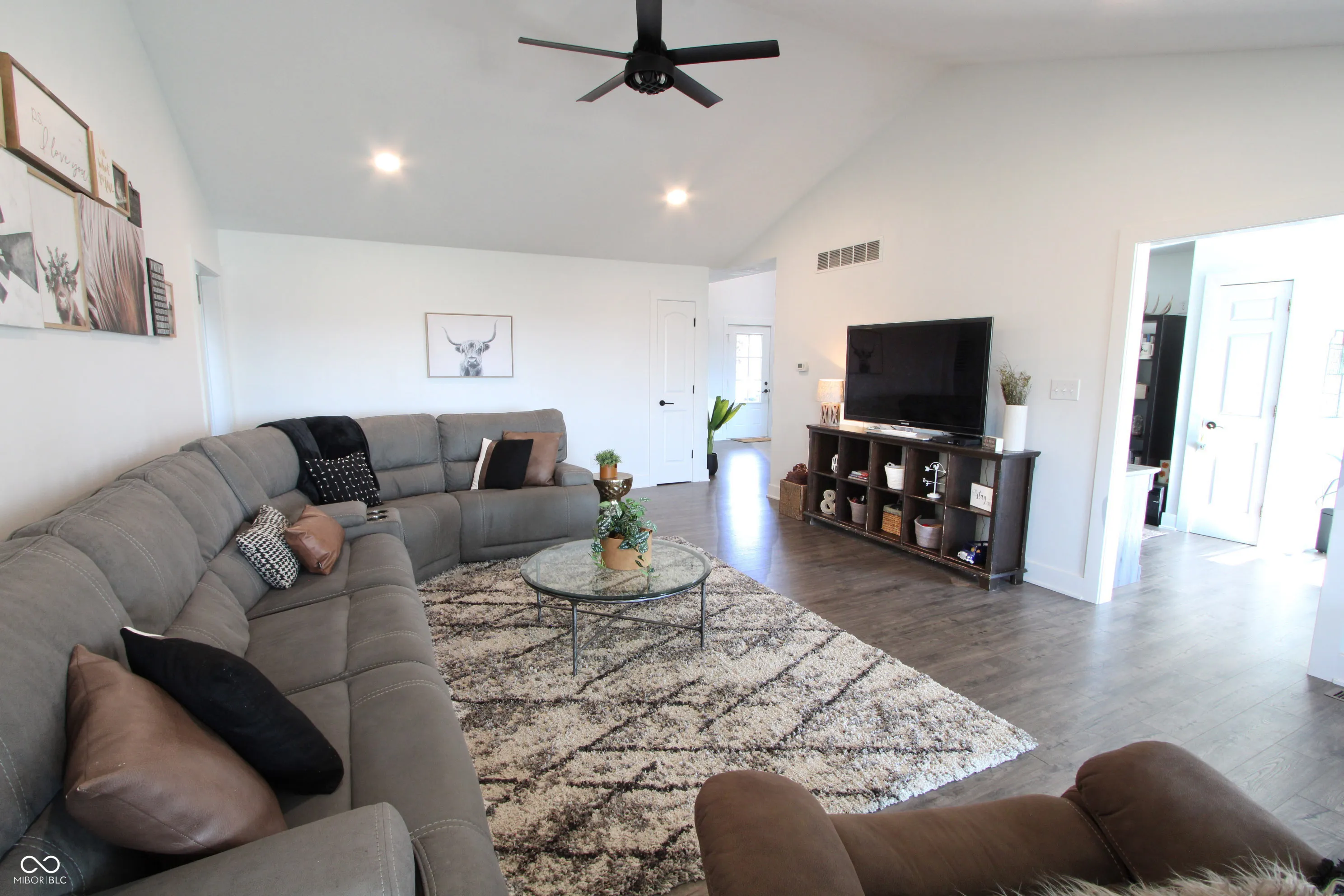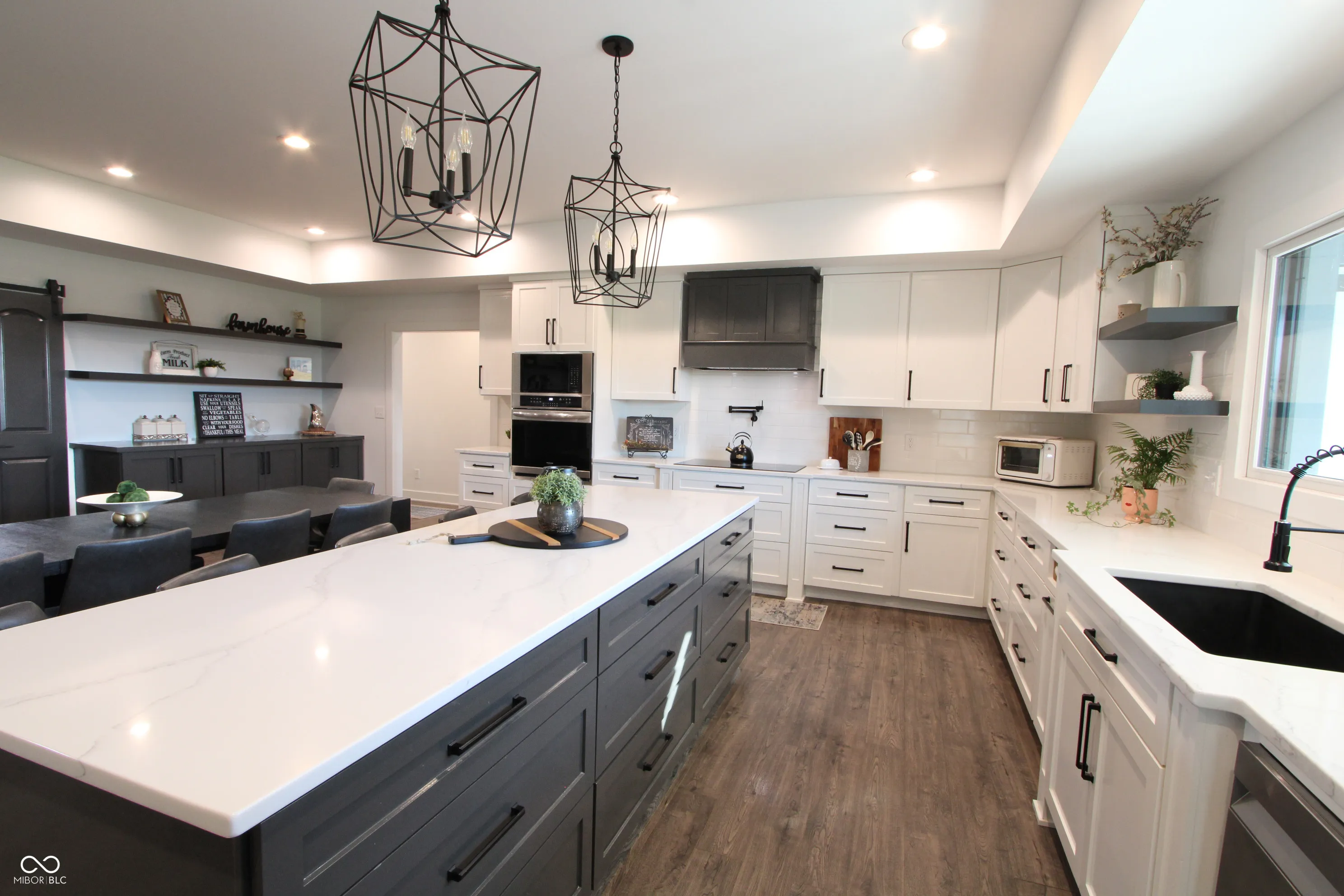 Nestled on 10 private acres, this expansive estate is a fusion of elegance and function. The property is adorned with mature and fruit-bearing trees, including apple, pear, peach, and plum, along with blackberry bushes and a lush 4.5-acre alfalfa field just one year old. Hardie plank siding and brick exterior, new Pella windows, and a welcoming covered front porch set the tone, while the screened-in back porch with ceiling fan is perfect for enjoying serene views. Inside, five spacious bedrooms and four and a half baths await, including dual master suites featuring tray ceilings, walk-in his-and-her closets, and a luxurious master bath with a three-head shower. The gourmet kitchen shines with quartz countertops, a custom cabinet layout, stainless steel appliances, an induction cooktop, and a large island ideal for entertaining. Vaulted ceilings and premium LVP floors flow through the open floor plan, leading to an oversized bonus room, abundant storage, and basement, offering endless potential, 30×36 pole barn included on the property. An oversized four-car garage with extra height doors, ample parking space, and motion lighting complete the estate’s exterior amenities. Originally built in 1993 and thoughtfully updated with an addition in 2022, this residence combines timeless quality with modern luxury.