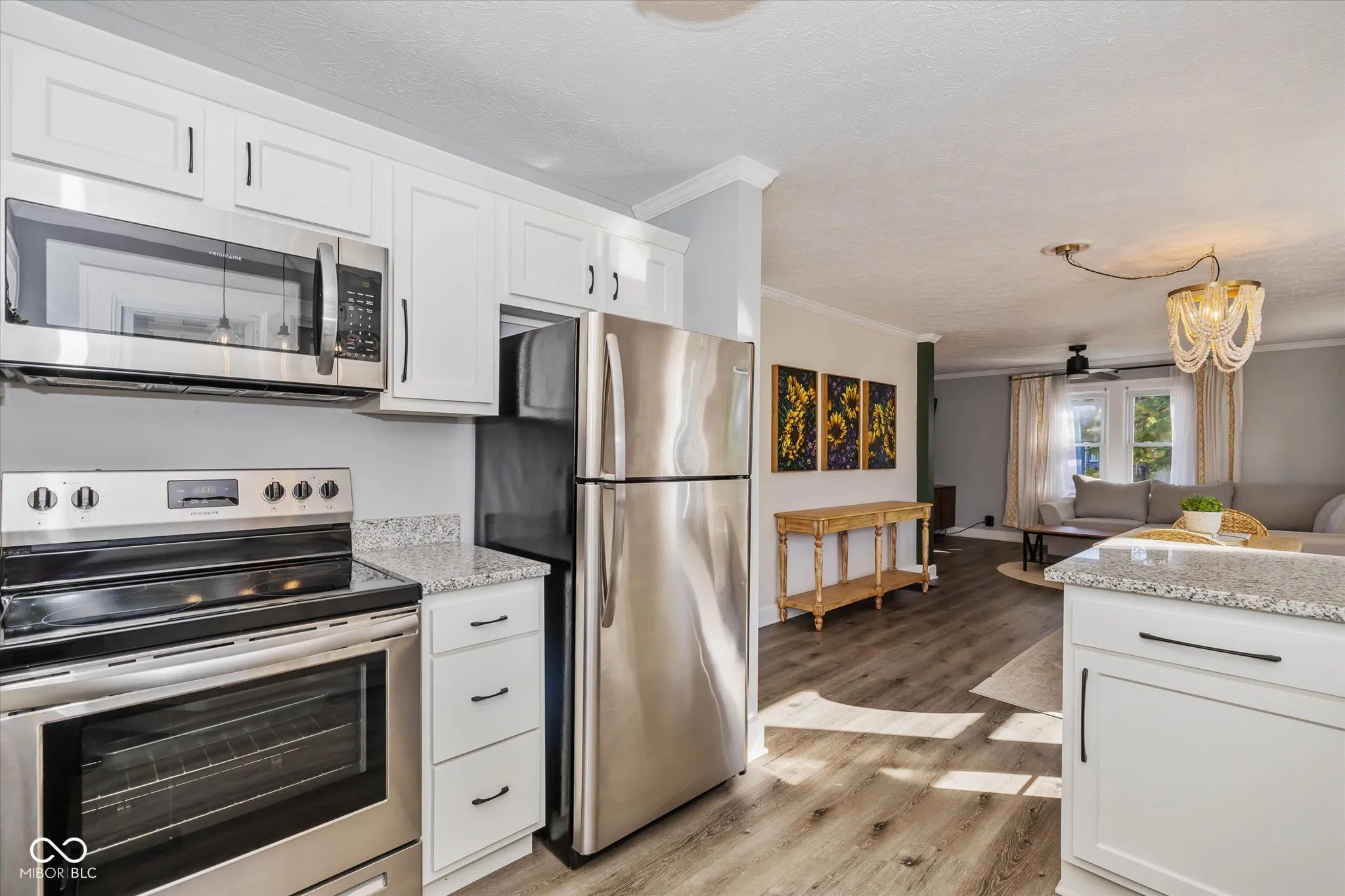 This beautifully updated Irvington home combines modern amenities with timeless character and a partially fenced backyard designed for enjoyment, offering more space than the competition. The open floor plan connects the remodeled kitchen seamlessly to the dining and living areas, making it perfect for gatherings. You’ll love on-trend luxury vinyl plank flooring throughout. The kitchen boasts white shaker cabinets, granite countertops, and stainless-steel appliances. The bathroom has been elegantly updated with a subway tile surround, a new vanity, and sleek contemporary fixtures. Comfort and efficiency are ensured with a newer AC unit and upgraded lighting throughout. The home also includes an inviting enclosed front porch/sunroom and a detached garage with a large covered patio area, ideal for hanging with friends. Key updates include a newer dimensional shingle roof on both the house and garage, as well as fresh paint inside and out. Bedroom 2 has been converted into a spacious walk-in closet with extensive shelving and hanging space, though the seller is happy to restore it to a traditional bedroom if desired. This is a must-see home with thoughtful updates and charming details!