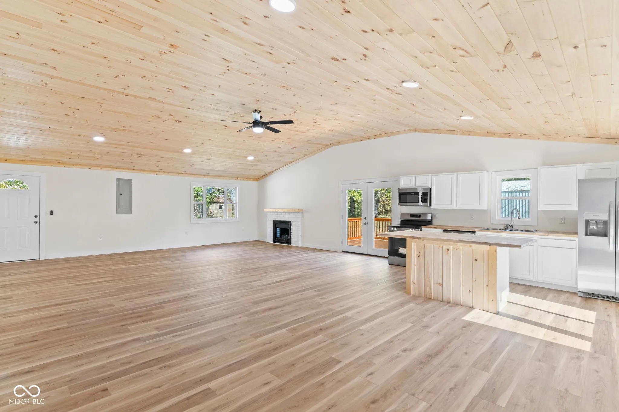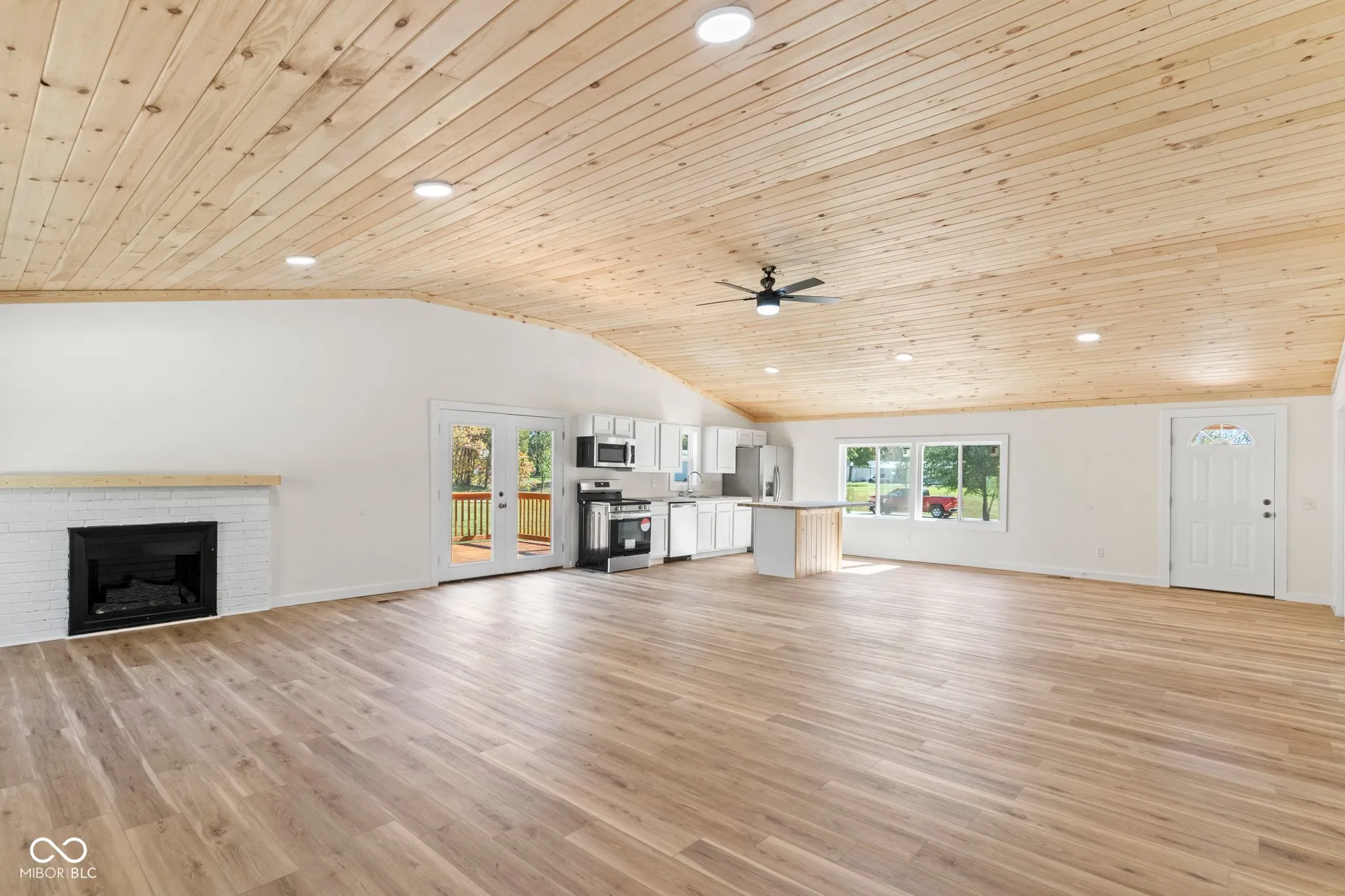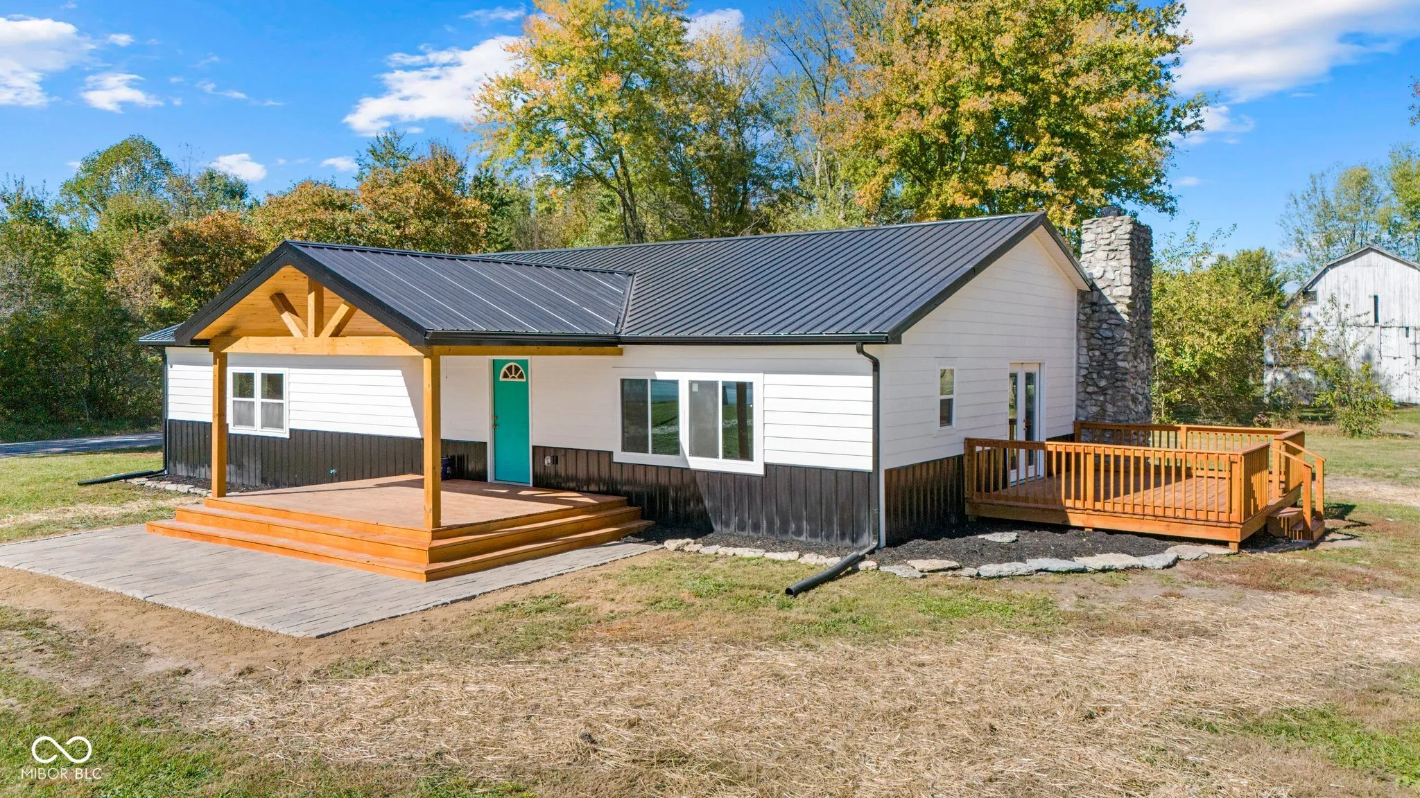 Nothing to do but move in and start living with this completely remodeled 1940 sq ft, 3 bedrooms, 2.5 bath home, sitting on a full acre. As you step in, aside from the open space you’ll notice the white pine, tongue and groove ceiling. Fully equipped kitchen with all new appliances, and a large island. The secondary bedrooms are a jack and jill setup connected by a full bathroom. The primary bedroom features his and her closets and a large en suite with tile floor. Outside you’ll enjoy a large covered porch, deck off the kitchen, great for grilling or relaxing and a nice flat yard. There is a 1200 sq ft pole barn with concrete floor and electric for extra storage or project space. This home features new HVAC, new septic and new roof! Fencing location to be determined by the buyer. Driveway will be paved next week, please don’t park on drive. One of the sellers is a licensed real estate agent