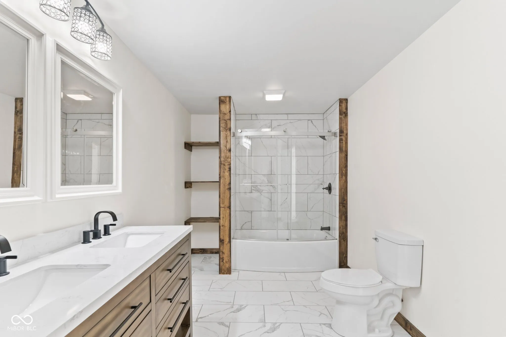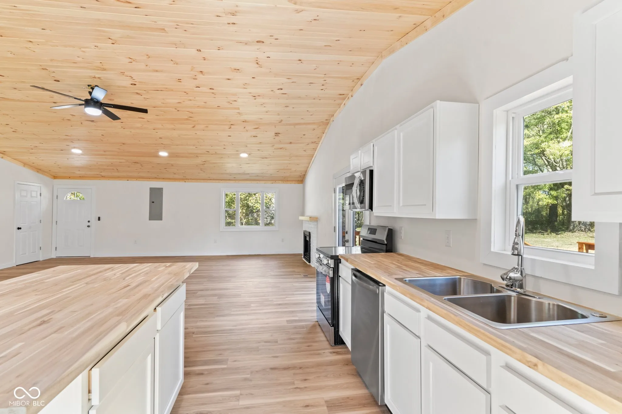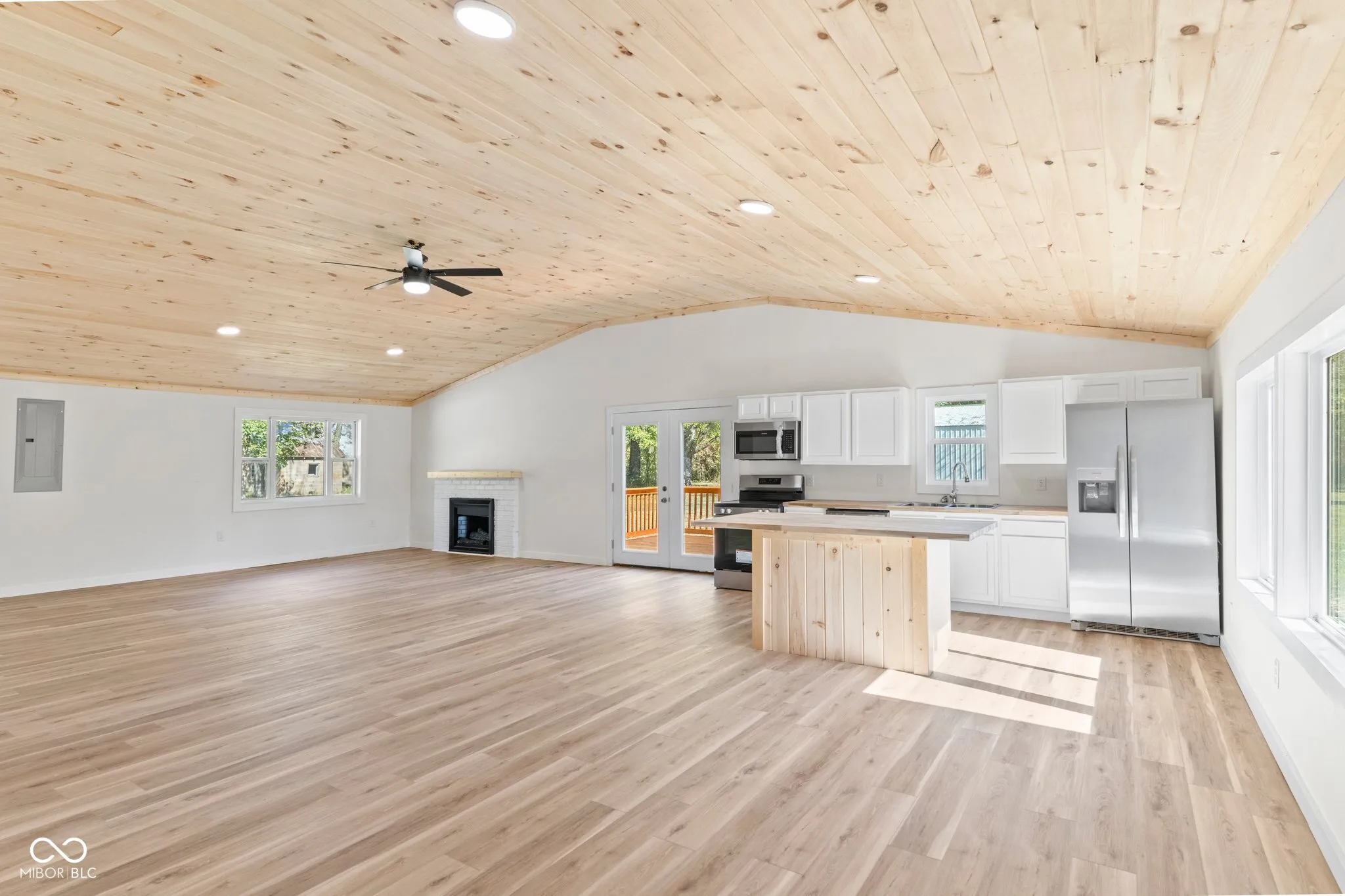 Nothing to do but move in and start living with this completely remodeled 1940 sq ft, 3 bedrooms, 2.5 bath home, sitting on a full acre. As you step in, aside from the open space you’ll notice the white pine, tongue and groove ceiling. Fully equipped kitchen with all new appliances, and a large island. The secondary bedrooms are a jack and jill setup connected by a full bathroom. The primary bedroom features his and her closets and a large en suite with tile floor. Outside you’ll enjoy a large covered porch, deck off the kitchen, great for grilling or relaxing and a nice flat yard. There is a 1200 sq ft pole barn with concrete floor and electric for extra storage or project space. This home features new HVAC, new septic and new roof! Fencing location to be determined by the buyer. Driveway will be paved next week, please don’t park on drive. One of the sellers is a licensed real estate agent