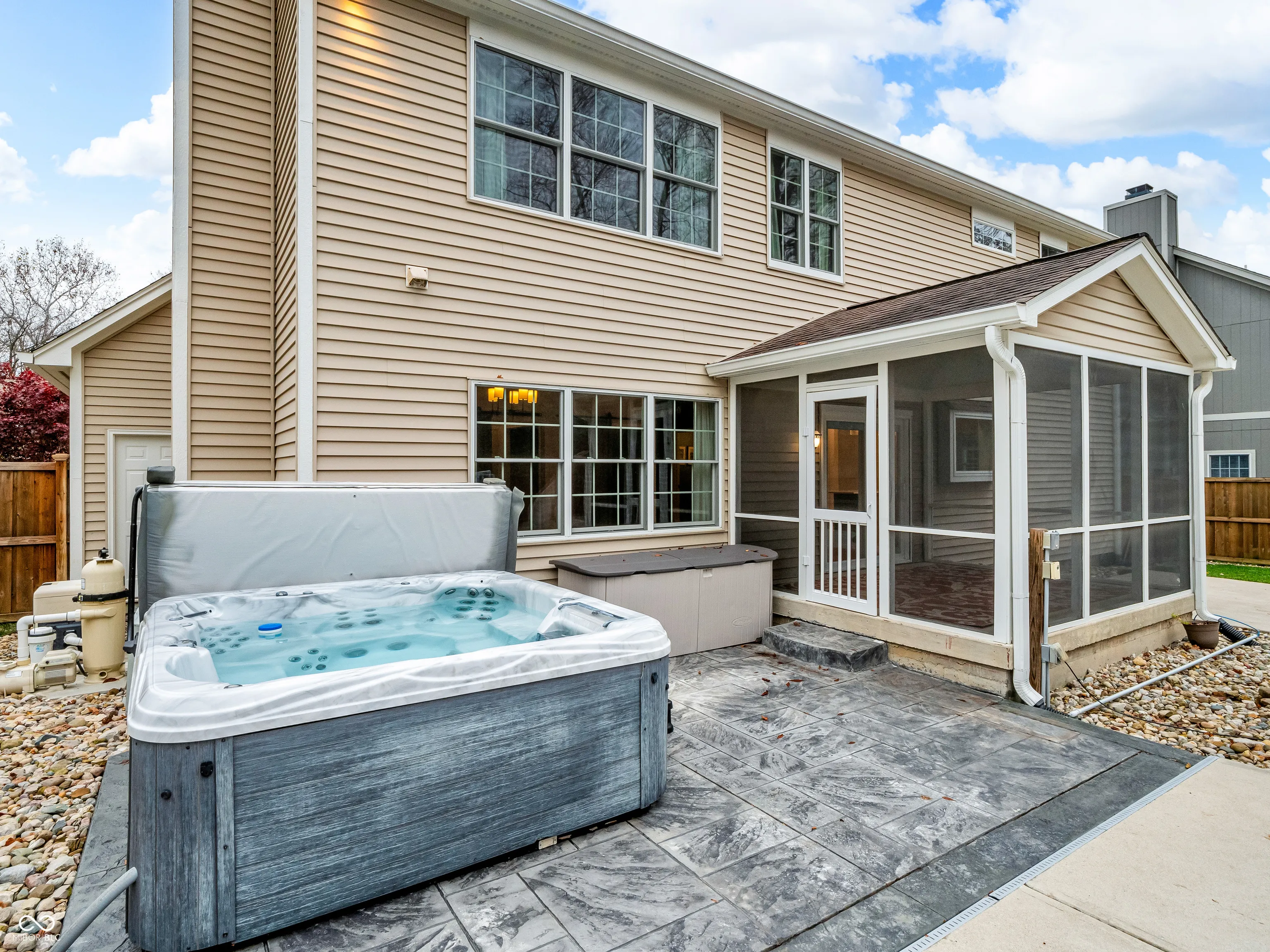 Experience contemporary living in this stunning 4-bedroom, 2.5-bathroom home, thoughtfully updated with premium features and finishes. From the moment you step through the upgraded front door, you’ll be greeted by stylish Pergo laminate flooring that flows seamlessly throughout the home. The gourmet kitchen is a chef’s dream, designed to impress with high-end appliances and over-the-top workspace and cabinetry. The primary bathroom has a heated floor and, along with the second-floor bathroom, has been tastefully upgraded, combining luxury with functionality. Downstairs, you’ll find a spacious 27′ x 24′ carpeted rec room, perfect for hosting gatherings, setting up a home theater, or creating the ultimate playroom. Step through the 12’x10′ screened-in porch to your private backyard retreat, featuring a sparkling in-ground pool, a relaxing hot tub, and a fun typhoon slide, all enclosed by a 6-foot privacy fence for ultimate seclusion. The home also boasts upgraded wood-framed and tinted Pella windows, blending energy efficiency with timeless elegance. This move-in-ready gem is perfect for modern living, entertaining, and unwinding. Don’t wait-schedule your tour today!