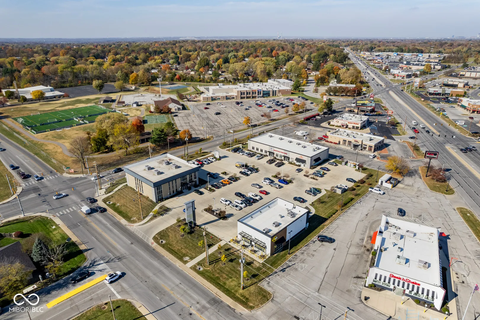 This is the perfect owner/investment property with 3 Buildings on 2 parcels in a high traffic intersection Corner Lot close to US 31. 1102 E Stop 11 Rd: 10,000 SF 2 Story Office Building, Renovated in 2018 (1st Floor: Move-in Ready Office Space, 2nd Floor: Open Space Ready for Renovation). 1108 E Stop 11 Rd: 8,040 SF Office/Retail Building, Built in 2018 (Fully-Occupied Tenants: Armed Forces Recruiters and Grocery Market). 1100 E Stop 11 Rd: 3,105 SF Pizza Restaurant, Built in 2018 (Fully-Occupied Tenant: Azzip Pizza). Concrete Parking Lot, 90 Shared Parking Spots, Multiple Ingress/Egress Points, Flexible Zoning, Signage