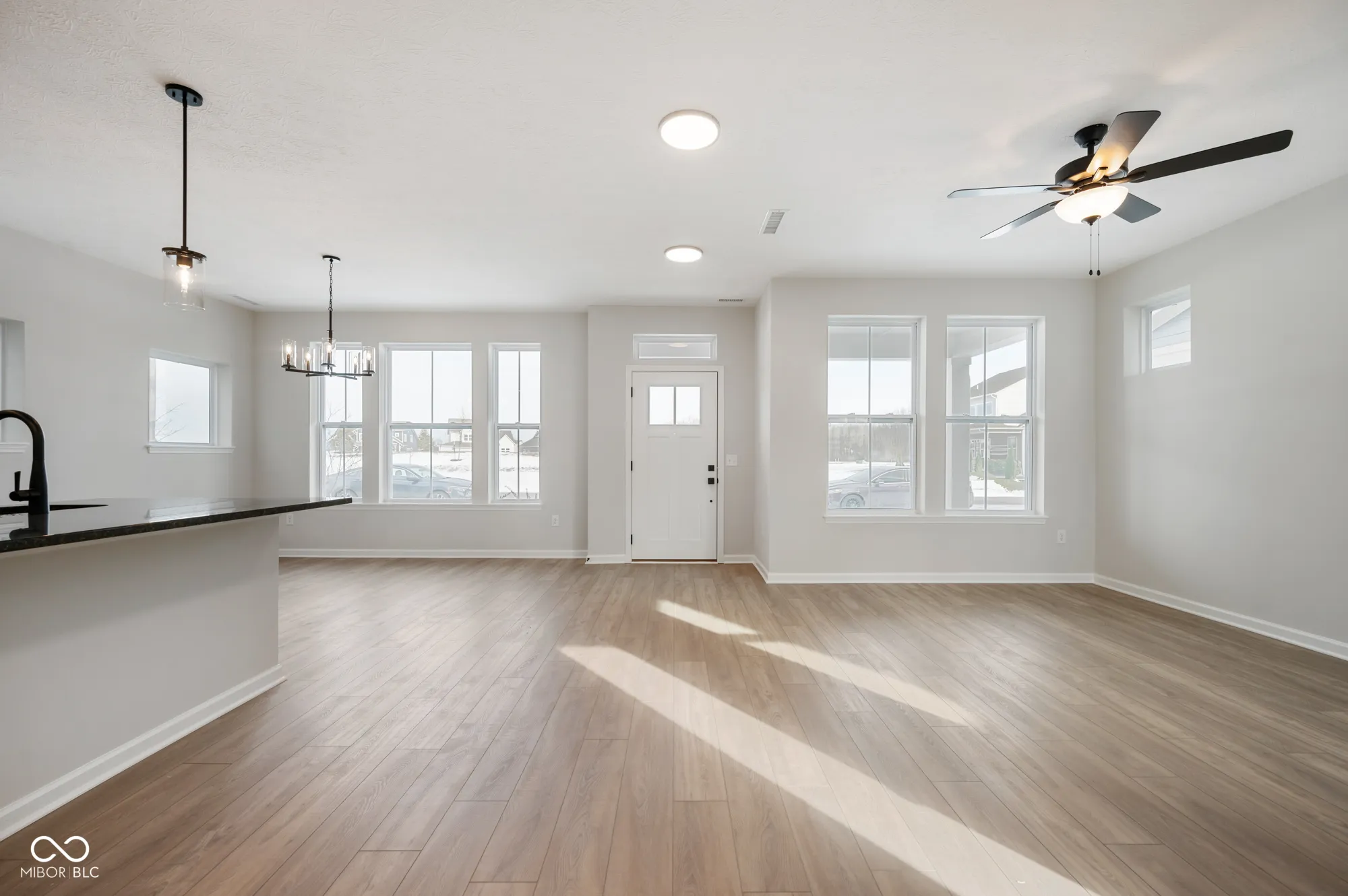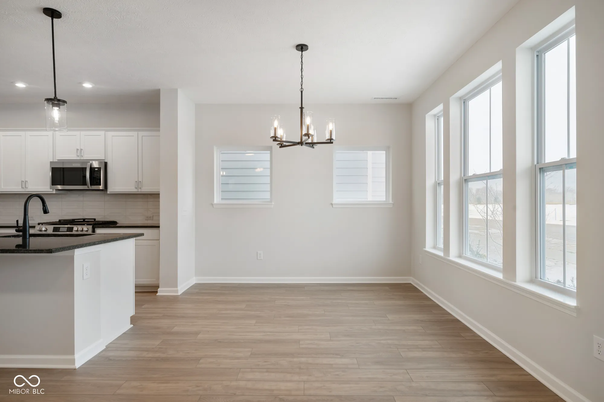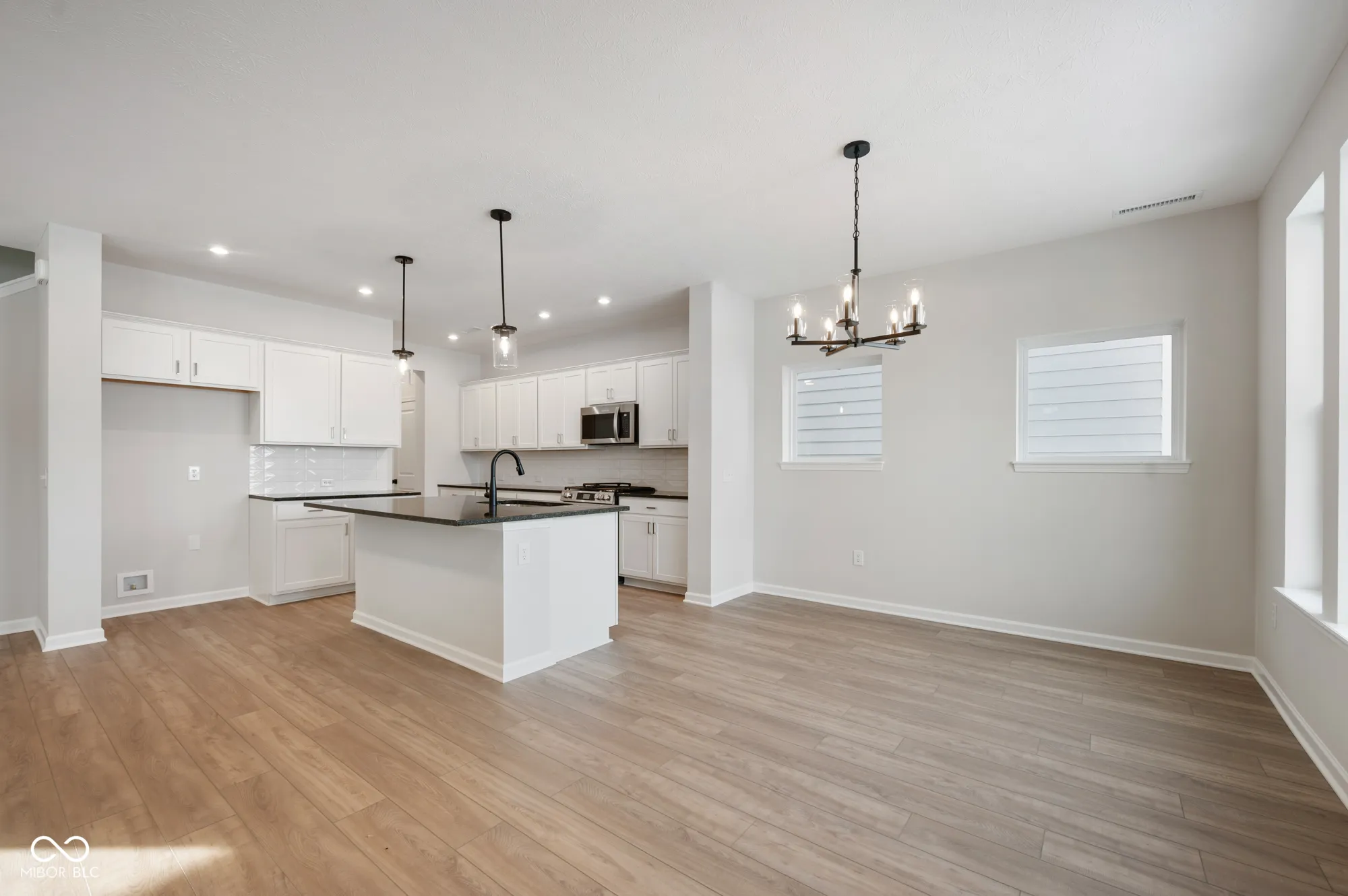 Step into a two-story haven where modern design meets thoughtful functionality. From the moment you enter, you’ll be drawn into an expansive open-concept space that seamlessly blends the kitchen, dining, and family rooms-perfect for entertaining or quiet family nights. A private study, enclosed by elegant French doors, offers a serene workspace or personal retreat, balancing privacy and accessibility. Step outside to a covered porch, ideal for relaxing with a morning coffee or winding down after a busy day. This home has been crafted with careful attention to every detail. The intelligent room placement and open sight lines create a natural flow, ensuring that movement throughout the house feels effortless. Traffic patterns have been meticulously considered, giving each room its own sense of place while maintaining a cohesive design. The massing and proportions evoke a feeling of balance and spaciousness throughout. Upstairs, convenience is at its peak with a utility room strategically located on the same level as the bedrooms. The owner’s retreat is a grand sanctuary, featuring a stunning tray ceiling that adds a touch of luxury. The owner’s bath is designed for relaxation and function, complete with a double sink vanity and a spacious walk-in closet, perfect for organizing your wardrobe with ease. This home offers not only comfort and convenience but also a space that feels tailored to the rhythms of your life.