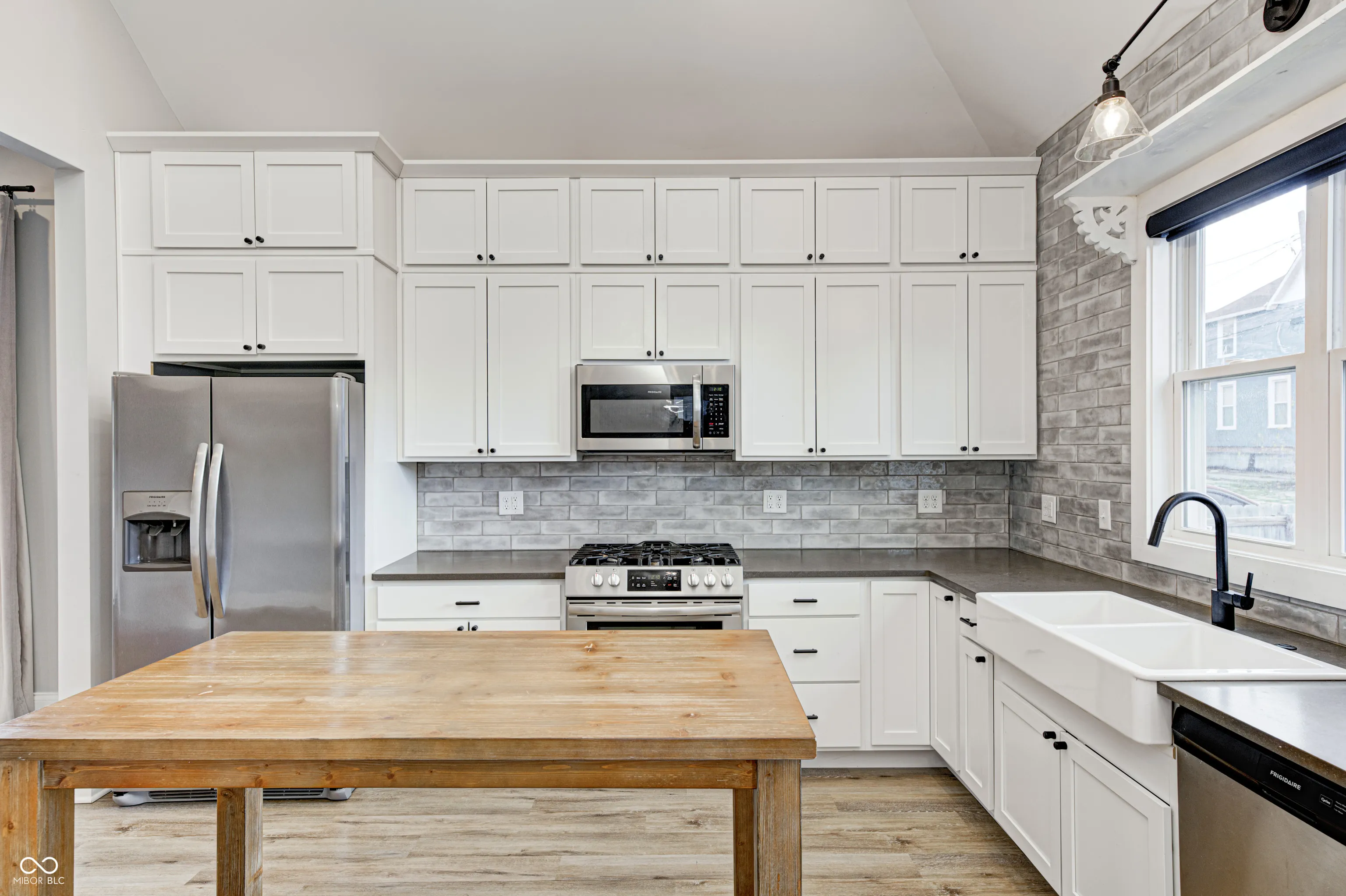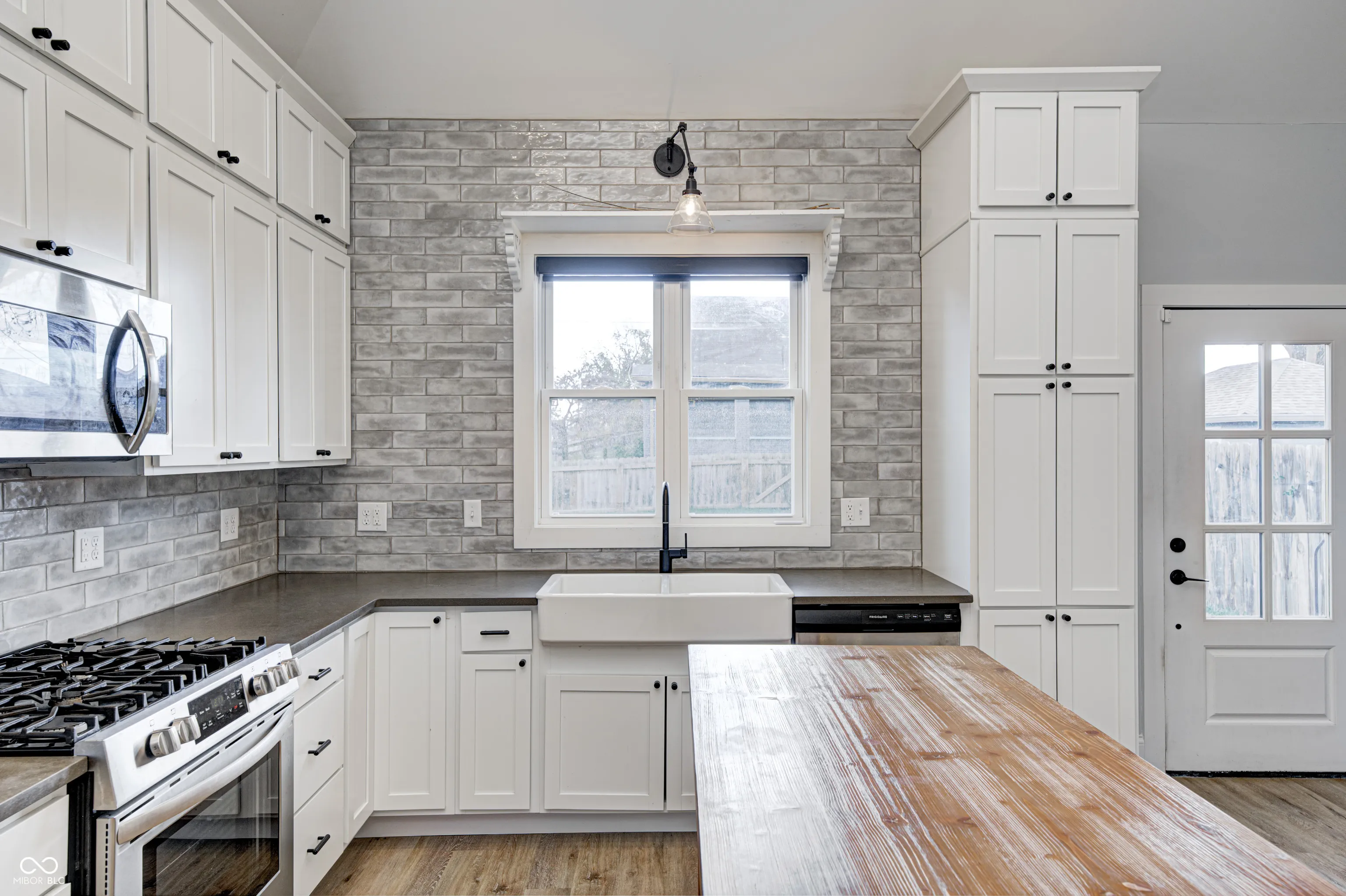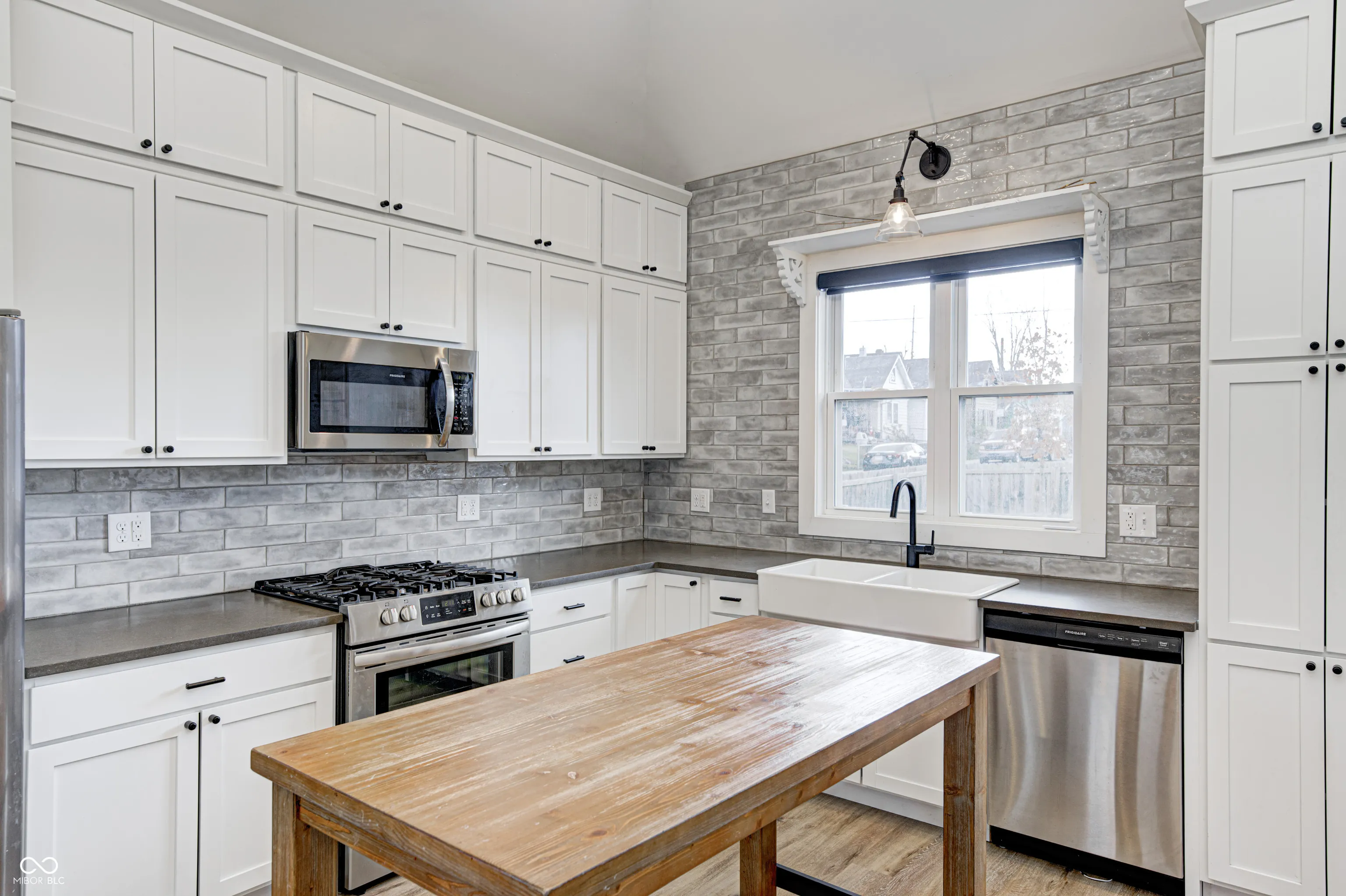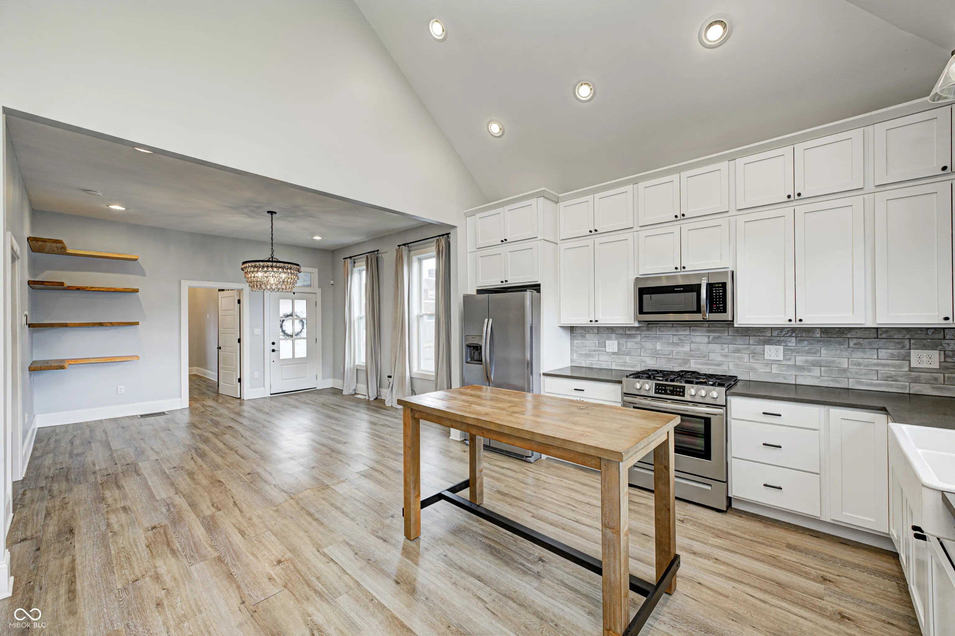 Welcome to this beautiful house in Near Southside. This is a charming house with a tasteful modern style completed by 2 Chicks and A Hammer. The primary bedroom with en suite on the main floor has a double vanity, beautiful marble tile and matte black fixtures. You’ll love the seamless flow from living room to kitchen perfect for entertaining. You’ll have no trouble communicating with your guests while preparing a meal or drinks in this gorgeous kitchen outfitted with quartz countertops, excellent stainless steel appliances and high vaulted ceiling. Enjoy the spacious fenced in backyard that is a blank slate for whatever your imagination can dream up. Plenty of private parking in the back for you and your guests. This house offers so many opportunities. You’re sure to instantly notice the custom corner shelves in the living room, done by local woodworker Iron Timbers. You can see the history of this house on HGTV’s Good Bones season 6 episode 1.