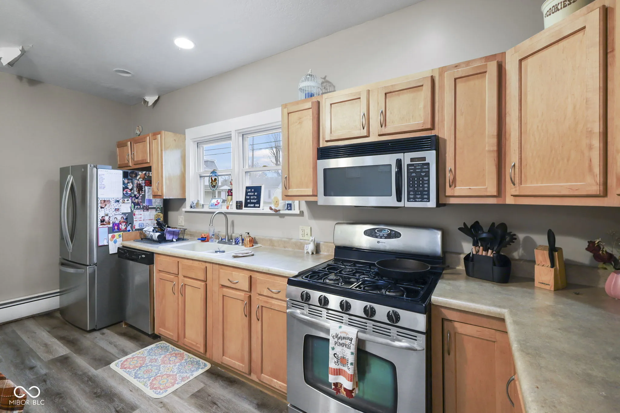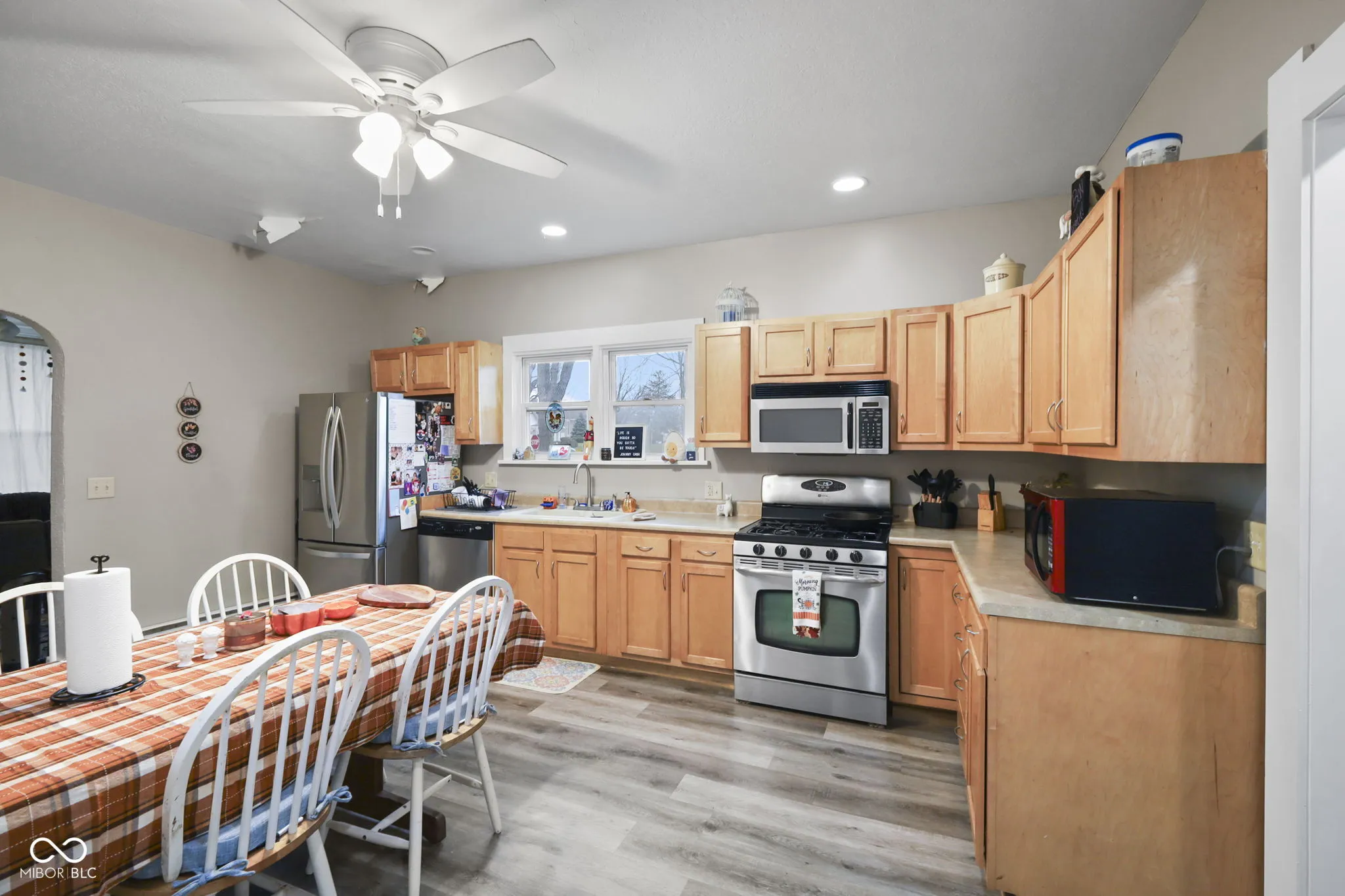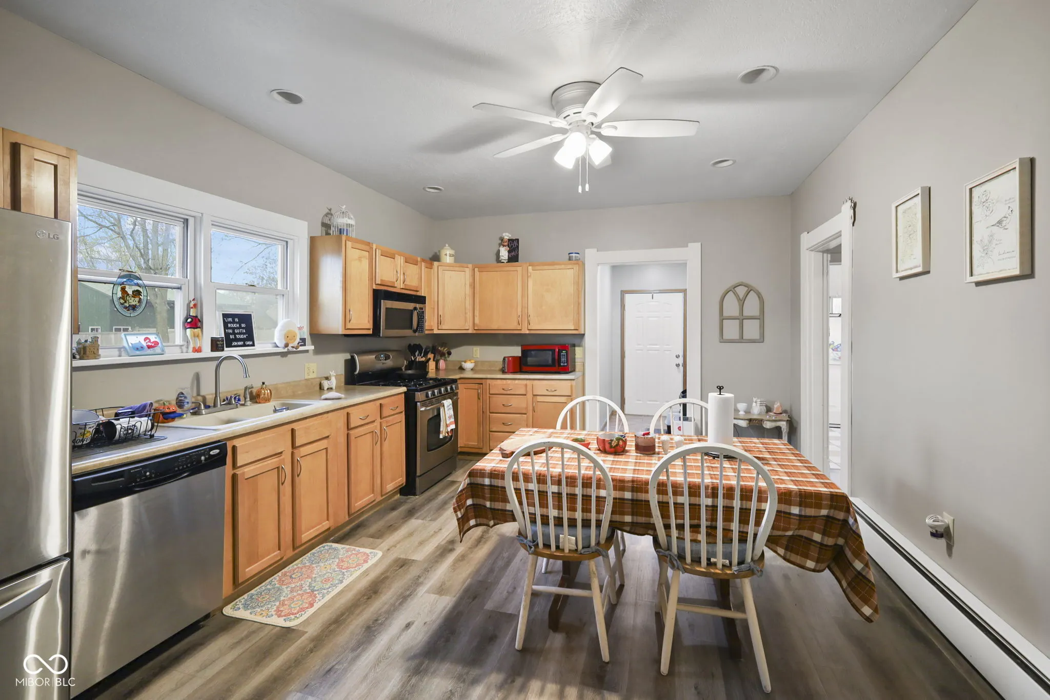 This cozy 3-bedroom, 1-bathroom home offers a welcoming covered front porch and a nice-sized yard, perfect for outdoor activities. Inside, you’ll find a comfortable living room and a kitchen with plenty of cabinetry for storage, plus all kitchen appliances are included with the home. The large bathroom features a tiled Jacuzzi tub, a stand-up shower, and a double-sink vanity-providing both luxury and convenience. Newer flooring flows throughout the home, and each of the three bedrooms offers spacious closets for ample storage. Located close to town and with easy access to I-69, this home combines comfort, style, and convenience.