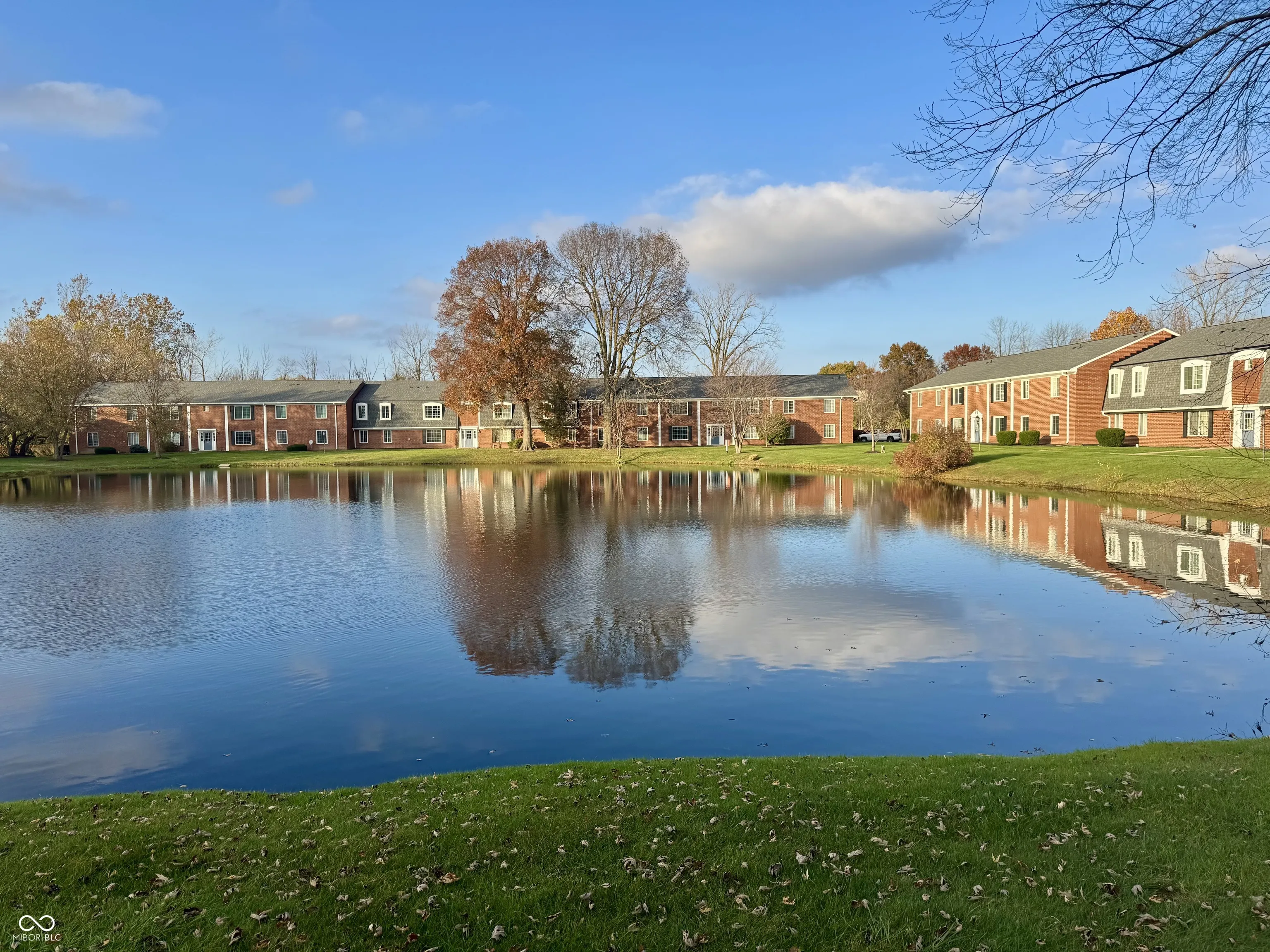 Park Hoover Village is an Indy condo association with 164 large units in 16 buildings on 23 lush acres just west of the popular Holiday Park and the Orchard Country Day School. 851-B Indigo is in the desirable north end of the complex and has 3 of its rooms with views directly on a delightful large pond with concrete circular sidewalks. This desirable first floor unit is 1,806 square feet with 3 bedrooms/2 full baths with spacious rooms plus a privacy fenced rear patio. Have peace of mind with brand new H2O heater, new furnace & AC, new roof & gutters. For rooms that don’t have tiled or wood floors, seller is offering a Tish Flooring $3,300 carpet allowance so the buyer can have brand new carpet that is customized to taste. Roomy eat-in kitchen has top of the line Bosch dishwasher, 4-door Haier stainless refrigerator/freezer. Main Bedroom is a large 17×15 large ensuite with newer roll-in shower. Previously, this owner/seller replaced all the windows with attractive white vinyl with mullions. The Association has vast amounts of lined surface parking, as well as carports that can be rented for $15/month. The abundant mature trees and walkways make for a naturalist’s paradise for walking and birdwatching. The entry door to 851 Indigo leads to a large foyer with mailboxes and entrances to 4 units. Community pool will be closed for 2025 season. The number of rental units allowed by bylaws are currently at maximum. Current financials, association documents, and the PROSPECTUS are in the Supplements section of the BLC.