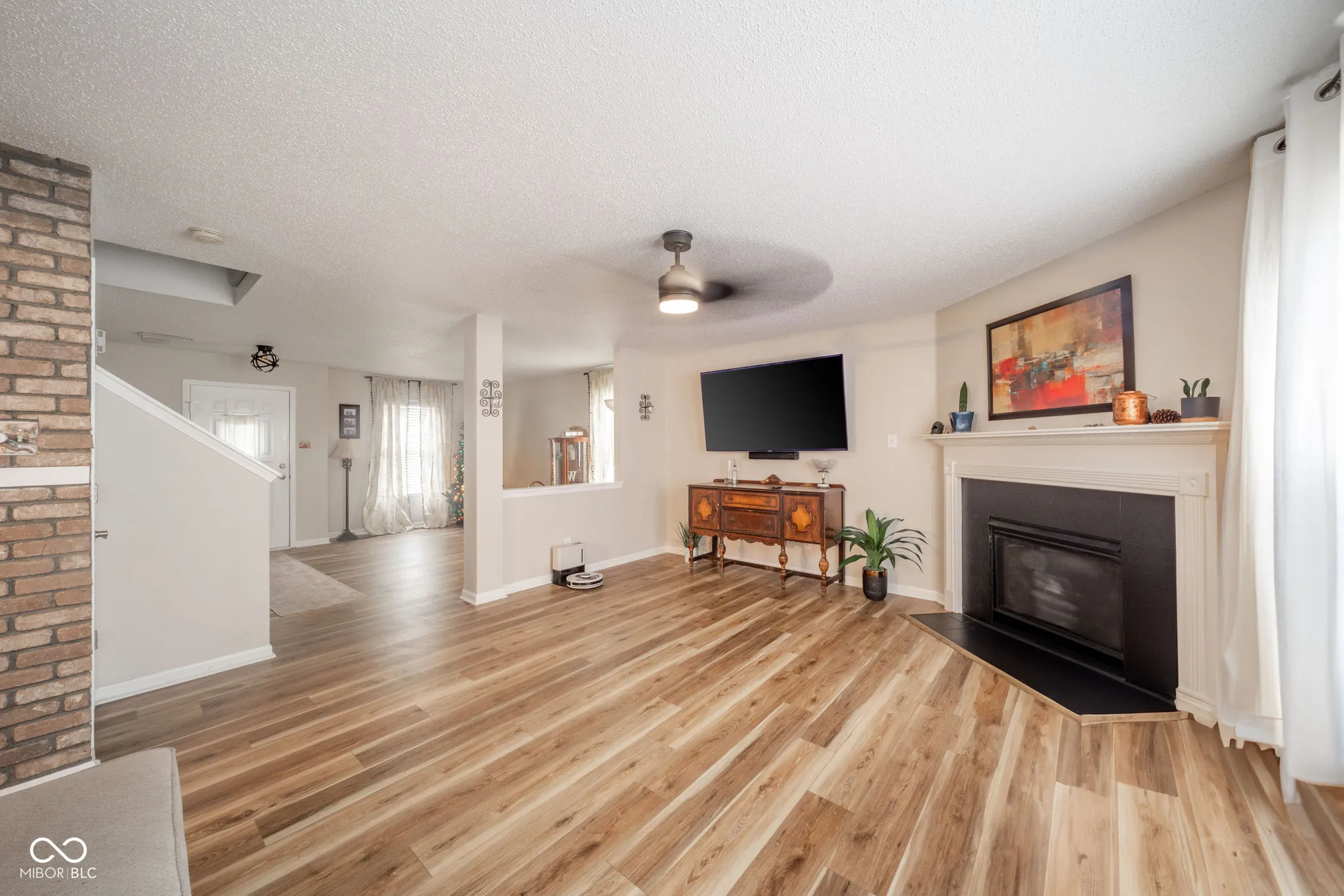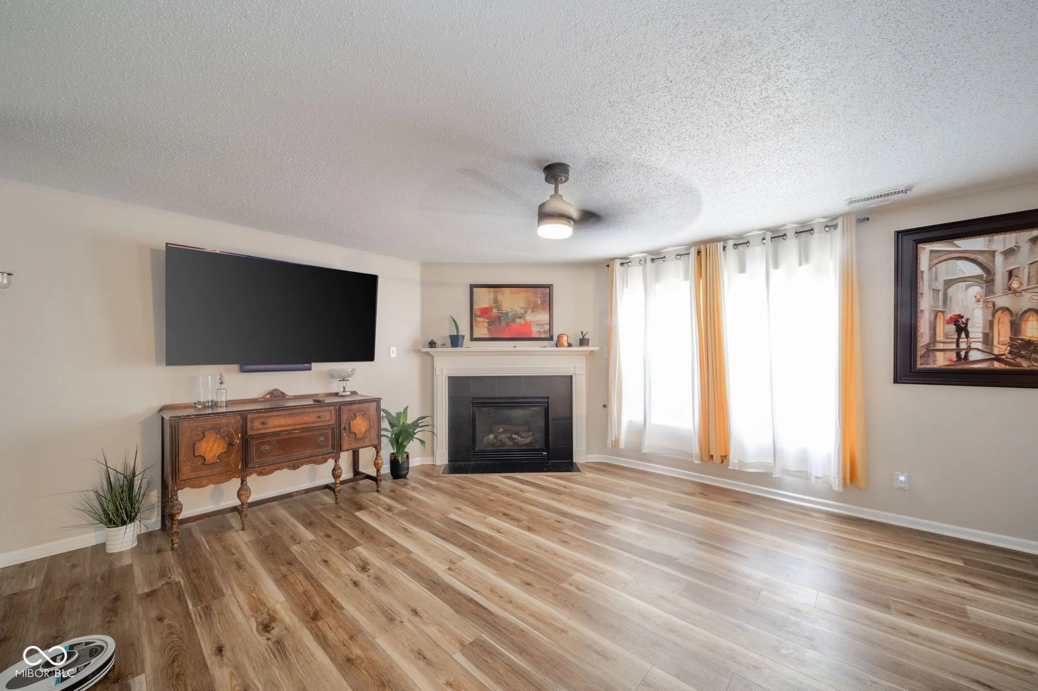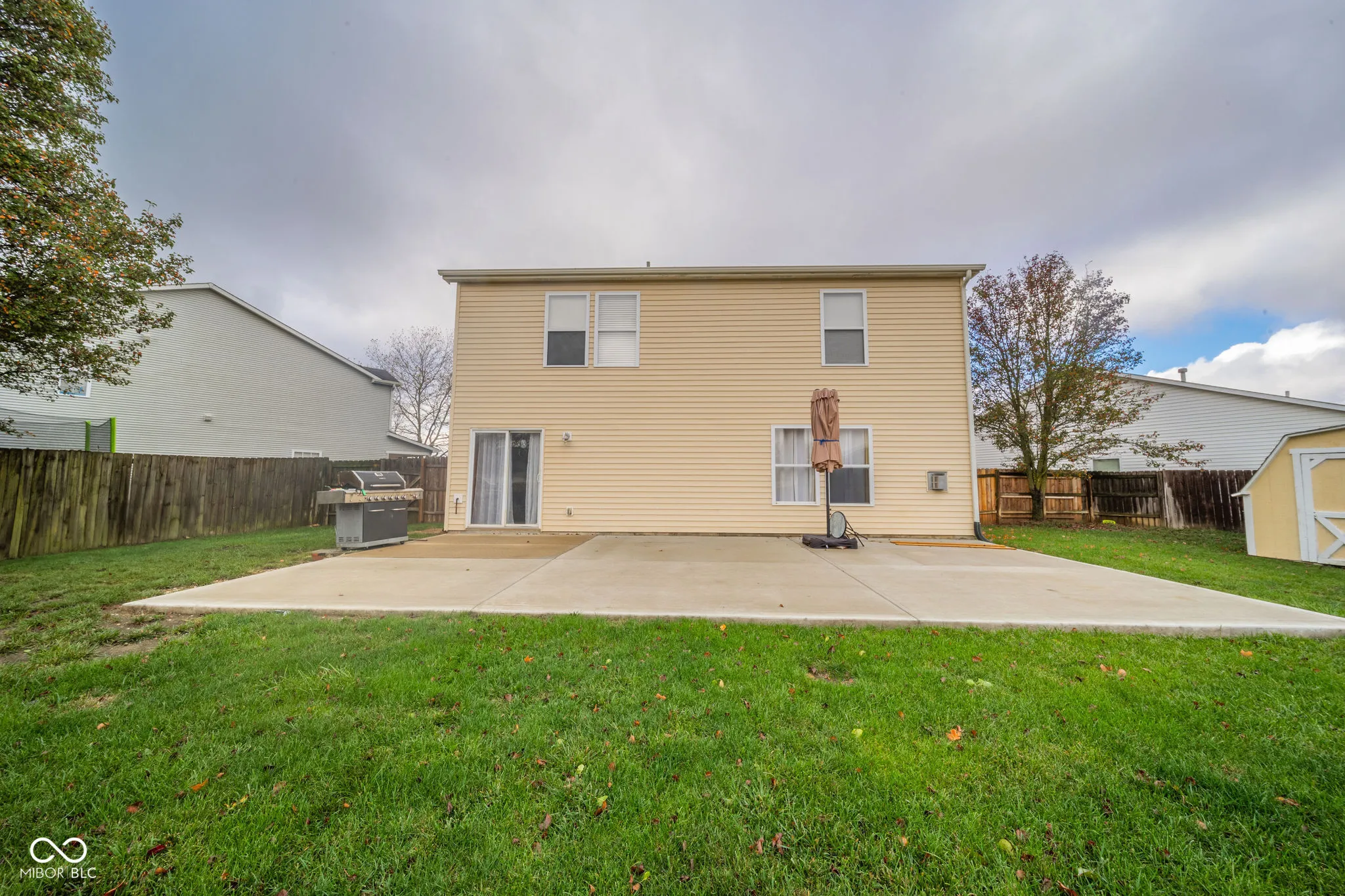 This stunning 3-bedroom, 2.5-bathroom two-story home offers almost 2,100 square feet of refined living space. Elegant laminate flooring complements the spacious living room, dining room/great room with gas fireplace, and beautifully updated kitchen with center island, solid surface countertops, stainless steel appliances, and sleek lighting. Unwind in the tranquil backyard with newer 28×18 concrete patio, fenced-in yard, and quaint mini barn. Upstairs, find a loft ideal for relaxation, laundry room, and primary bedroom with en-suite, double sinks, walk-in closet, and garden tub/shower. Welcome to your perfect retreat and so much more.