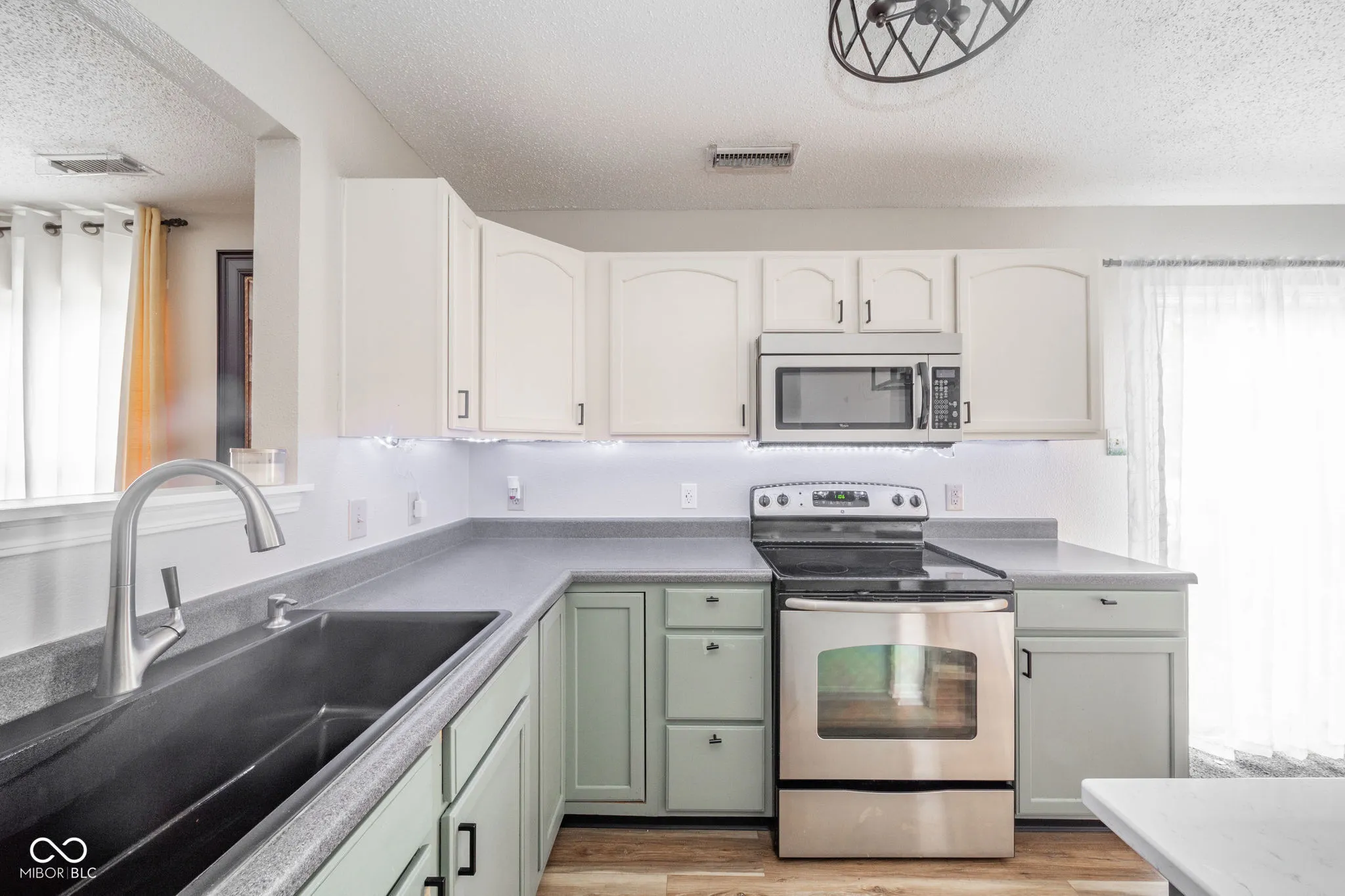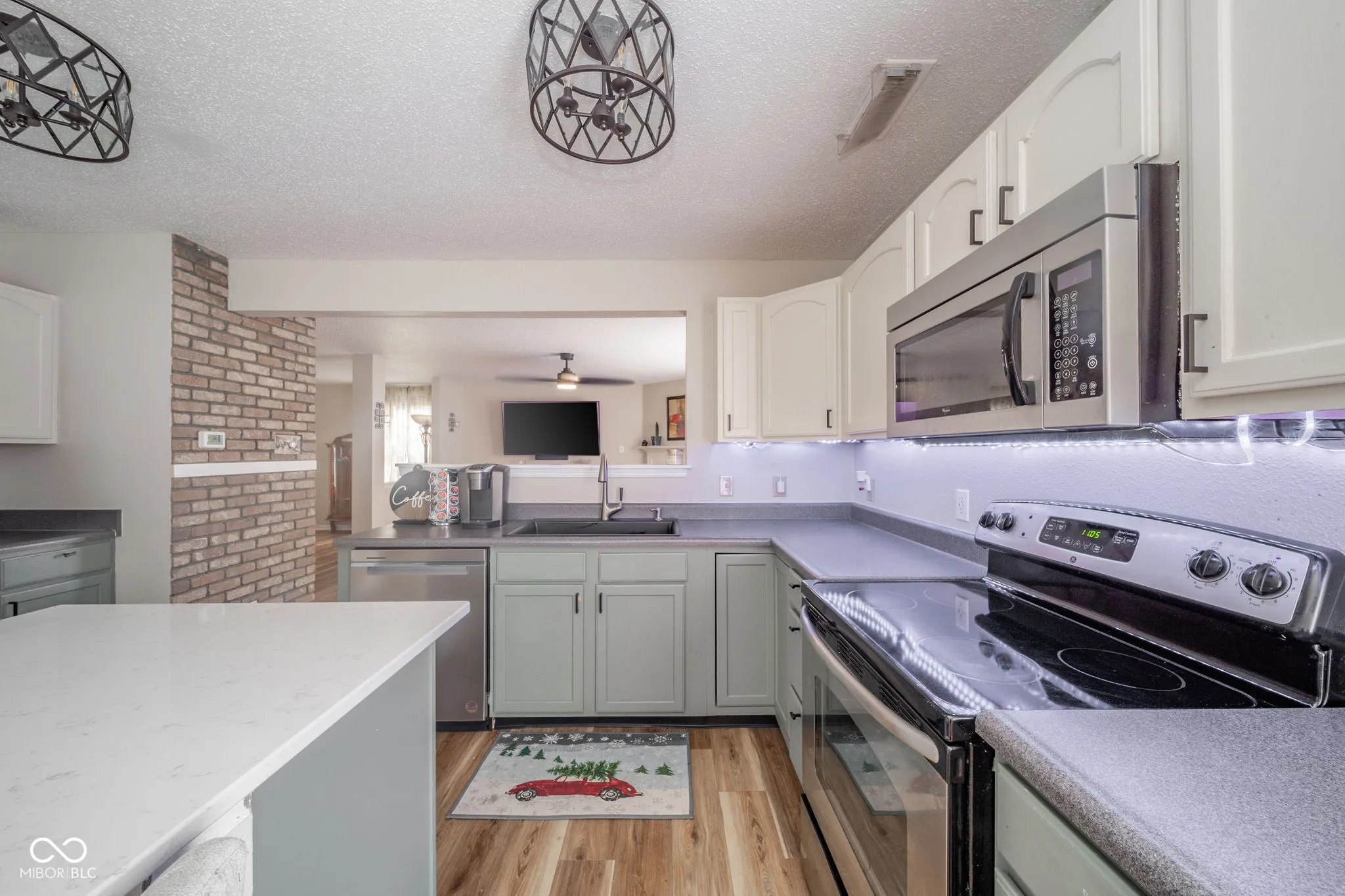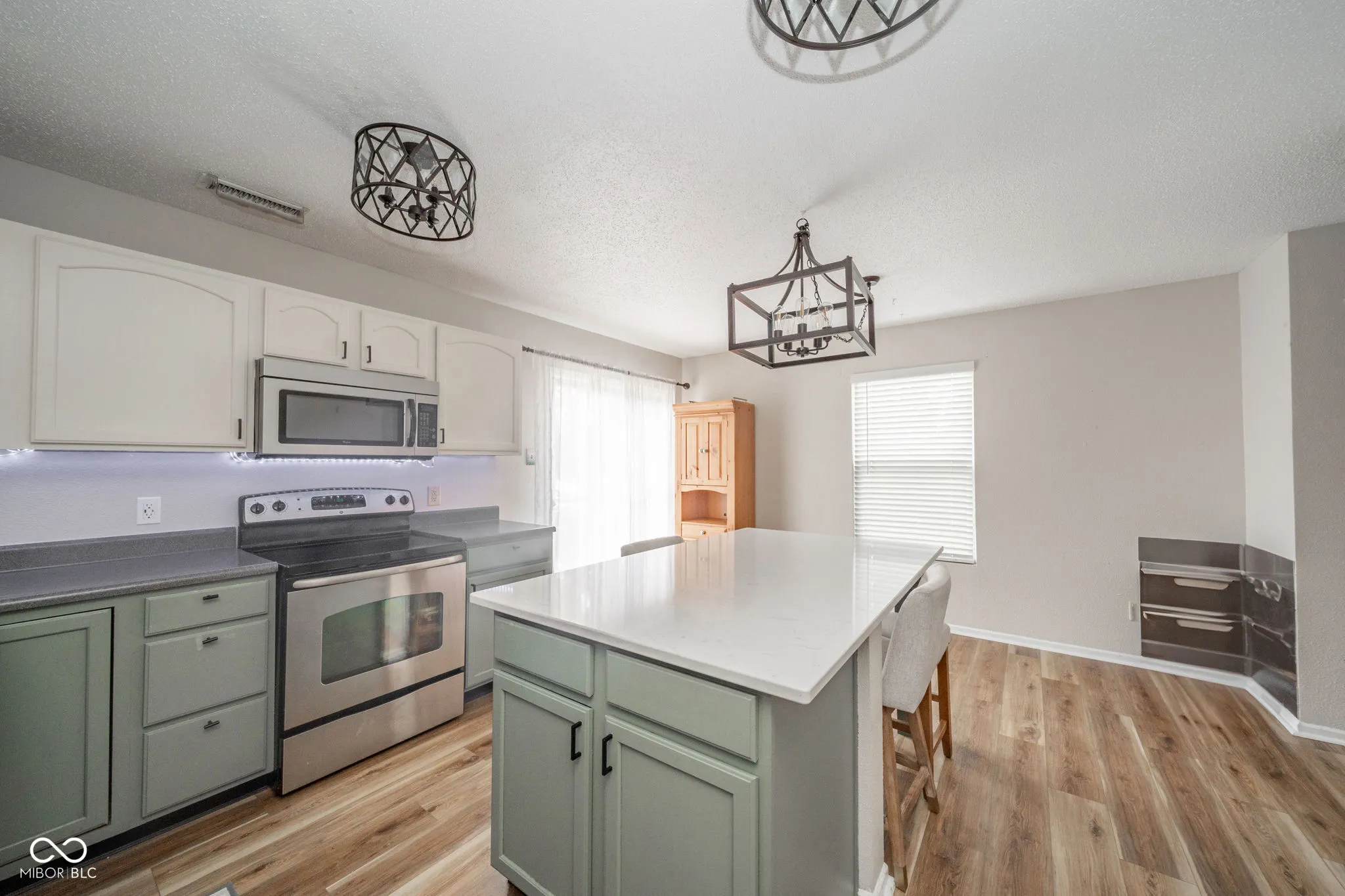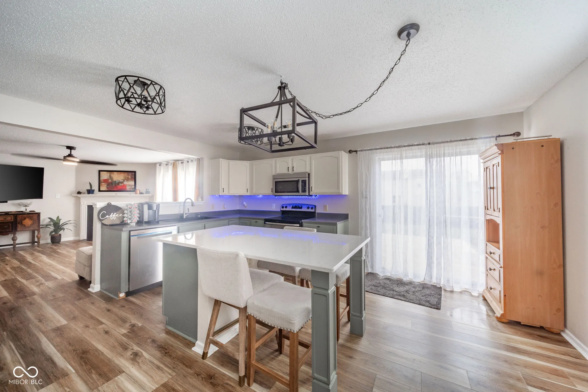 This stunning 3-bedroom, 2.5-bathroom two-story home offers almost 2,100 square feet of refined living space. Elegant laminate flooring complements the spacious living room, dining room/great room with gas fireplace, and beautifully updated kitchen with center island, solid surface countertops, stainless steel appliances, and sleek lighting. Unwind in the tranquil backyard with newer 28×18 concrete patio, fenced-in yard, and quaint mini barn. Upstairs, find a loft ideal for relaxation, laundry room, and primary bedroom with en-suite, double sinks, walk-in closet, and garden tub/shower. Welcome to your perfect retreat and so much more.