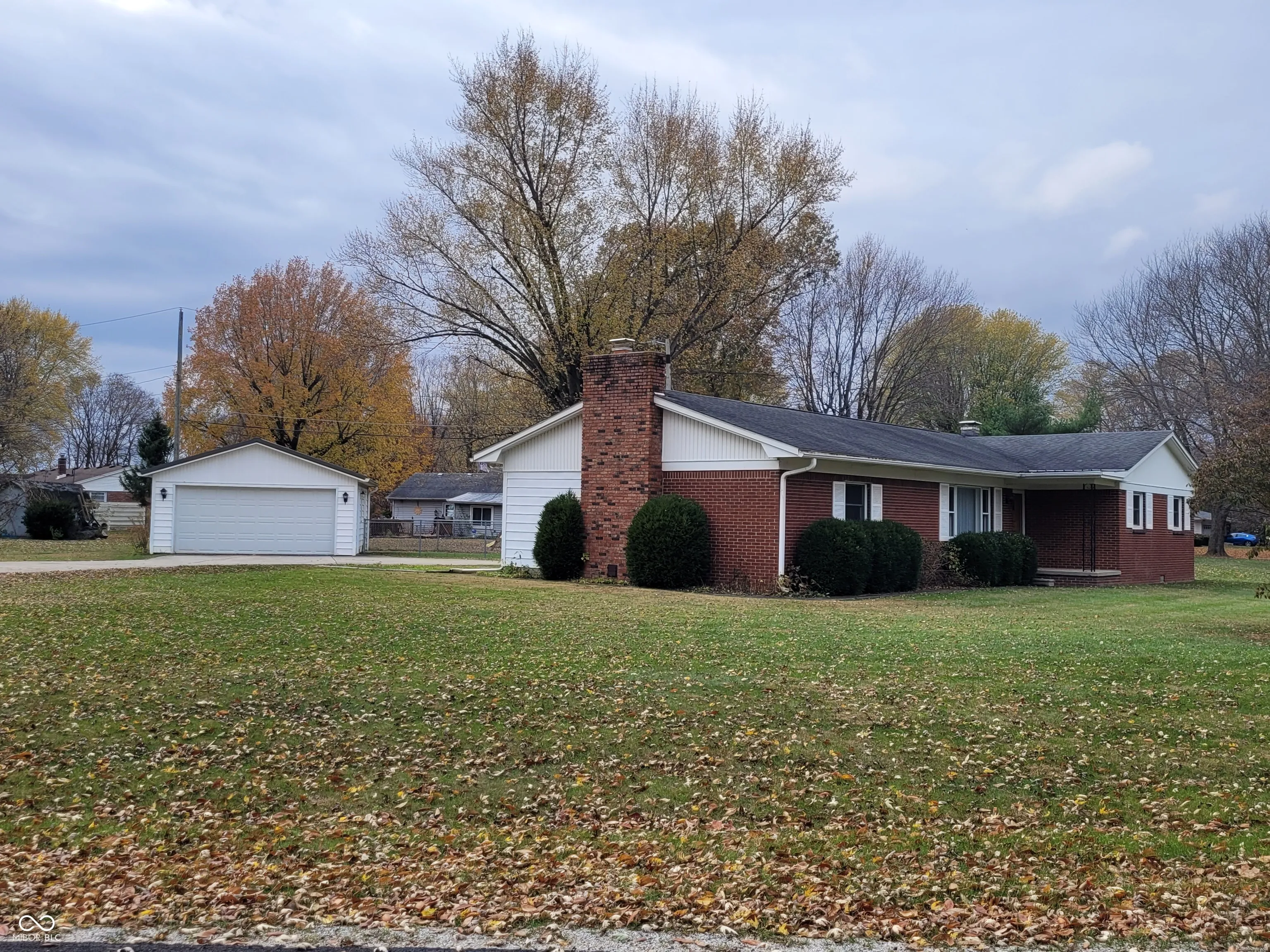 Located near the Sugar Creek Trail, a large driveway leads to the 2-car detached garage with electricity and a metal roof. This brick home features hardwood floors in several rooms. Inside is a large brick wood burning fireplace in the expansive family room, in addition to a bay window. A wet bar is also included in the family room, making this a nice area for entertaining or simply relaxing. The kitchen/dining room combo overlook the backyard which is partially fenced. There is a washer/dryer hook up available on the main level. The basement is ready to finish to your liking. It has been partially framed, allowing for an additional rooms, if you choose. A sink and additional laundry hook-ups are available in the basement. A new gas water heater was installed in October ’24. The gas furnace is no more than 2 years old and there is newer pex plumbing.