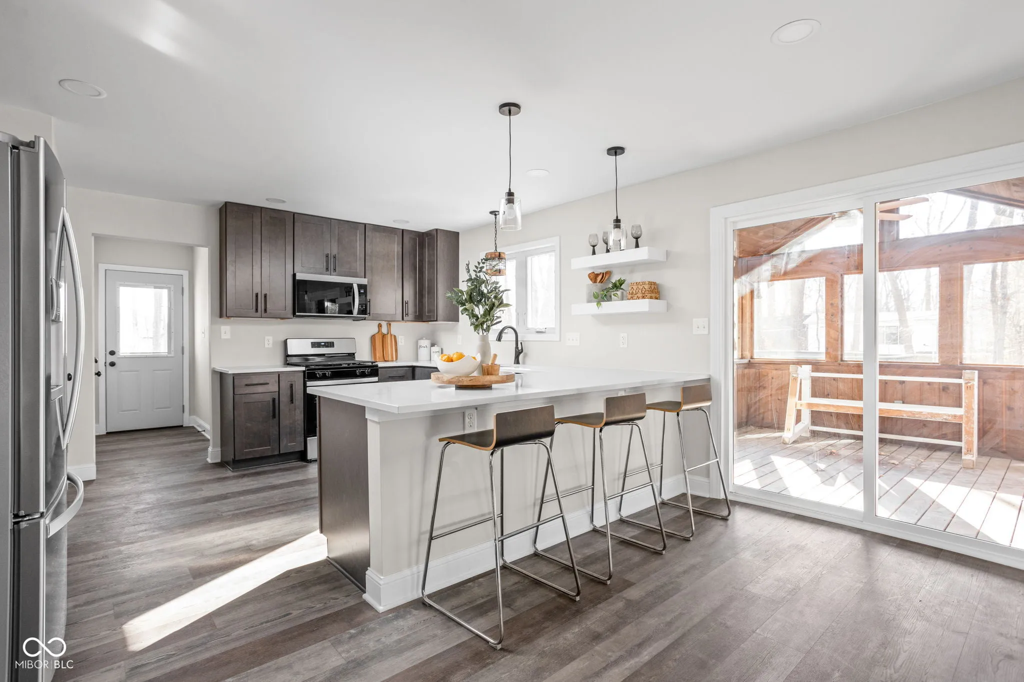 Tucked away among mature trees and just north of Fort Harrison State Park, this 4-bedroom, 2.5-bath home is a perfect blend of charm and functionality. From the moment you step inside, you’ll feel at home in the thoughtfully designed spaces. The heart of the home is a beautifully renovated kitchen featuring sleek countertops, brand new appliances, and tons of cabinetry, which is perfect for hosting gatherings or enjoying family meals. A cozy fireplace anchors the living room, creating a warm and inviting atmosphere, while the main-floor office offers a private space for work or study. Upstairs, you’ll find 4 bedrooms and 2 baths. The primary suite is a true retreat with 2 spacious walk-in closets and an ensuite bath. The partial basement is ideal for extra living space, a playroom, or storage, offering endless possibilities! Step outside to enjoy the screened-in porch, a peaceful spot to sip coffee and take in the serene, tree-lined views. The attached garage adds convenience, and the surrounding natural setting ensures a sense of privacy while keeping you close to schools, shopping, and local amenities. This home has everything you need to settle in and create lasting memories. Many updates: flooring (’24), paint (’24), most windows (’24), all kitchen appliances (’24), furnace (’24), gutters (’24), roof (’18).