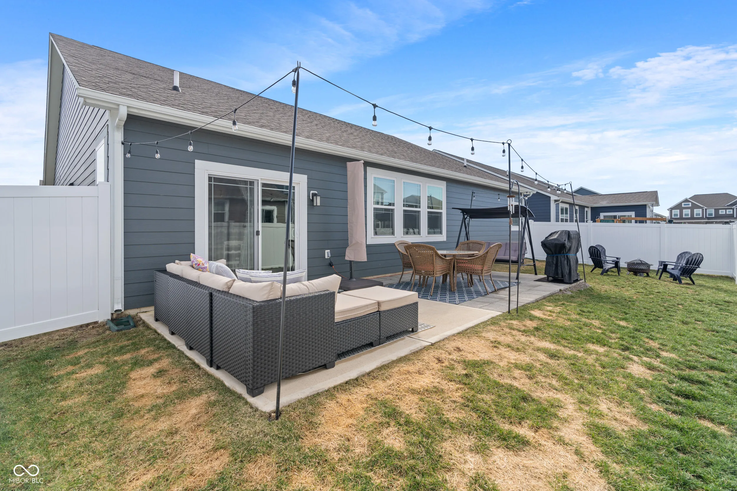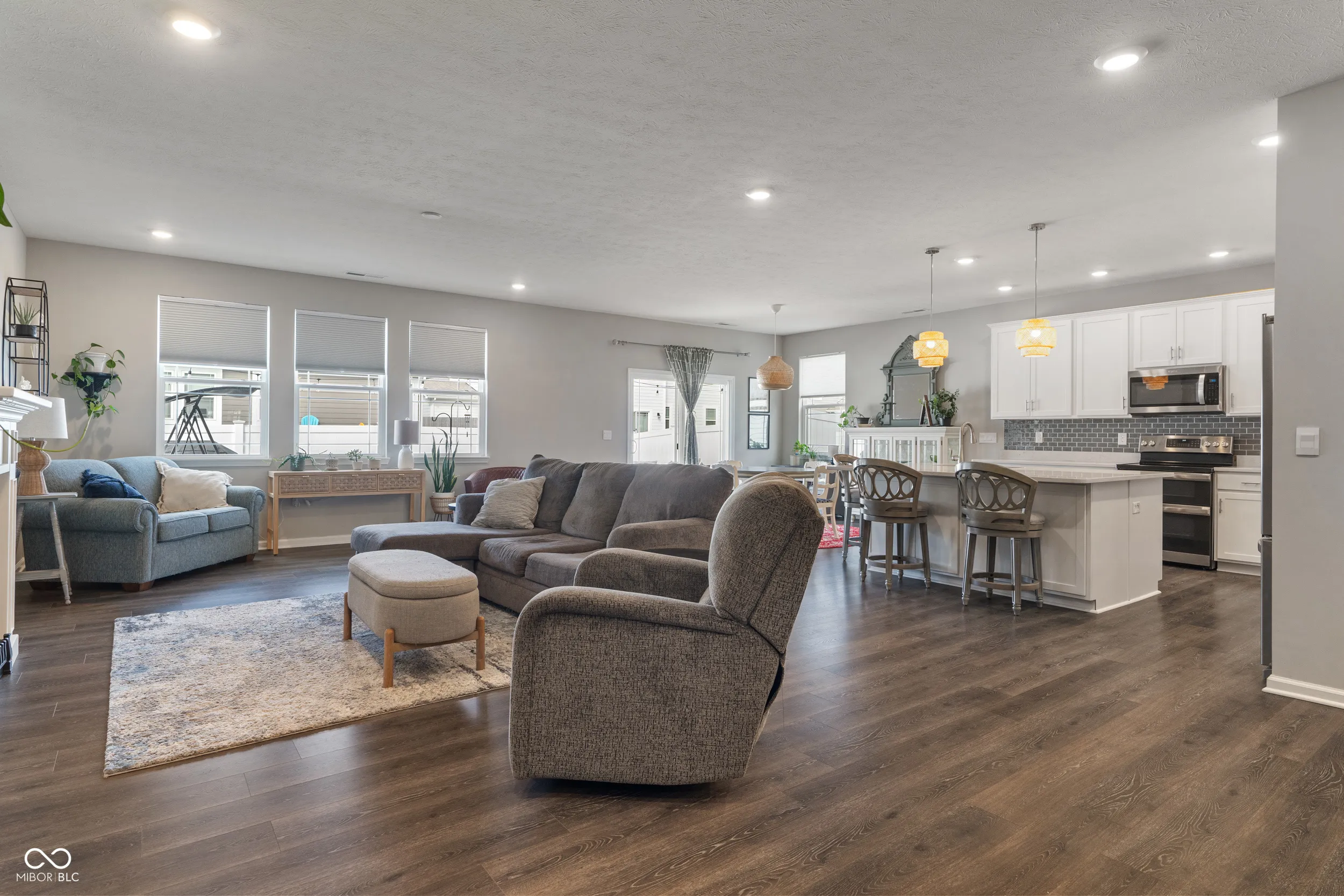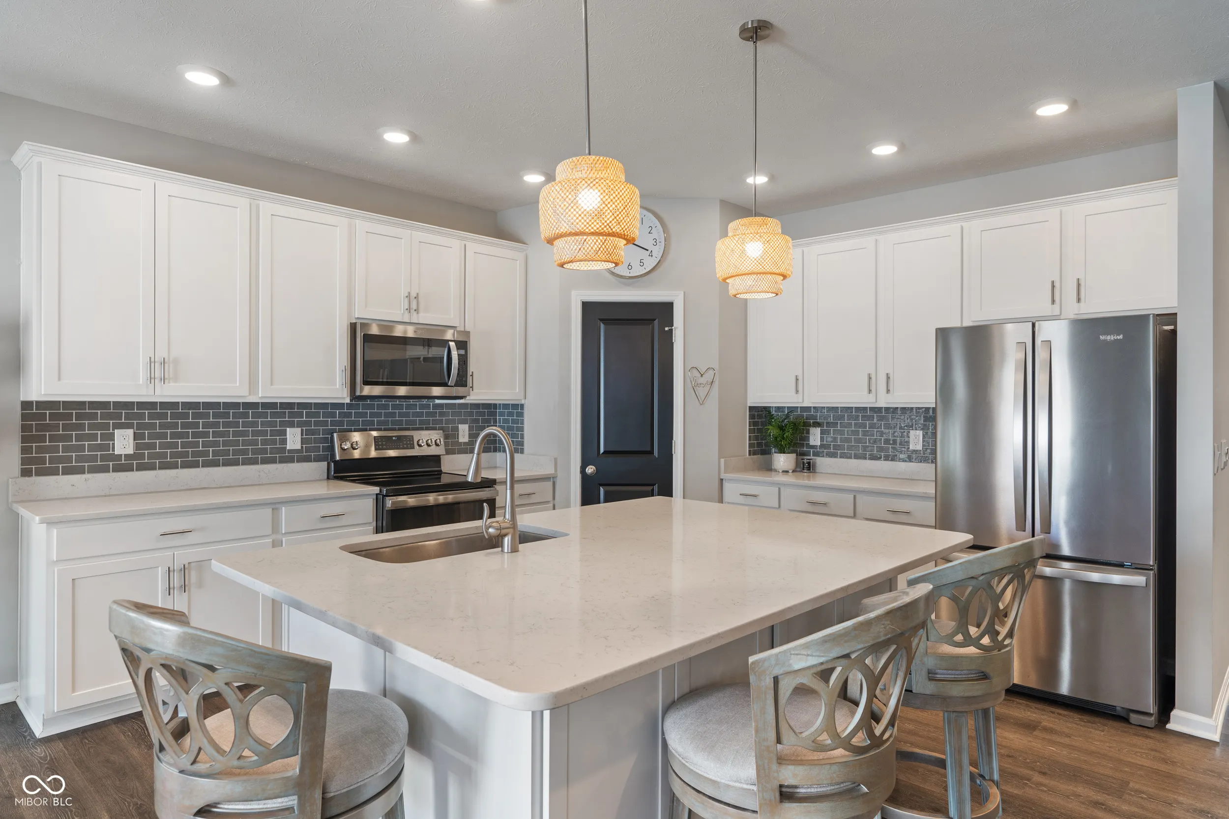 Welcome home to 346 Limerick Lane in Pendleton, IN across the street from Falls Park! This Grandover floorplan in Carrick Glen is a spacious, open-concept ranch. 4 bedrooms, 2.5 bathrooms, a flexible dining room and a 3-car garage with storage shelving & workbench included. This kitchen was made for entertaining! Massive island, upgraded cabinets with crown molding, quartz countertops, beautiful LVP flooring, breakfast nook, dining area and a walk-in pantry. All stainless steel kitchen appliances and Washer & Dryer are included. Primary bedroom with ensuite features double bowl vanity, shower, garden tub, and walk-in closet. Enjoy your morning coffee on the relaxing back patio in the fully fenced backyard. Home also has smart home technology. The charming Pendleton community awaits!