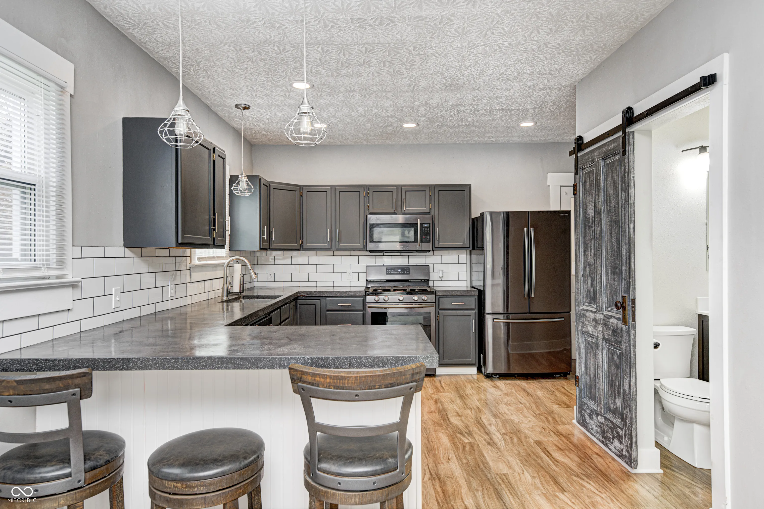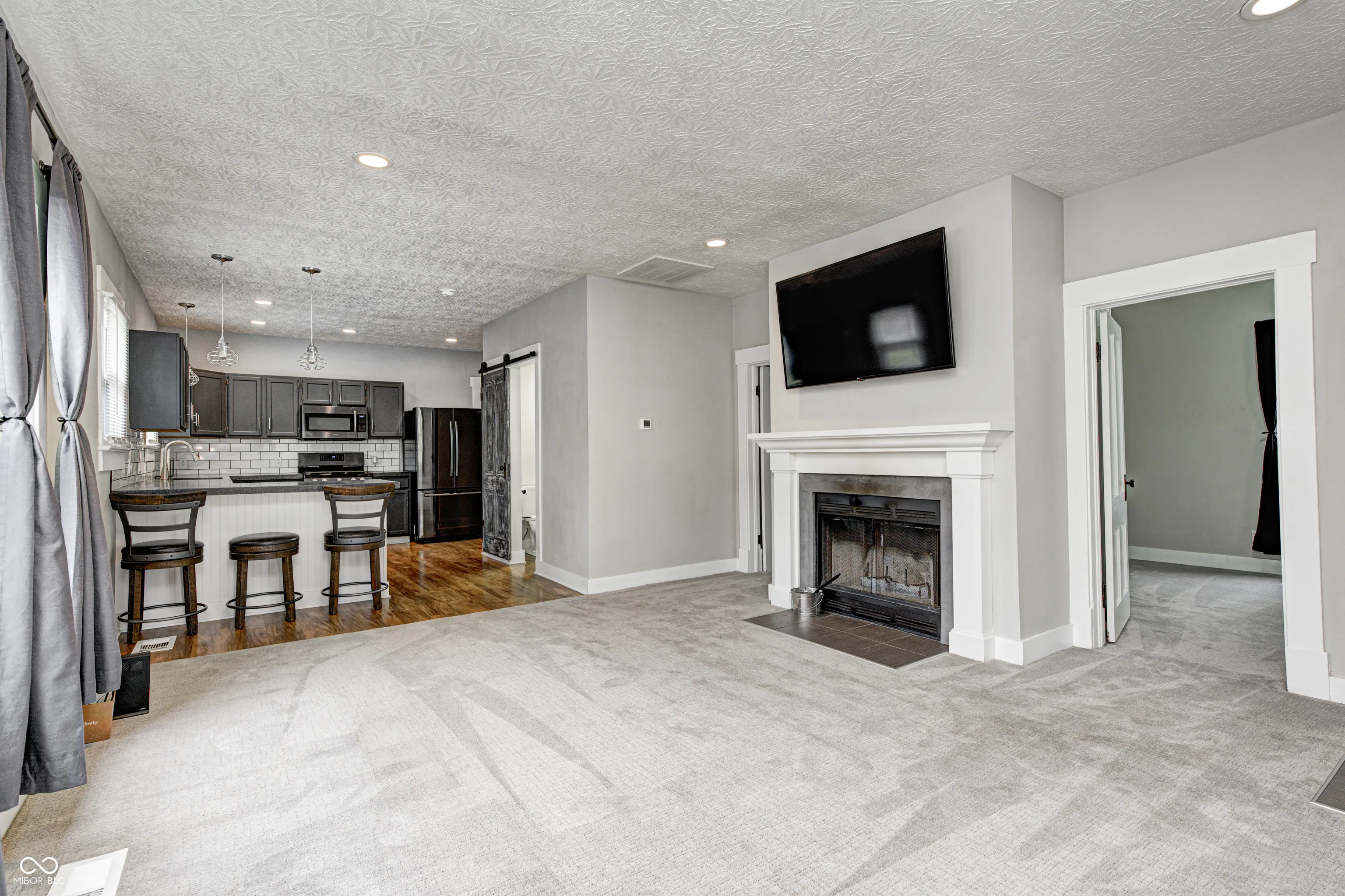 Pack your bags this home will have you at Hello! Charming Move-In Ready 3 Bedroom “Open Floor Plan” Ranch offers sparkling Laminate hardwood flooring, new carpet and “fresh” neutral paint throughout. Cozy living room with wood burning fireplace, Eat-In Kitchen with ample cabinet and counter space, breakfast bar, stainless steel appliances, modern cabinets, concrete countertops and decorative tile backsplash. Bedrooms are generous in size with plenty of closet space. Home boasts New: windows, roof, hot water heater, kitchen appliances, new furnace and complete bathroom remodel. Detached 1 car garage. This home is a MUST SEE!