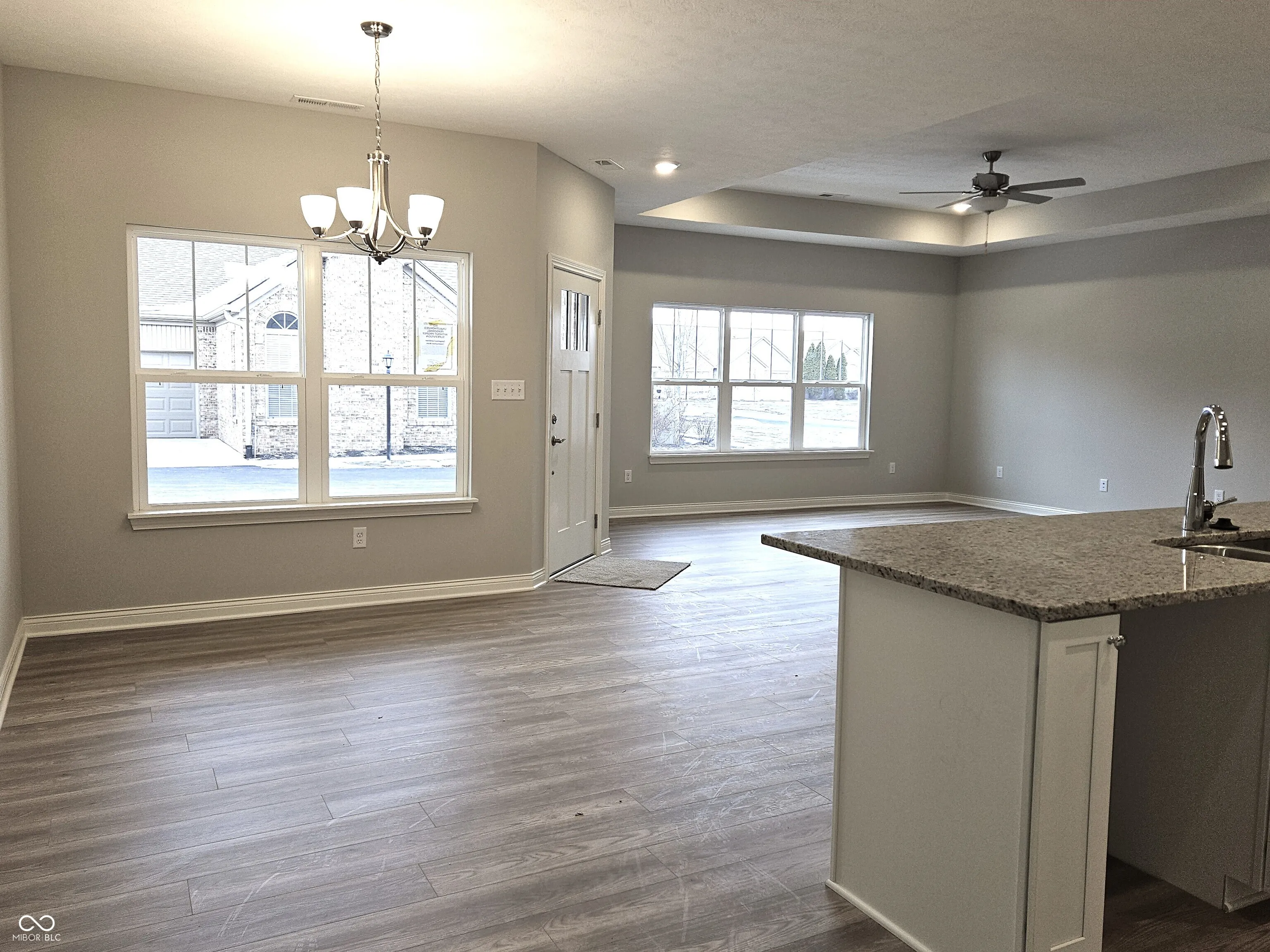 Maintenance free living is available at The Villas of Derby Run in Trotters Chase. This 2 bedroom, 2 full bath condo is located near many amenities, such as The Blue Bear Golf Course, The YMCA, medical facilities, restaurants, I-74 and The Horseshoe Casino. This home features upgraded cabinets and quartz kitchen countertops, with an island. It also features an upgraded trim package throughout and melamine shelving in the closets. The primary bath has a roll in shower with beautiful ceramic tile flooring and upgraded carpet and pad. The large great room is open to the kitchen and dining areas and has waterproof laminate flooring, along with the kitchen, dining, hallway, guest bath and laundry room. This home has an unfinished bonus room above the garage that offers 505 additional sq ft of space. The HOA covers the building exterior, landscape, lawn care, snow removal and common areas. This neighborhood offers walking trails, a pickle ball court, basketball court, club house and pool.