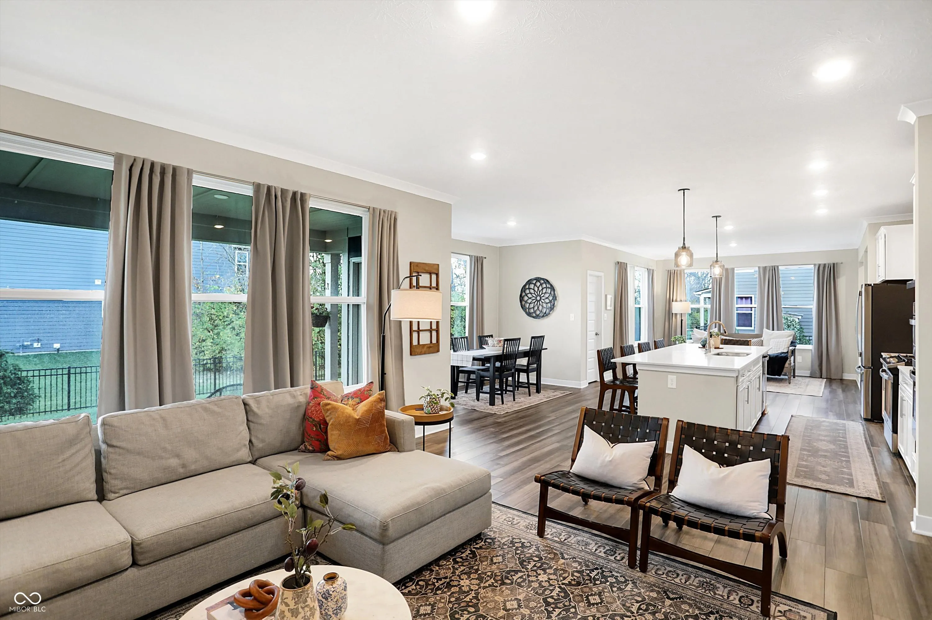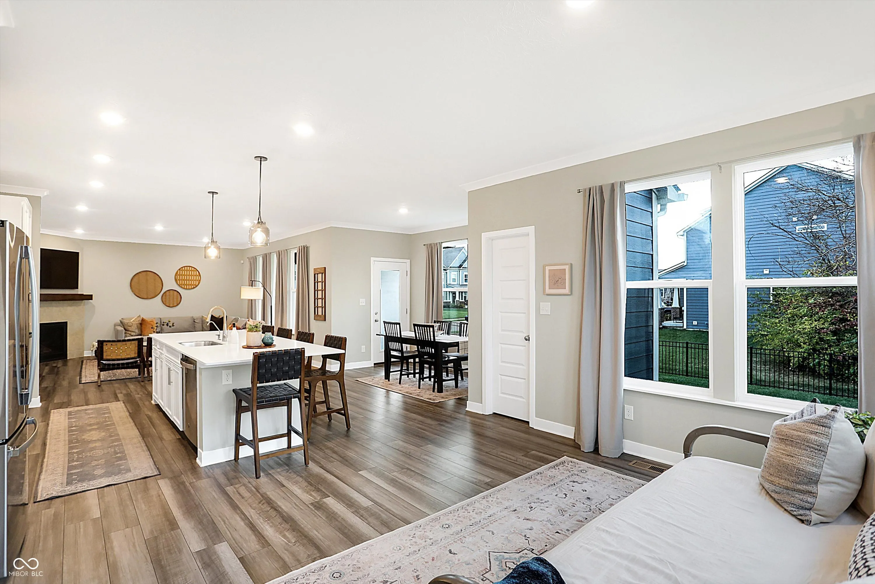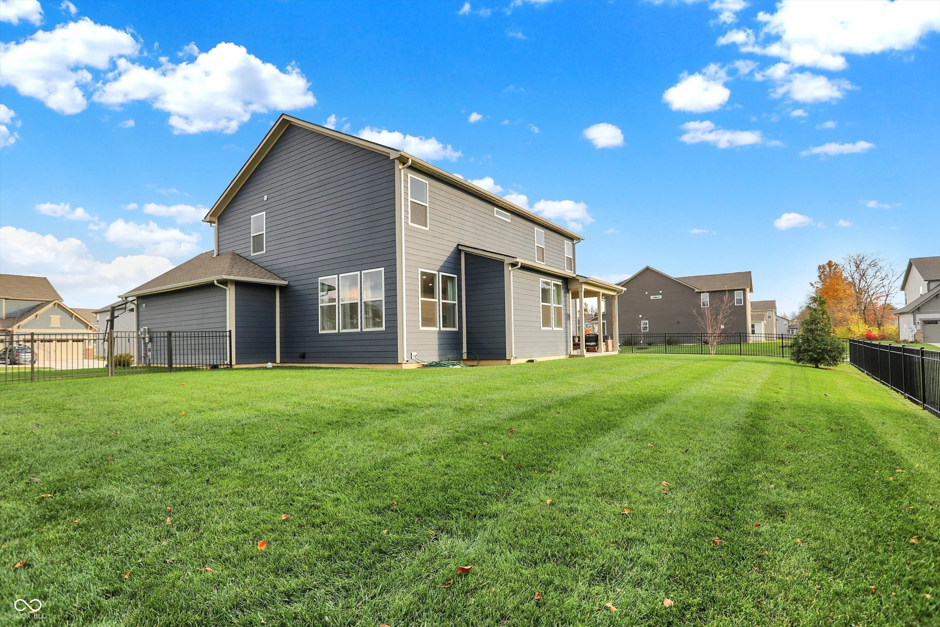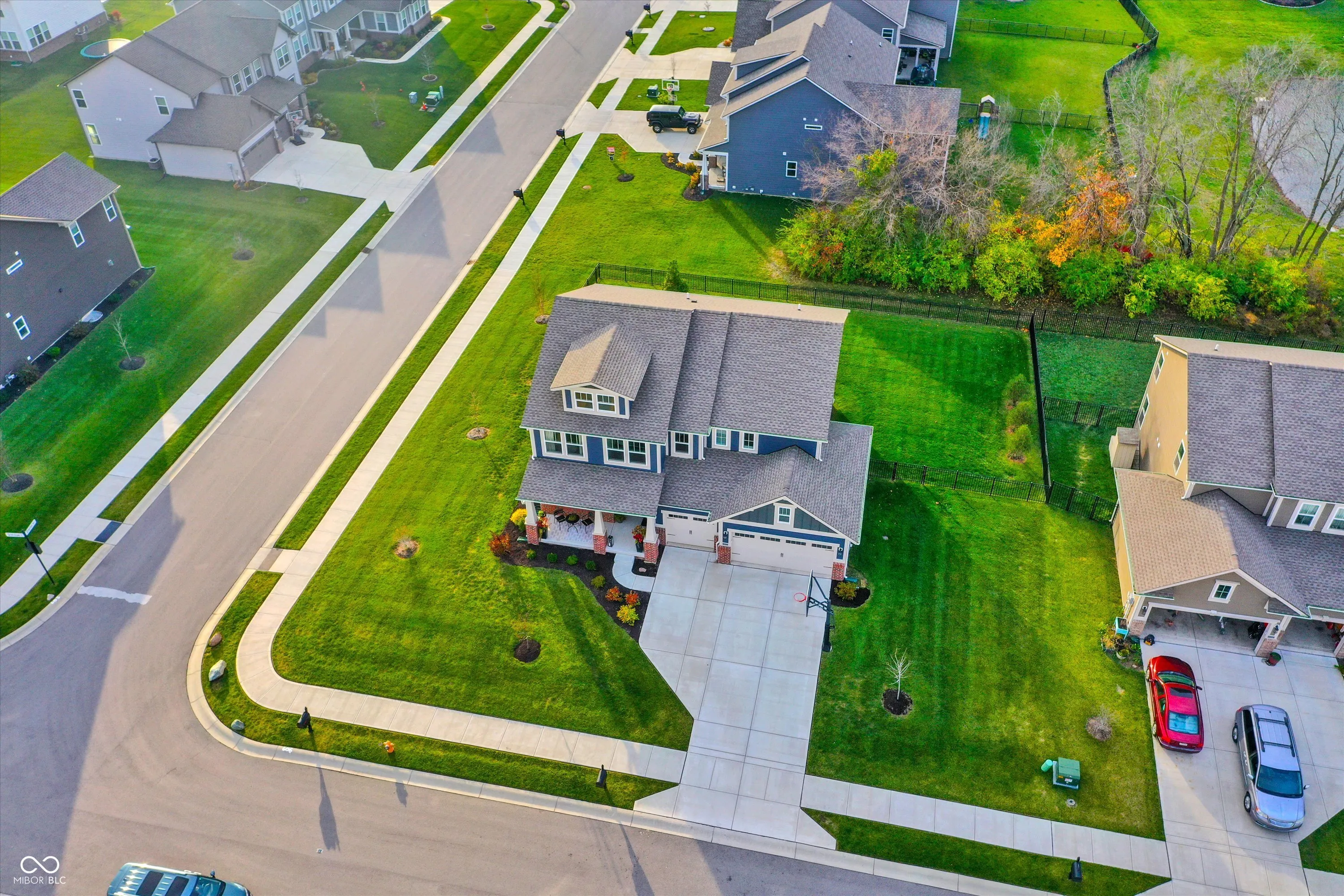 This beautiful home welcomes you with a charming front porch that leads into an open-concept main floor designed for modern living. Step into a spacious family room with a cozy fireplace and an abundance of windows that flood the space with natural light. Adjacent is a private office with French doors, perfect for working from home or a quiet retreat. The eat-in gourmet kitchen is a chef’s dream, featuring stainless steel appliances, a large island, and plenty of cabinet space for all your culinary needs. There’s also extra room for a sizable dining table or a perfect space to entertain guests. A convenient planning center offers additional workspace, ideal for managing activities or remote work. Upstairs, you’ll find a versatile loft area that can be used as a playroom, media room, or extra lounge space. The second floor also includes four spacious bedrooms, including the owner’s suite, which boasts double sinks, a luxurious tile shower, and a large walk-in closet connected directly to the upstairs laundry room for added convenience. The partially finished lower level offers additional space for entertaining, a full bathroom, and the option to add a 5th bedroom. There is also ample storage space to keep your home organized and clutter-free. Outside, enjoy a fully fenced-in backyard with a covered patio and tree lined lot, perfect for relaxing or hosting outdoor gatherings in privacy. This home truly has it all – from practical features to beautiful design – offering comfort, style, and versatility in every room.