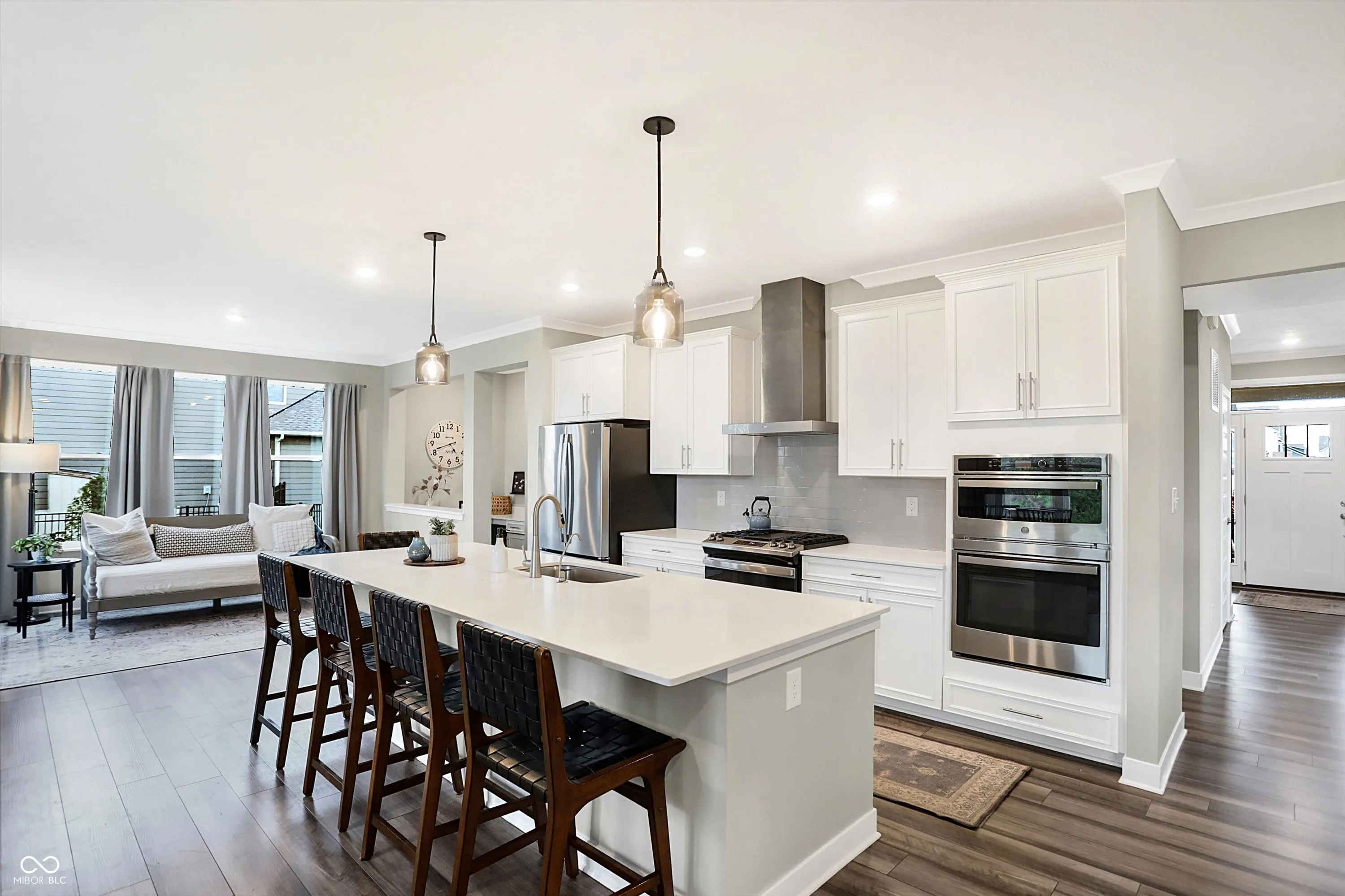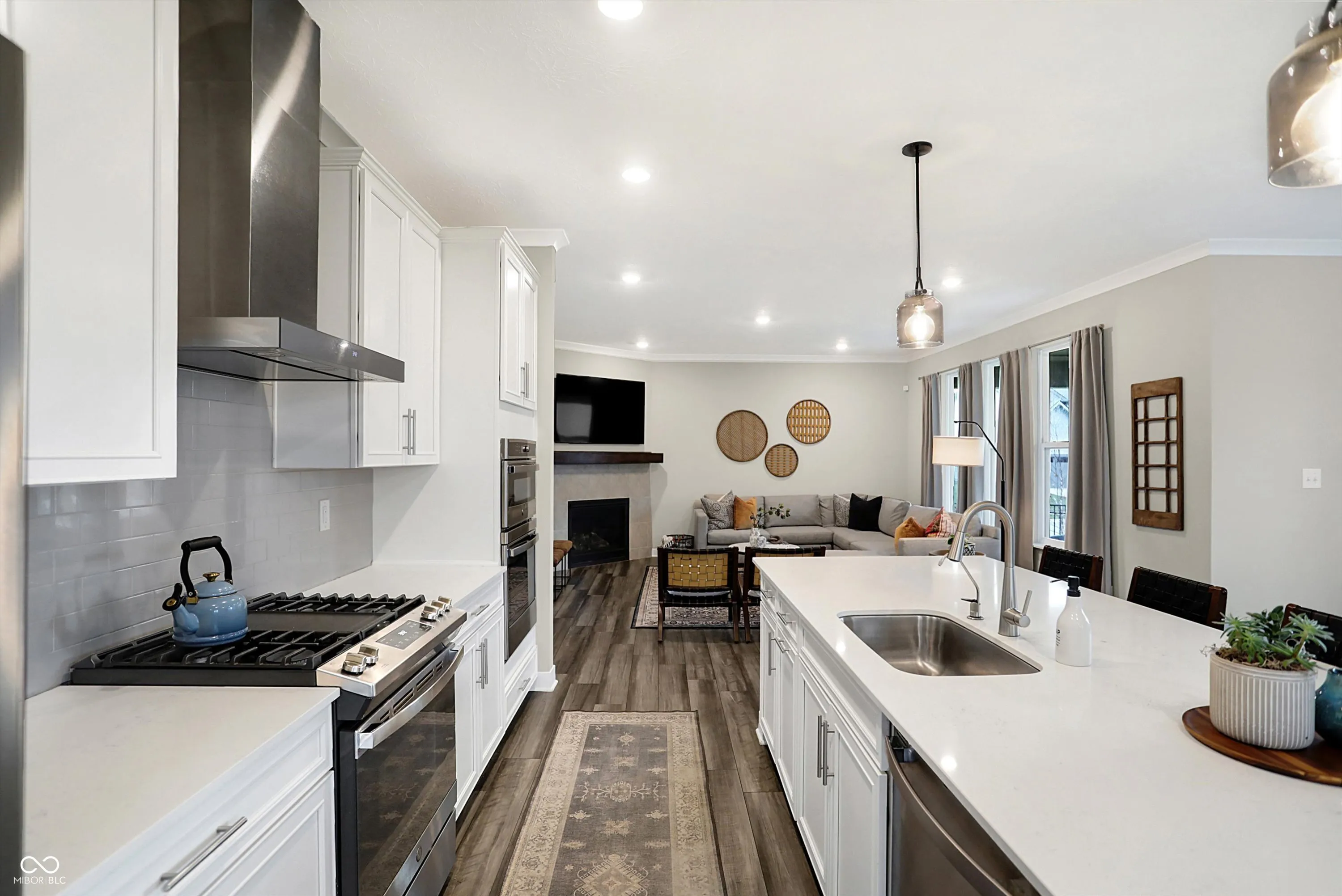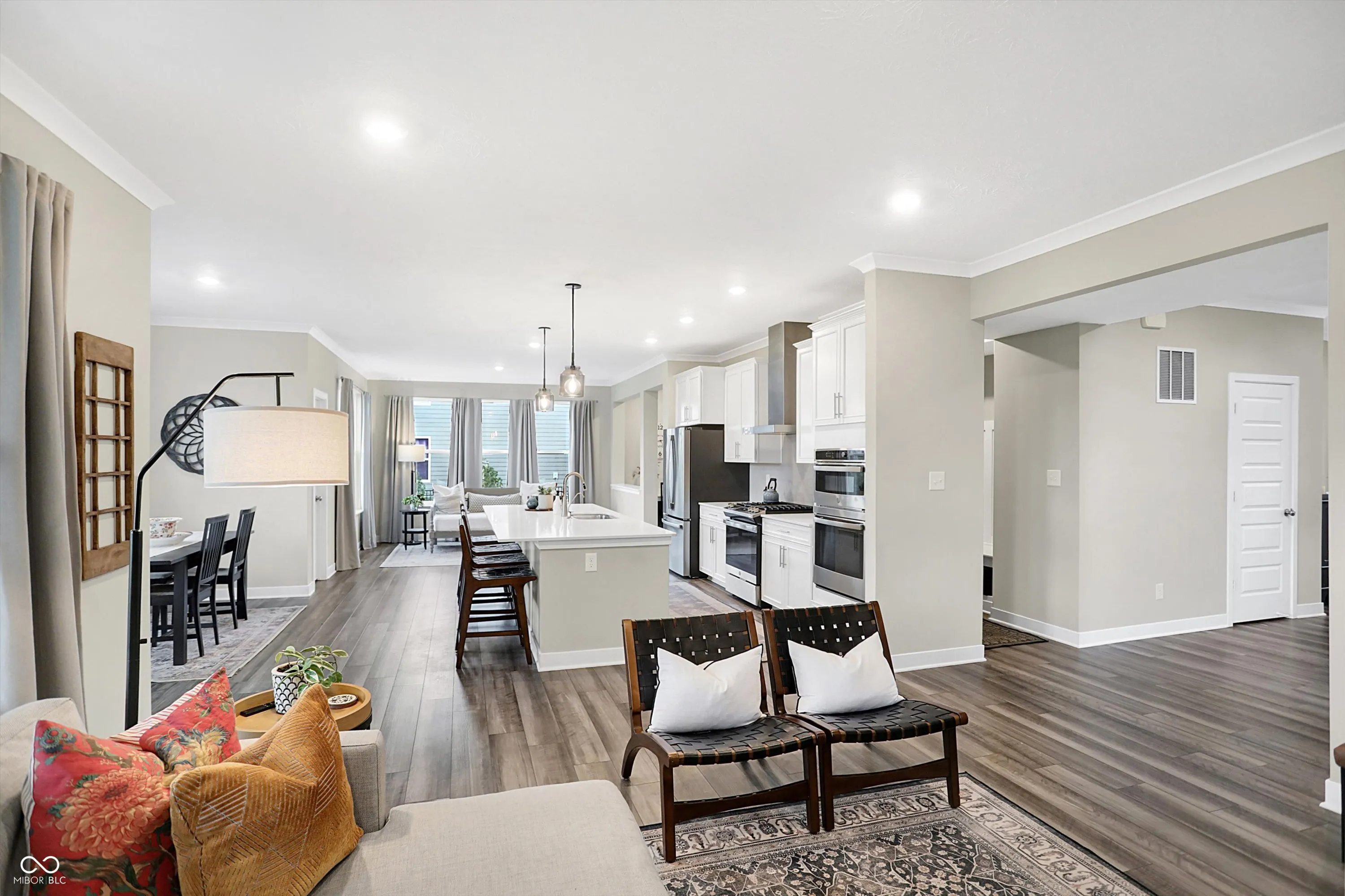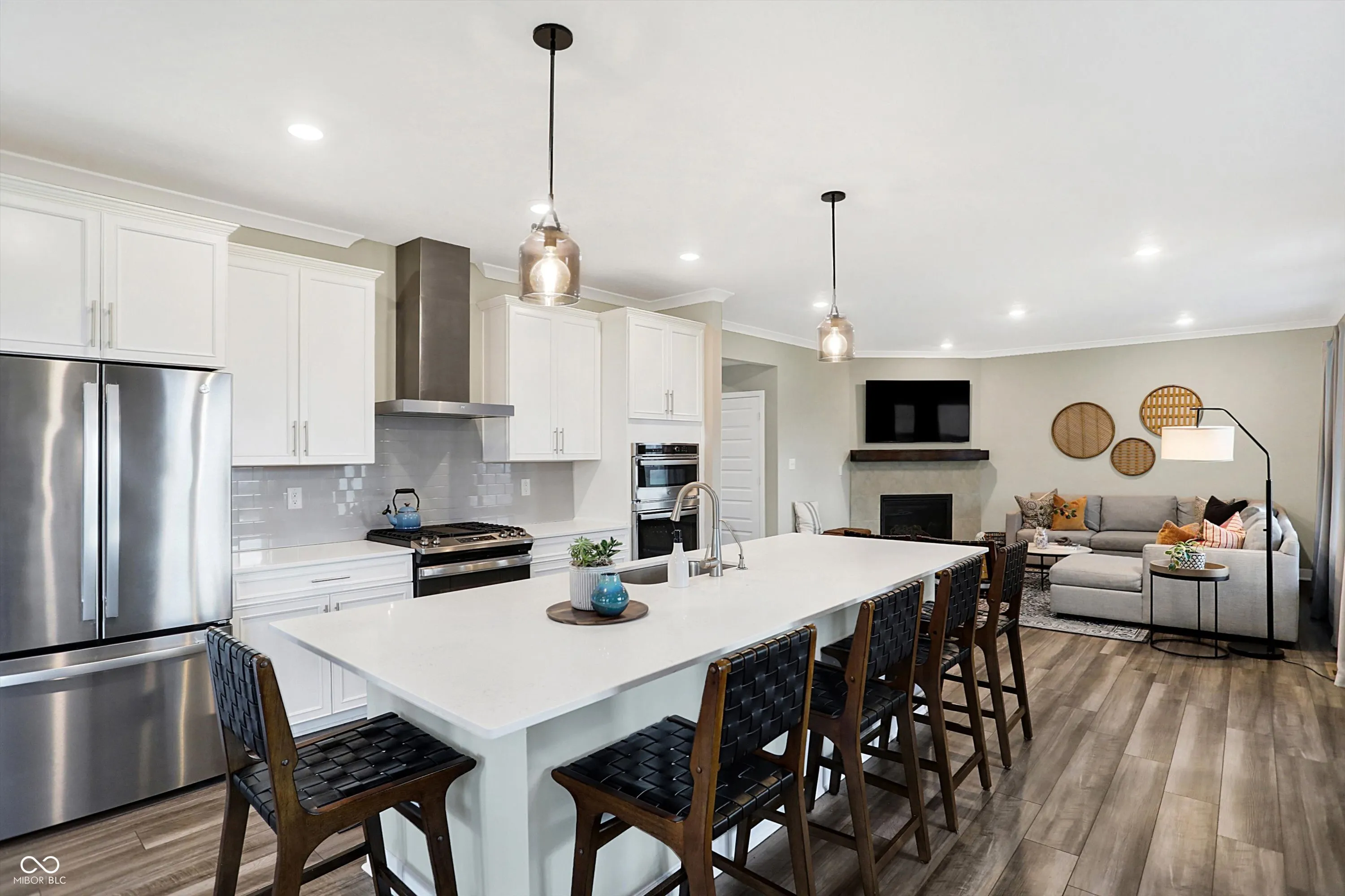 This beautiful home welcomes you with a charming front porch that leads into an open-concept main floor designed for modern living. Step into a spacious family room with a cozy fireplace and an abundance of windows that flood the space with natural light. Adjacent is a private office with French doors, perfect for working from home or a quiet retreat. The eat-in gourmet kitchen is a chef’s dream, featuring stainless steel appliances, a large island, and plenty of cabinet space for all your culinary needs. There’s also extra room for a sizable dining table or a perfect space to entertain guests. A convenient planning center offers additional workspace, ideal for managing activities or remote work. Upstairs, you’ll find a versatile loft area that can be used as a playroom, media room, or extra lounge space. The second floor also includes four spacious bedrooms, including the owner’s suite, which boasts double sinks, a luxurious tile shower, and a large walk-in closet connected directly to the upstairs laundry room for added convenience. The partially finished lower level offers additional space for entertaining, a full bathroom, and the option to add a 5th bedroom. There is also ample storage space to keep your home organized and clutter-free. Outside, enjoy a fully fenced-in backyard with a covered patio and tree lined lot, perfect for relaxing or hosting outdoor gatherings in privacy. This home truly has it all – from practical features to beautiful design – offering comfort, style, and versatility in every room.