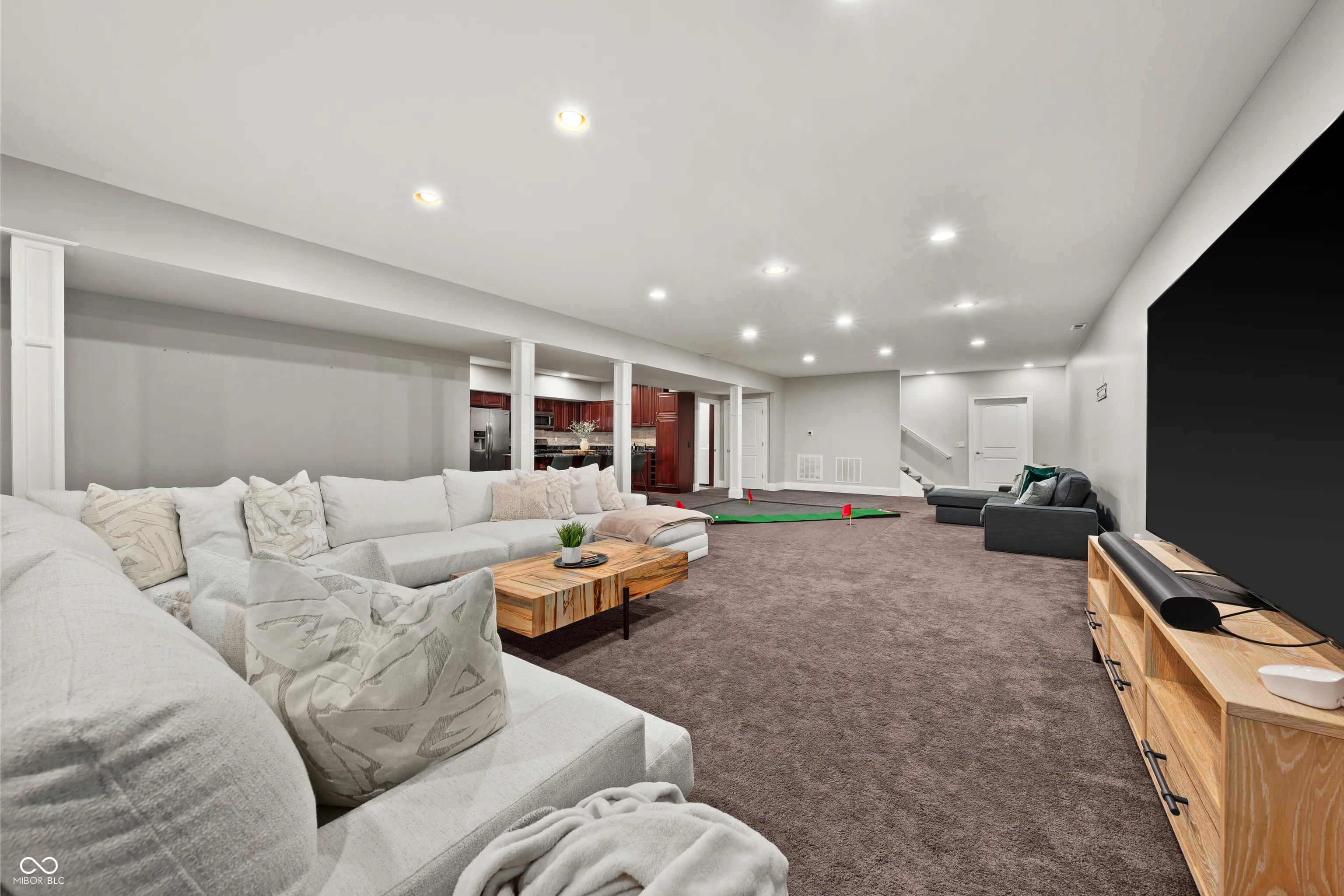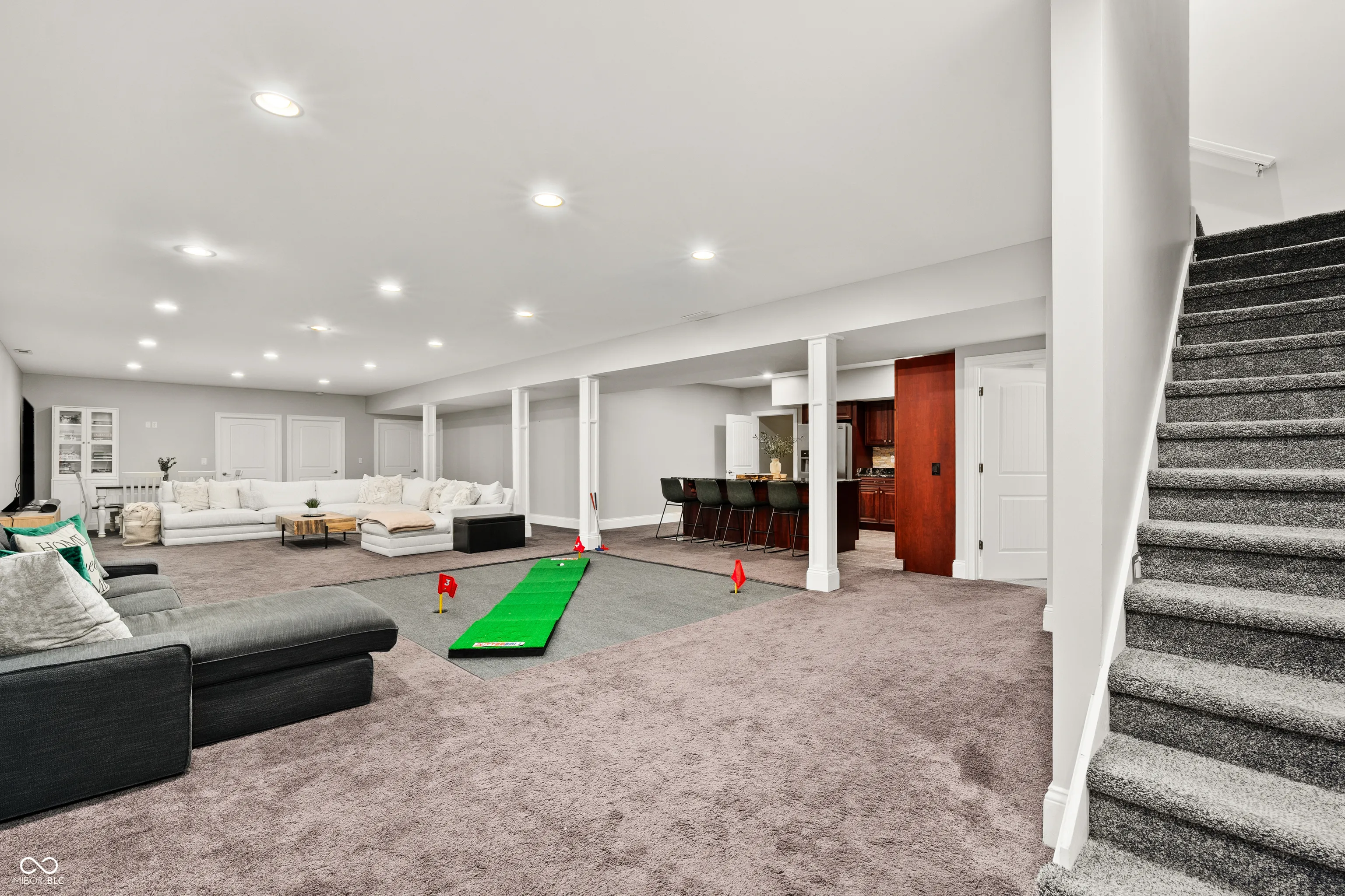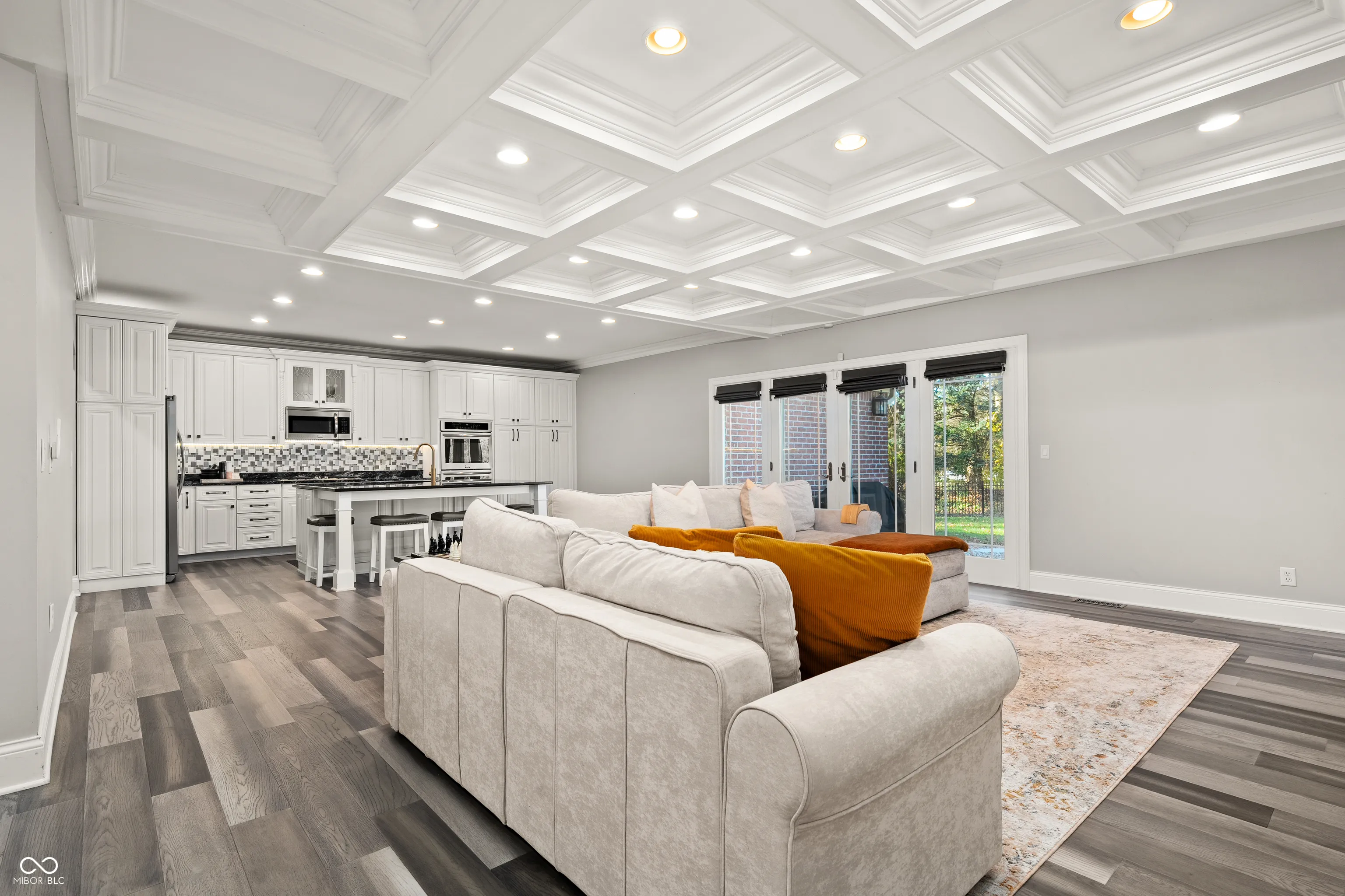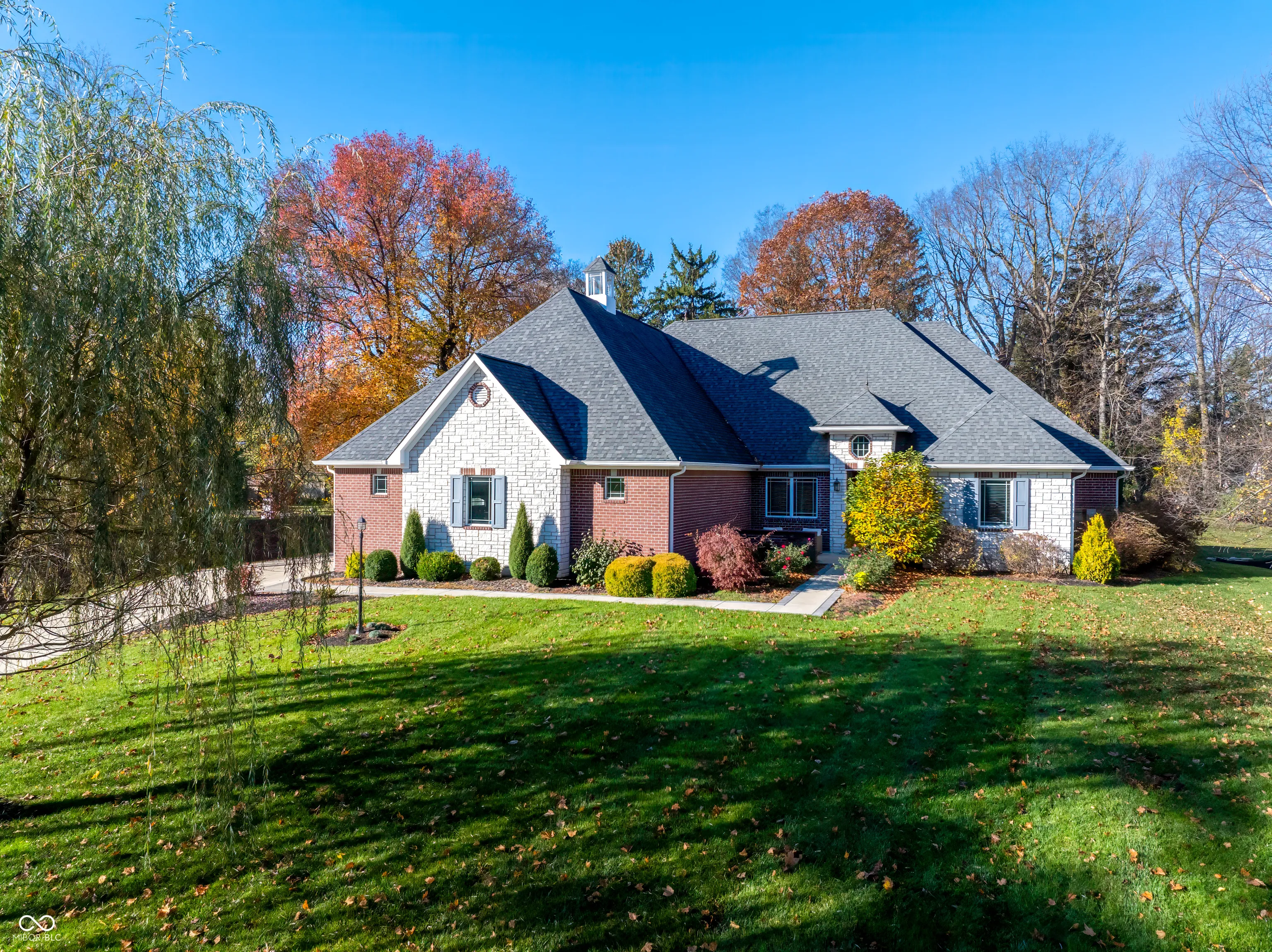 Luxury meets function in this STUNNING CUSTOM ranch floorplan, truly one of a kind and hard to find in Carmel! The moment you arrive you are greeted with a stone and brick exterior, and a charming covered porch. Open the door to an open floorplan and towering ceilings with an inviting entry. Open to the great room featuring coffered ceilings, engineered hardwood flooring running seamlessly throughout the main, and a wall of windows, floor to ceilings drenching the room in natural light. Enjoy your cozy gas fireplace encased with built-in bookcases. Open to the kitchen making this is an entertainer’s dream, with crisp white cabinets, granite counters, and an island that’s fit for the gatherings this season! Don’t be fooled by it being one level, this home offers 5 bedrooms, 3.5 baths, and a fully finished basement! The Owner’s suite with double stage crown/tray ceiling tucked away from the secondary bedrooms for privacy. Offers luxury with the ensuite bath featuring dual sink vanity, WI shower with dual heads, soaking tub, two exceptional WI closets with custom built-ins! Secondary bedrooms also with engineered hardwood flooring, crown molding trim to finish off the space! Fully finished lower-level features 2nd full kitchen/wet-bar, family/media room, additional bedroom/ putting green/exercise room/full bath. Backyard is fully fenced, spacious with a paver patio, stone feature wall, set up for an outdoor TV! Enjoy Sunday football outdoors while the lushly landscaped backyard changes colors this Fall! Spacious 4 car garage, and the basement has a separate entrance from garage is perfect for in-law suite. Don’t miss this opportunity to be within one of the best locations in Carmel!