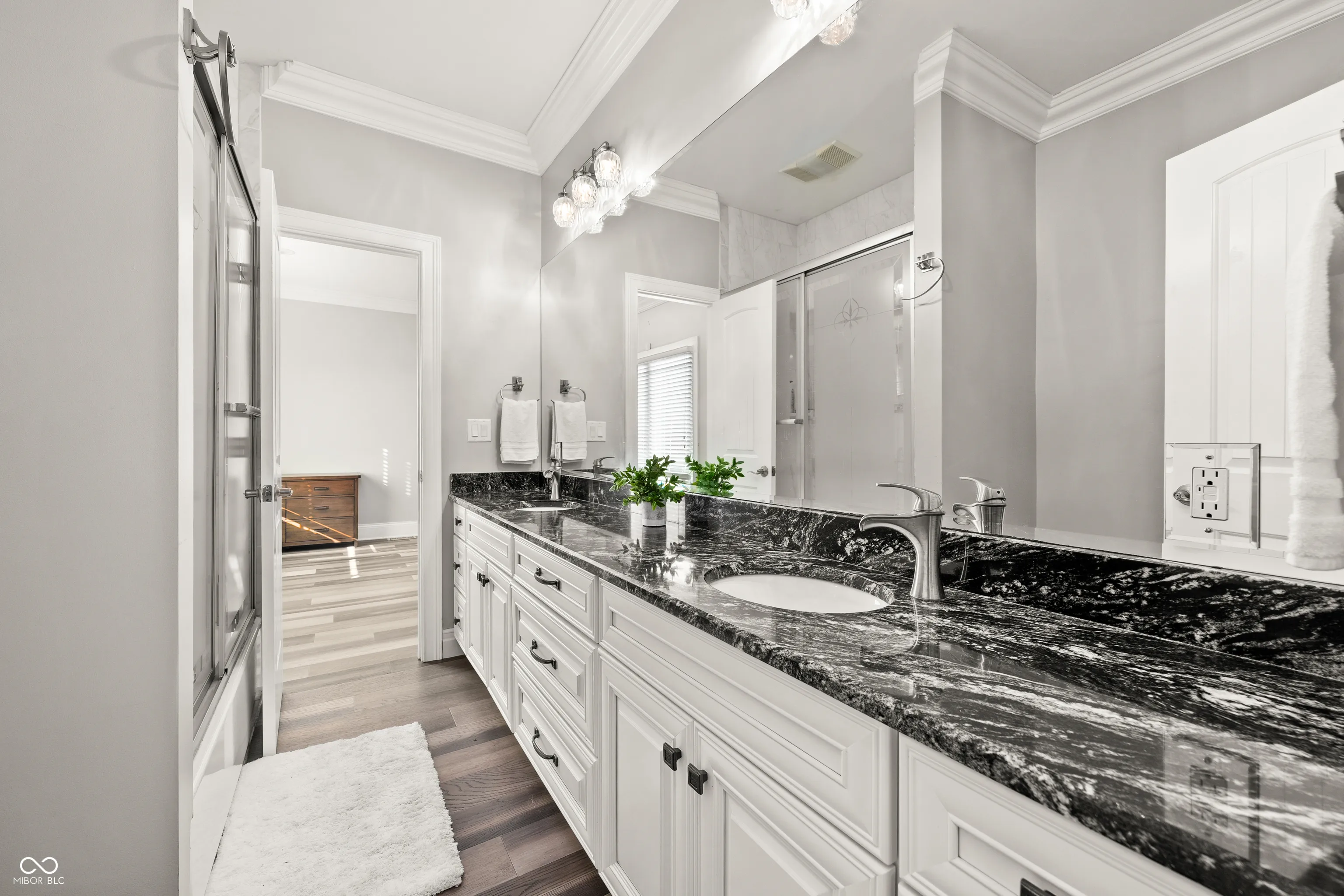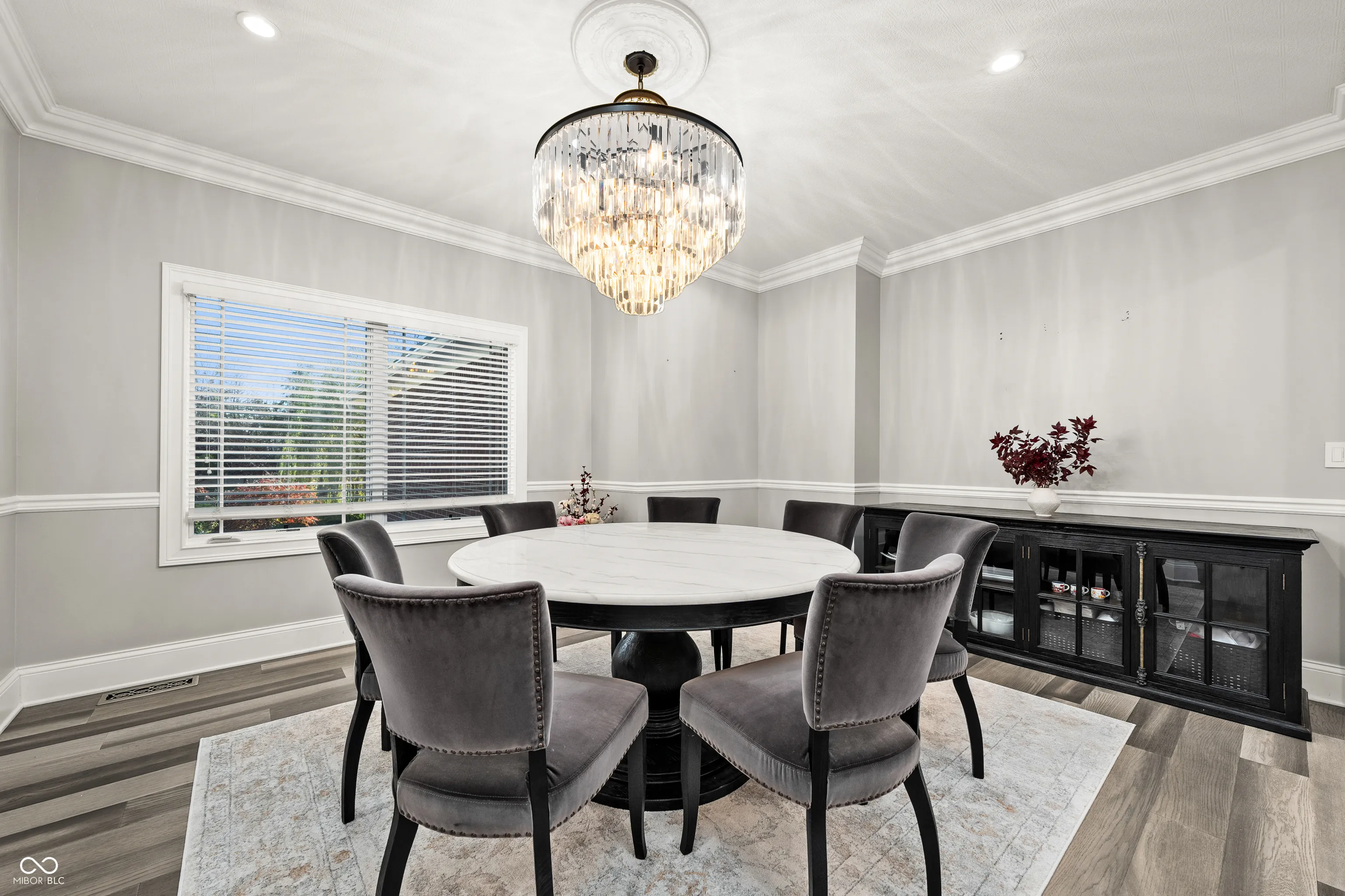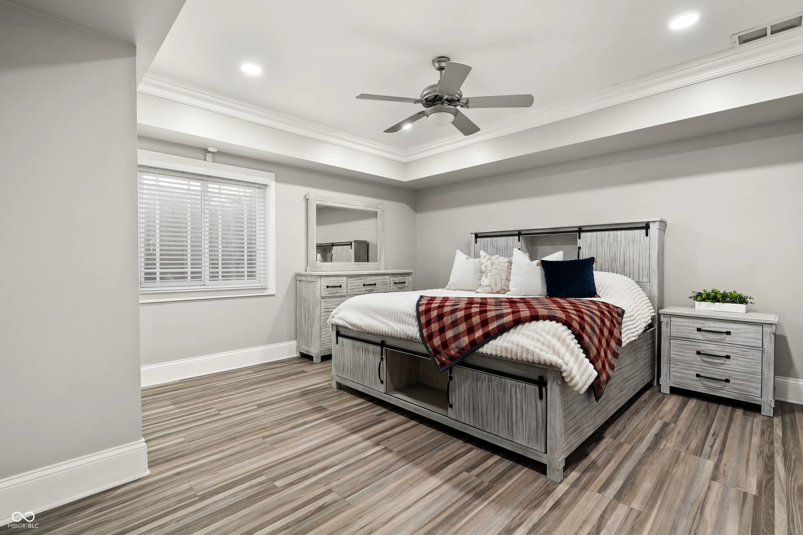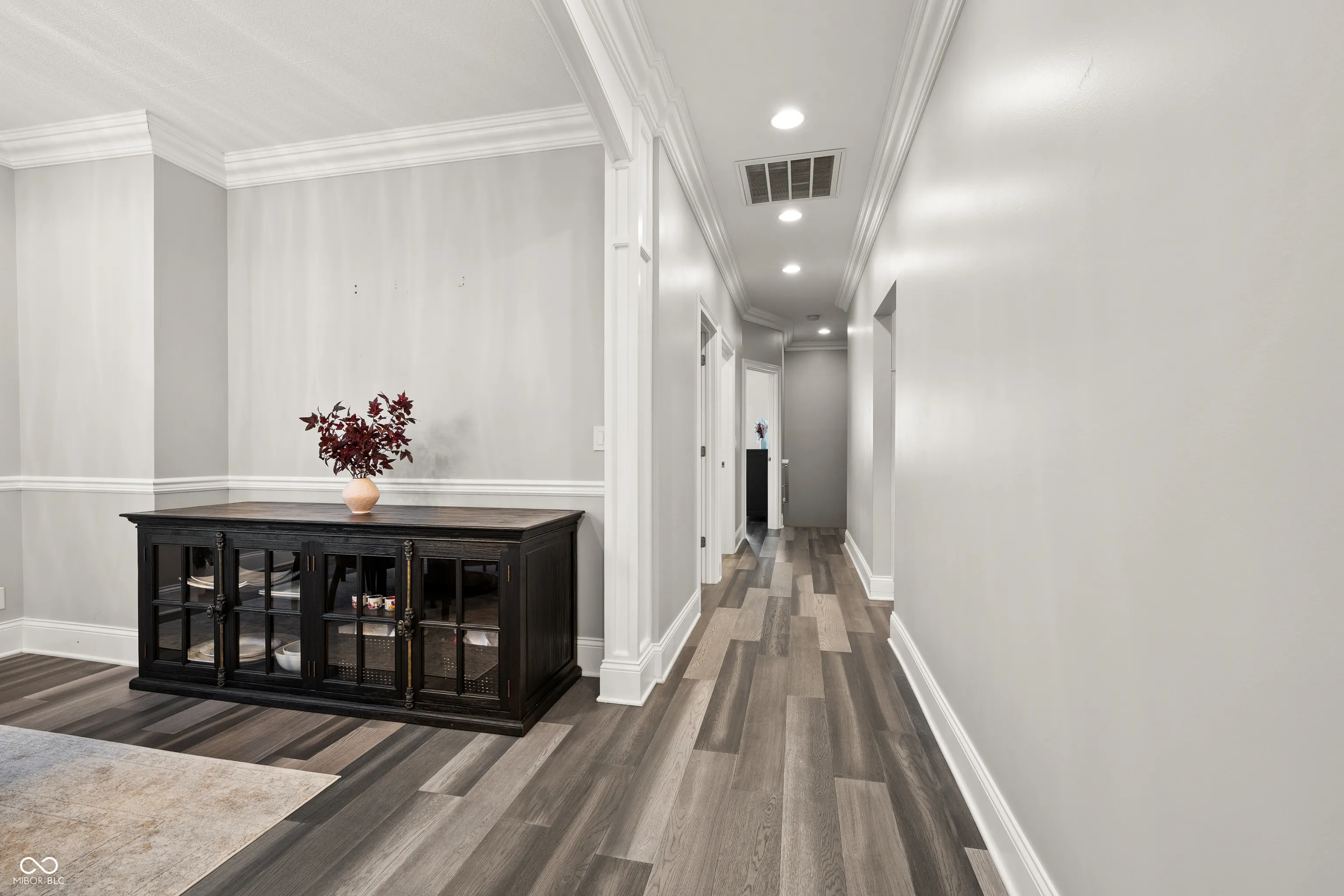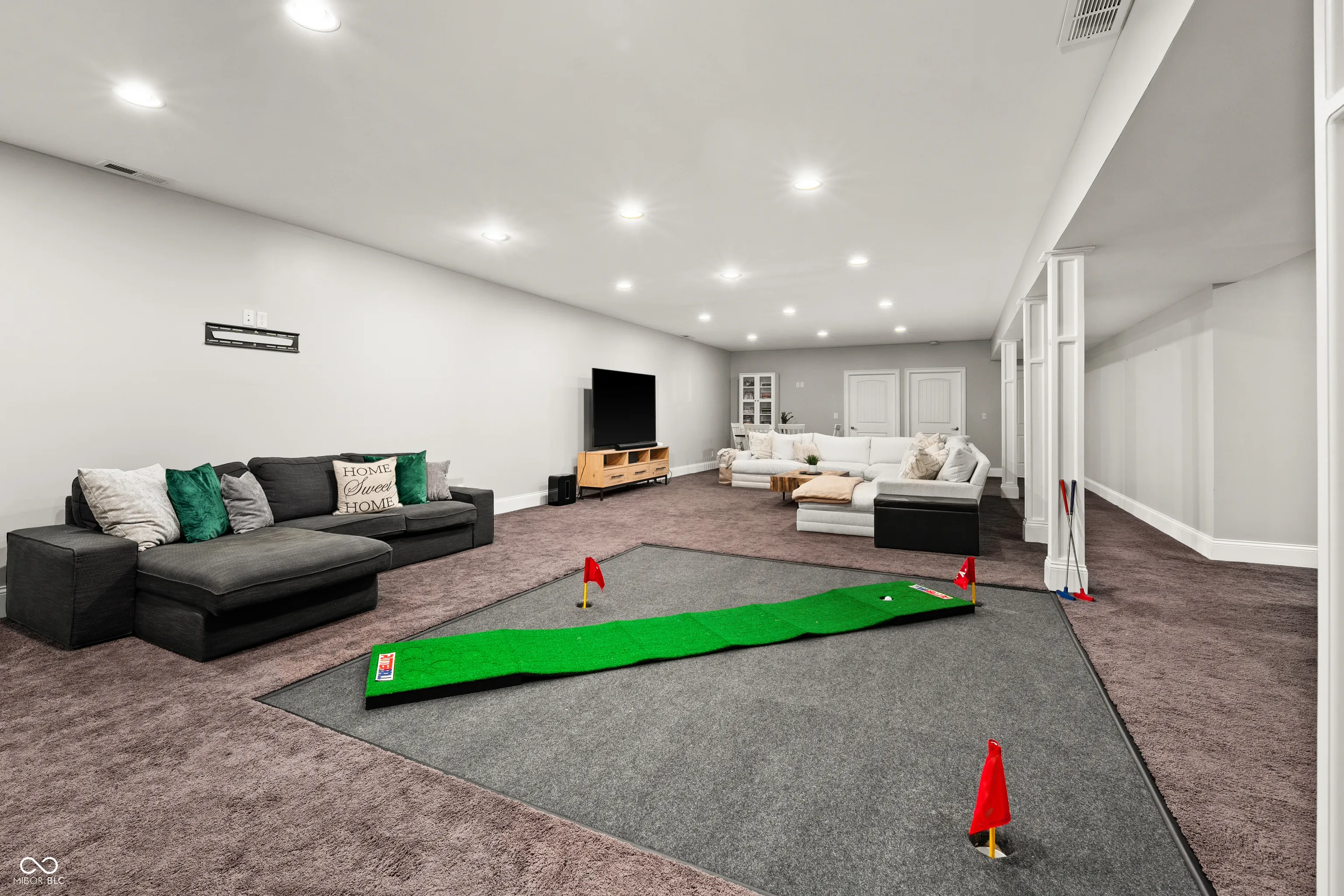Luxury meets function in this STUNNING CUSTOM ranch floorplan, truly one of a kind and hard to find in Carmel! The moment you arrive you are greeted with a stone and brick exterior, and a charming covered porch. Open the door to an open floorplan and towering ceilings with an inviting entry. Open to the great room featuring coffered ceilings, engineered hardwood flooring running seamlessly throughout the main, and a wall of windows, floor to ceilings drenching the room in natural light. Enjoy your cozy gas fireplace encased with built-in bookcases. Open to the kitchen making this is an entertainer’s dream, with crisp white cabinets, granite counters, and an island that’s fit for the gatherings this season! Don’t be fooled by it being one level, this home offers 5 bedrooms, 3.5 baths, and a fully finished basement! The Owner’s suite with double stage crown/tray ceiling tucked away from the secondary bedrooms for privacy. Offers luxury with the ensuite bath featuring dual sink vanity, WI shower with dual heads, soaking tub, two exceptional WI closets with custom built-ins! Secondary bedrooms also with engineered hardwood flooring, crown molding trim to finish off the space! Fully finished lower-level features 2nd full kitchen/wet-bar, family/media room, additional bedroom/ putting green/exercise room/full bath. Backyard is fully fenced, spacious with a paver patio, stone feature wall, set up for an outdoor TV! Enjoy Sunday football outdoors while the lushly landscaped backyard changes colors this Fall! Spacious 4 car garage, and the basement has a separate entrance from garage is perfect for in-law suite. Don’t miss this opportunity to be within one of the best locations in Carmel!