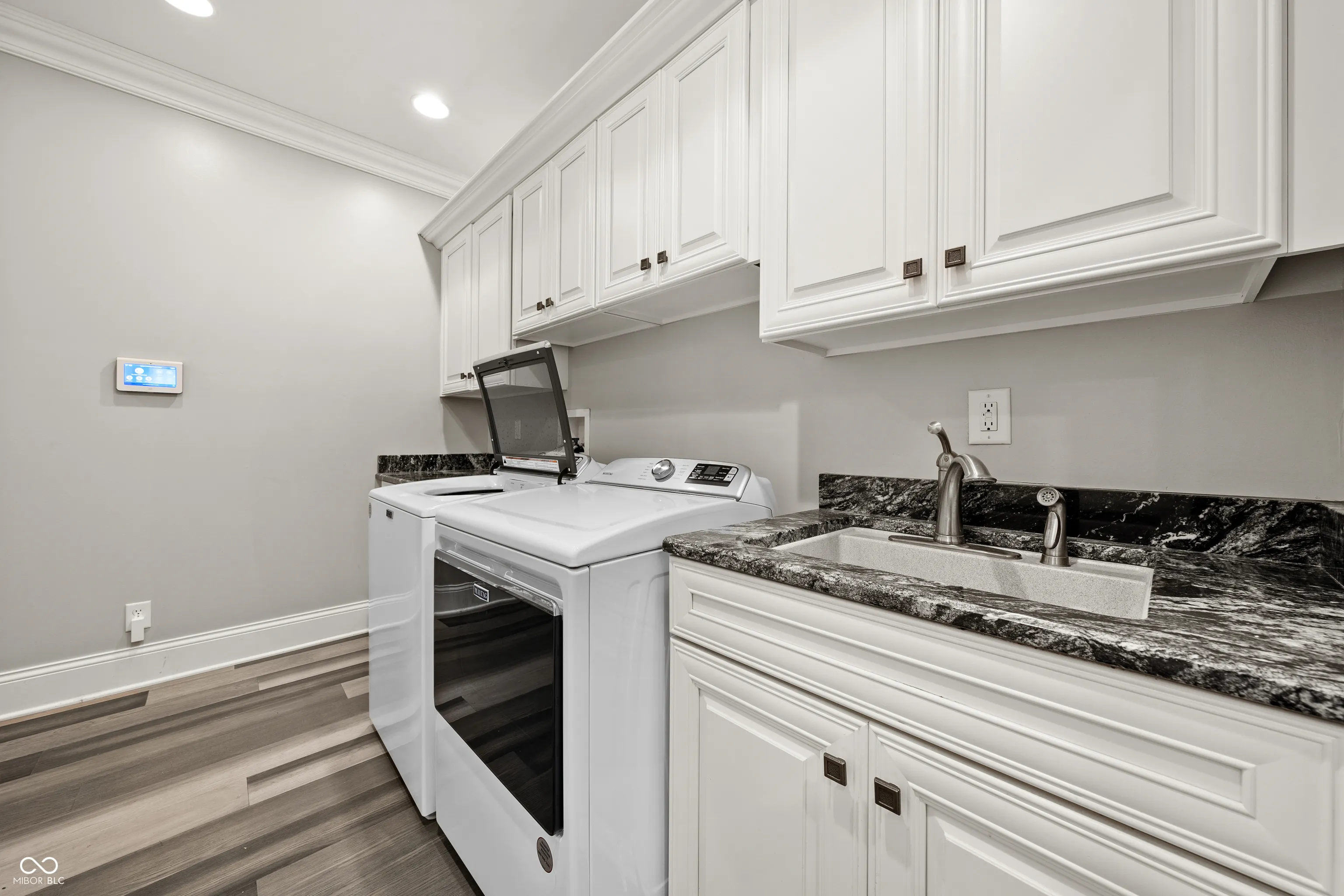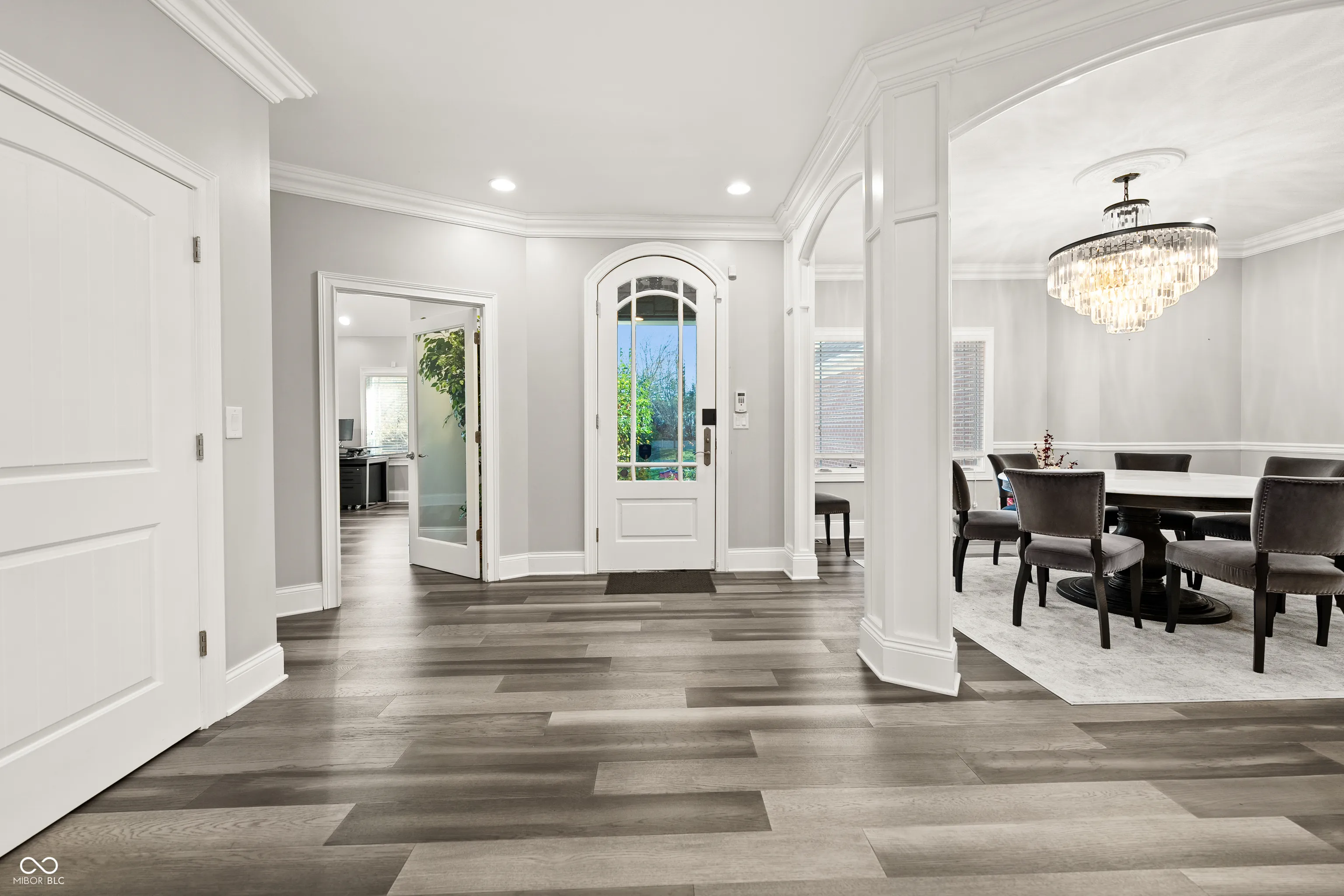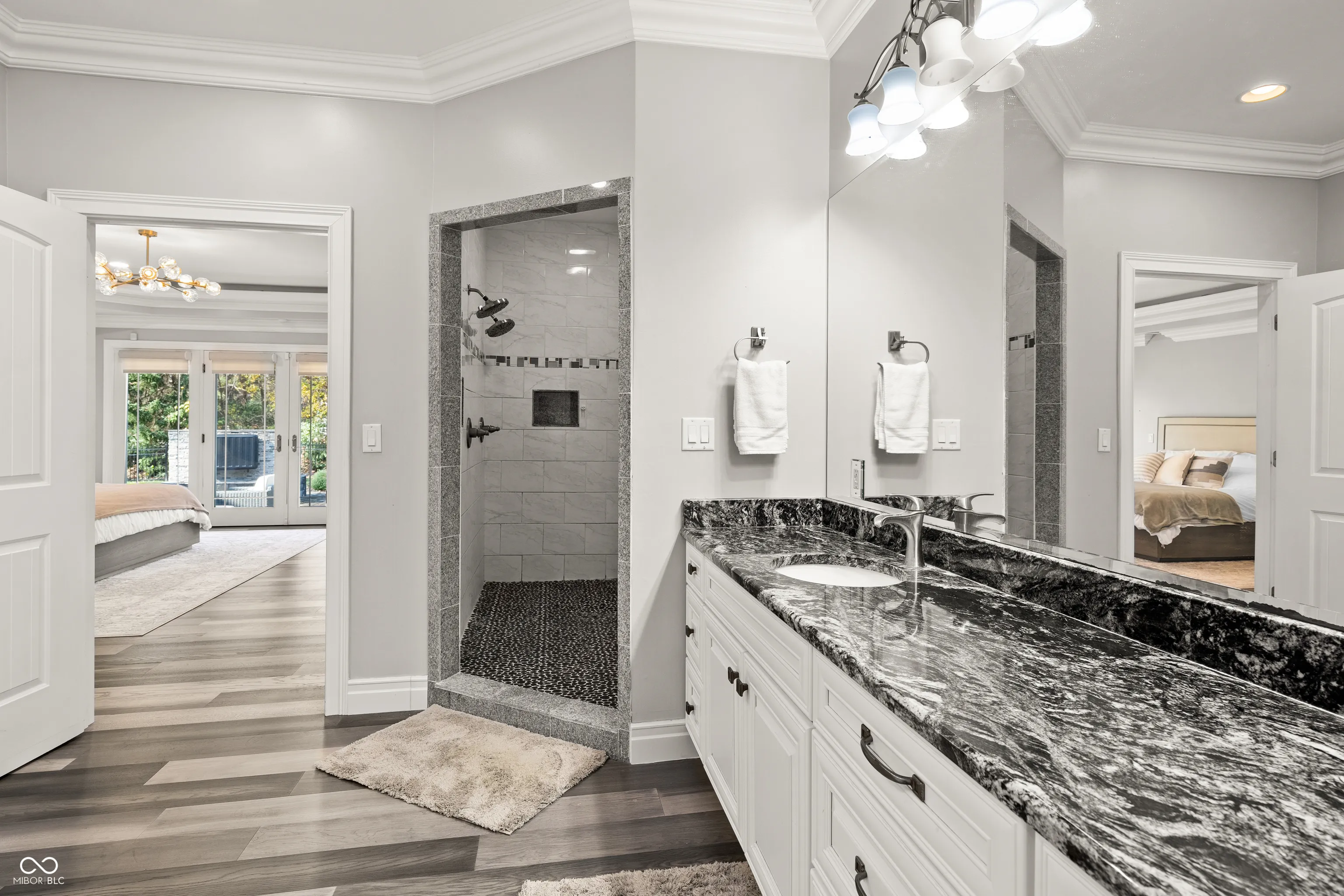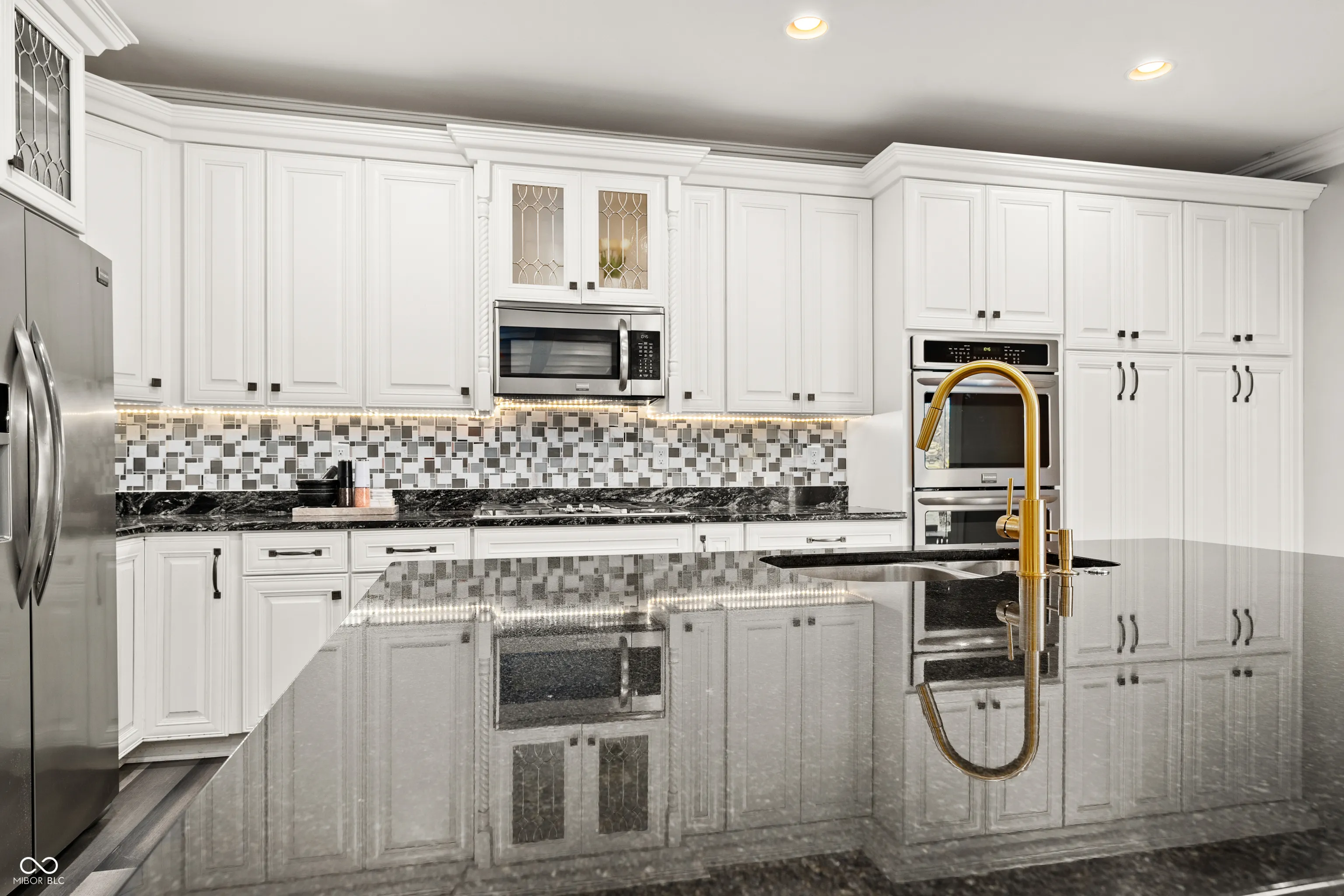 Luxury meets function in this STUNNING CUSTOM ranch floorplan, truly one of a kind and hard to find in Carmel! The moment you arrive you are greeted with a stone and brick exterior, and a charming covered porch. Open the door to an open floorplan and towering ceilings with an inviting entry. Open to the great room featuring coffered ceilings, engineered hardwood flooring running seamlessly throughout the main, and a wall of windows, floor to ceilings drenching the room in natural light. Enjoy your cozy gas fireplace encased with built-in bookcases. Open to the kitchen making this is an entertainer’s dream, with crisp white cabinets, granite counters, and an island that’s fit for the gatherings this season! Don’t be fooled by it being one level, this home offers 5 bedrooms, 3.5 baths, and a fully finished basement! The Owner’s suite with double stage crown/tray ceiling tucked away from the secondary bedrooms for privacy. Offers luxury with the ensuite bath featuring dual sink vanity, WI shower with dual heads, soaking tub, two exceptional WI closets with custom built-ins! Secondary bedrooms also with engineered hardwood flooring, crown molding trim to finish off the space! Fully finished lower-level features 2nd full kitchen/wet-bar, family/media room, additional bedroom/ putting green/exercise room/full bath. Backyard is fully fenced, spacious with a paver patio, stone feature wall, set up for an outdoor TV! Enjoy Sunday football outdoors while the lushly landscaped backyard changes colors this Fall! Spacious 4 car garage, and the basement has a separate entrance from garage is perfect for in-law suite. Don’t miss this opportunity to be within one of the best locations in Carmel!