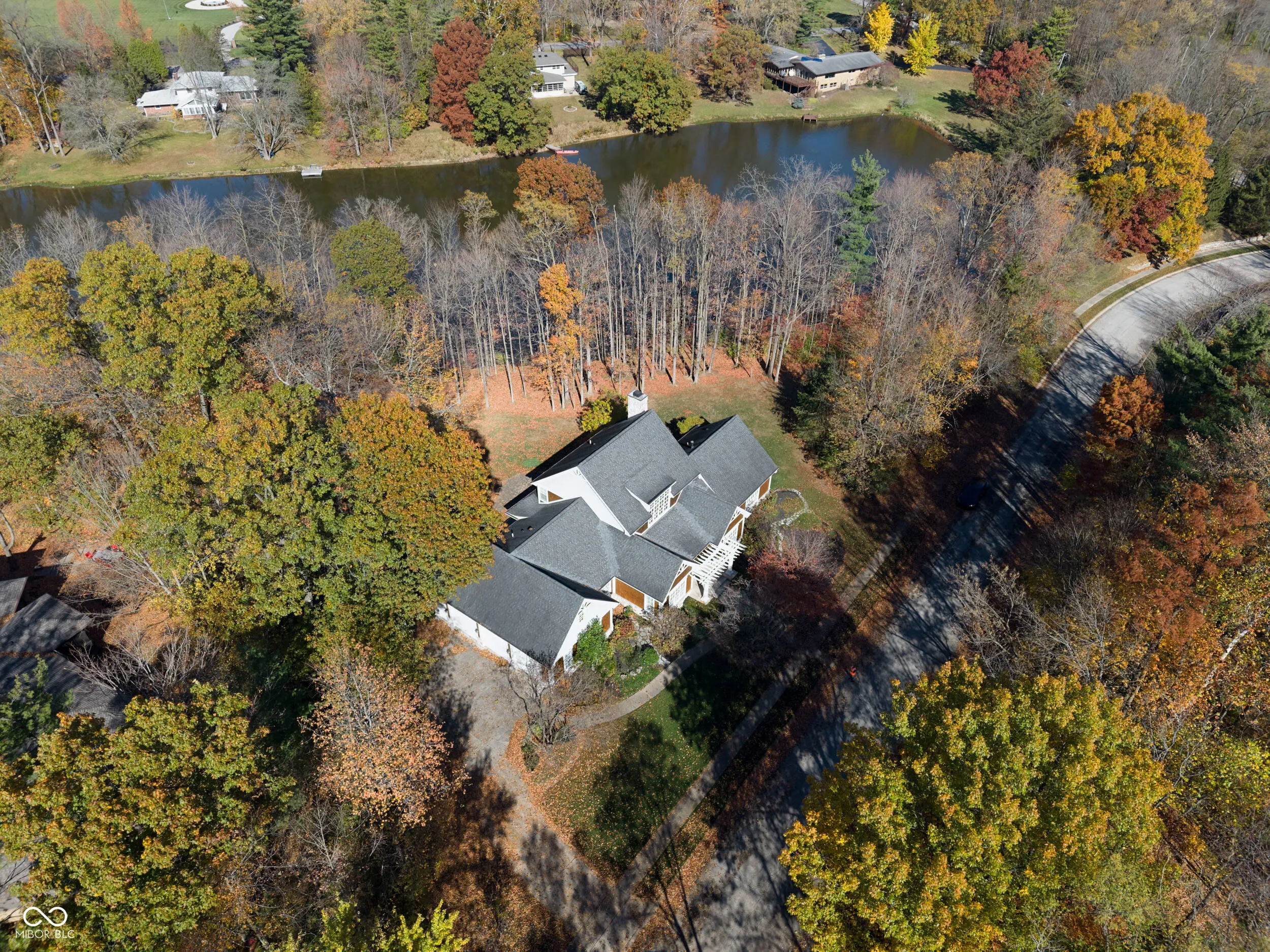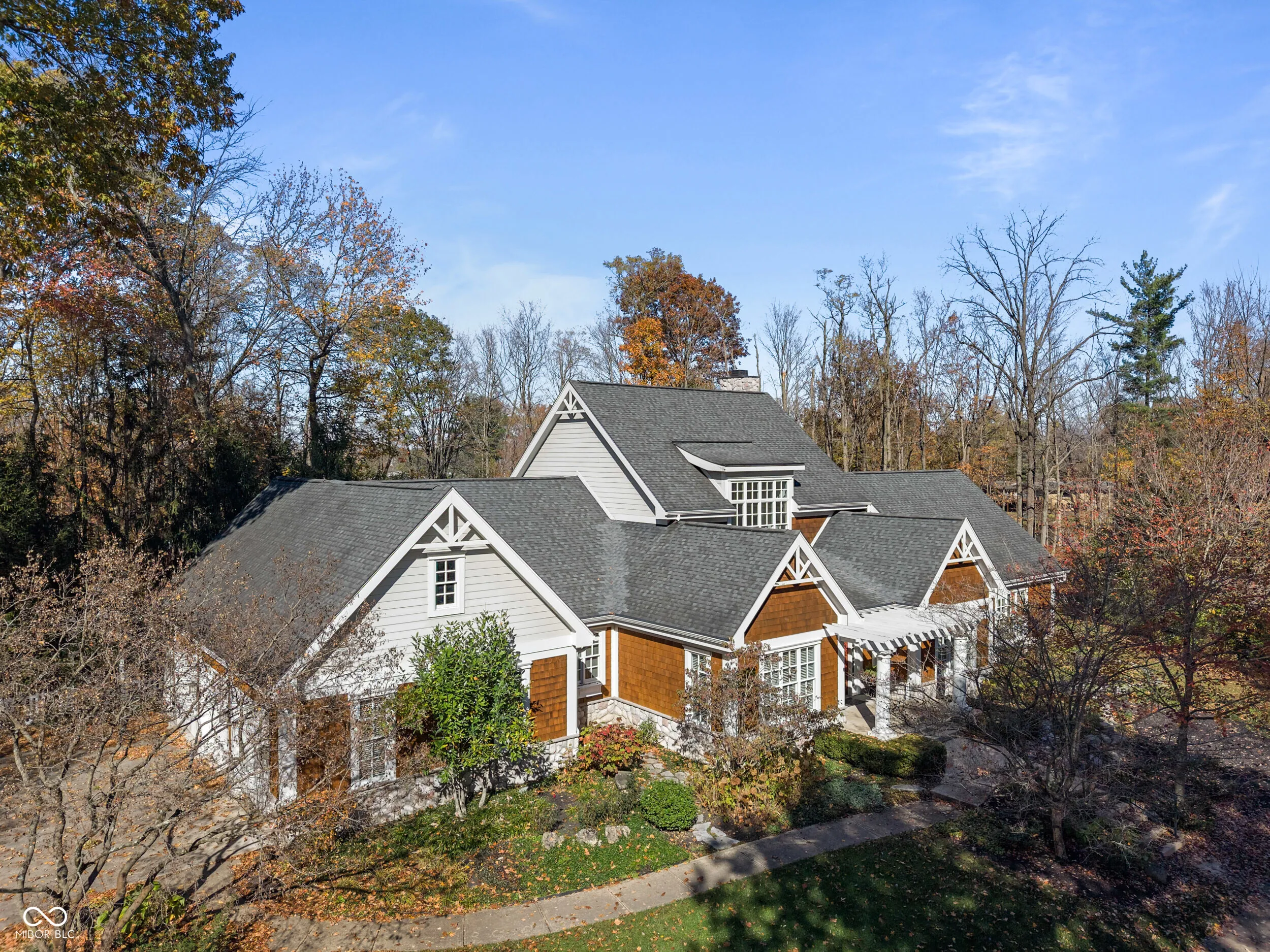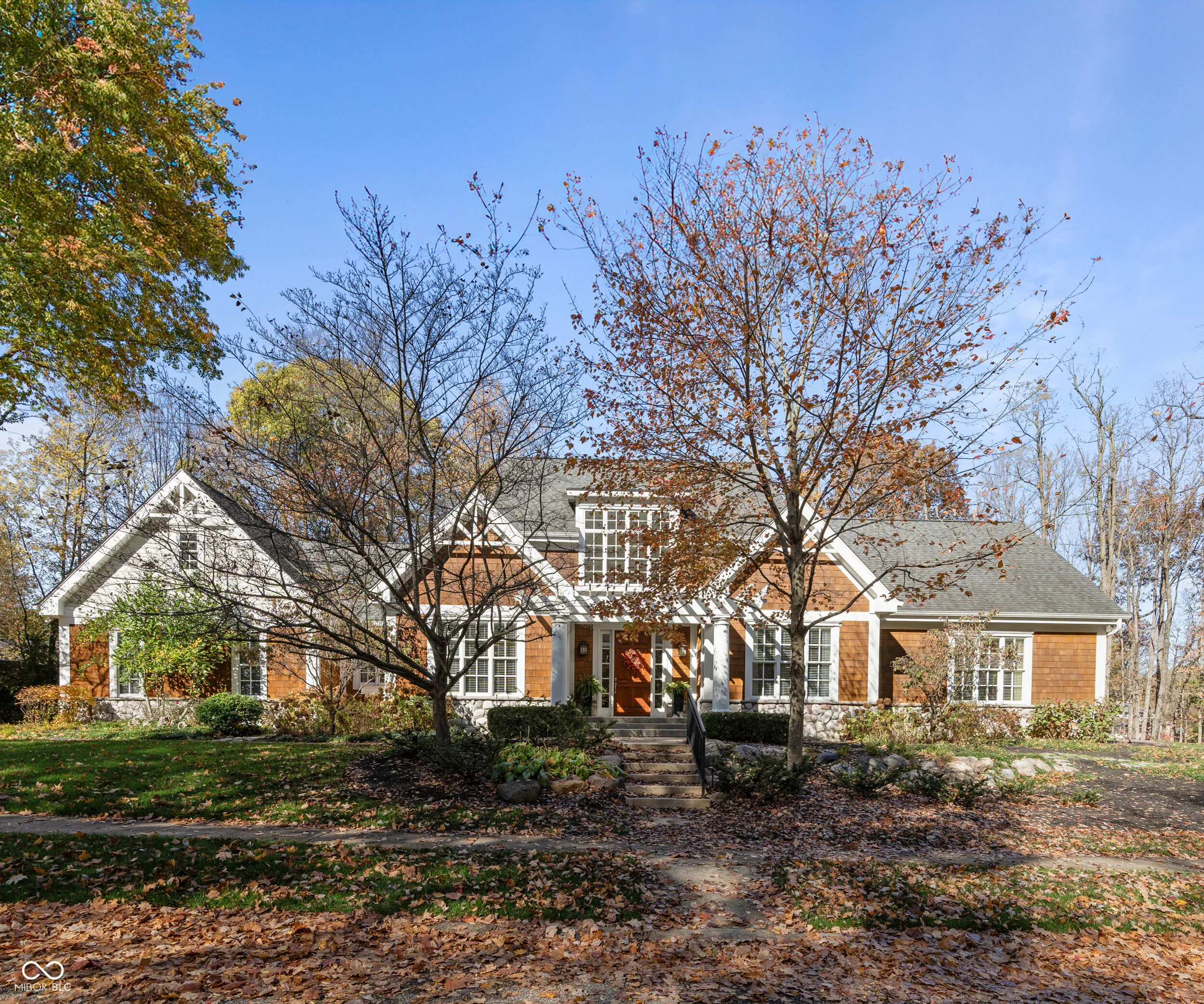 Discover unparalleled elegance and comfort in this custom-designed masterpiece. Designed and built by Lester Olds of CSO Architects in 2007 as his private residence, this exquisite 4,199 sq. ft. home is ideal for those seeking a harmonious blend of refined living and tranquil natural surroundings. Enter through the grand marble foyer and step into the spacious great room, where abundant natural light from French doors and large windows frame breathtaking views of a serene private lake and the 1.24-acre wooded lot. A cozy library beckons for evenings by the fireplace. The updated kitchen, designed for both style and function, is a chef’s dream with modern amenities and timeless finishes. Easy access from the kitchen to the breakfast room, formal dining room, and great room create the perfect home for intimate family gatherings or large formal entertainment. A huge primary bedroom on the main level boasts walk-in closets and ensuite bath. Upstairs, 2 spacious ensuite bedrooms each offer privacy and luxury. A sun-drenched sitting room with vaulted ceiling invites relaxation, while the office provides an ideal space for work, leisure, or crafts. Crafted with cedar shake siding, this home exudes charm and sophistication. The meticulously maintained interiors, large screened in porch, and spacious three-car garage round out this exceptional property. This is not just a home-it’s a lifestyle. Directly across the street from Eagle Creek Park, and only 20 minutes from the Airport or Downtown.