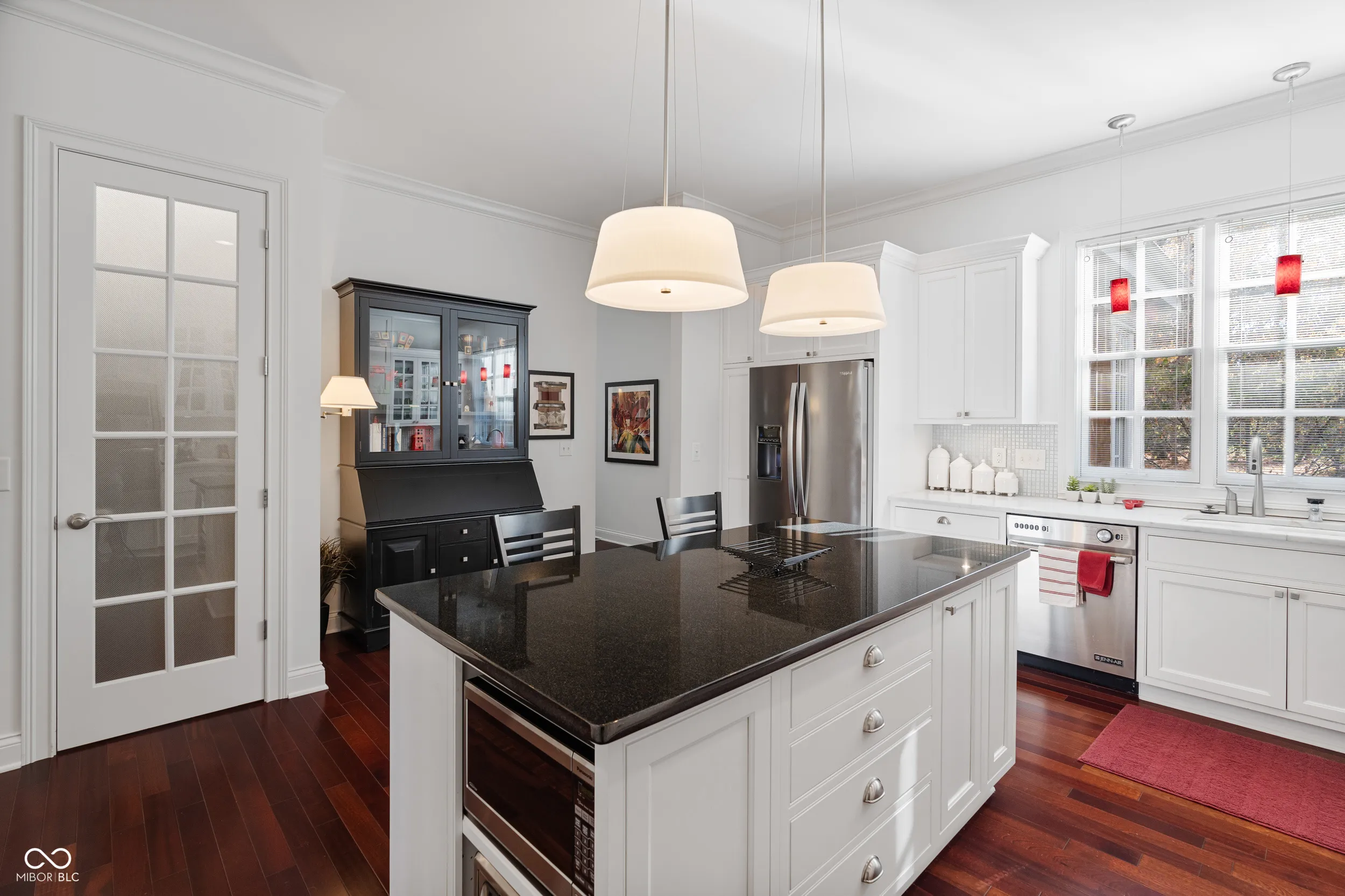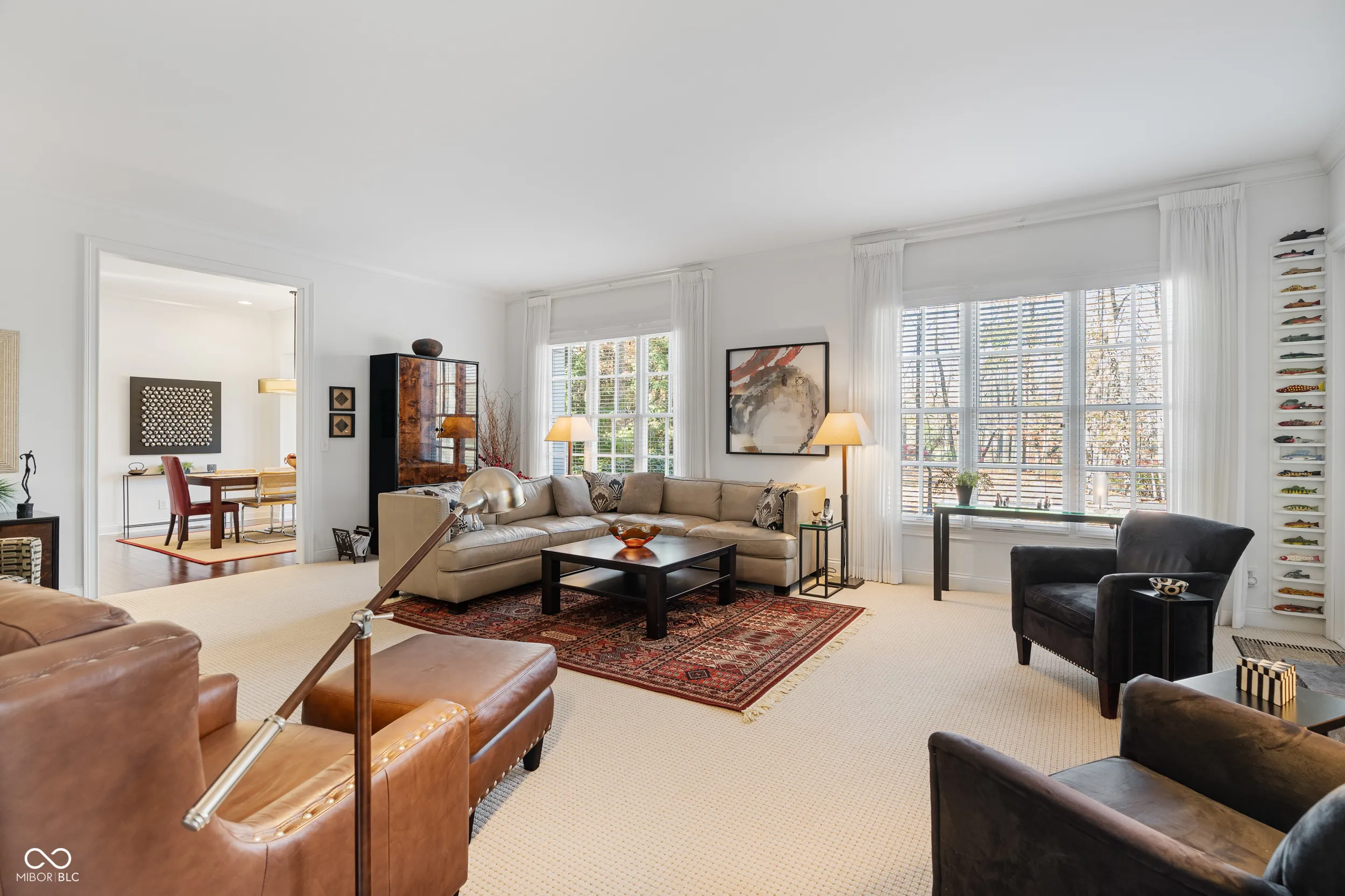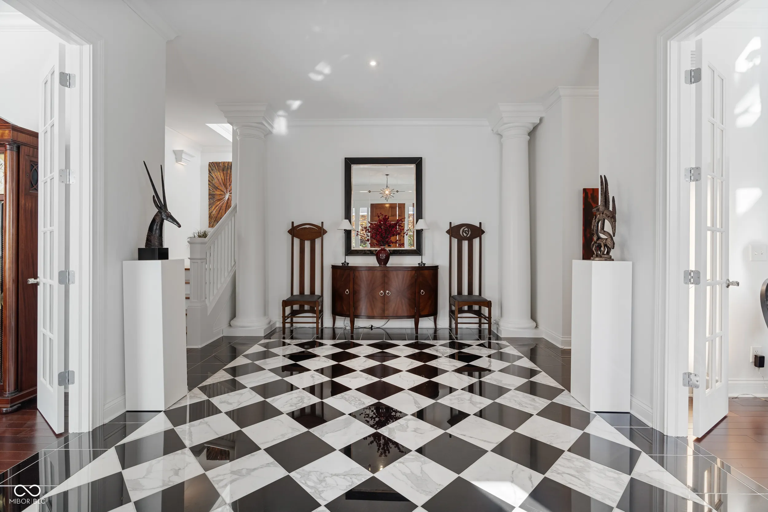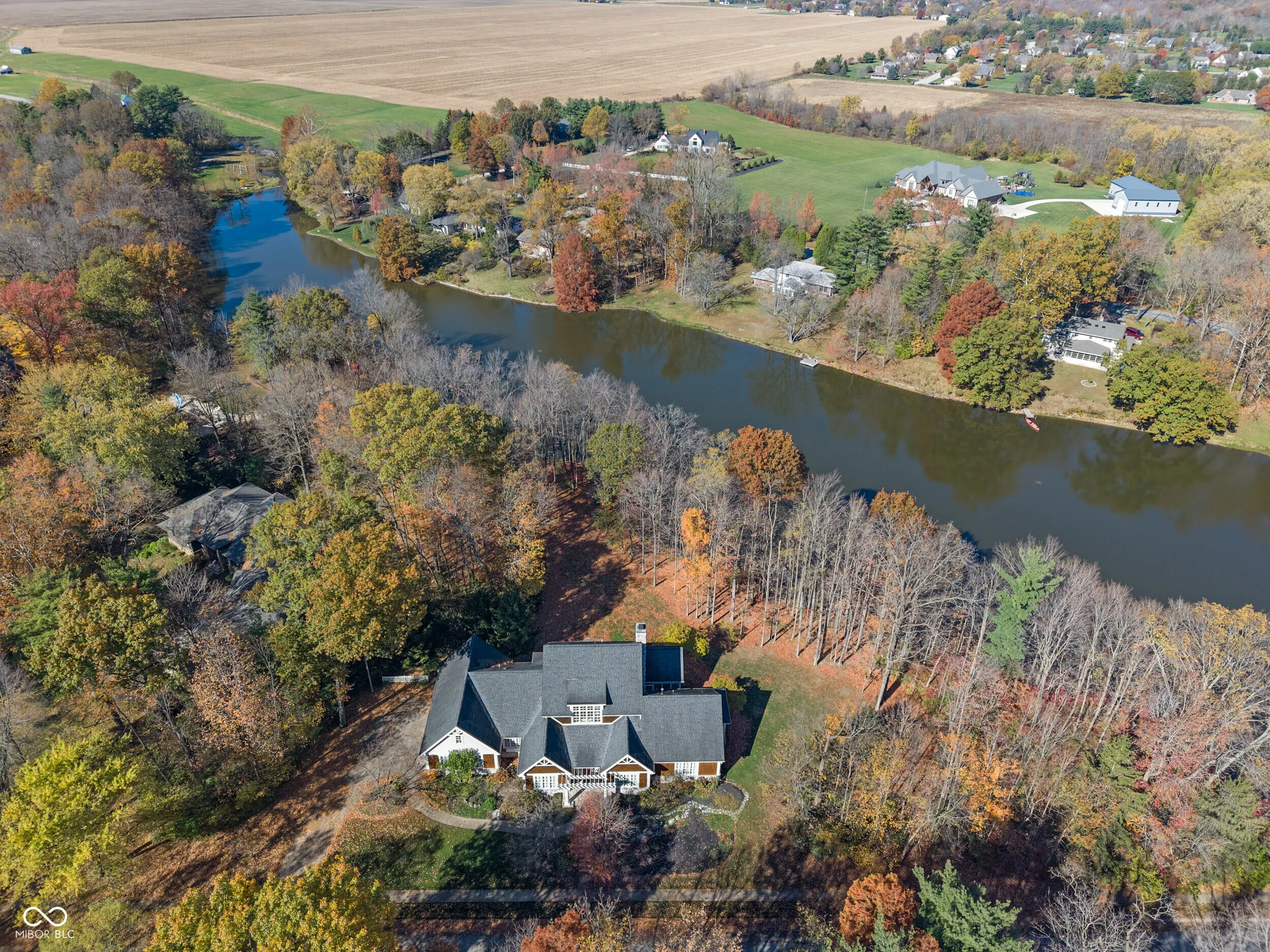 Discover unparalleled elegance and comfort in this custom-designed masterpiece. Designed and built by Lester Olds of CSO Architects in 2007 as his private residence, this exquisite 4,199 sq. ft. home is ideal for those seeking a harmonious blend of refined living and tranquil natural surroundings. Enter through the grand marble foyer and step into the spacious great room, where abundant natural light from French doors and large windows frame breathtaking views of a serene private lake and the 1.24-acre wooded lot. A cozy library beckons for evenings by the fireplace. The updated kitchen, designed for both style and function, is a chef’s dream with modern amenities and timeless finishes. Easy access from the kitchen to the breakfast room, formal dining room, and great room create the perfect home for intimate family gatherings or large formal entertainment. A huge primary bedroom on the main level boasts walk-in closets and ensuite bath. Upstairs, 2 spacious ensuite bedrooms each offer privacy and luxury. A sun-drenched sitting room with vaulted ceiling invites relaxation, while the office provides an ideal space for work, leisure, or crafts. Crafted with cedar shake siding, this home exudes charm and sophistication. The meticulously maintained interiors, large screened in porch, and spacious three-car garage round out this exceptional property. This is not just a home-it’s a lifestyle. Directly across the street from Eagle Creek Park, and only 20 minutes from the Airport or Downtown.