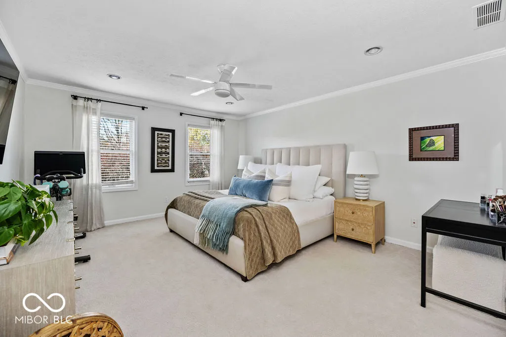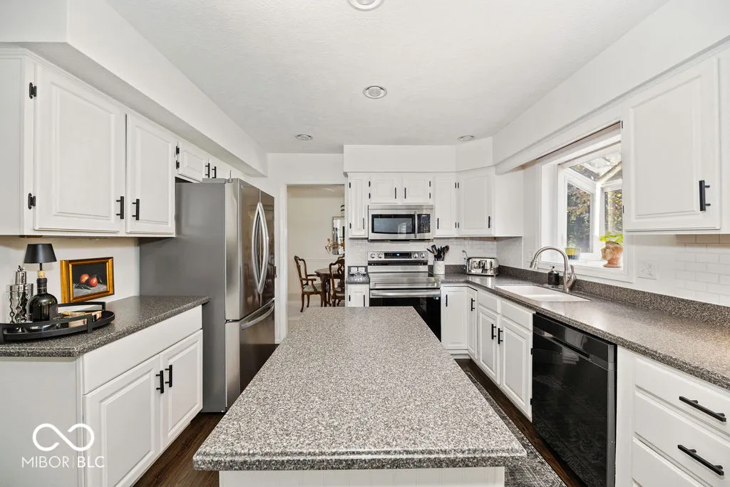 Make the Discovery… Warm & Striking 4 bedroom, 3 bathroom home nestled in the desirable Hunters Creek South neighborhood of Carmel! Step through the new front door into the foyer flanked by a cozy family room featuring a brick fireplace. Updates GALORE including a beautifully refreshed interior with ALL NEW paint, light fixtures, blinds, ceiling fans, tile flooring, and carpeting throughout. Stunning kitchen complete with a new stove & refrigerator, along with newly painted kitchen cabinets, new tile flooring, & updated hardware. Breakfast nook walks out onto a stunningly updated sunroom flooded with natural light. Updated quartz countertops in the bathrooms, spacious bedrooms with new ceiling fans, custom closets, and large primary suite with a double vanity and walk-in shower. New roof, HVAC system & water heater, freshly painted exterior, new shutters, mailbox, front light post, and garage door. Relax or entertain in a sprawling backyard enclosed by new fencing and porch lights. Award-winning Carmel Clay Schools district and only steps away from the Monon Trail and Clay Terrace shopping and dining. Seeing is believing!!