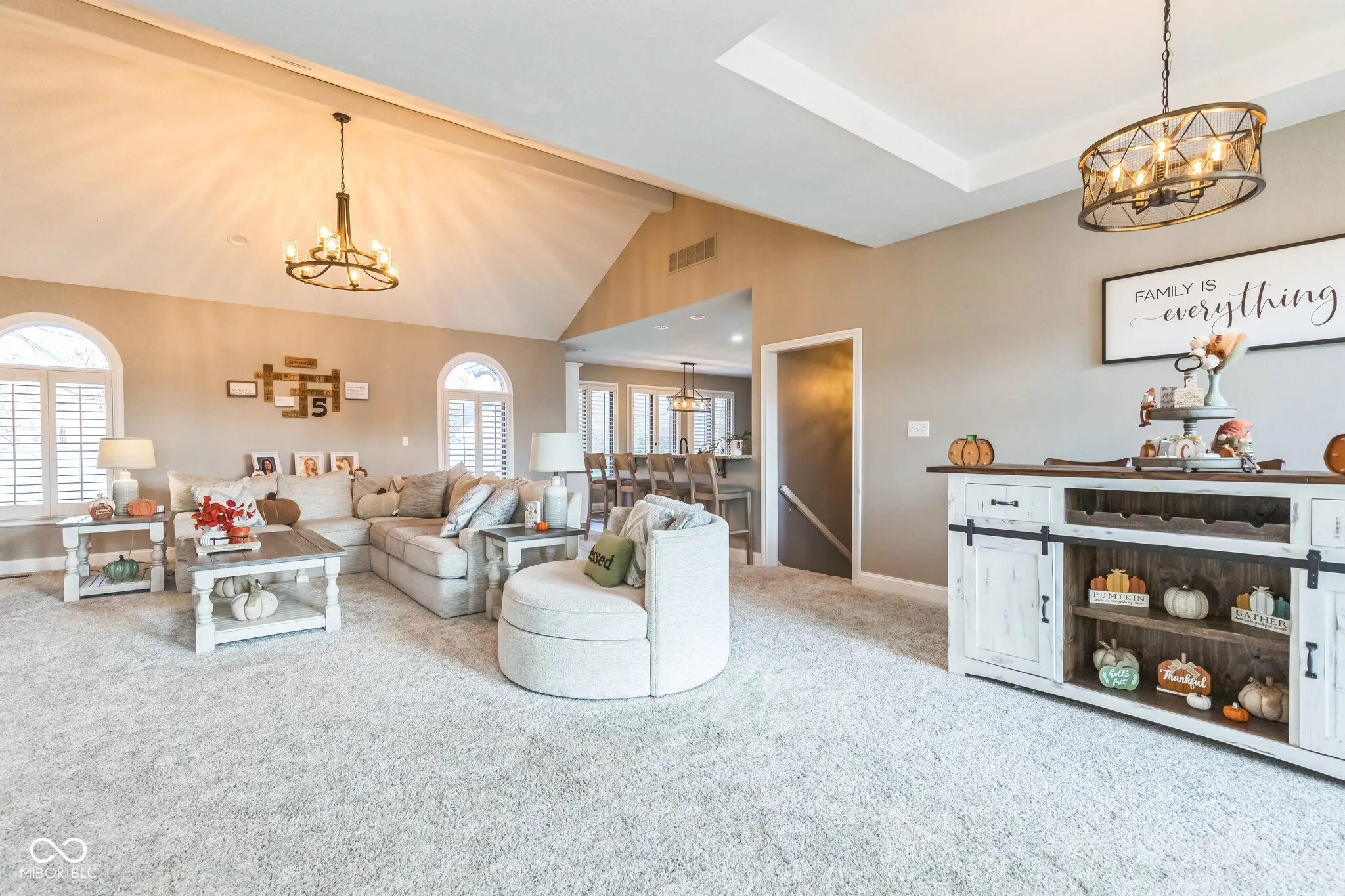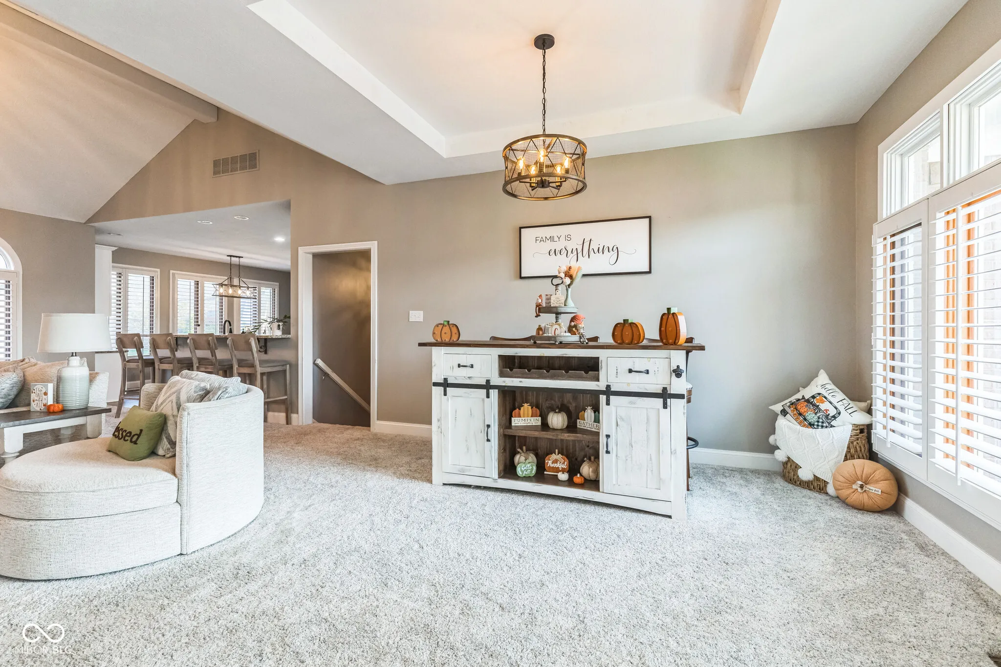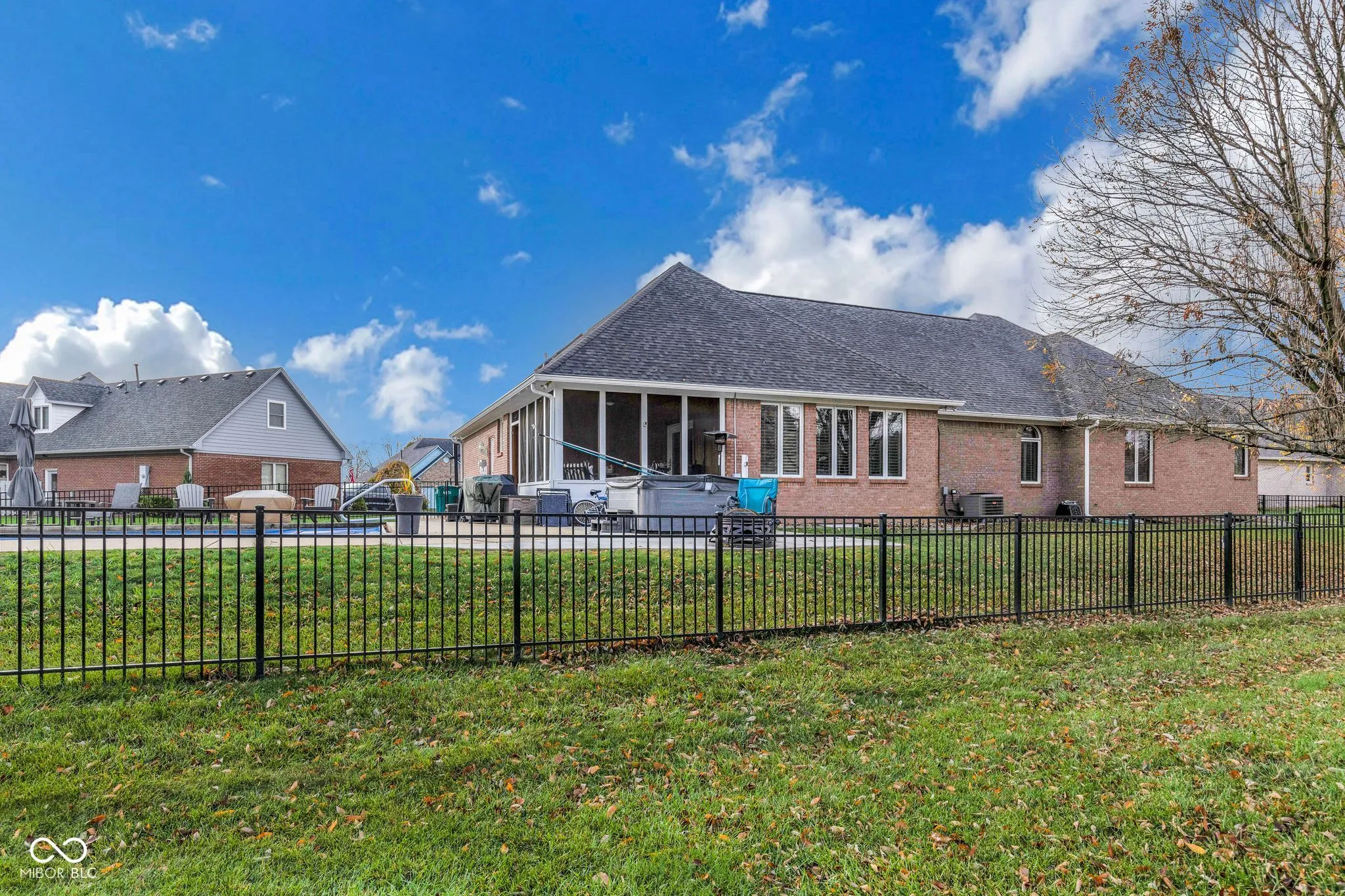 Stunning custom built, move-in ready home nestled on 1/2-acre lot at end of cul-de-sac in Williamsburg in The Woods. Impressive 5,400 Sq. Ft. w/4BR (5th BR w/no egress)/3.5BA/3Car Attached Garage. Spacious great room overlooks open eat-in kitchen leading to screened patio. Kitchen offers island, b’fast bar, granite counter tops, tile backsplash & walk-in pantry. Owner’s ensuite w/tray ceiling, double sinks, walk-in closet, garden tub and walk-in tiled shower. 2 additional BRs on the main level. 9′ ceilings throughout. Spacious basement, w/two additional bedrooms (one w/no egress), rec/playroom, additional living space, full BA and more! Hours of fun will be had enjoying the included pool table. Separate 25×20 living space above the garage. Wrought iron fence surrounds inground pool. Whether it is enjoying the spacious great room, basement, time in the screened patio, or pool side, this home will not disappoint.