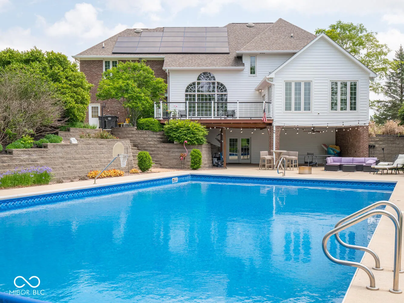 Experience luxury living on 17.05 acres in the top-rated Eastern Hancock school district! This 4-bed, 4.5-bath home offers 5,534 sq ft of updated space, including a remodeled kitchen with granite countertops, new backsplash, sink, fridge, and range. The sunroom and two-story great room overlook a heated inground pool-recently serviced and opened-with a newer heater and motorized cover (3-5 year warranty). The walk-out basement features a custom bar, theater room, and a newly added full bath. Enjoy newer flooring throughout most of the home, including vinyl plank upstairs (except master bath), updated playroom carpet, and fresh interior and deck paint. Other upgrades include a new HVAC unit, solar panels (43), and an updated laundry room. Outside, you’ll find brand new landscaping, a vibrant cut flower garden planted with thousands of seeds, a finished heated/cooled garage, collegiate-size basketball goal, fenced pasture, and an 80×40 shop with heated/cooled offices and a 14×14 overhead door. This rare property blends comfort, efficiency, and space-schedule your private tour today!