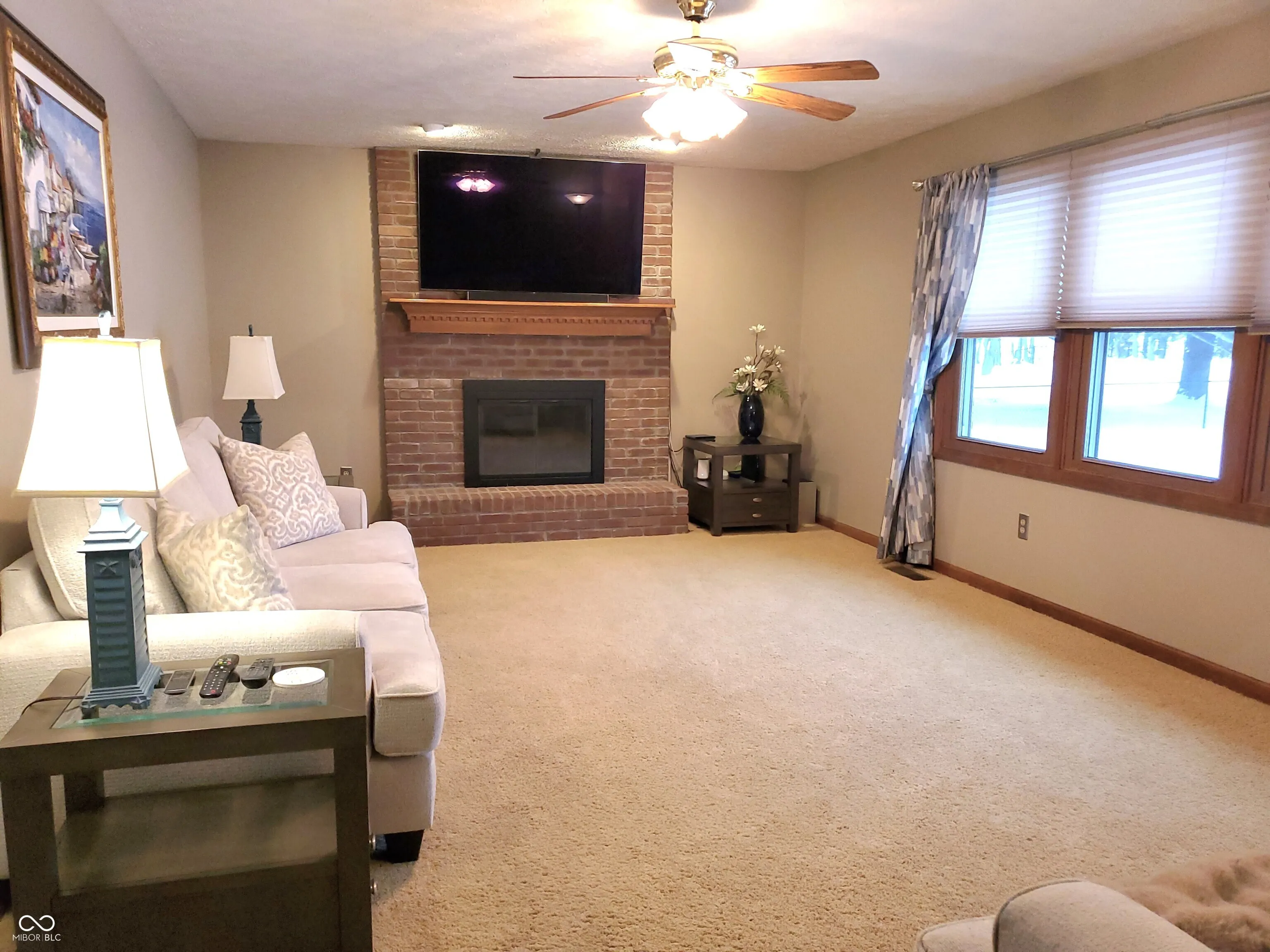 Hard to find, one owner, custom home with a finished basement! You’ll love the quiet street and the full covered front porch. Relax on the back patio overlooking a peaceful country setting. Neatly landscaped yard is over a half acre with a mini barn and has space for a large garden. Flexible floorplan with room for a main level office or living rm, dining room and a family room with a cozy fireplace. County kitchen with bar seating and breakfast area, half bath and laundry room with built-in ironing board and cabinetry. The generous primary suite offers a large bath and walk-in closet. Small loft area perfect for a study area or bookcases. Spacious basement with two large finished bonus rooms. One room is currently set up as a theatre room and offers surround speakers, perfect for movie night with a cozy electric fireplace that provides additional heat. Plenty of space for game tables, work out room or a large home office in the other bonus room. Two additional areas that are unfinished are the utility room with extra storage space and another 13×10 area that is being used as a hobby room. This home offers energy-efficient vinyl replacement windows & patio door with built-in blinds. New well drilled and new well pump in 2021, new water heater 2022, and new roof shingles and gutters in 2022. Finished garage and extra parking pad. No HOA, quick closing and possession! Put this one on your list.