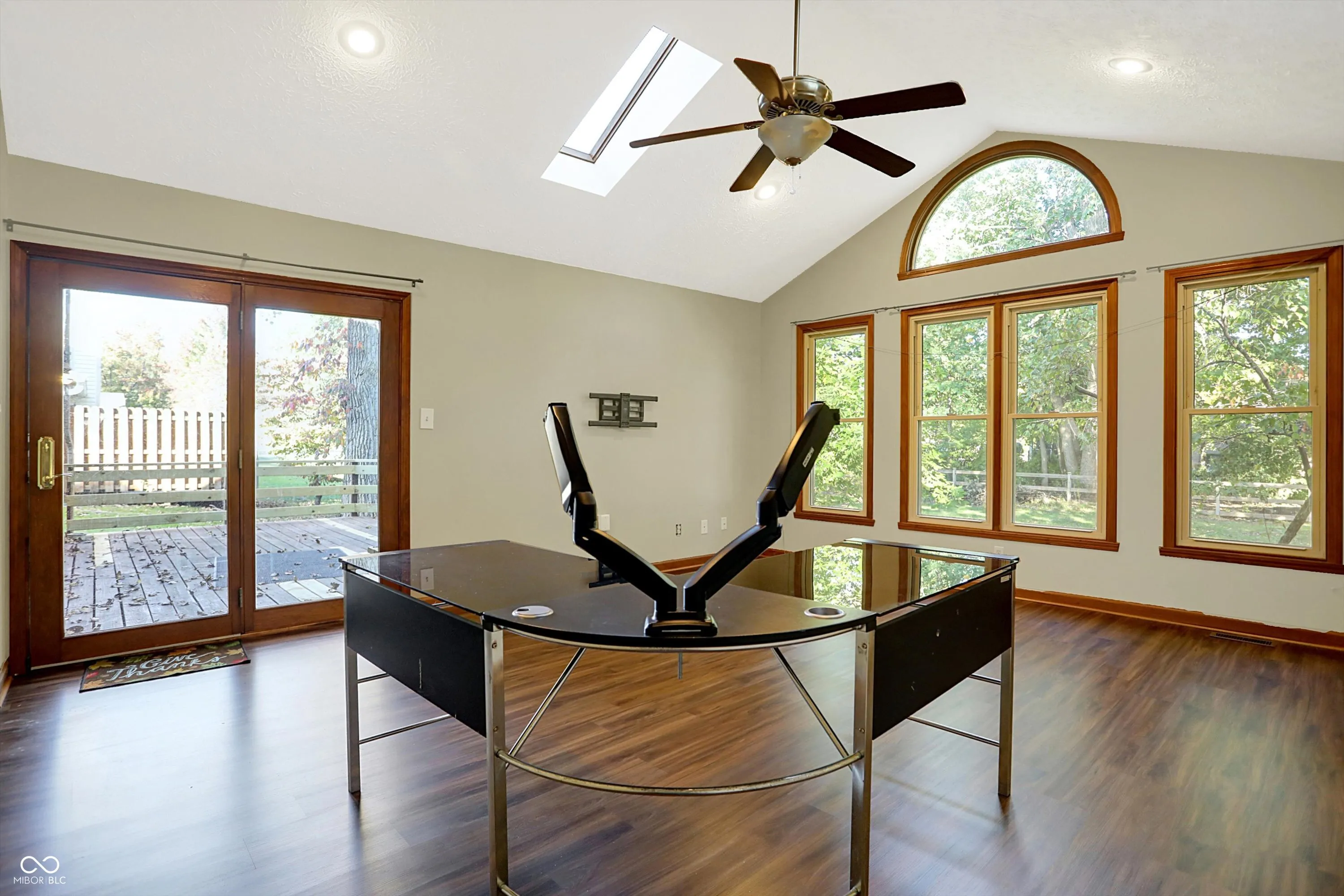 WONDERFUL opportunity under $300k for this spacious & move-in-ready home with over 2,100 sq ft in the heart of Pike Township! This desirable Crooked Creek Heights home offers 3 bedrooms and 2.5 baths on over a quarter-acre lot! The mature trees and yard create a peaceful, serene backyard retreat as you relax on your large deck. Vaulted ceilings as soon as you walk through the front door, new floors throughout the main level (2024), updated kitchen appliances with a new microwave and oven (2024), and an open floor plan leading to a cozy wood-burning fireplace with a new light fixture where you can relax. The showstopper is a GORGEOUS light-filled den, surrounded by large windows and skylight with direct access to the deck. Upstairs features the primary bedroom with additional flush-mount LED lights, dual vanities in the primary bathroom, separate room for the shower, and additional bedrooms are generously sized with a hall bathroom with dual vanities as well. Windows in the home have been replaced within the last 5 years. Don’t miss this exceptional find in Pike Township before it’s too late!